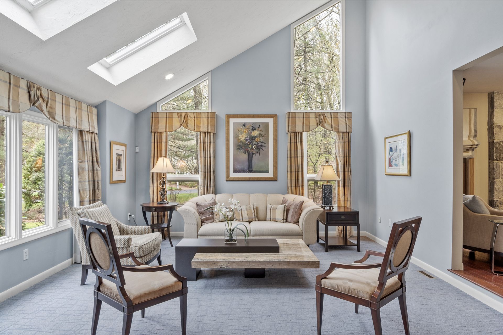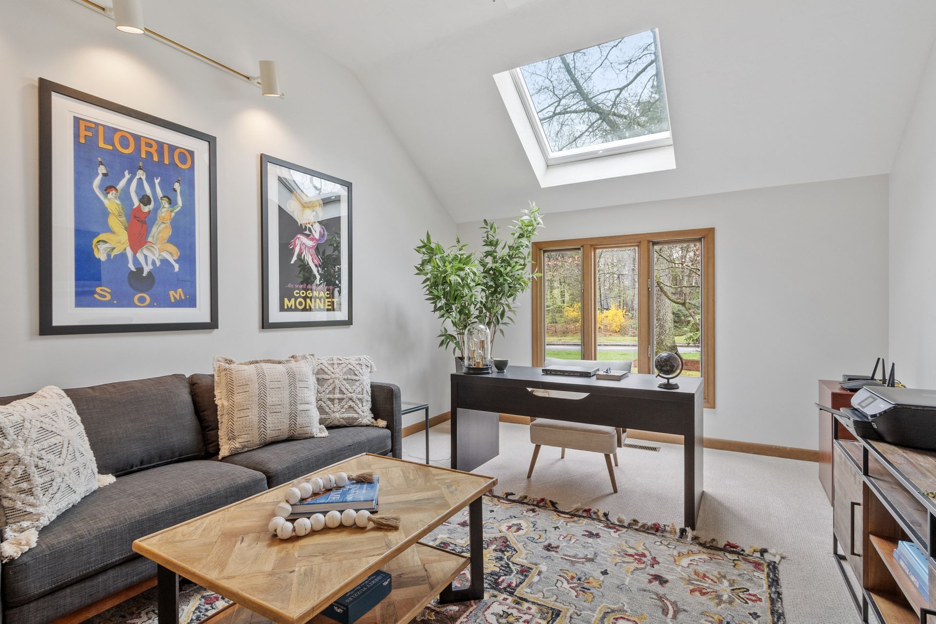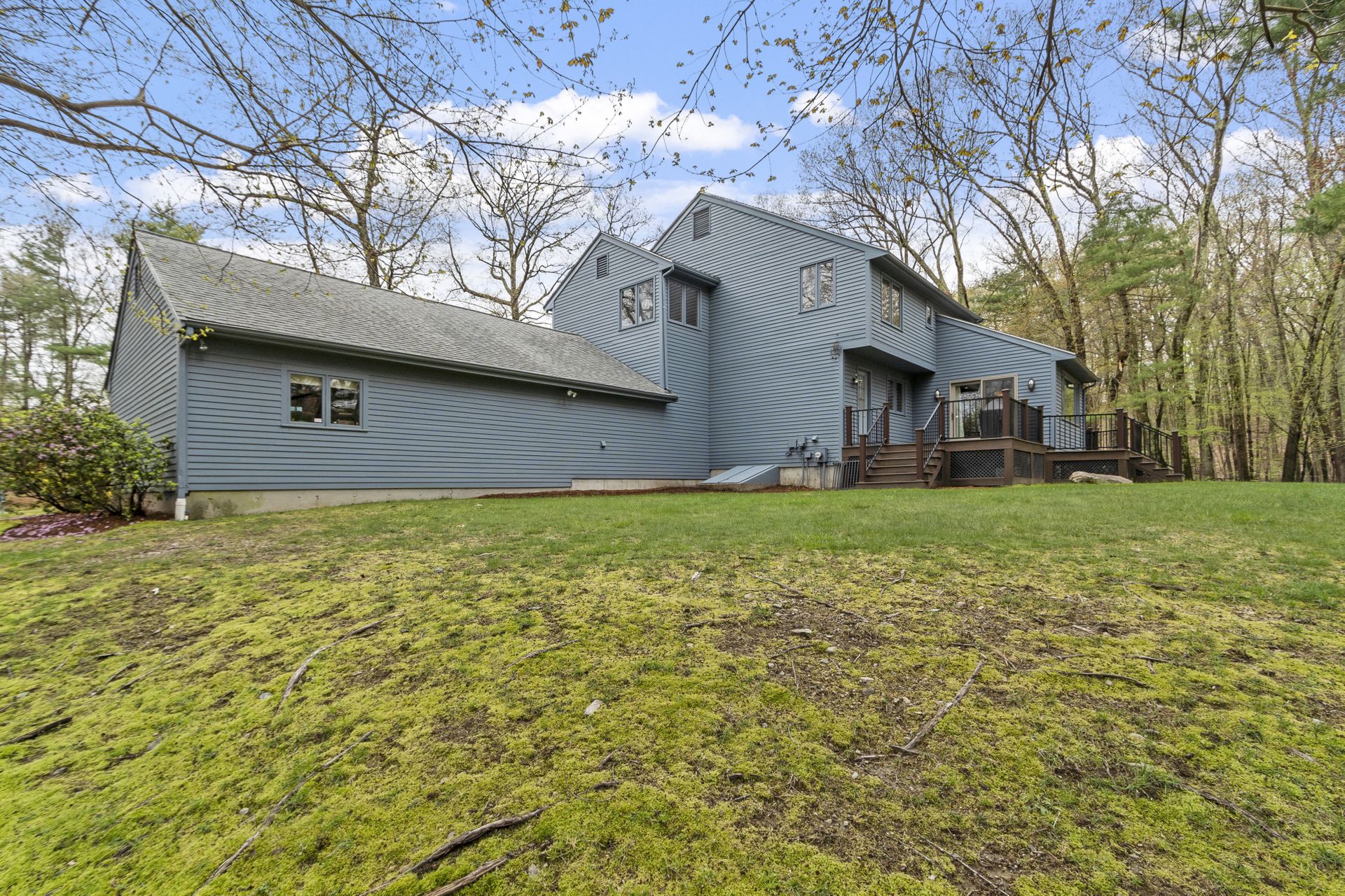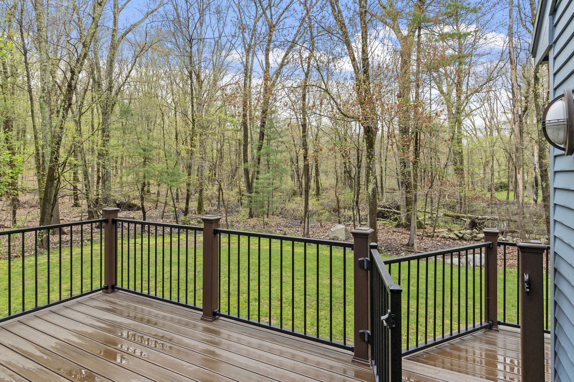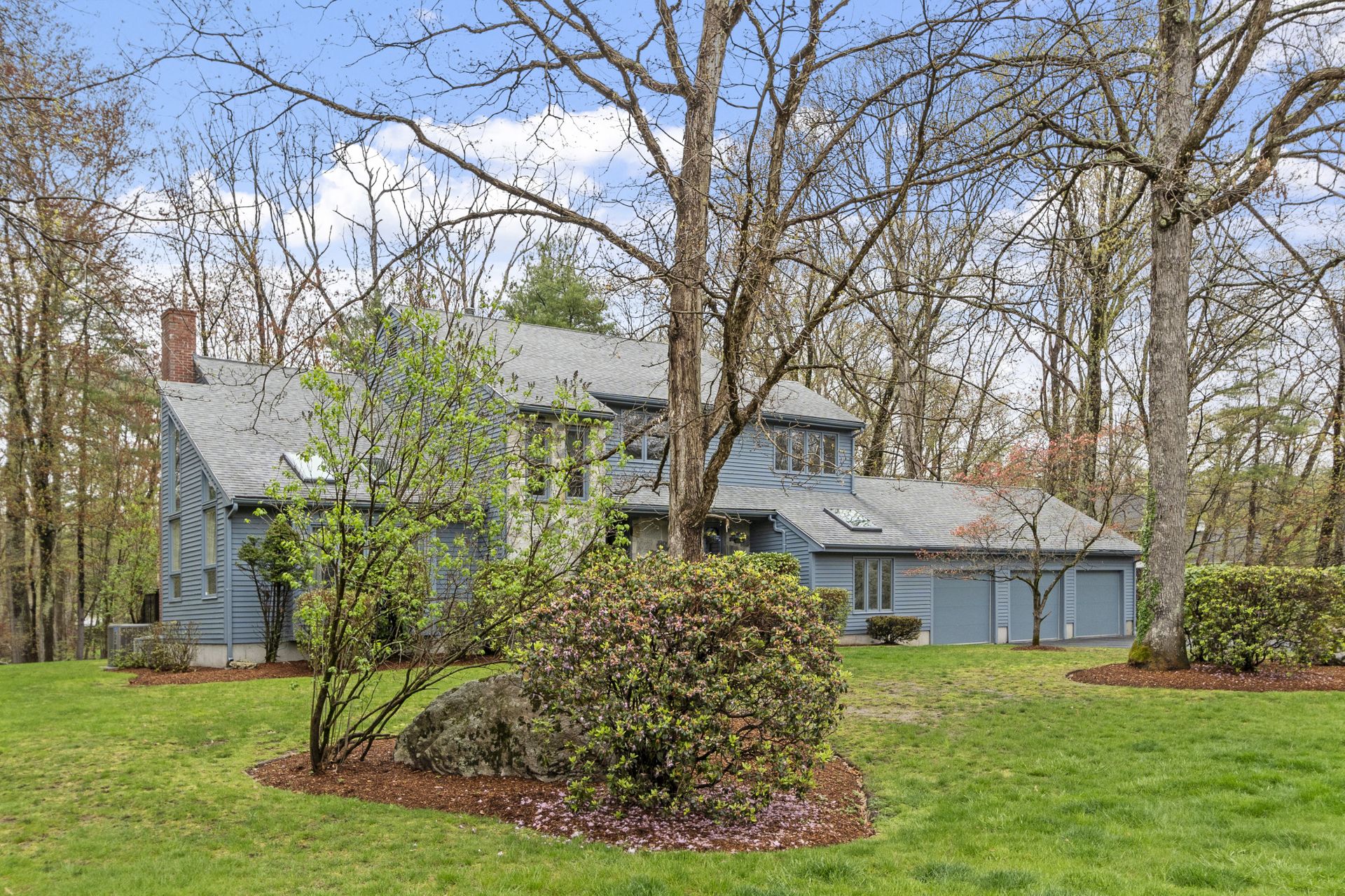Experience elegance in this stunning Contemporary, boasting luxurious living spaces, three-car garages, and a picturesque acre of manicured grounds. Nestled in a coveted cul-de-sac neighborhood, this home exudes a sense of spaciousness, airiness, and modernity. Its remodeled kitchen, with a sun-drenched breakfast room, overlooks the backyard and an inviting wrap-around deck, perfect for outside leisure. The captivating stone fireplace in the Family Room is complemented by built-ins. A vaulted ceiling graces the formal Living Room, surrounded by expansive windows. The first floor hosts a dining room for entertaining, along with a skylit study adaptable to a cozy den or home office. The seamless layout extends to the upper level, where you'll find a sizeable primary bedroom and three generous bedrooms, each offering high ceilings and ample closet space. The expansive finished basement/game room provides additional space for recreation and play, completing this suburban oasis. Love Where You Live!