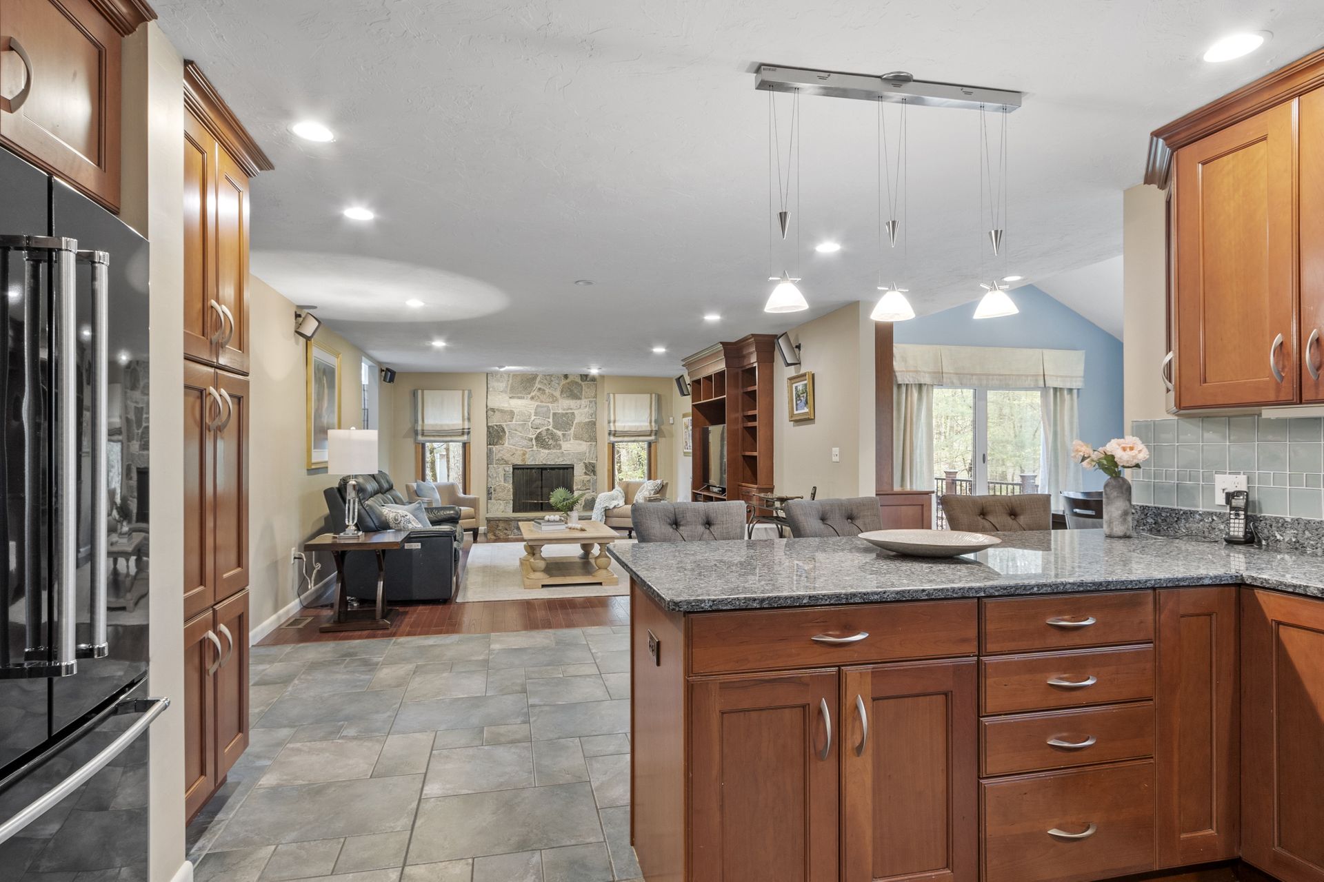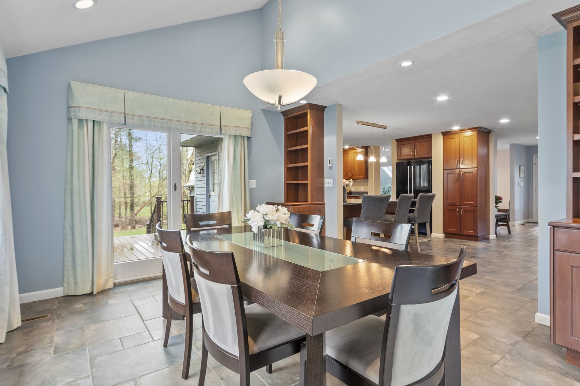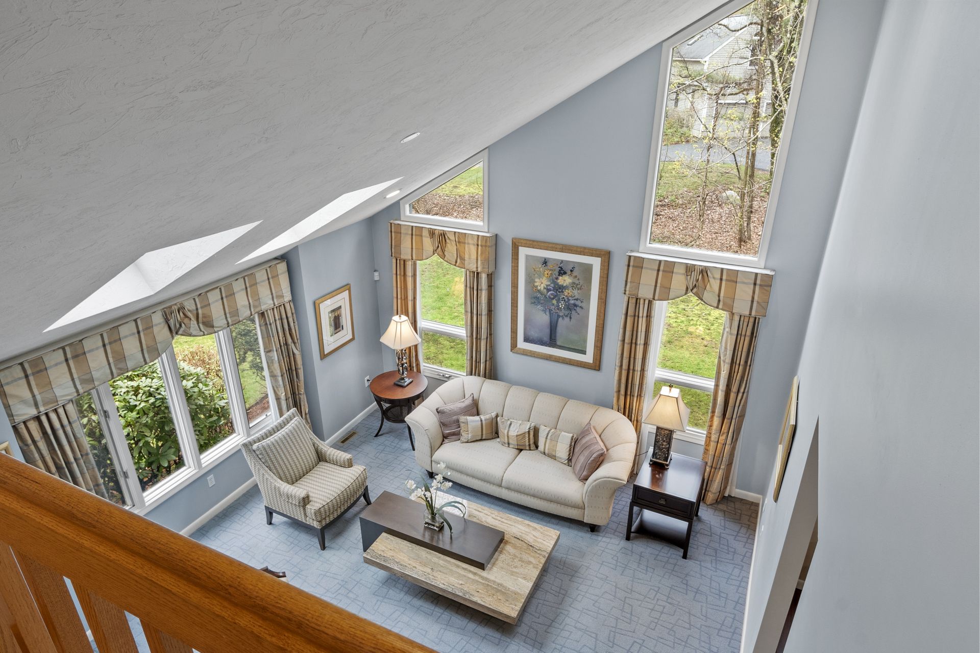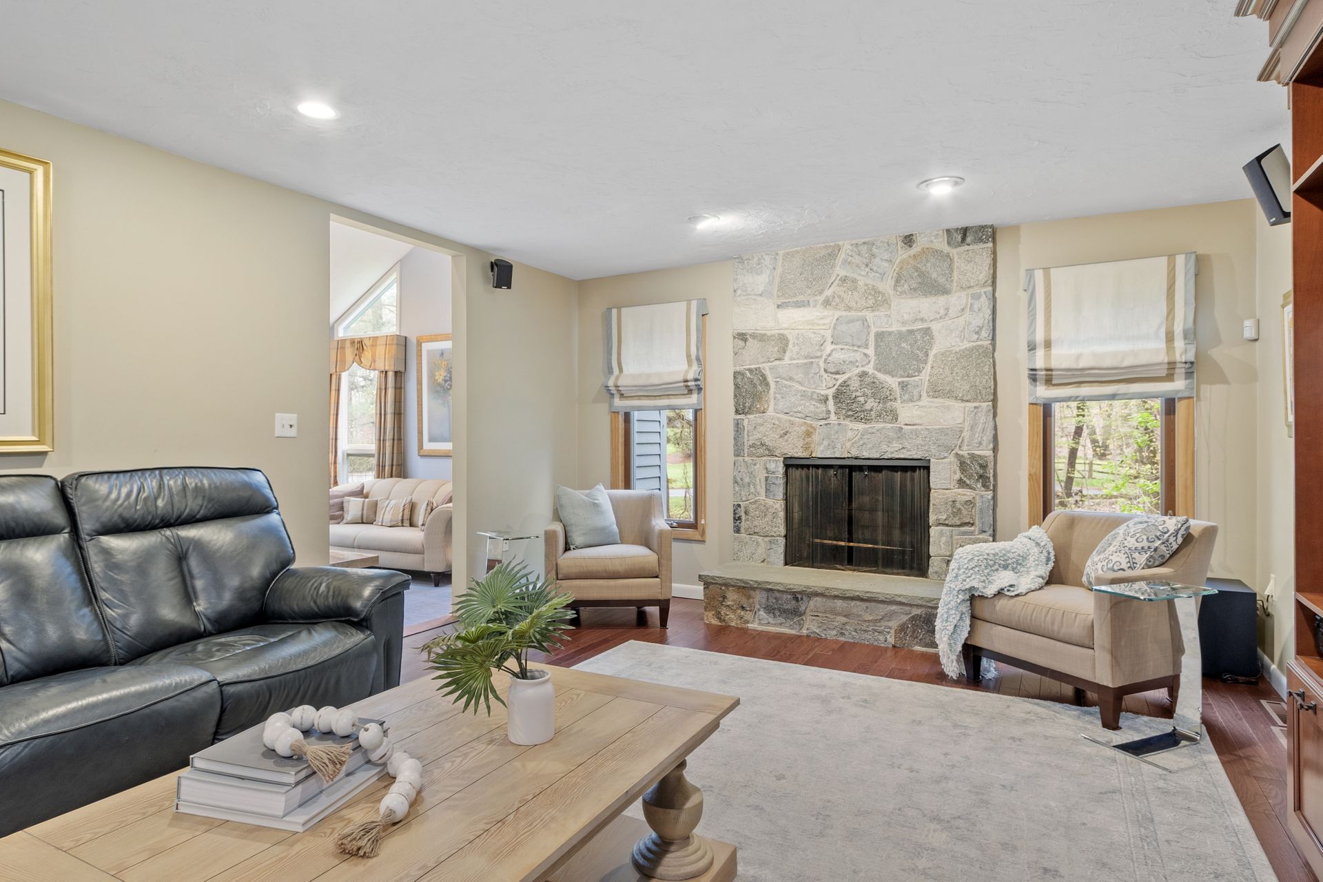 Experience elegance in this stunning Contemporary, boasting luxurious living spaces, three-car garages, and a picturesque acre of manicured grounds. Nestled in a coveted cul-de-sac neighborhood, this home exudes a sense of spaciousness, airiness, and modernity. Its remodeled kitchen, with a sun-drenched breakfast room, overlooks the backyard and an inviting wrap-around deck, perfect for outside leisure. The captivating stone fireplace in the Family Room is complemented by built-ins. A vaulted ceiling graces the formal Living Room, surrounded by expansive windows. The first floor hosts a dining room for entertaining, along with a skylit study adaptable to a cozy den or home office. The seamless layout extends to the upper level, where you'll find a sizeable primary bedroom and three generous bedrooms, each offering high ceilings and ample closet space. The expansive finished basement/game room provides additional space for recreation and play, completing this suburban oasis. Love Where You Live!