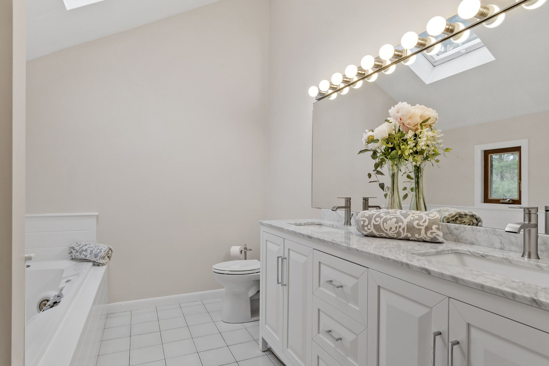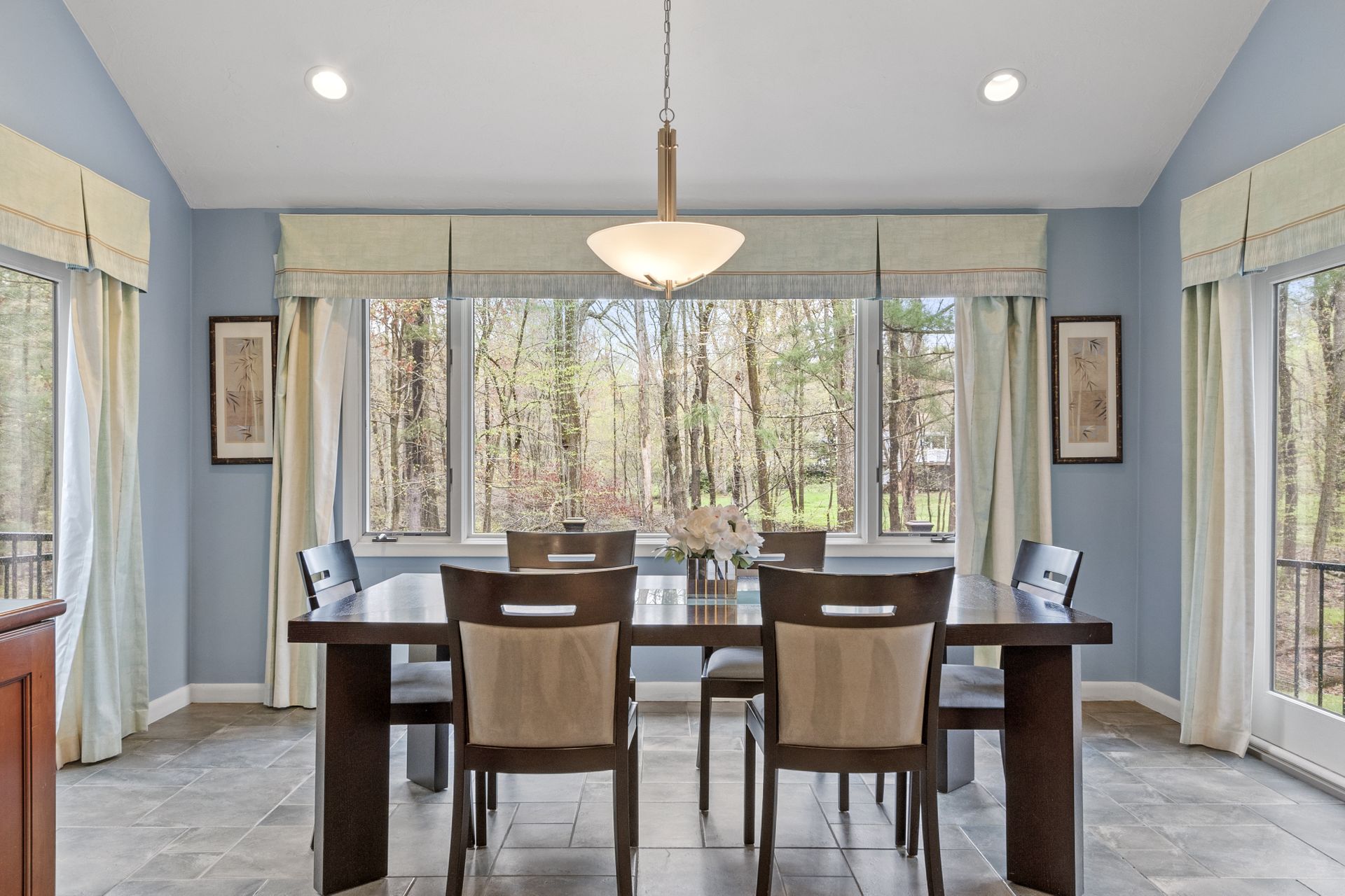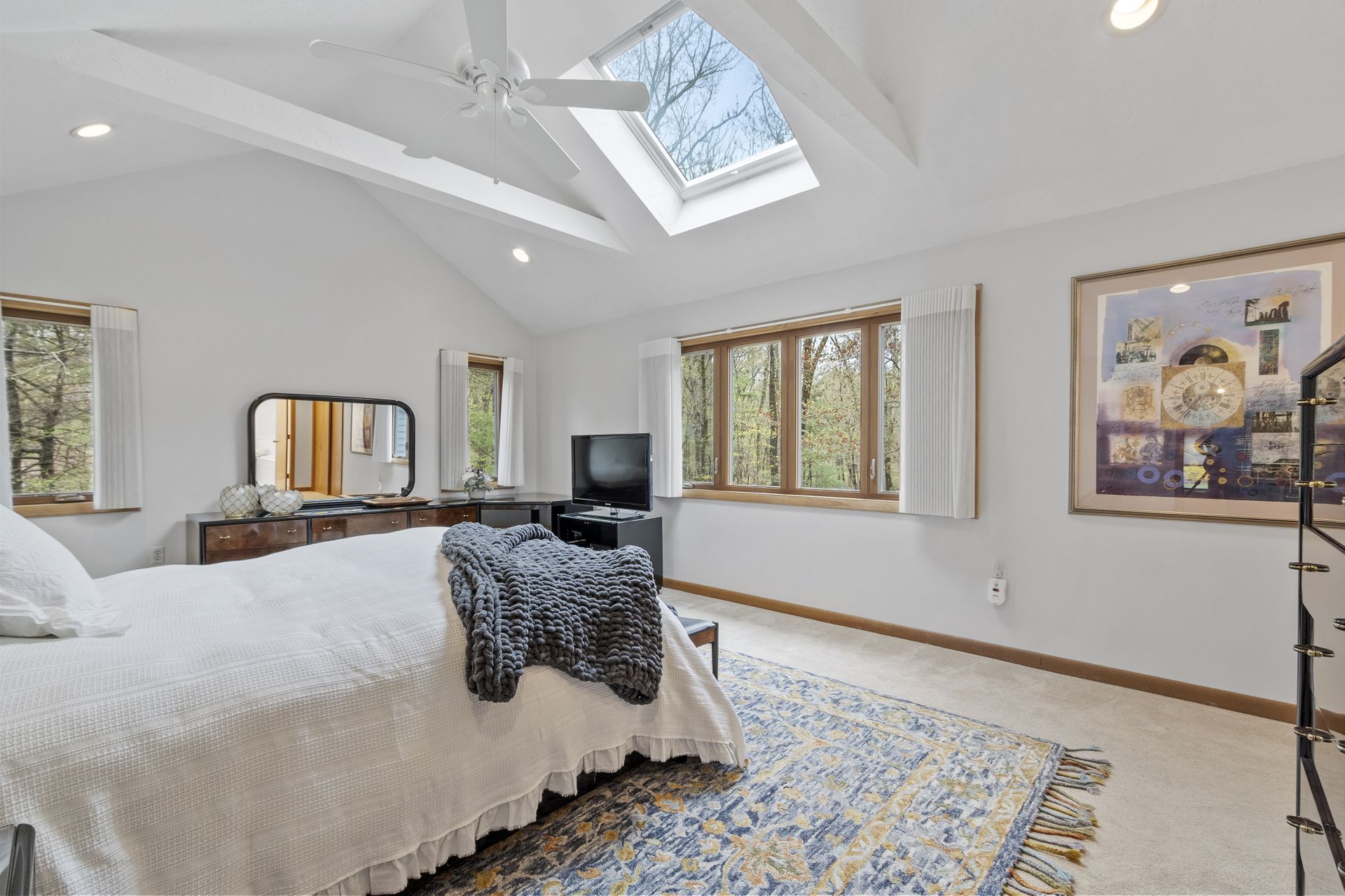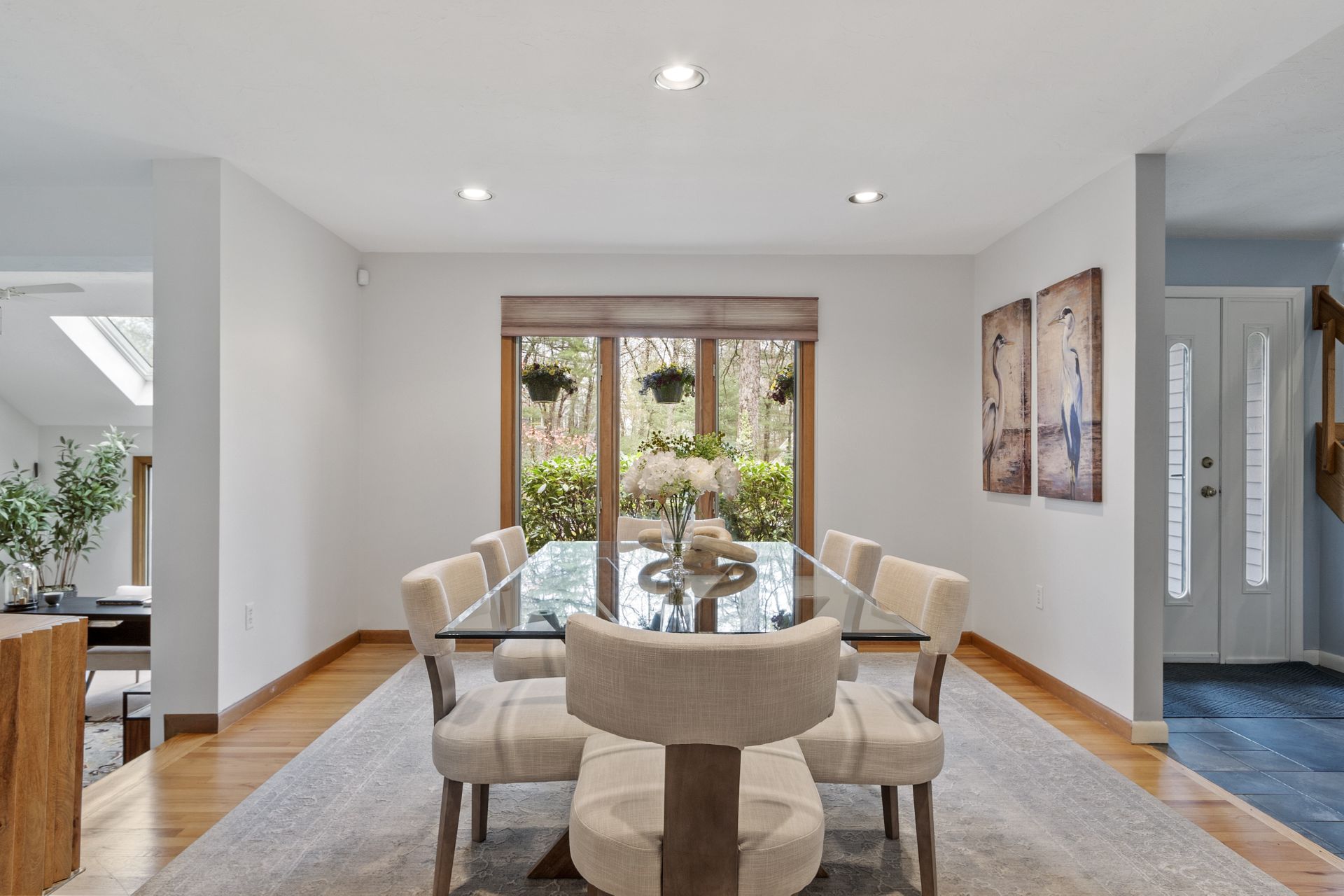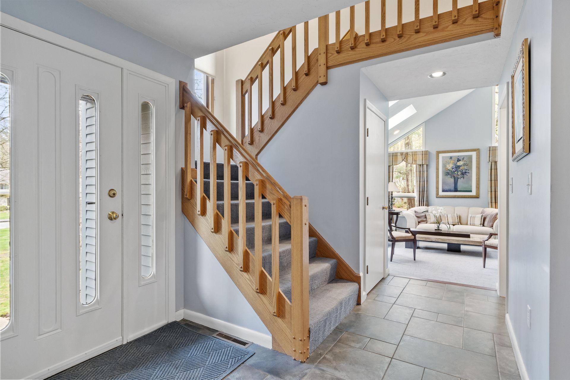 Experience elegance in this stunning Contemporary, boasting luxurious living spaces, three-car garages, and a picturesque acre of manicured grounds. Nestled in a coveted cul-de-sac neighborhood, this home exudes a sense of spaciousness, airiness, and modernity. Its remodeled kitchen, with a sun-drenched breakfast room, overlooks the backyard and an inviting wrap-around deck, perfect for outside leisure. The captivating stone fireplace in the Family Room is complemented by built-ins. A vaulted ceiling graces the formal Living Room, surrounded by expansive windows. The first floor hosts a dining room for entertaining, along with a skylit study adaptable to a cozy den or home office. The seamless layout extends to the upper level, where you'll find a sizeable primary bedroom and three generous bedrooms, each offering high ceilings and ample closet space. The expansive finished basement/game room provides additional space for recreation and play, completing this suburban oasis. Love Where You Live!