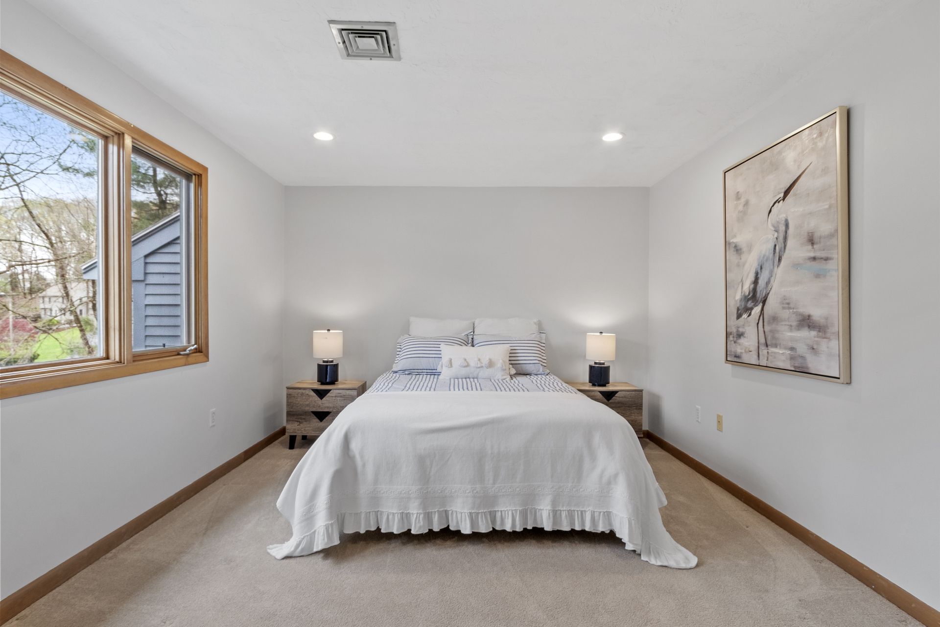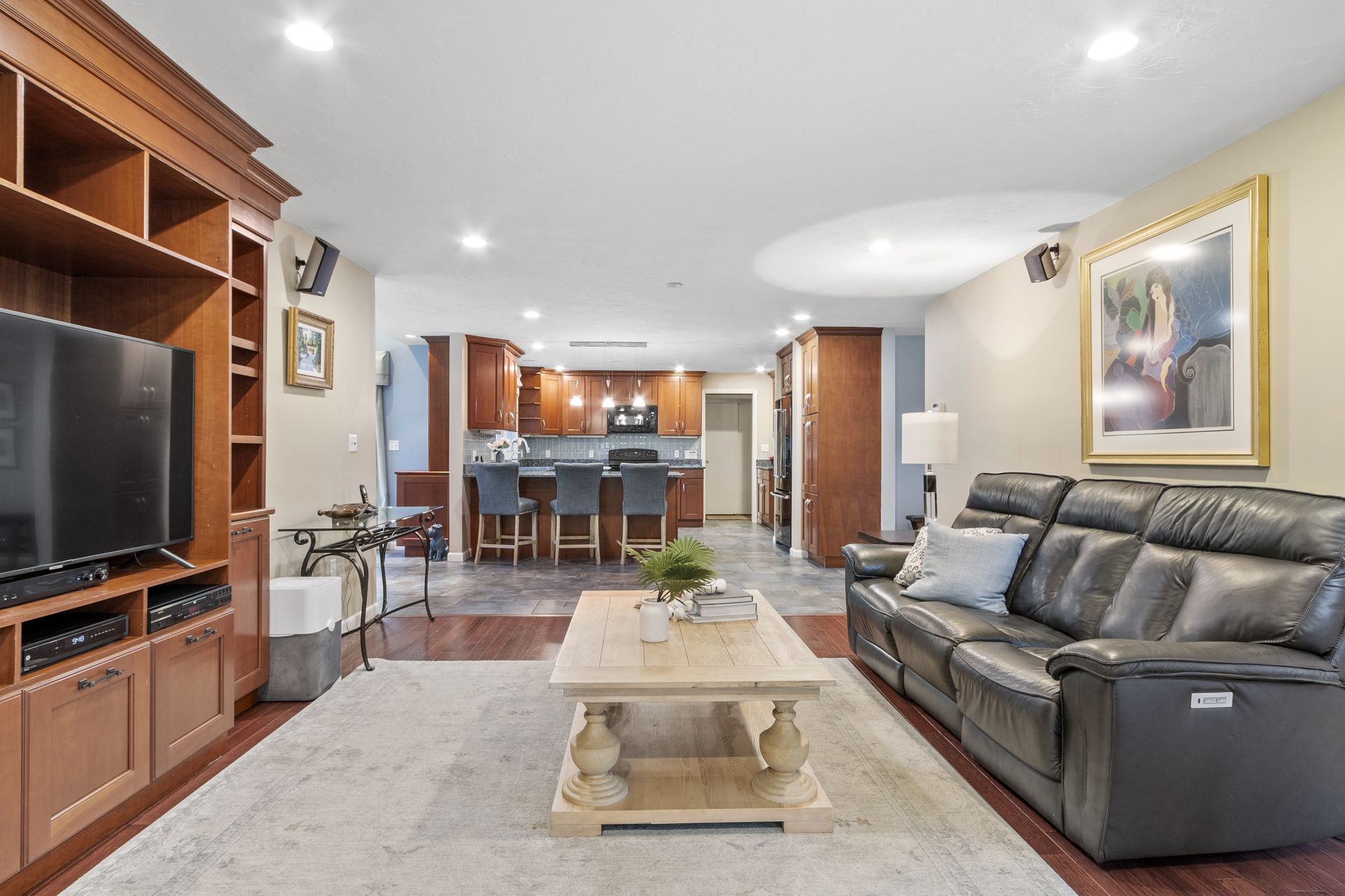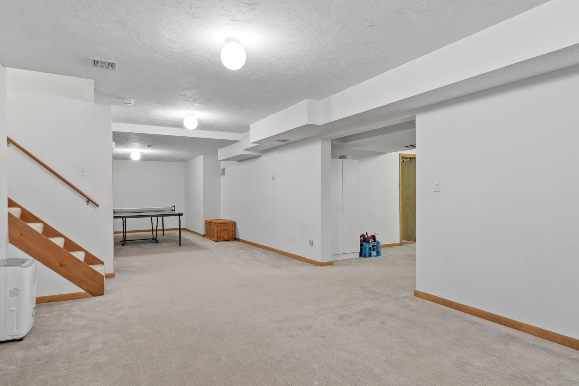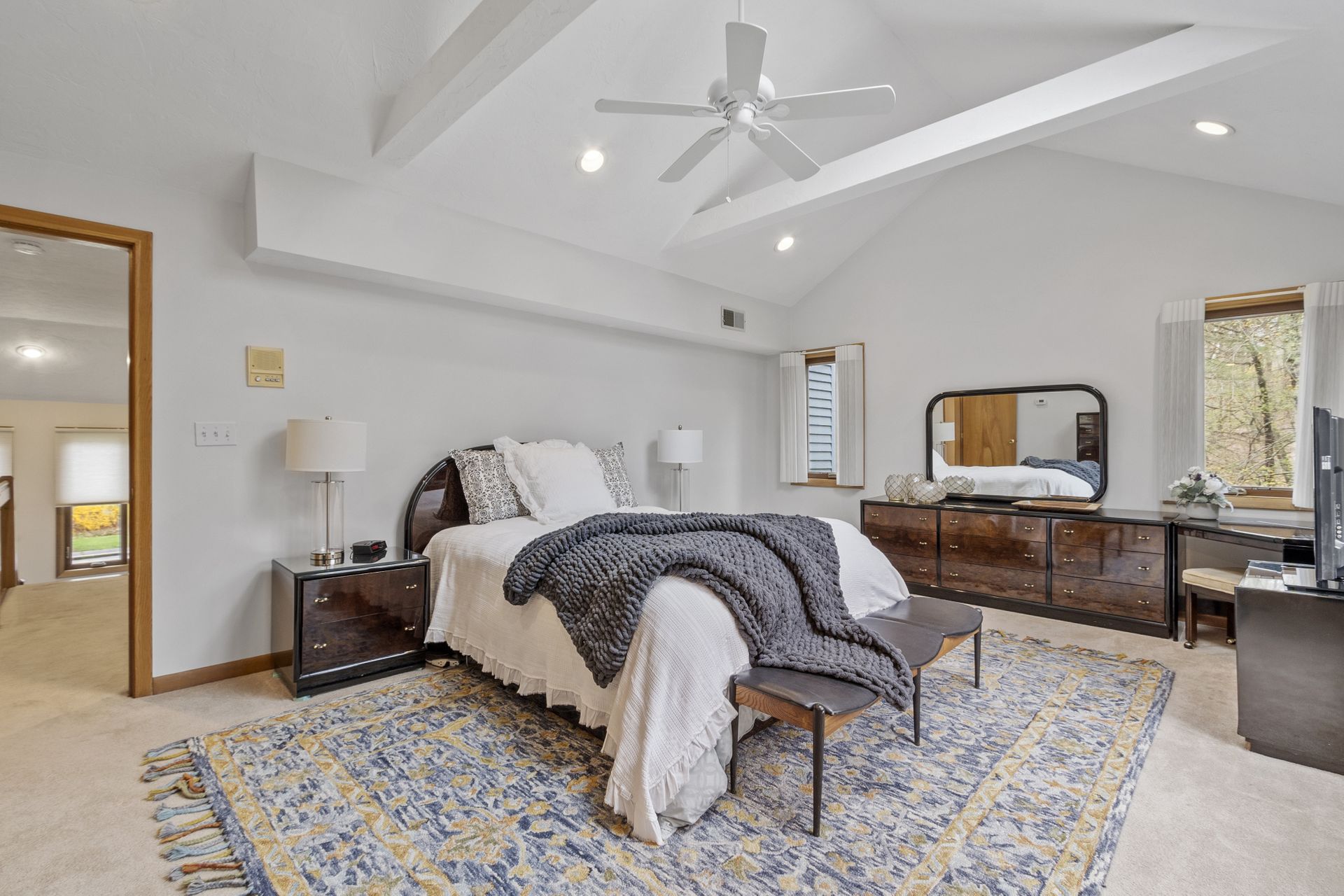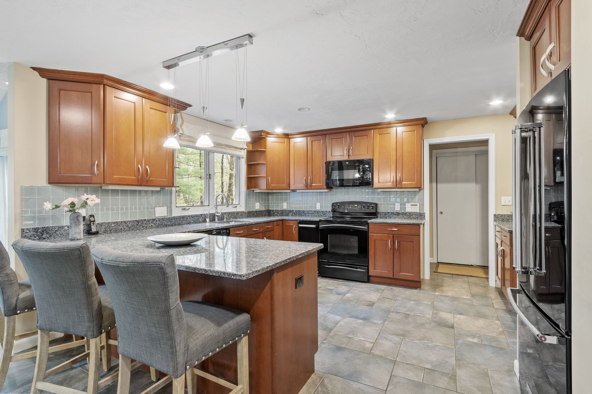 Experience elegance in this stunning Contemporary, boasting luxurious living spaces, three-car garages, and a picturesque acre of manicured grounds. Nestled in a coveted cul-de-sac neighborhood, this home exudes a sense of spaciousness, airiness, and modernity. Its remodeled kitchen, with a sun-drenched breakfast room, overlooks the backyard and an inviting wrap-around deck, perfect for outside leisure. The captivating stone fireplace in the Family Room is complemented by built-ins. A vaulted ceiling graces the formal Living Room, surrounded by expansive windows. The first floor hosts a dining room for entertaining, along with a skylit study adaptable to a cozy den or home office. The seamless layout extends to the upper level, where you'll find a sizeable primary bedroom and three generous bedrooms, each offering high ceilings and ample closet space. The expansive finished basement/game room provides additional space for recreation and play, completing this suburban oasis. Love Where You Live!