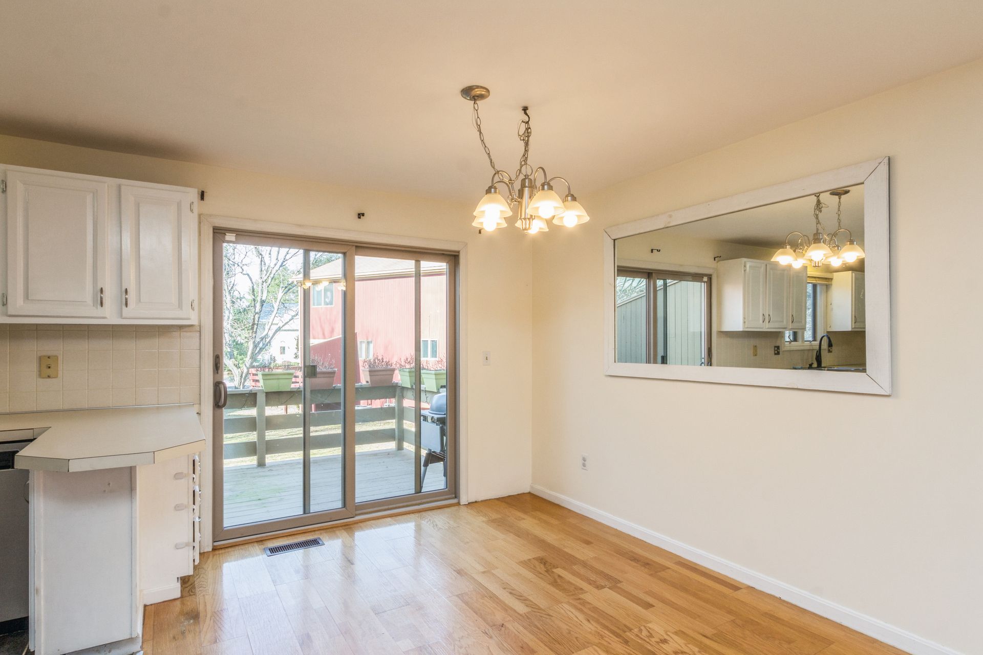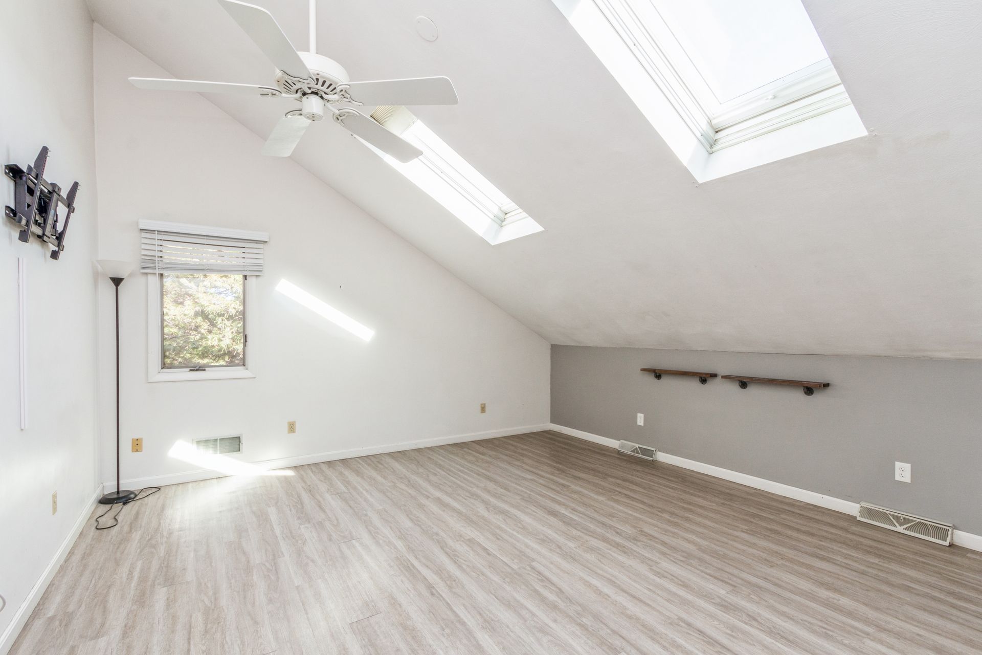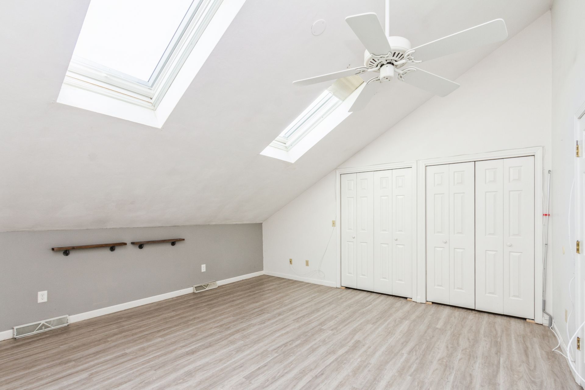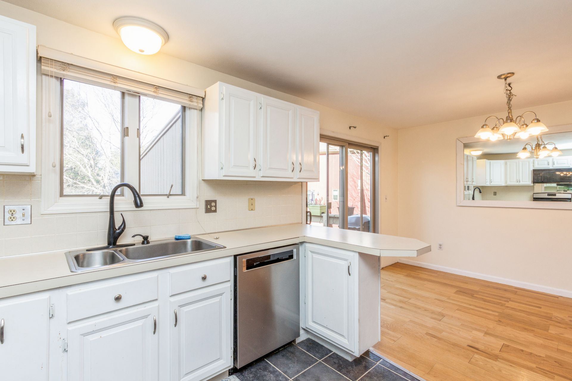 You'll feel at home the moment you step into the foyer and see the natural light, high ceiling, and open layout this modern condo affords. This 2 bed 1.5 bath unit with 1-car attached garage spans over 3 levels which makes it feel quite spacious. Rest assured, there will be low heating costs with natural gas by forced air and many recent windows throughout, plus a recent roof. And you'll stay cool during the summer w/Central AC. Wood laminate floors throughout; stone floors in the kitchen and baths. The kitchen features a breakfast bar, tiled back splash, gas stove and sparkly clean appliances. Sunny private back deck to grill or entertain. The 1st fl 1/2 bath is beautifully remodeled with granite counter and stone floor. The main bedroom is a retreat with cathedral ceilings and ample closet space. The workout rm and laundry in the basement are easily accessible from the garage under, which also has double doors into the workout rm for ease of moving items in & endless workshop possibilities. Make an appointment to view today!