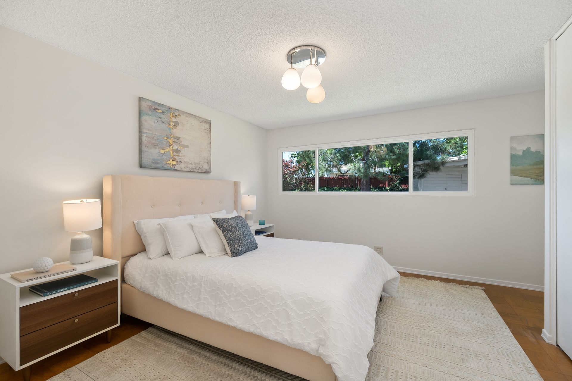 Picture a vibrant suburban sanctuary nestled in a charming sun-soaked cul-de-sac, circa 1962…a time that was Camelot. This original Los Verdes single-story home on an oversized flat lot is a testament to an era defined by hope, optimism and reaching for the stars. Stylish parquet wood floors, once the height of sophistication, greet you from the entry into the light-filled living and dining room, beckoning you to take a seat in your Eames chair with a highball by a cool mid-mod fireplace. Upgraded dual-paned sliding doors open up to a private backyard oasis, offering the promise of sunny California days. With ample room for a pool, there is also a freestanding structure, formerly a garden shed, which lends itself to many fun ideas, limited only by your imagination. Tiki Hut, anyone? The kitchen has a proportionately spacious eat-in area and loads of storage space, all adjacent to a large laundry utility room with direct access to a two-car garage. An ideal home for whatever stage of life one is in, from first-time buyer to downsizer and everyone in between.