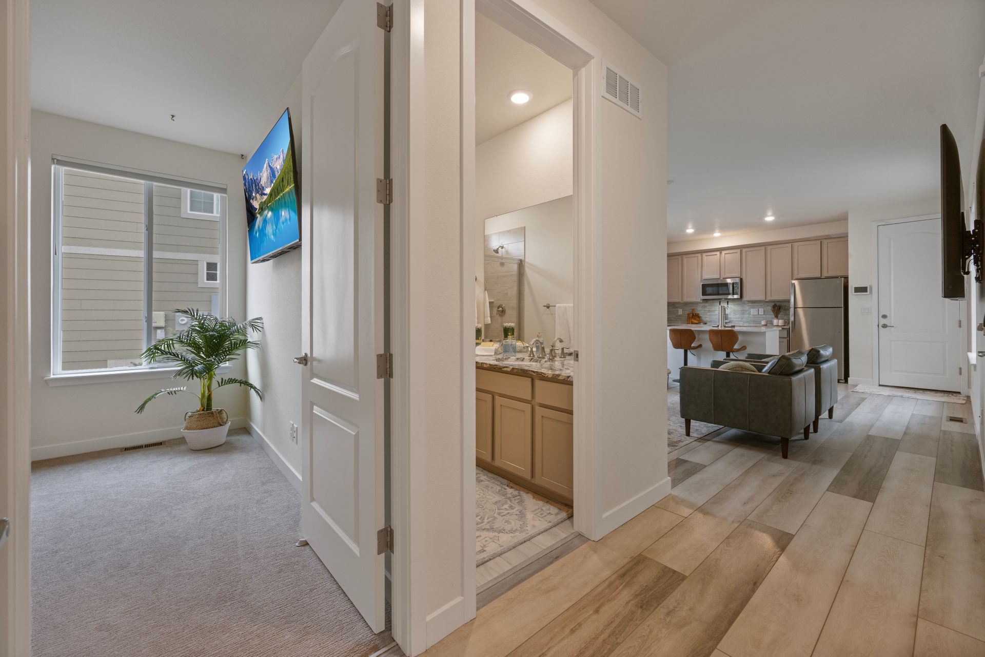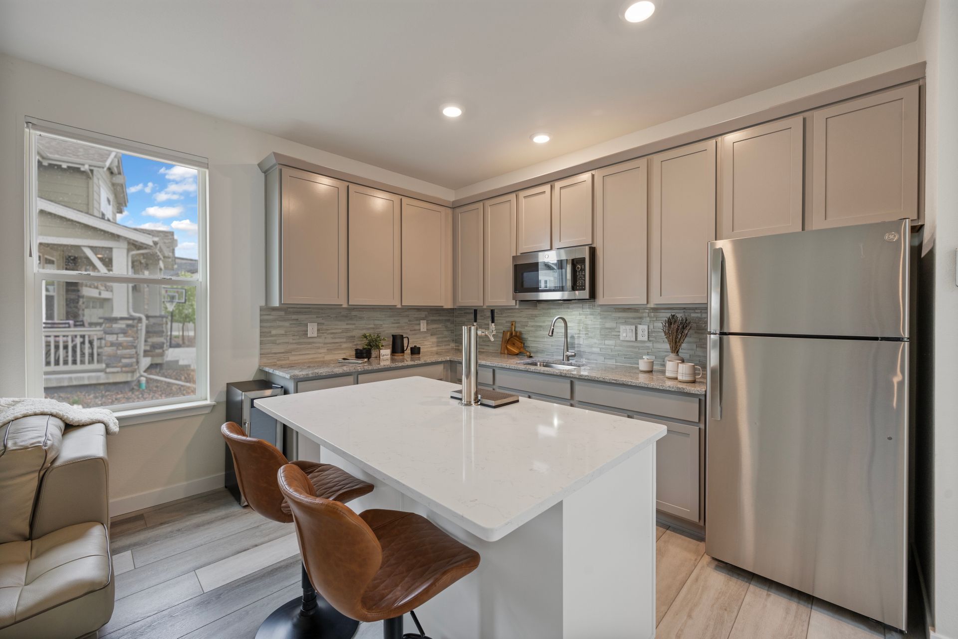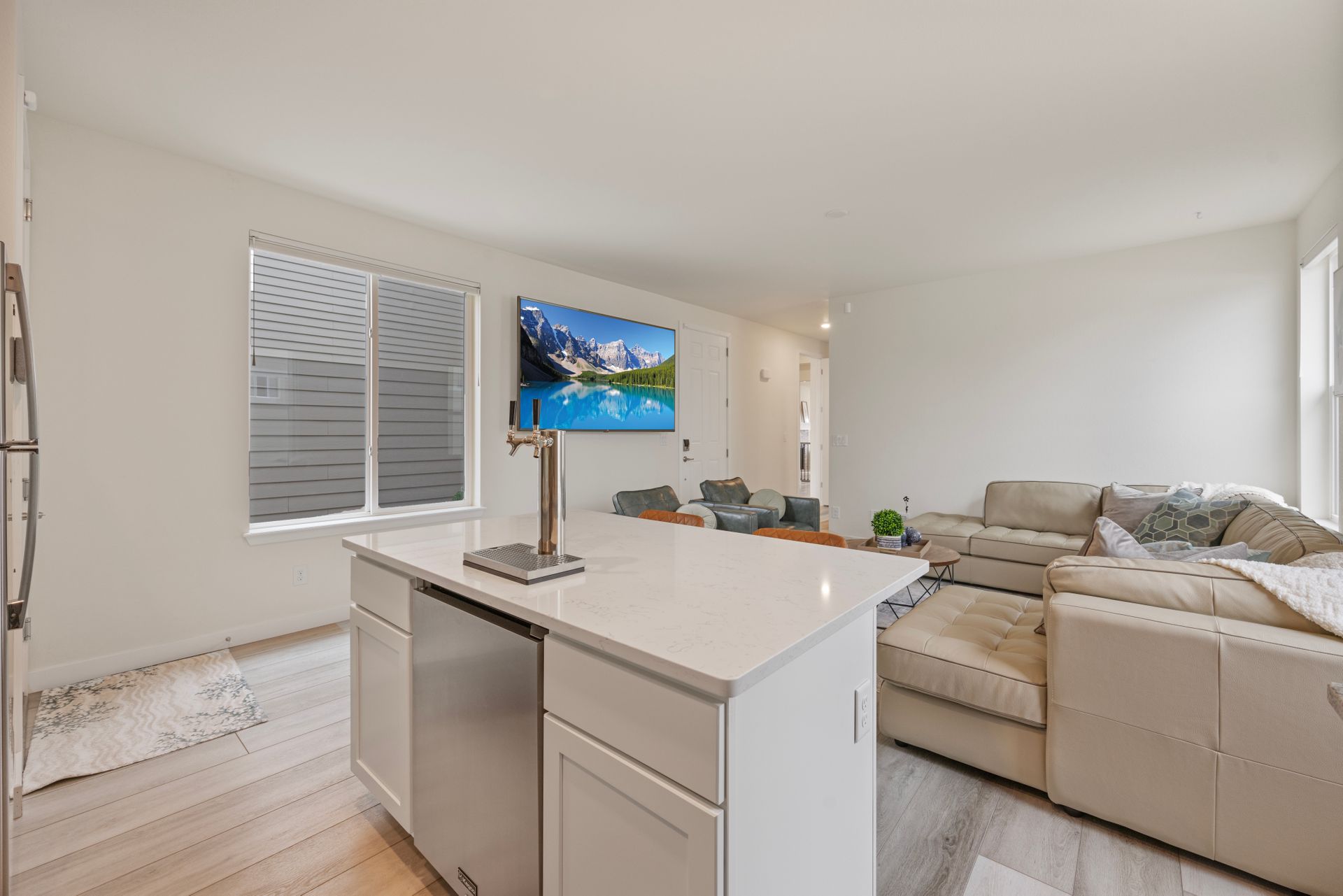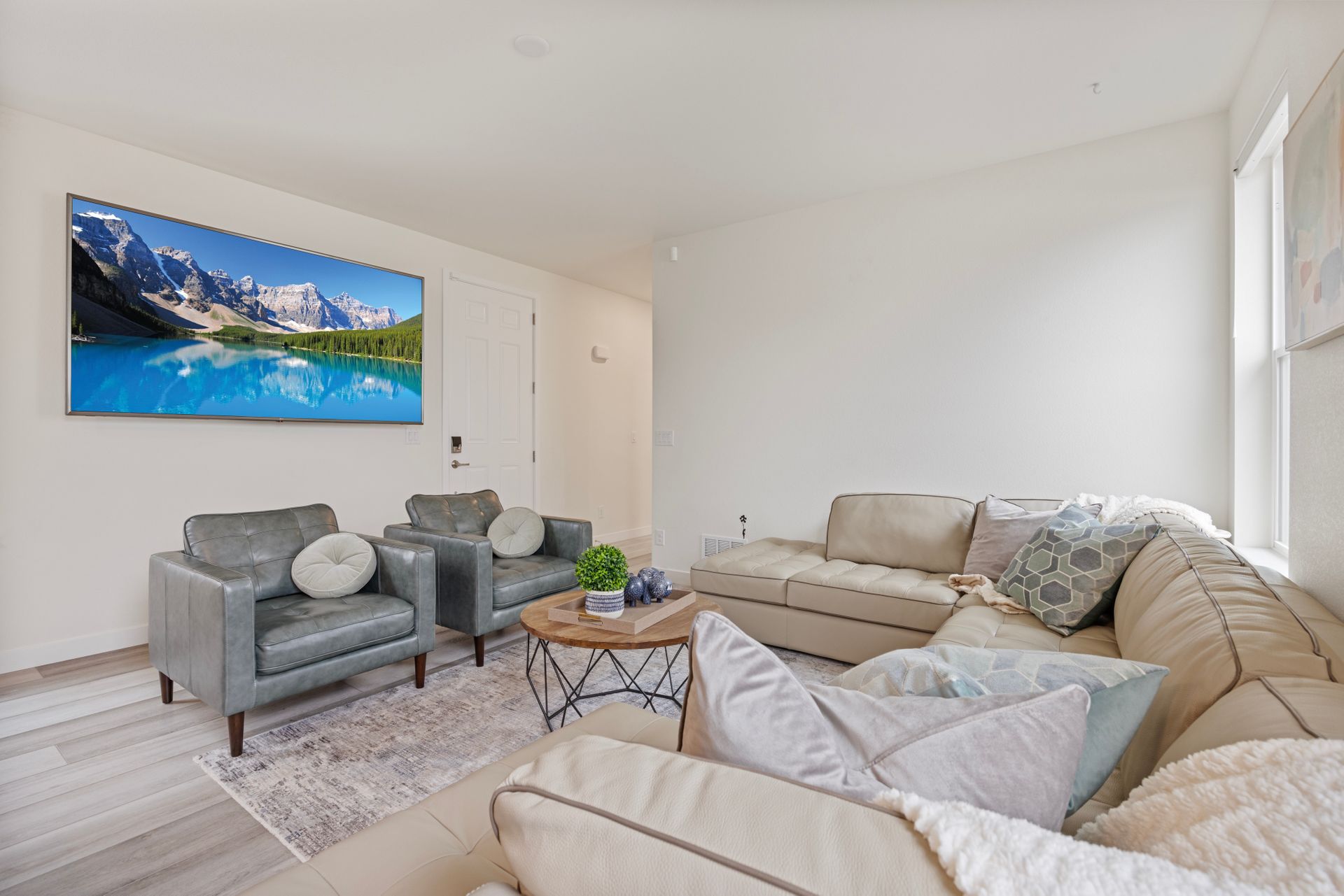 Just steps away, the warm, inviting living spaces effortlessly blend style and functionality, with high ceilings and large windows that let the natural light pour in.