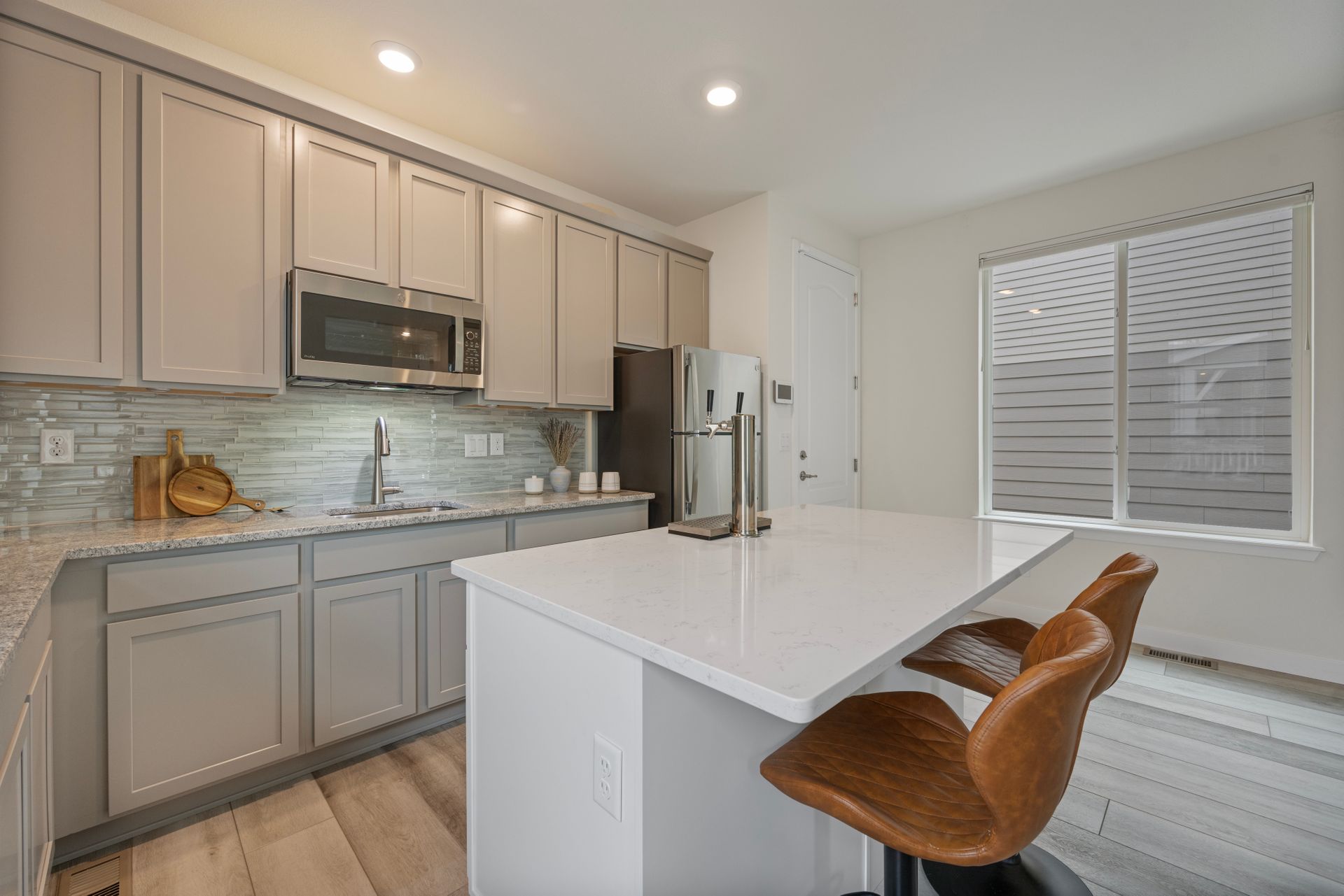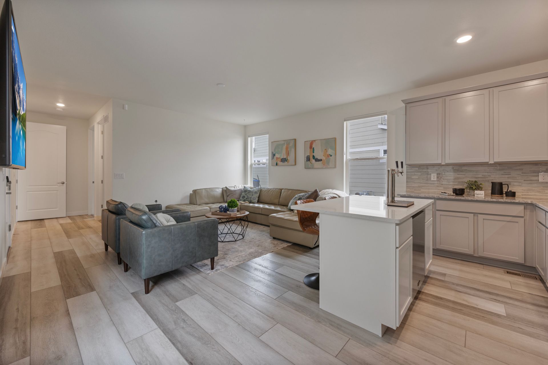 From the moment you step inside, you’ll be greeted by an open-concept layout designed for both comfort and connection. The heart of the home is the expansive kitchen—a true entertainer’s dream—boasting a central island, gleaming stainless steel appliances, and a gas cooktop.