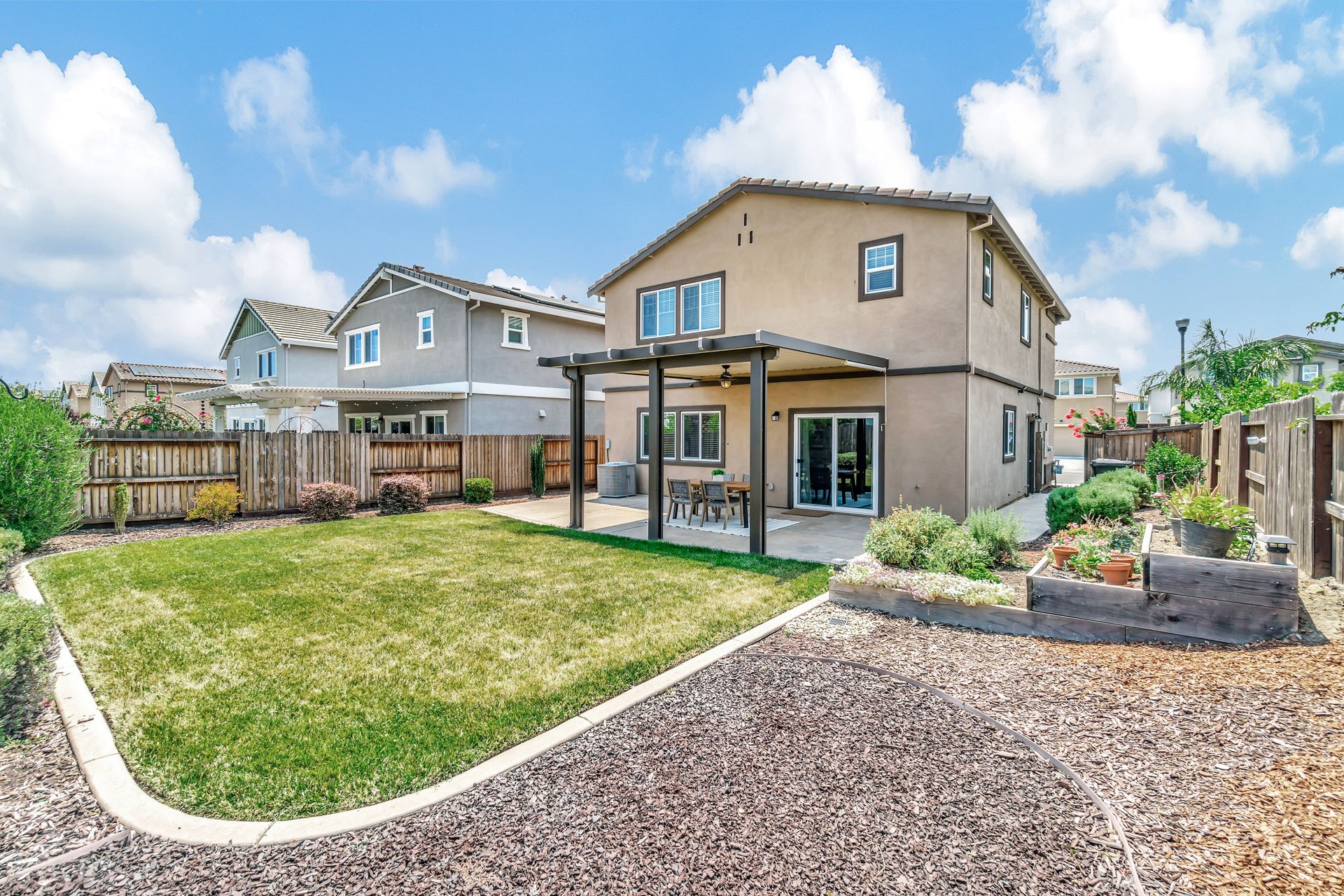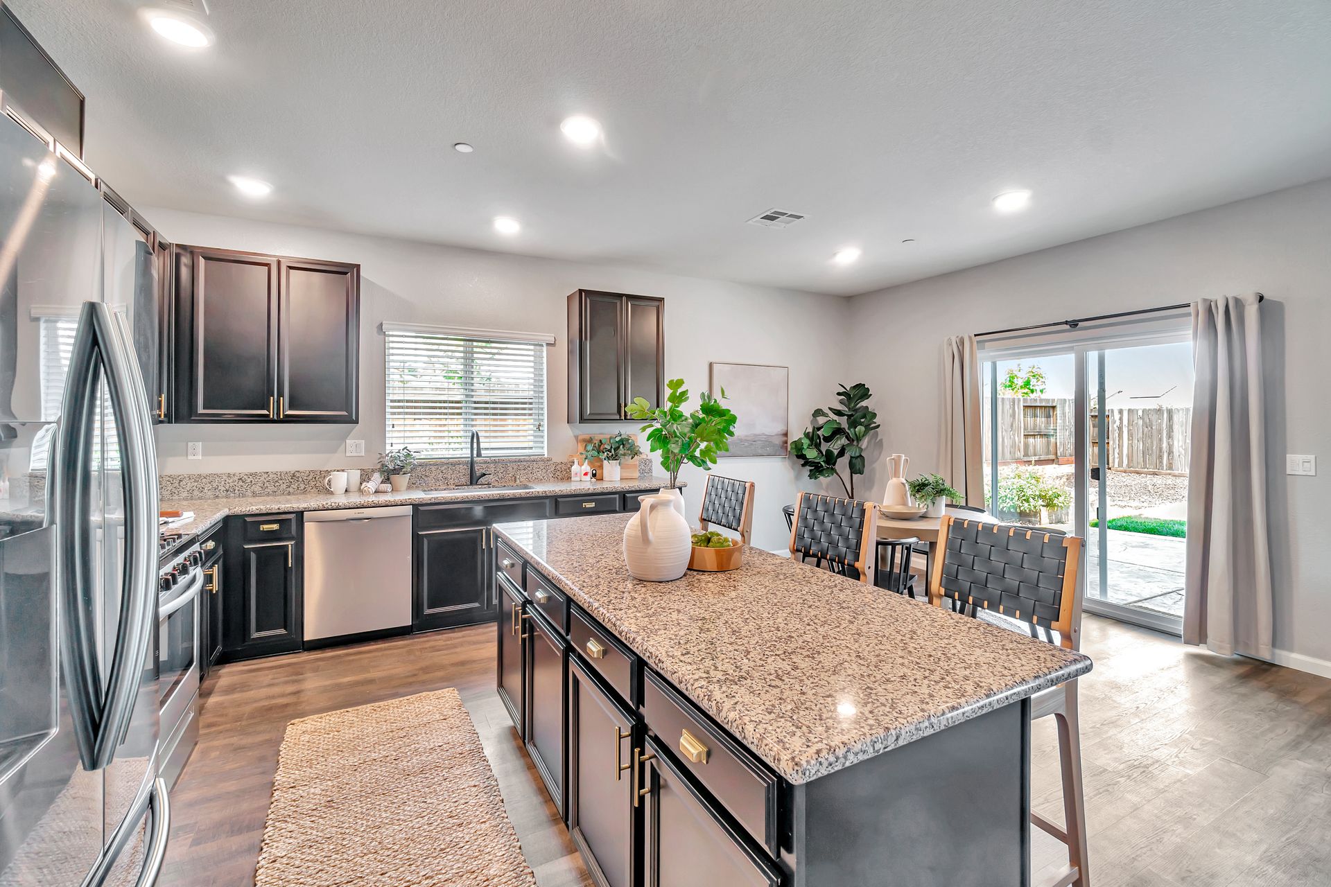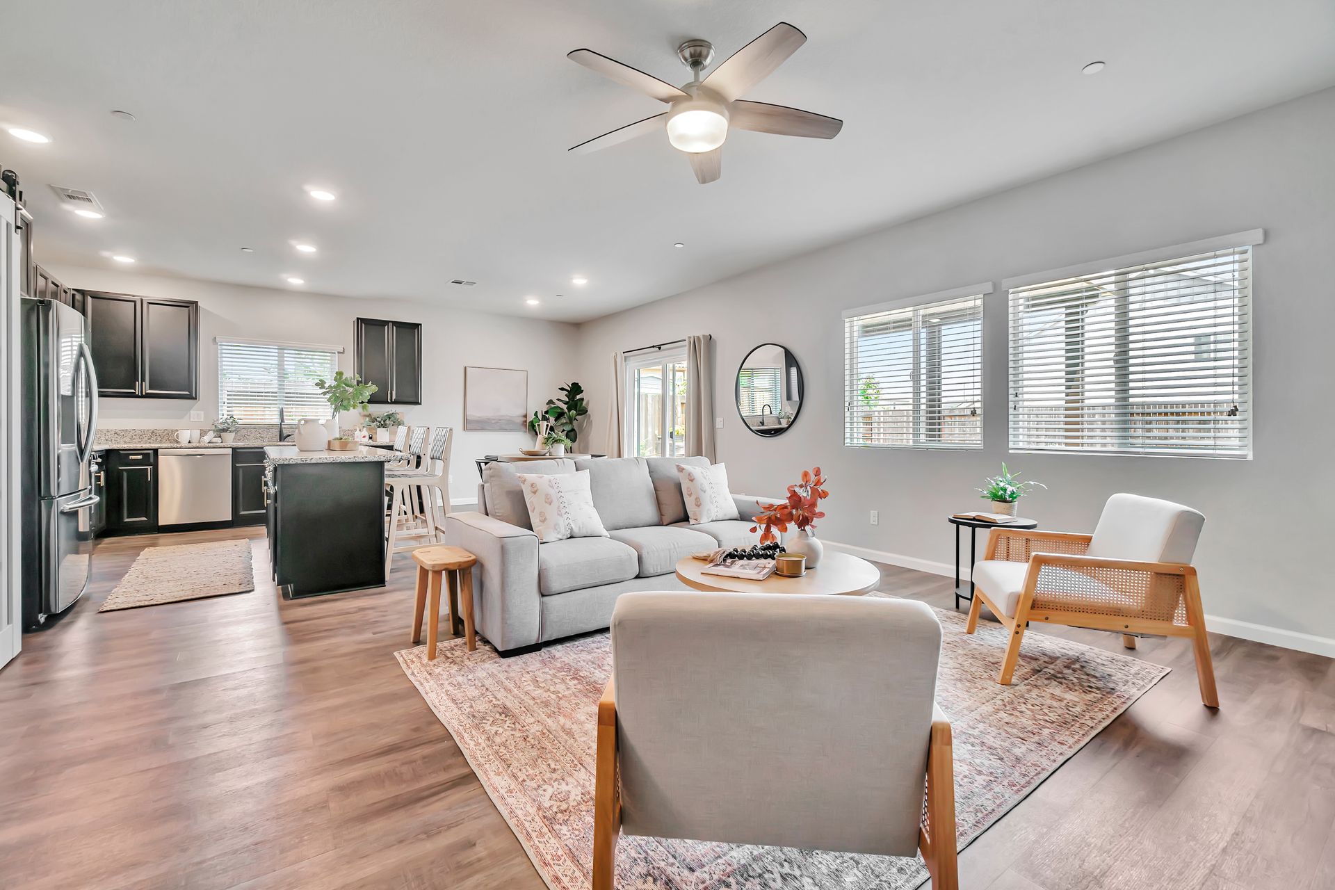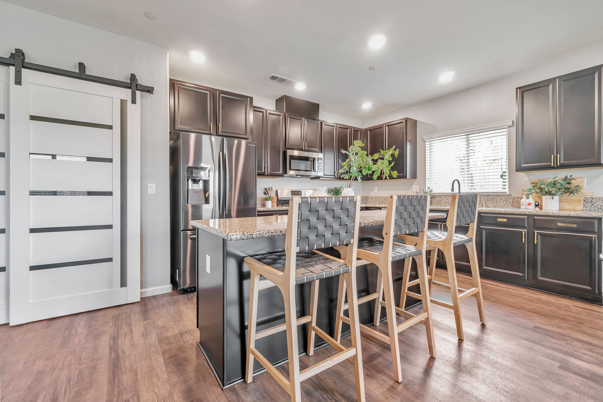 This is the one you've been waiting for! A+ curb appeal w/stucco exterior featuring decorative corbels, terra cotta style tile roof & an extra wide driveway for side-by-side parking. Built in 2018, this home boasts almost 2000 SqFt & includes 3 bedrooms plus a loft area upstairs that's ideal for an office or exercise room. Inside you'll find an open floor plan with luxury vinyl plank flooring that's loaded with amenities. The chef's kitchen offers rich ebony cabinetry, 5 burner gas cooktop, Samsung black stainless fridge, granite slab counter w/extra large Kohler sink, recessed LEDs, pantry with stunning barn doors, SS appliances & a a huge island w/breakfast bar. You'll also enjoy high ceilings, window blinds throughout, a large coat closet at the entry, raised panel doors and a convenient laundry room on the 2nd floor with built in cabinets & a new GE washer & dryer set. The backyard is fully landscaped & includes lush grass, raised garden beds & a beautiful stamped concrete covered patio w/ceiling fan that's ideal for year round outdoor living. There's also a 9 panel 3kW solar system that's owned & included plus an EV car charger & tankless water heater in the 2 car garage! And this great location is conveniently close to shopping, bike trails, parks & top rated RCSD schools!