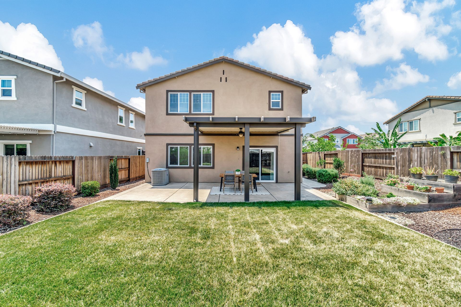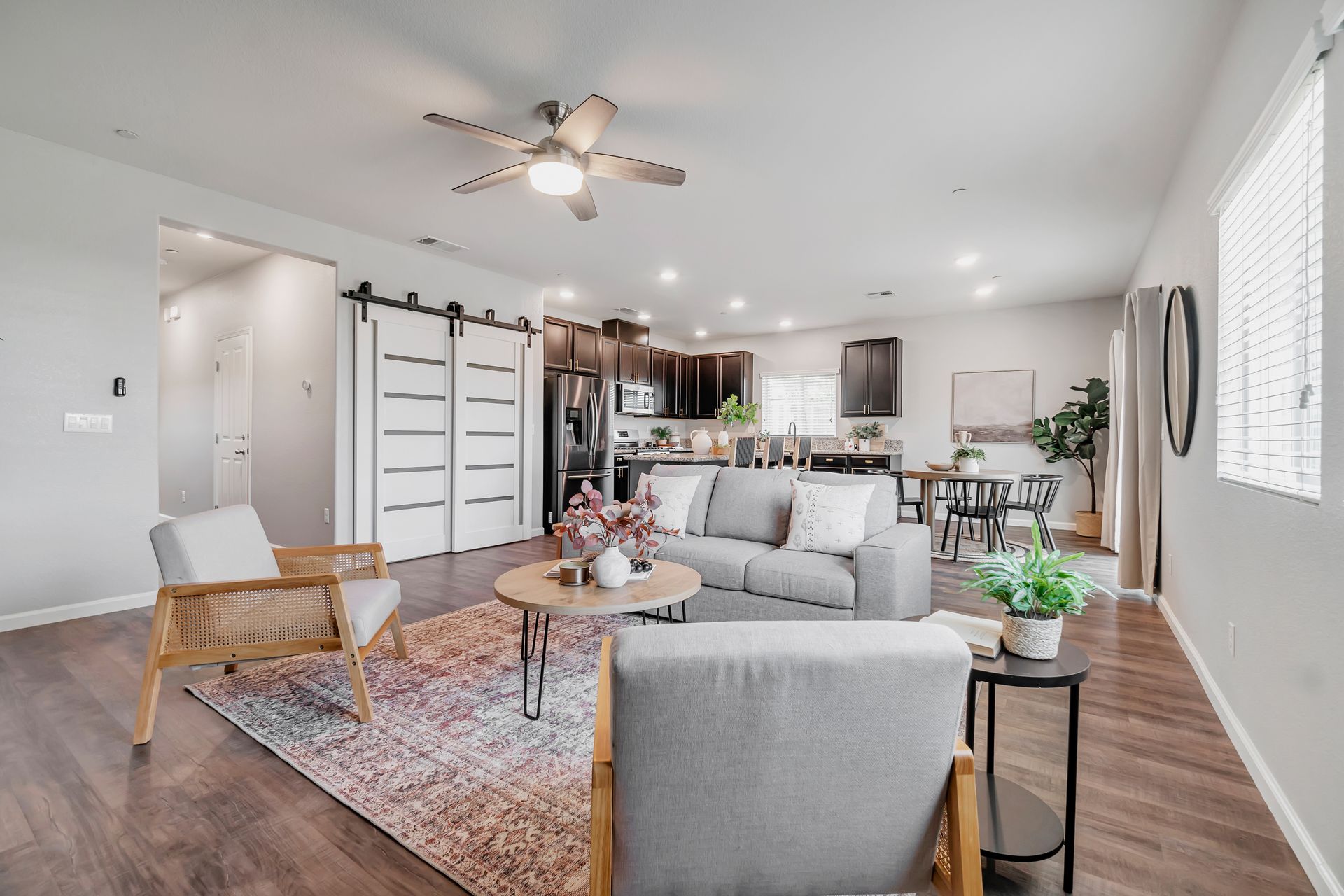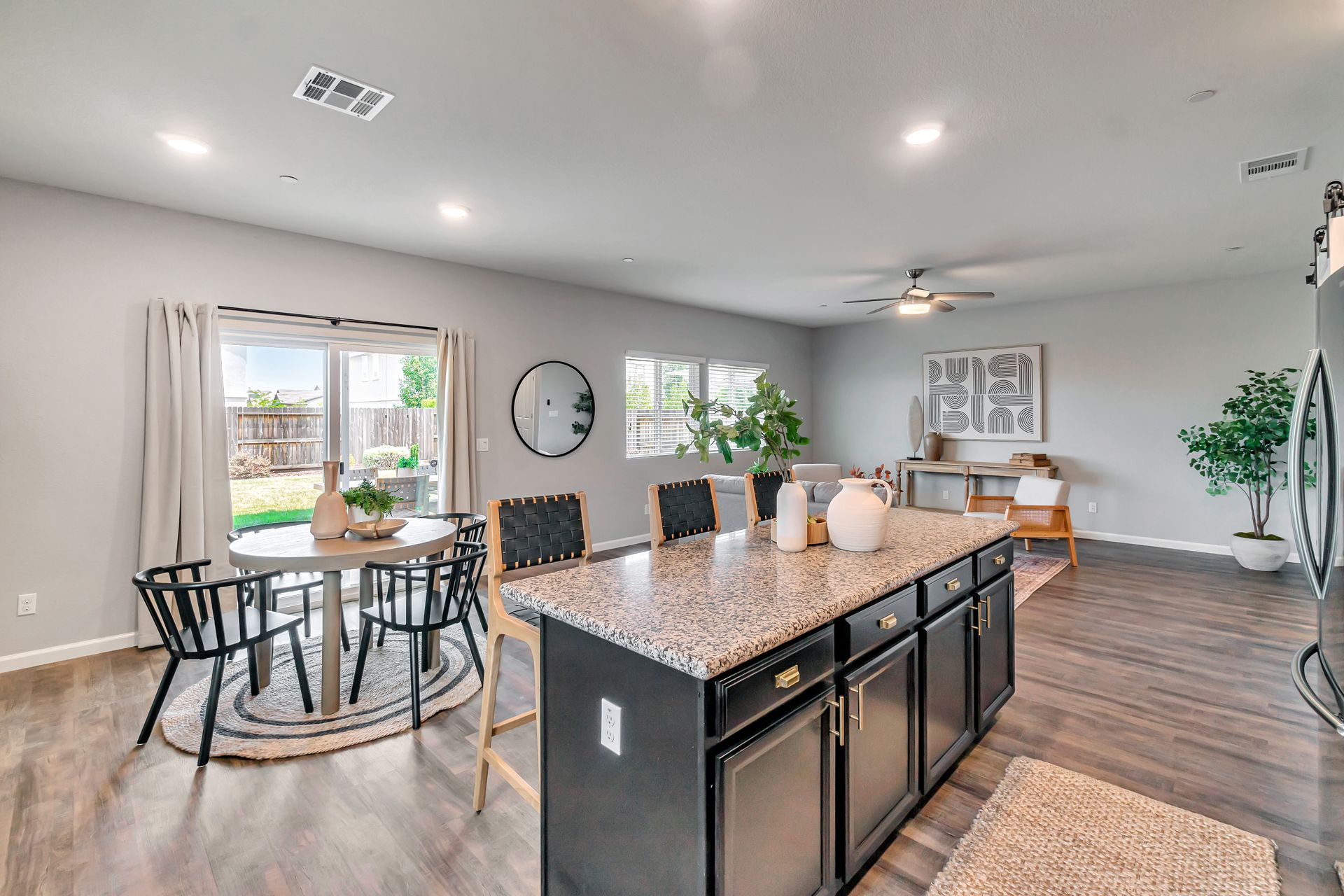This is the one you've been waiting for! A+ curb appeal w/stucco exterior featuring decorative corbels, terra cotta style tile roof & an extra wide driveway for side-by-side parking. Built in 2018, this home boasts almost 2000 SqFt & includes 3 bedrooms plus a loft area upstairs that's ideal for an office or exercise room. Inside you'll find an open floor plan with luxury vinyl plank flooring that's loaded with amenities. The chef's kitchen offers rich ebony cabinetry, 5 burner gas cooktop, Samsung black stainless fridge, granite slab counter w/extra large Kohler sink, recessed LEDs, pantry with stunning barn doors, SS appliances & a a huge island w/breakfast bar. You'll also enjoy high ceilings, window blinds throughout, a large coat closet at the entry, raised panel doors and a convenient laundry room on the 2nd floor with built in cabinets & a new GE washer & dryer set. The backyard is fully landscaped & includes lush grass, raised garden beds & a beautiful stamped concrete covered patio w/ceiling fan that's ideal for year round outdoor living. There's also a 9 panel 3kW solar system that's owned & included plus an EV car charger & tankless water heater in the 2 car garage! And this great location is conveniently close to shopping, bike trails, parks & top rated RCSD schools!