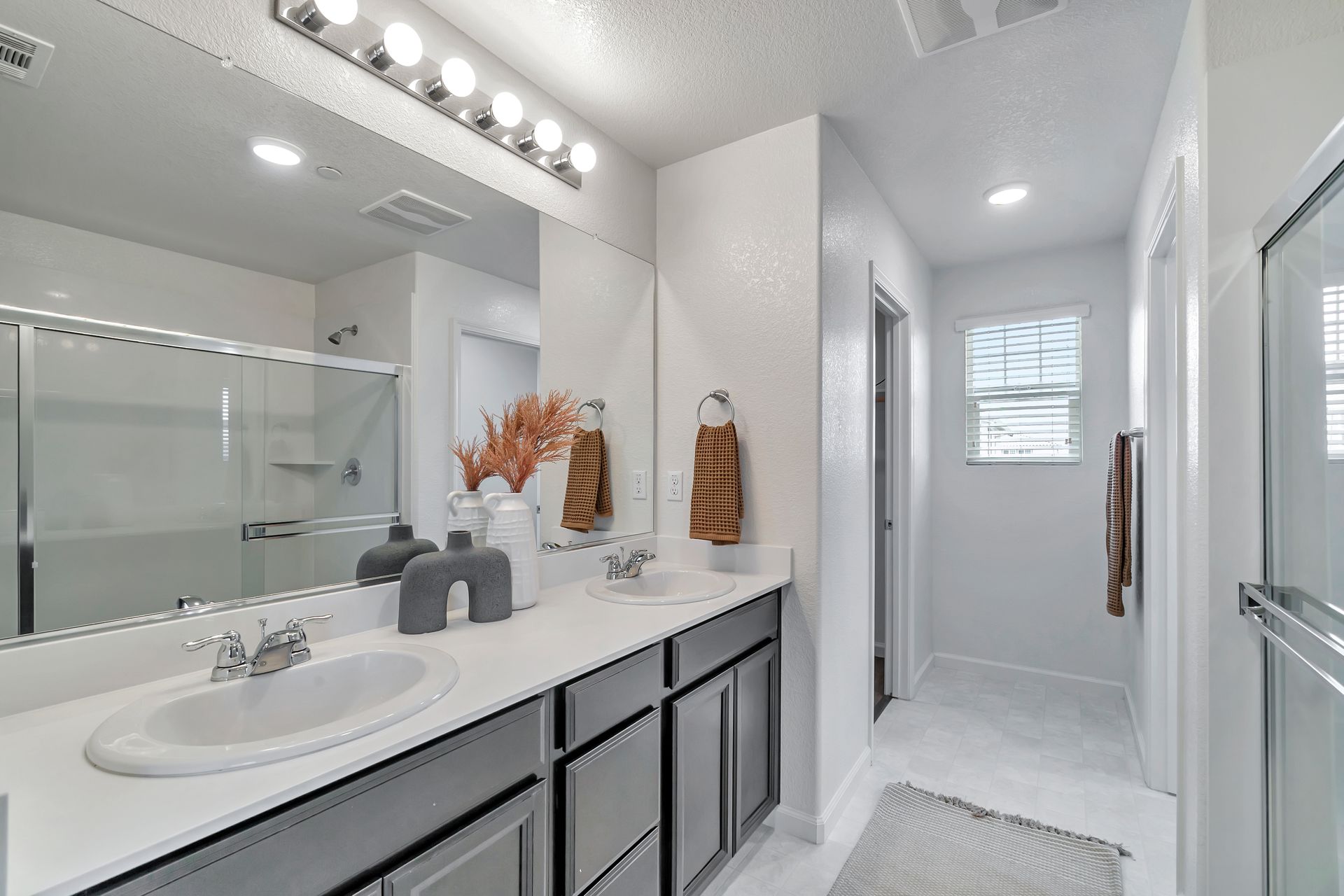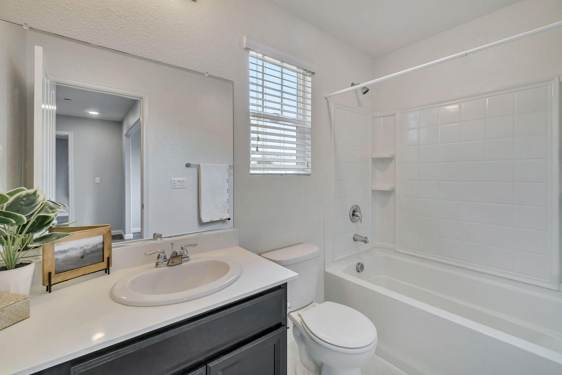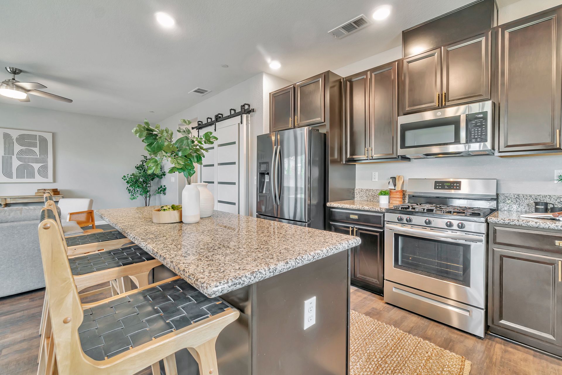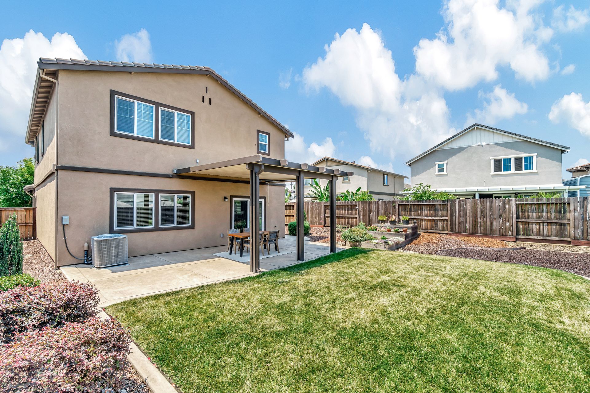 This is the one you've been waiting for! A+ curb appeal w/stucco exterior featuring decorative corbels, terra cotta style tile roof & an extra wide driveway for side-by-side parking. Built in 2018, this home boasts almost 2000 SqFt & includes 3 bedrooms plus a loft area upstairs that's ideal for an office or exercise room. Inside you'll find an open floor plan with luxury vinyl plank flooring that's loaded with amenities. The chef's kitchen offers rich ebony cabinetry, 5 burner gas cooktop, Samsung black stainless fridge, granite slab counter w/extra large Kohler sink, recessed LEDs, pantry with stunning barn doors, SS appliances & a a huge island w/breakfast bar. You'll also enjoy high ceilings, window blinds throughout, a large coat closet at the entry, raised panel doors and a convenient laundry room on the 2nd floor with built in cabinets & a new GE washer & dryer set. The backyard is fully landscaped & includes lush grass, raised garden beds & a beautiful stamped concrete covered patio w/ceiling fan that's ideal for year round outdoor living. There's also a 9 panel 3kW solar system that's owned & included plus an EV car charger & tankless water heater in the 2 car garage! And this great location is conveniently close to shopping, bike trails, parks & top rated RCSD schools!