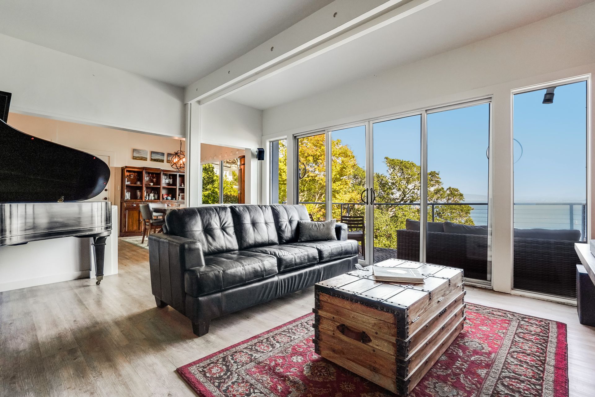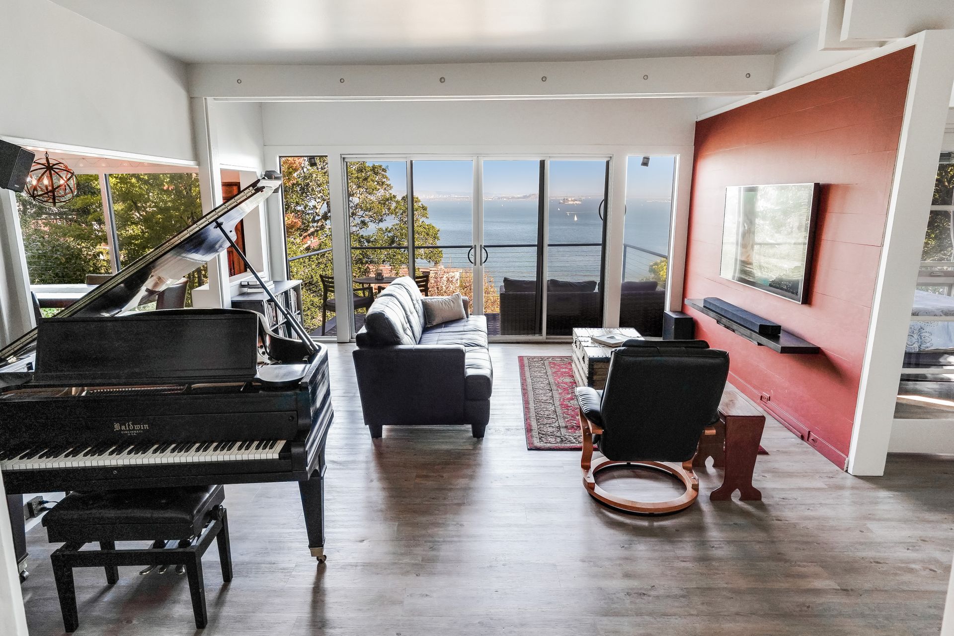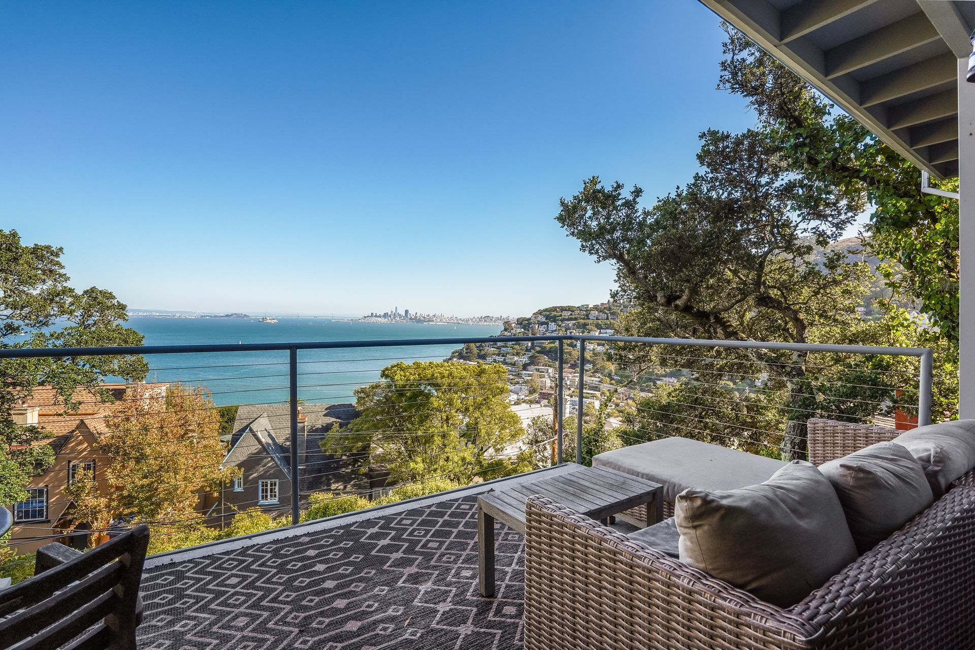 This fun, chic and stylish apartment is about 1,560 square feet and occupies the full middle floor of a contemporary four-unit building. Located in the “Banana Belt”, this area is known for the best weather. It is surrounded by multi-million-dollar homes! Remodeled, the open floor plan offers light-filled rooms to enjoy the view. Features include three bedrooms, two full baths, a fireplace and a walk-in closet. The remodeled and spacious kitchen has stone countertop and updated appliances. The baths were beautifully remodeled with contemporary clean finishes of stone, new cabinets and fixtures. Enjoy beautiful, simulated wood flooring throughout and the large living room with cool barn doors! A spacious deck overlooks the spectacular view and a private patio is accessed from the back bedroom. The laundry room with high end machines has a direct access from this unit. The garage boasts an electric car charger and an additional storage cabinet. Explore the mature landscaping with majestic oak trees, camellias, wisteria and lots of beautiful flowers. Experience outdoor activities within minutes of your new home such as hiking in the Headlands, biking, kayaking and boating! You’ll be close to Sausalito’s waterfront, restaurants, the Yacht Club and the Ferry as well as have a short commute to San Francisco. No smoking, no pets please. Security deposit - $10,000.