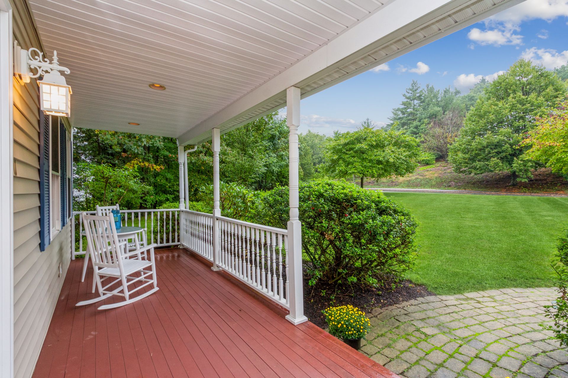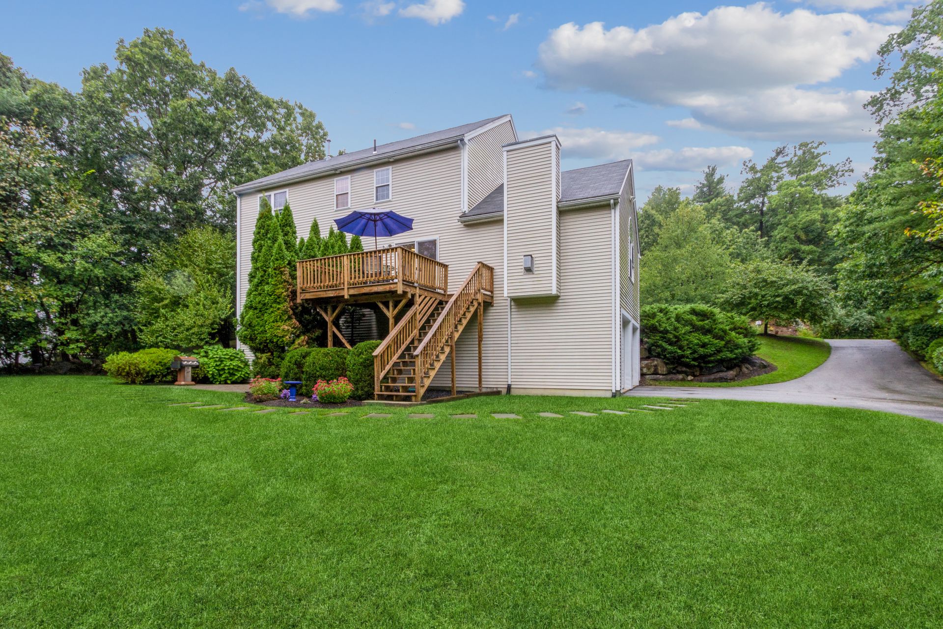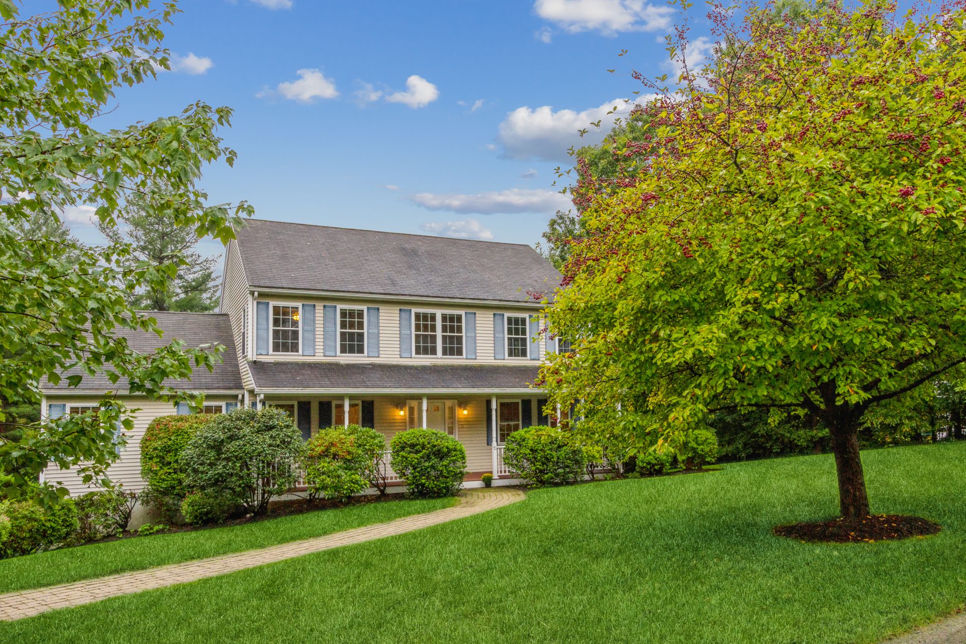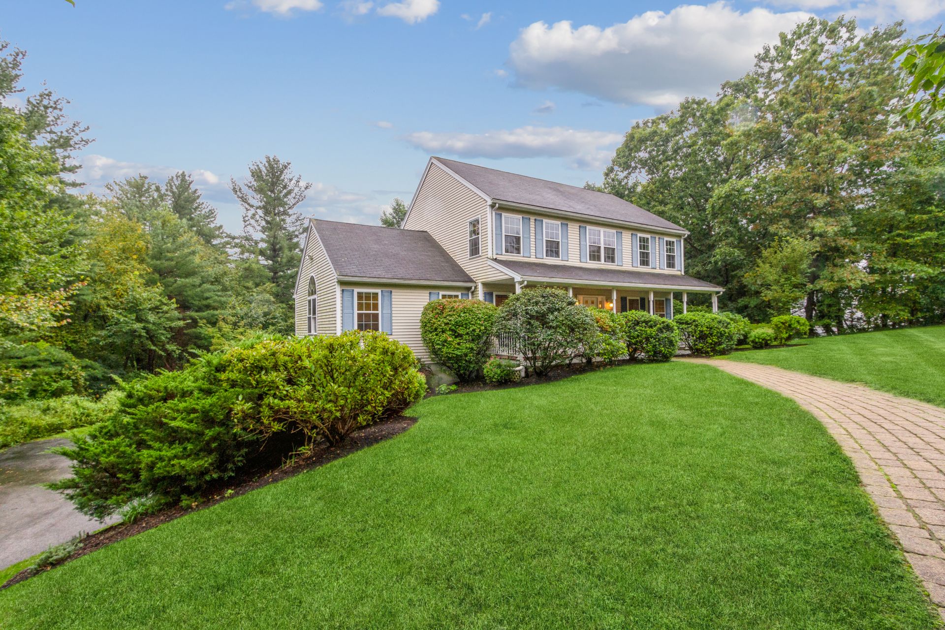 A beautiful acre lot with mature landscaping greets you when you arrive at this inviting Colonial in a desirable Hudson neighborhood! The welcoming farmer’s porch invites you in to a bright and open floor plan. Home office with French doors is directly off the foyer! Spacious kitchen with KraftMade white cabinetry, breakfast bar, dining area and pantry is open to a light filled and substantial great room with vaulted ceilings and gas fireplace. A formal dining room with hardwood floors opens to the kitchen as well. Primary bedroom suite with walk in closet and full bath. The outdoors are ideal for relaxing and entertaining with over 700 square feet of sitting areas: a deck providing an expansive view of large level back yard, covered porch and patio. The full walkout lower level with sliders out to patio and yard can be used for future expansion of approximately 700 square feet. A wonderful location, quiet yet close to Hudson's vibrant downtown, schools, shopping, rail trail, fast access to major routes!