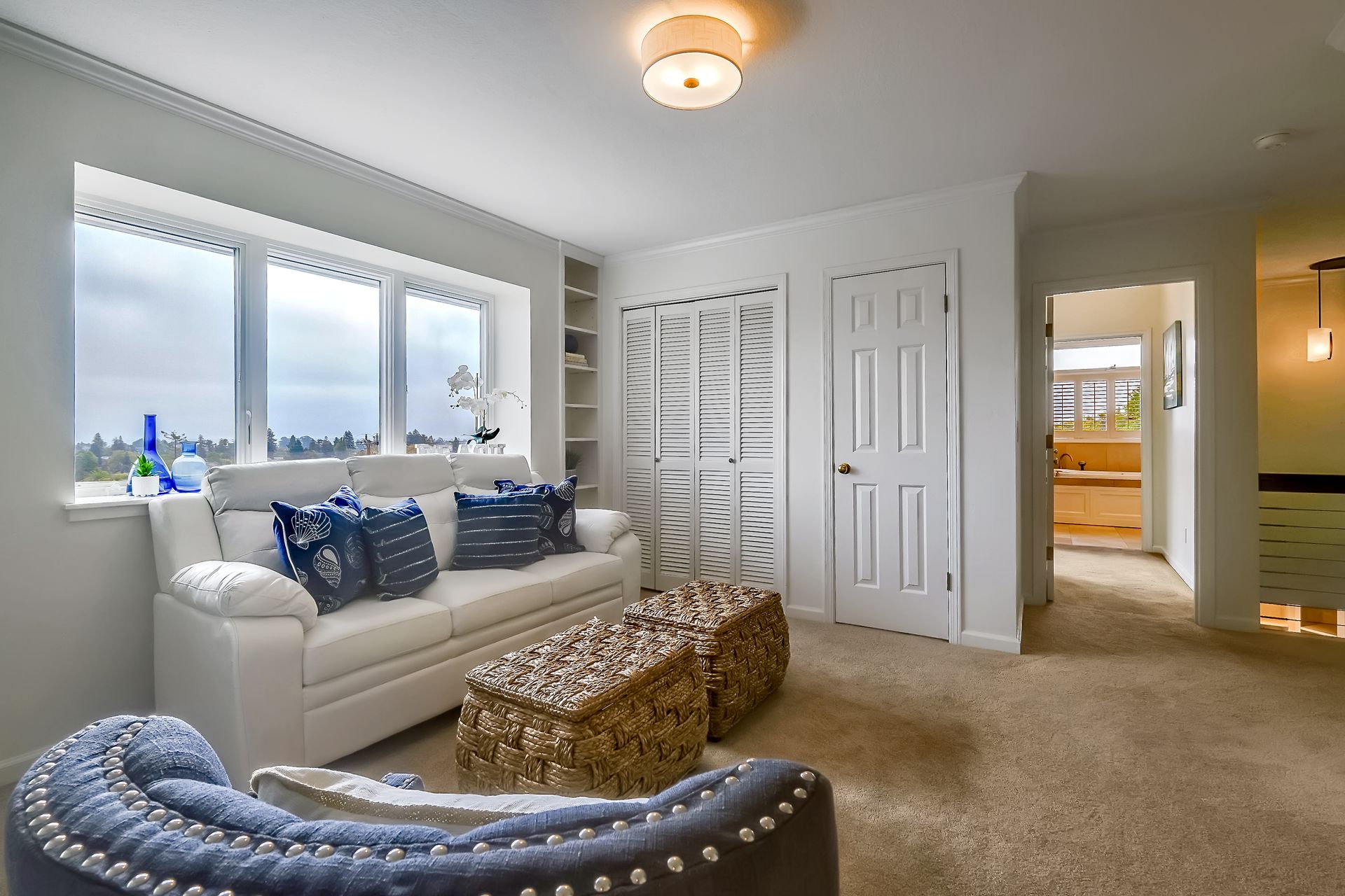The other three rooms share a bright conveniently located hall bathroom with a shower over tub and dual sinks.