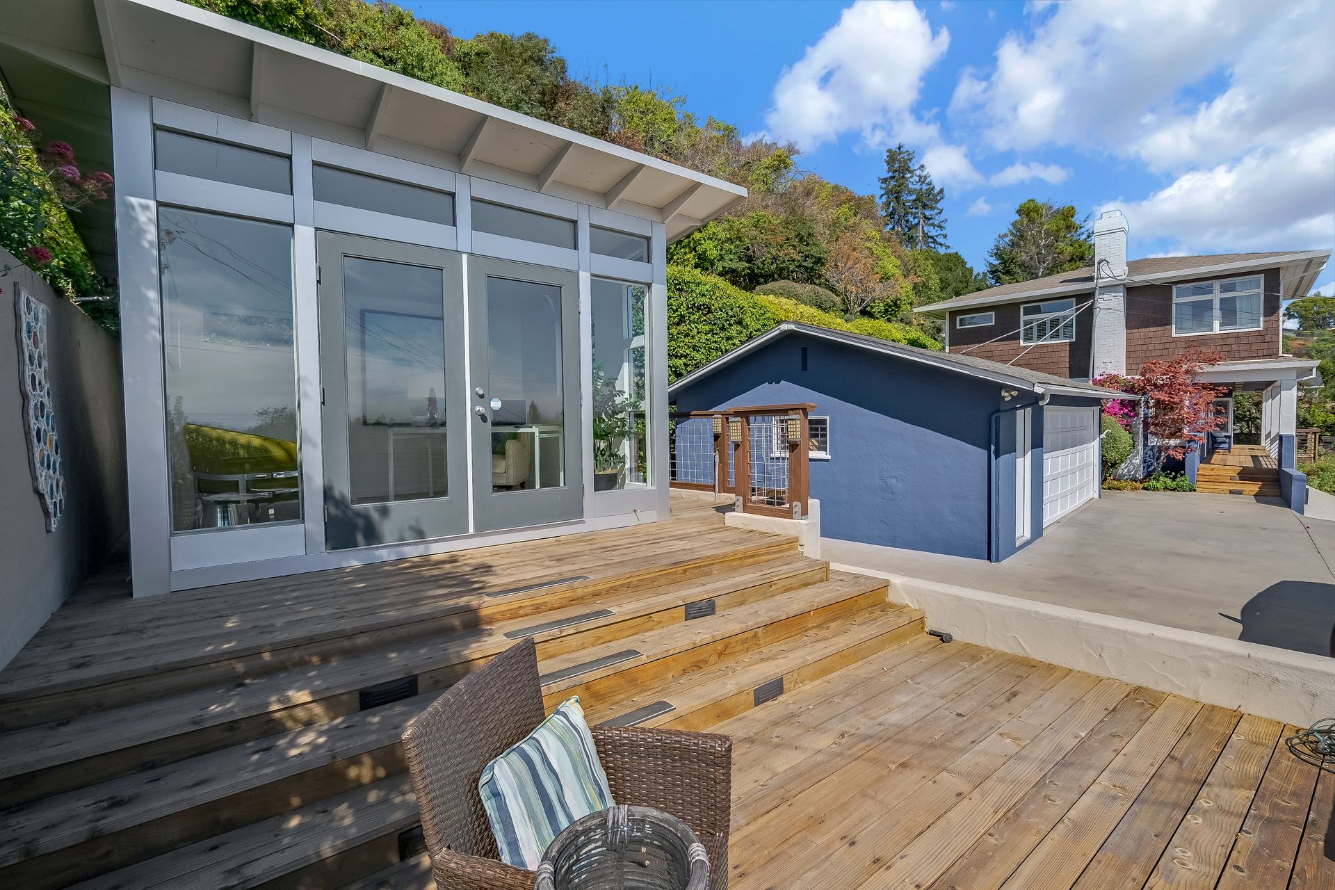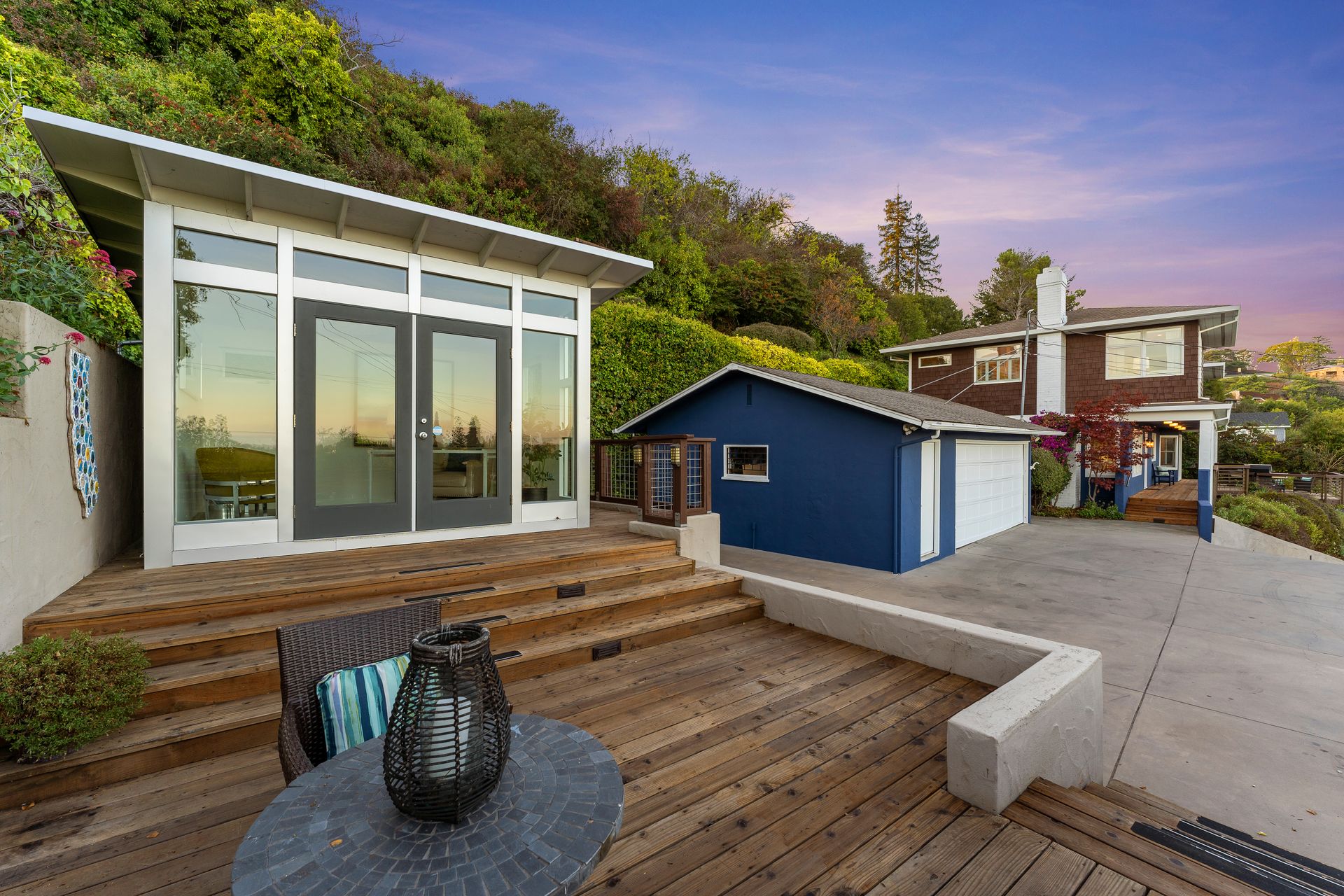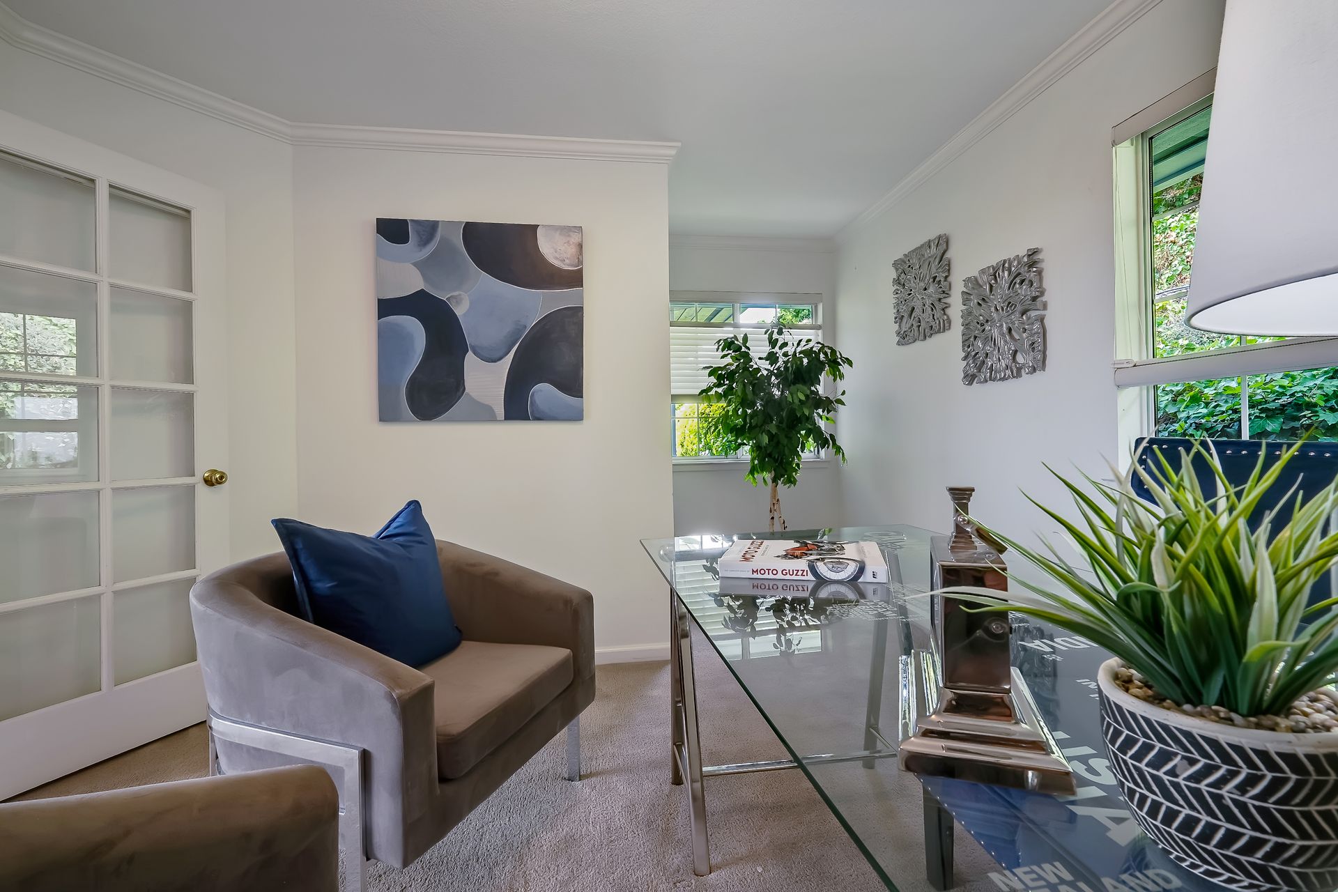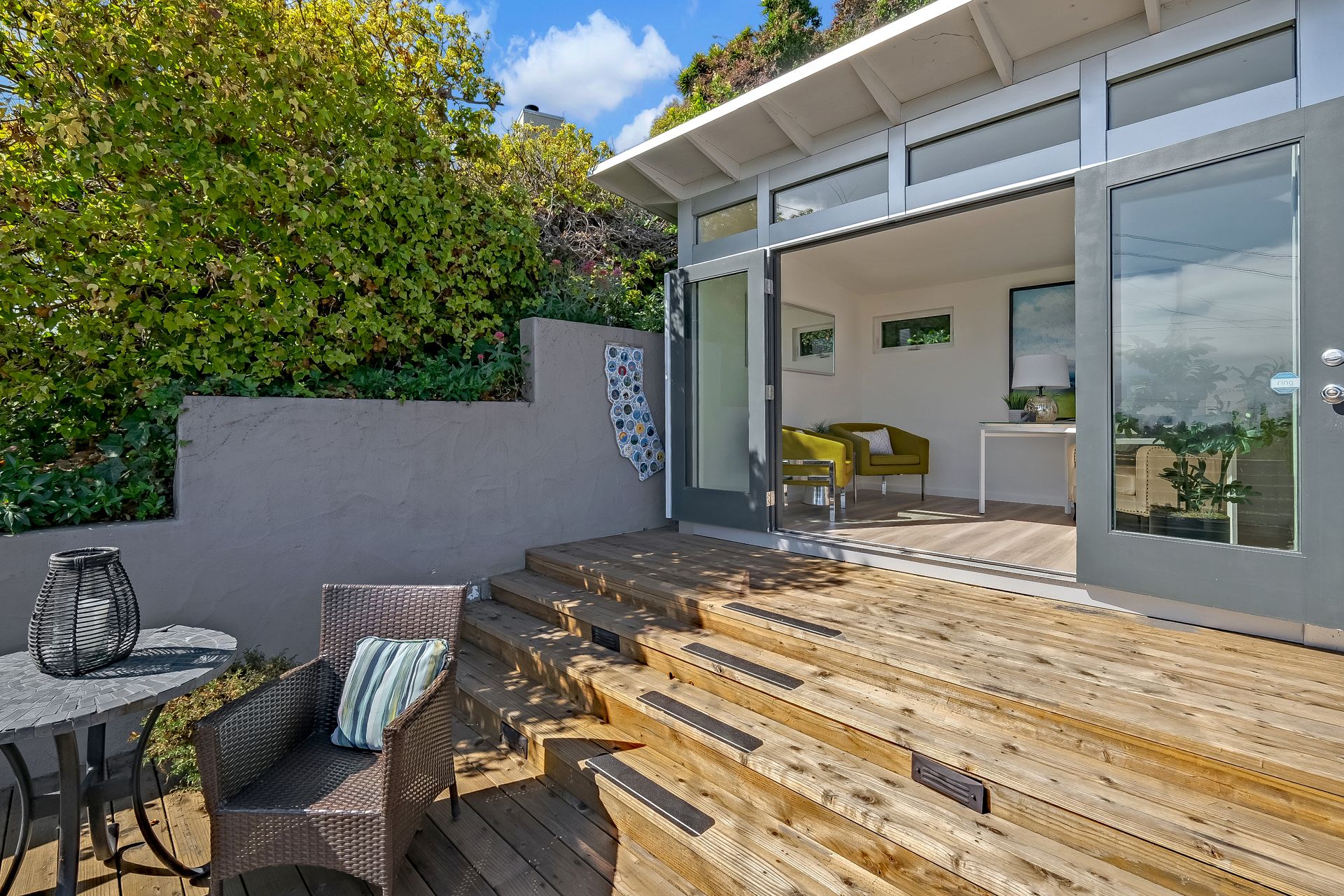 The private generous side yard with hot tub is ready to relax and enjoy. In addition, there is a separate structure which has been freshly painted, new luxury vinyl flooring which would be ideal as a home office or an artist retreat. The separate two-car garage has an electric car charger plus a large storage closet ideal for a workbench.