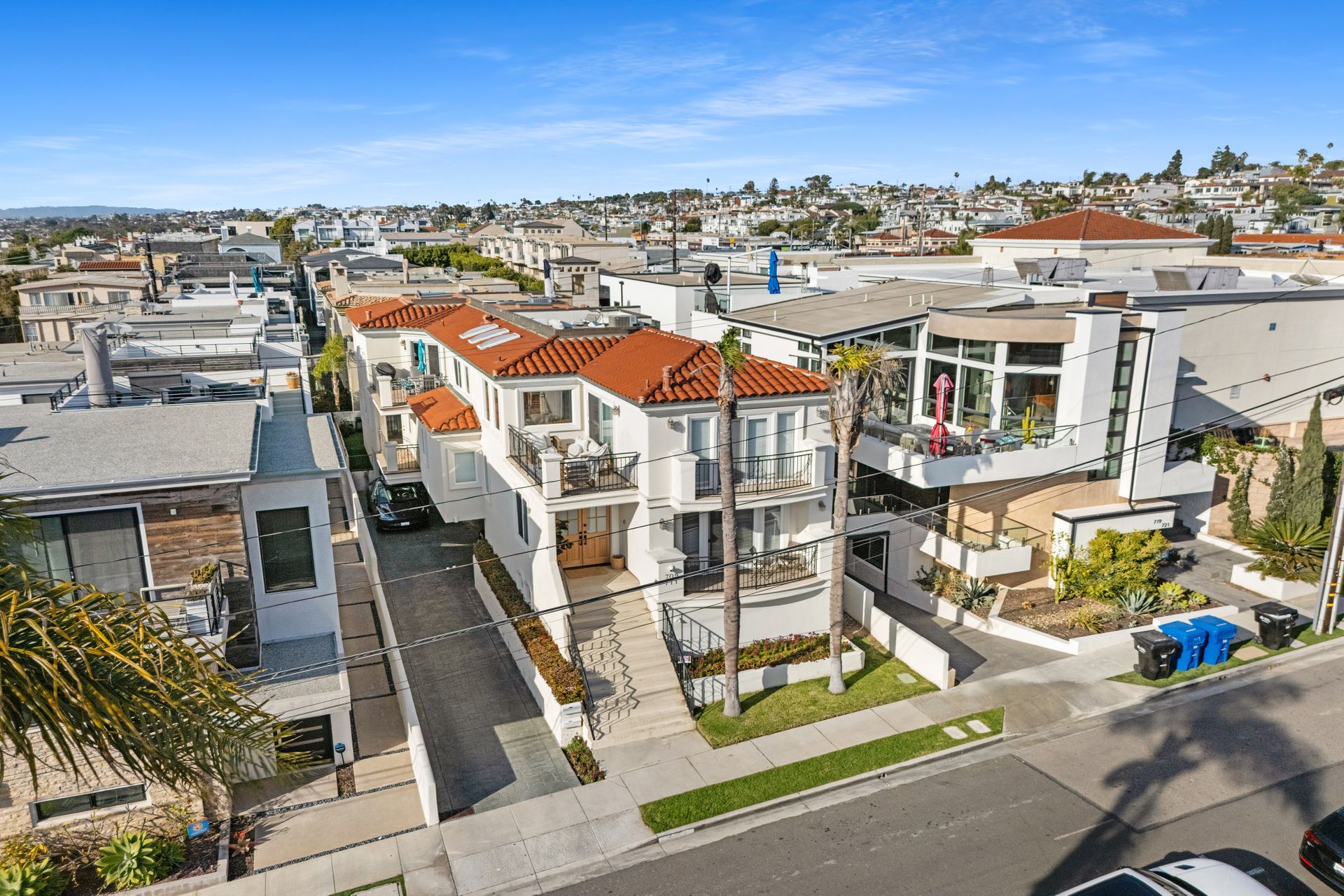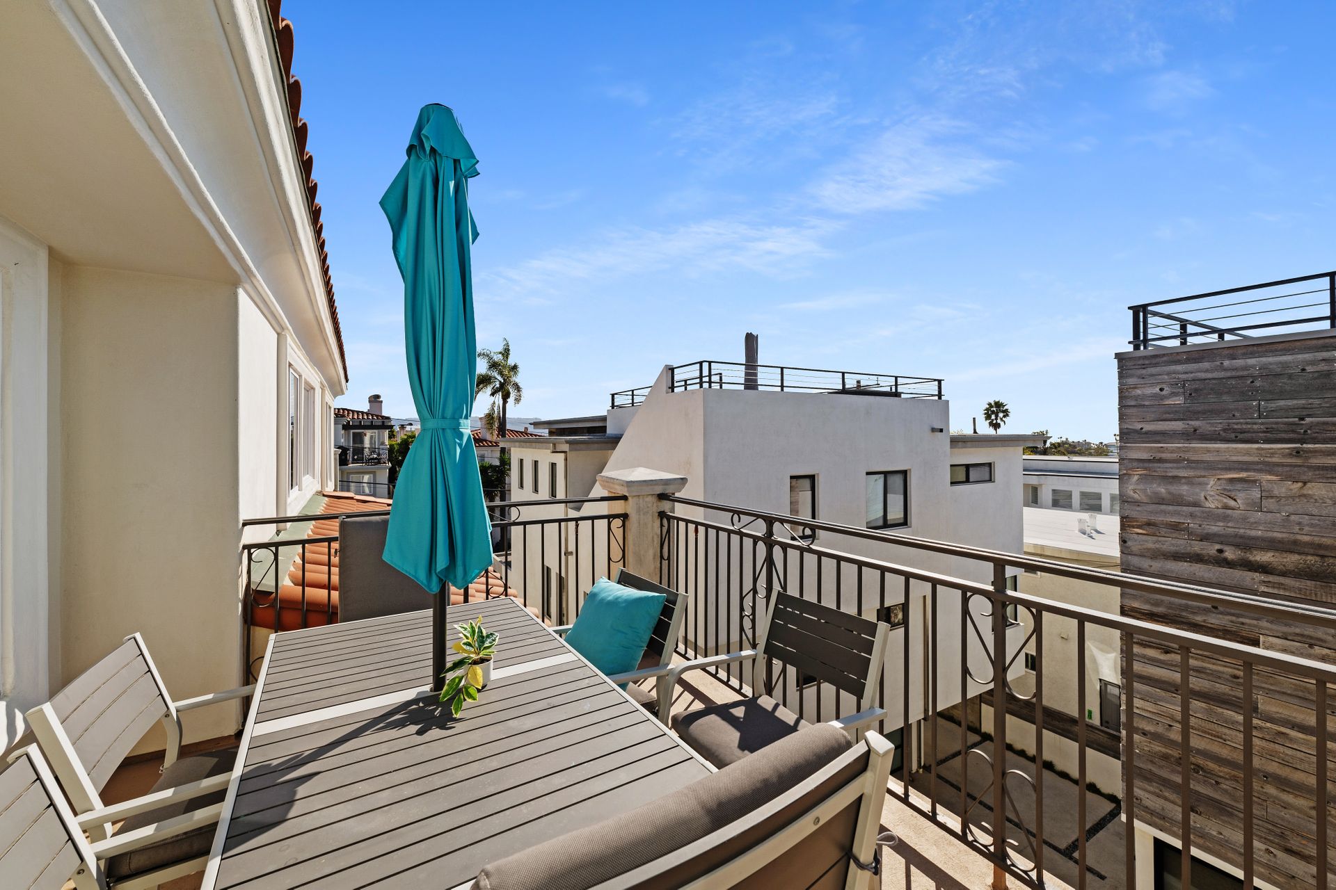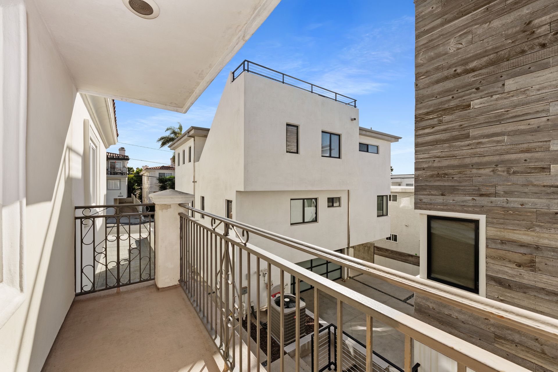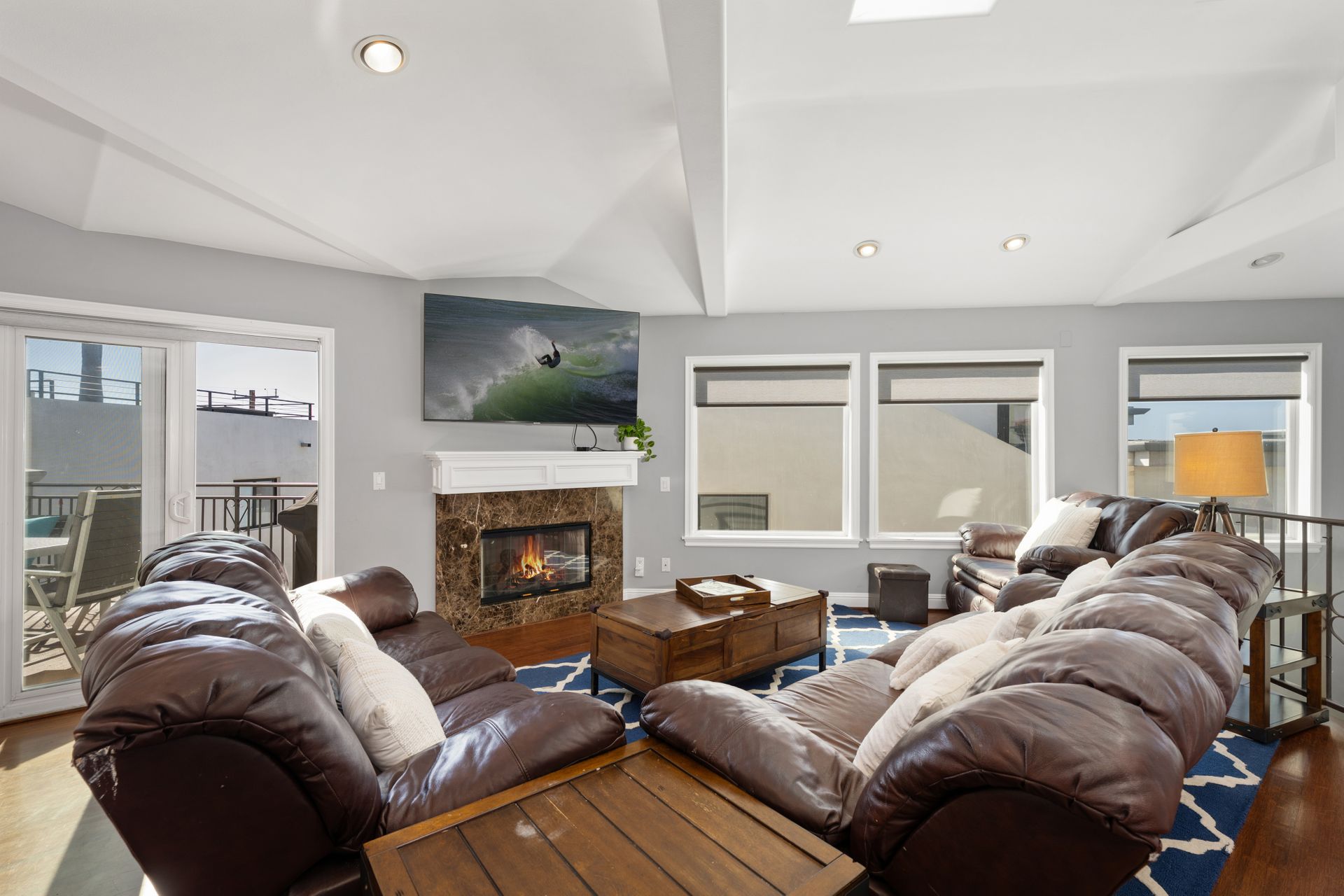 Welcome to this beautifully updated beach house conveniently positioned west of Pacific Coast Highway in the heart of Hermosa Beach, offering four bedrooms, four baths and over 2,480 square feet of thoughtfully designed livable space. Enter the spacious top-floor living area, where partial ocean and sunset views set the scene. Enjoy the warmth of a cozy fireplace, rich wood flooring and multiple seating areas that flow seamlessly into the dining space and gourmet kitchen. The kitchen is a chef’s dream, featuring granite countertops, an island and newer appliances. From this level, a staircase leads to the private rooftop deck, where you can entertain or unwind while taking in the expansive coastal views. The second floor features a generously sized primary suite with a private balcony, a walk-in closet and an ensuite bath with a jacuzzi tub. Two additional bedrooms and a shared bath complete this level. A fourth bedroom and additional bath are located on the first floor, offering flexibility for guests, a home office or a gym. The private backyard is conveniently accessed from the staircase landing between the first and second floors, creating an effortless indoor-outdoor flow.