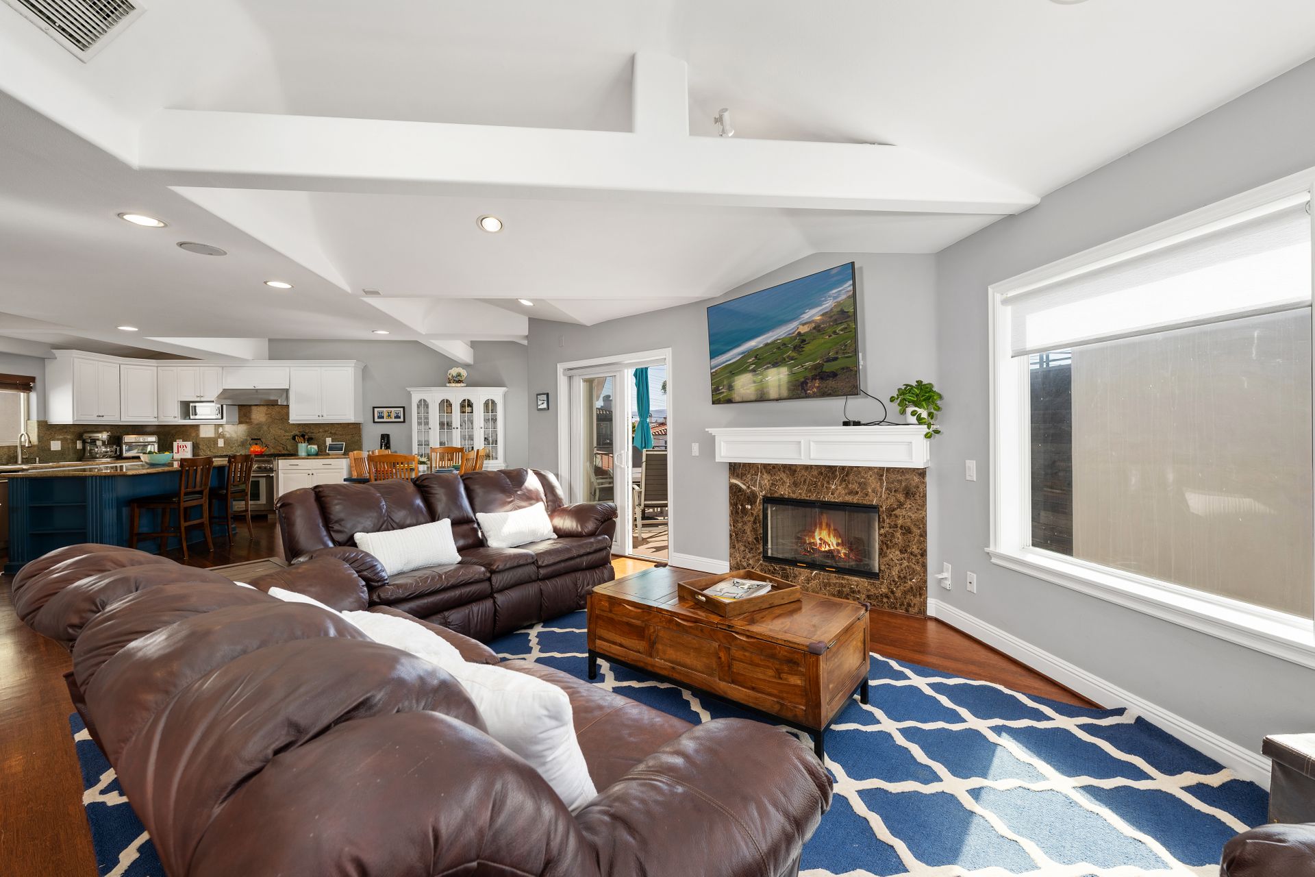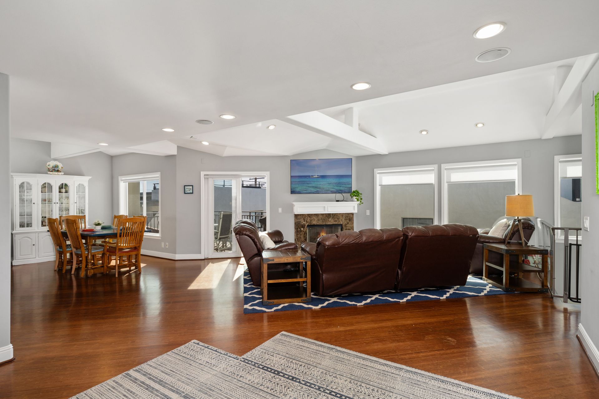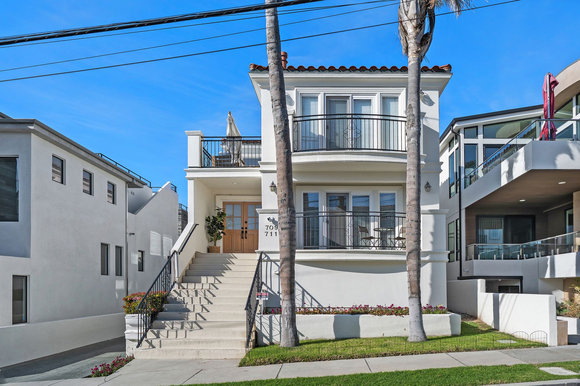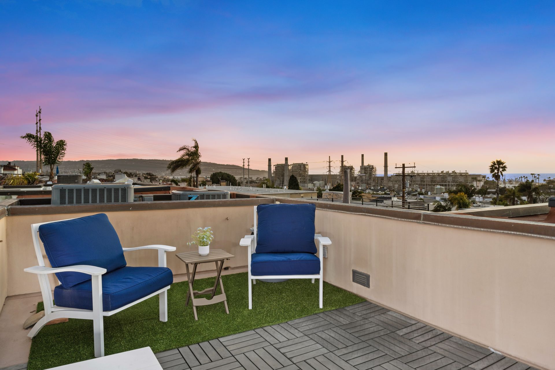 Welcome to this beautifully updated beach house conveniently positioned west of Pacific Coast Highway in the heart of Hermosa Beach, offering four bedrooms, four baths and over 2,480 square feet of thoughtfully designed livable space. Enter the spacious top-floor living area, where partial ocean and sunset views set the scene. Enjoy the warmth of a cozy fireplace, rich wood flooring and multiple seating areas that flow seamlessly into the dining space and gourmet kitchen. The kitchen is a chef’s dream, featuring granite countertops, an island and newer appliances. From this level, a staircase leads to the private rooftop deck, where you can entertain or unwind while taking in the expansive coastal views. The second floor features a generously sized primary suite with a private balcony, a walk-in closet and an ensuite bath with a jacuzzi tub. Two additional bedrooms and a shared bath complete this level. A fourth bedroom and additional bath are located on the first floor, offering flexibility for guests, a home office or a gym. The private backyard is conveniently accessed from the staircase landing between the first and second floors, creating an effortless indoor-outdoor flow.