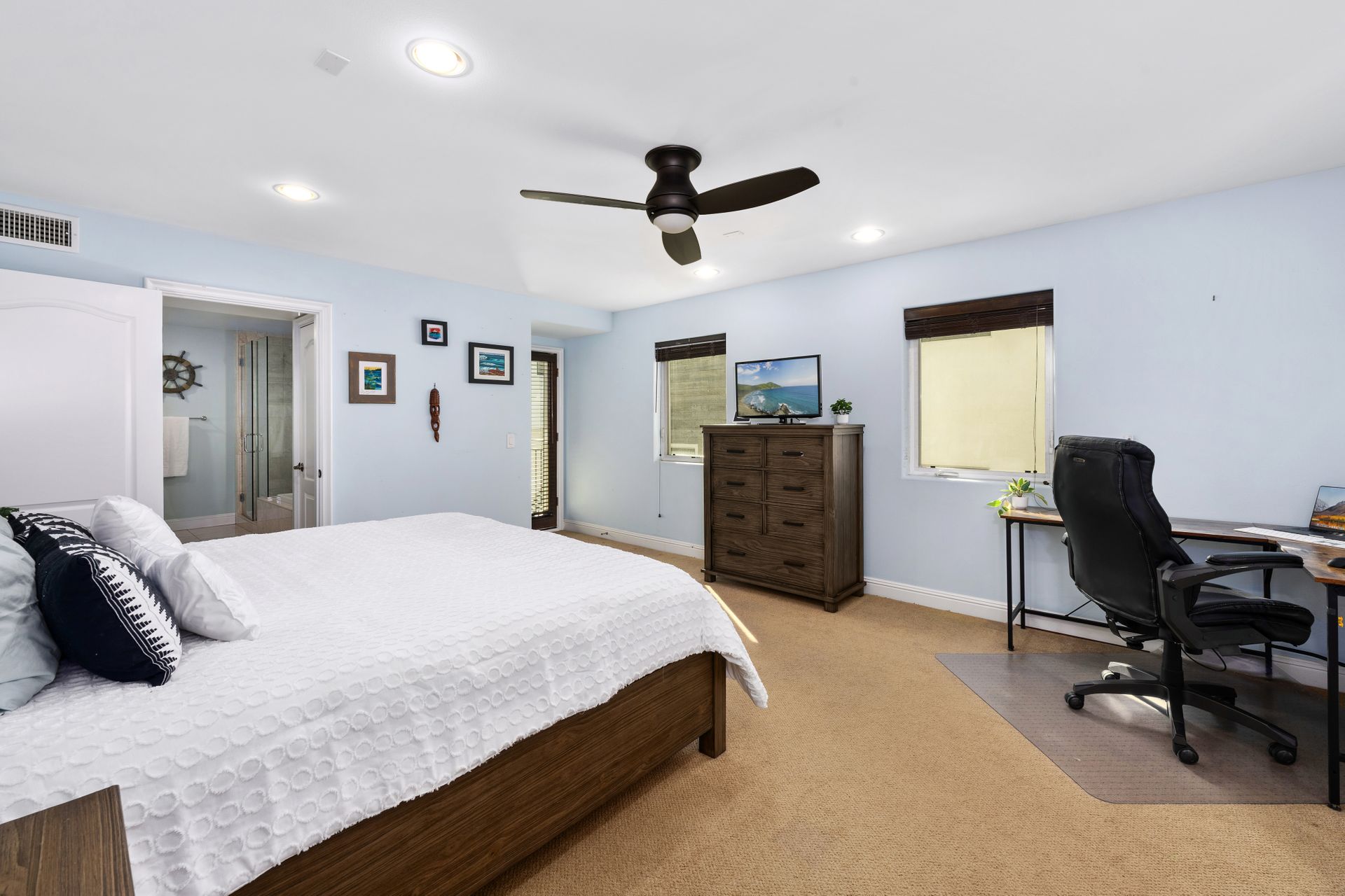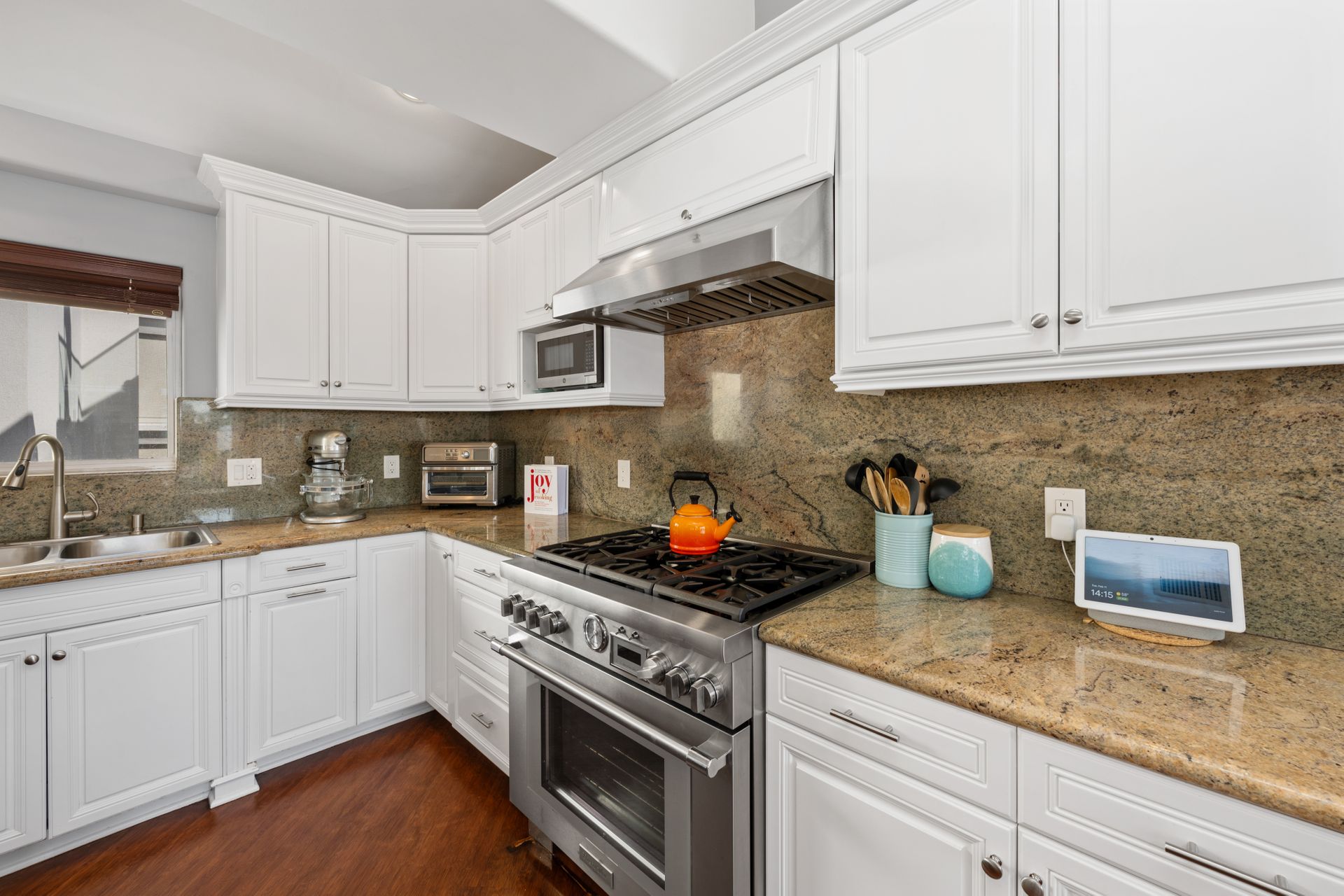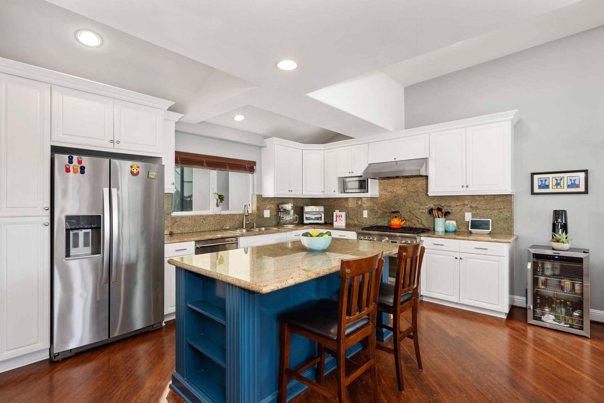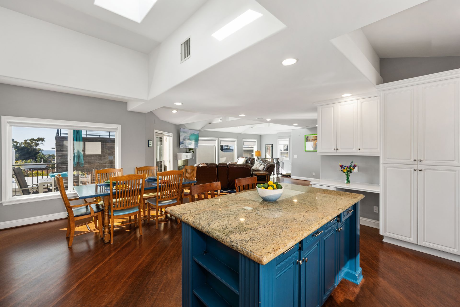 Welcome to this beautifully updated beach house conveniently positioned west of Pacific Coast Highway in the heart of Hermosa Beach, offering four bedrooms, four baths and over 2,480 square feet of thoughtfully designed livable space. Enter the spacious top-floor living area, where partial ocean and sunset views set the scene. Enjoy the warmth of a cozy fireplace, rich wood flooring and multiple seating areas that flow seamlessly into the dining space and gourmet kitchen. The kitchen is a chef’s dream, featuring granite countertops, an island and newer appliances. From this level, a staircase leads to the private rooftop deck, where you can entertain or unwind while taking in the expansive coastal views. The second floor features a generously sized primary suite with a private balcony, a walk-in closet and an ensuite bath with a jacuzzi tub. Two additional bedrooms and a shared bath complete this level. A fourth bedroom and additional bath are located on the first floor, offering flexibility for guests, a home office or a gym. The private backyard is conveniently accessed from the staircase landing between the first and second floors, creating an effortless indoor-outdoor flow.
