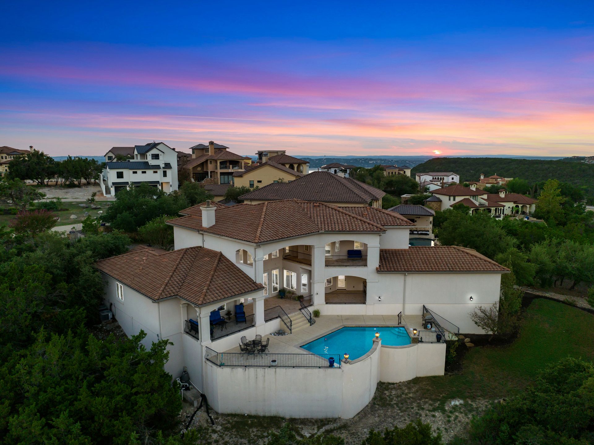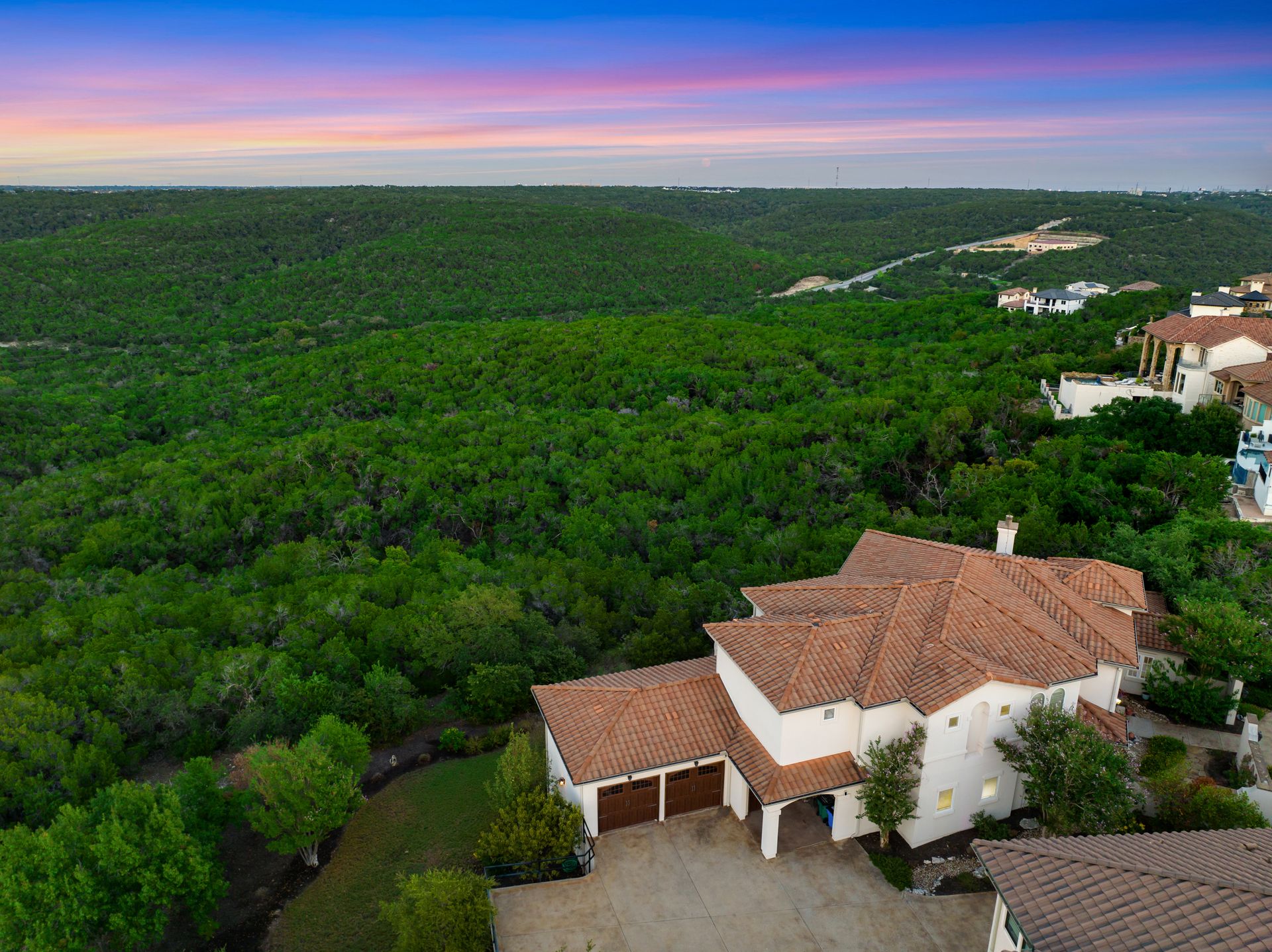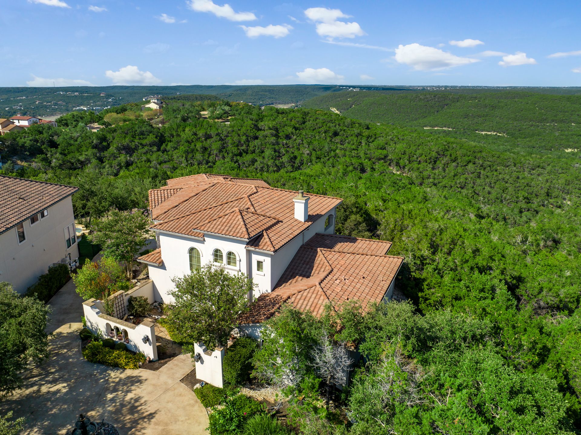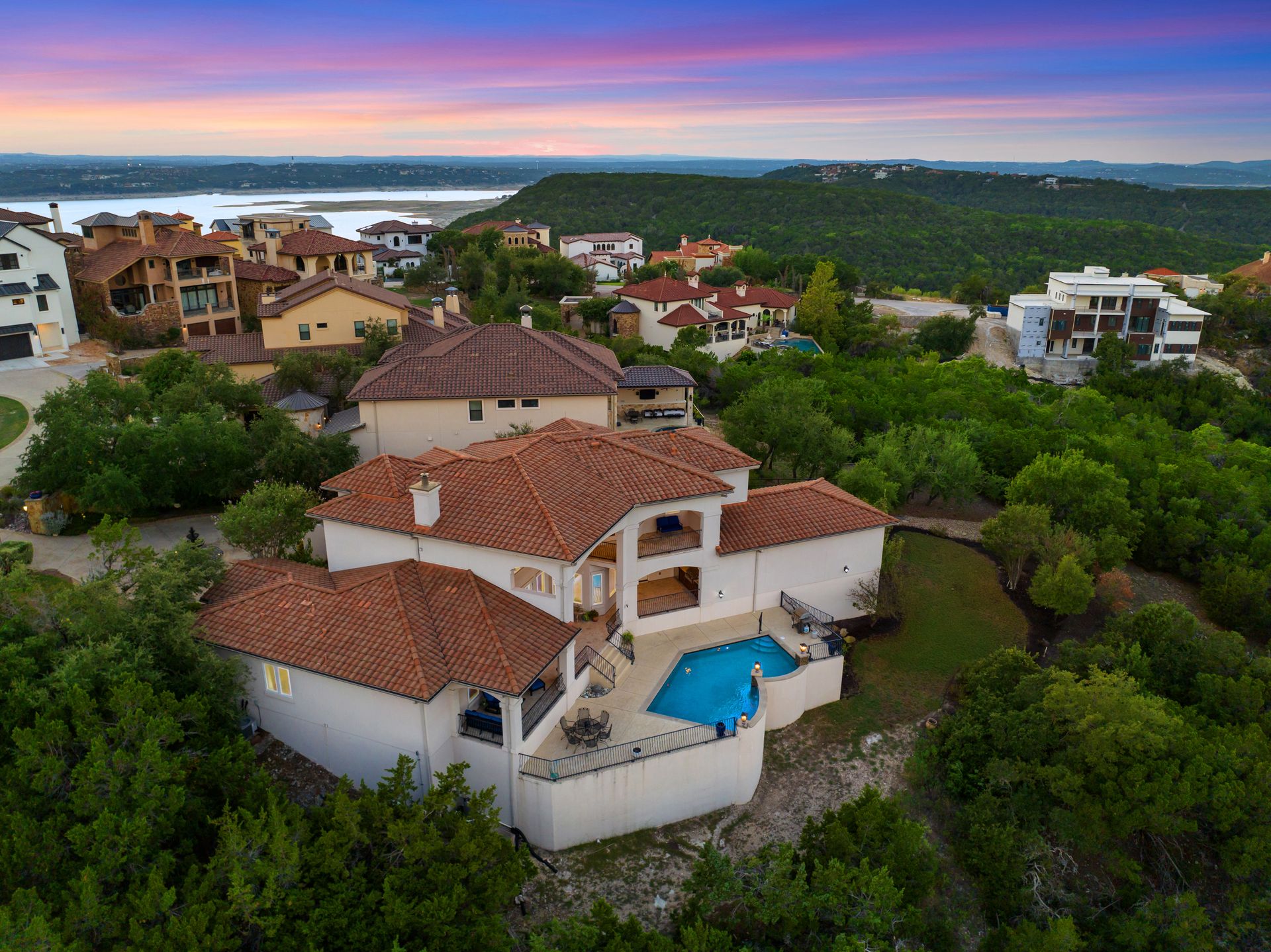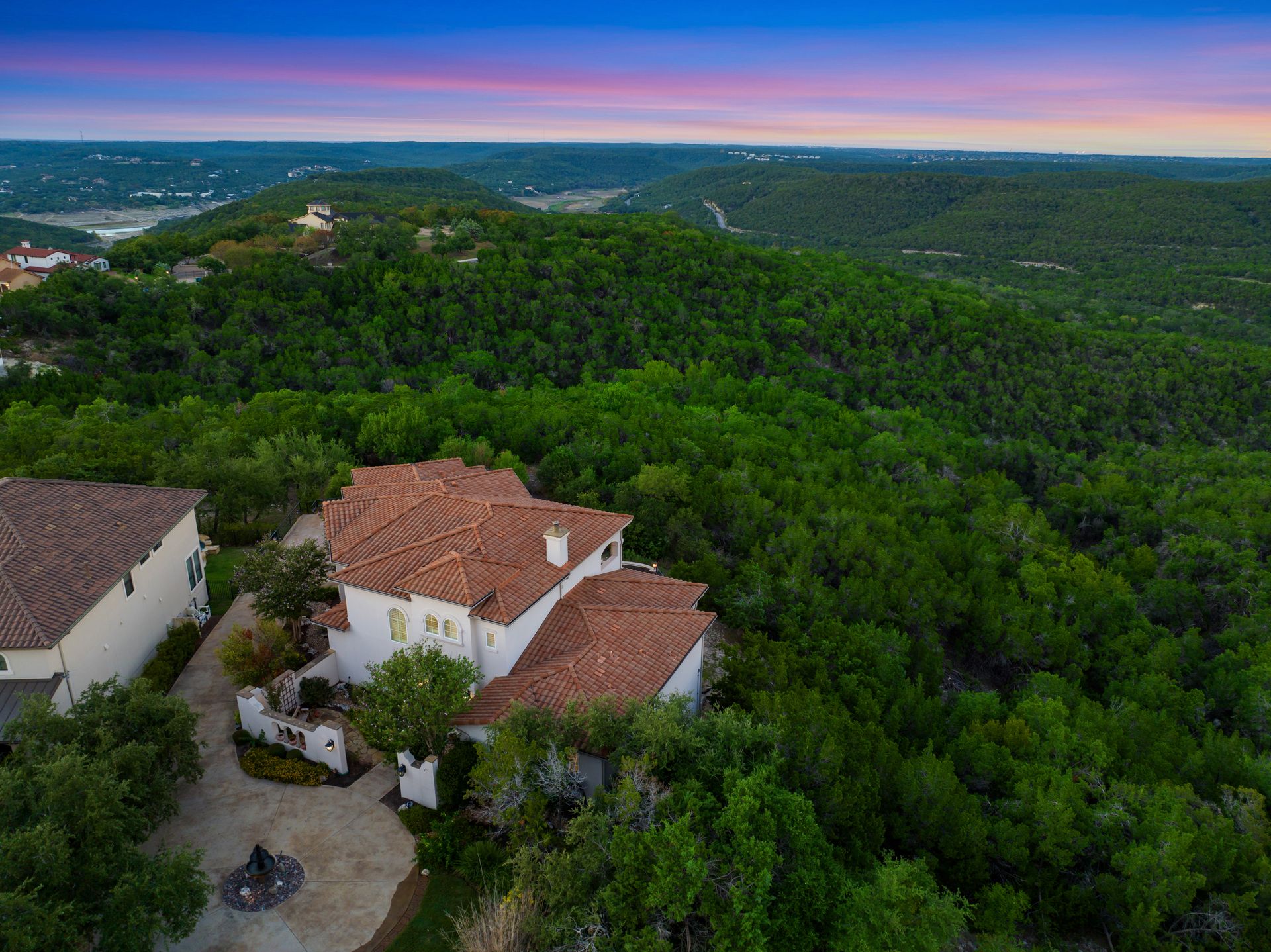 Welcome to your own piece of paradise in the exclusive gated community of Villa Montana, just a stone's throw away from the sparkling shores of Lake Travis. This four bedroom, five bath home offers an unparalleled level of luxury and panoramic views of the nature preserve. Head outside into an oasis of tranquility, as you immerse yourself in the pristine waters of the sparking pool complete with a waterfall. Prepare to be captivated by breathtaking vistas that stretch out before you. On the second level, discover the epitome of opulence in the owner's retreat, with an elevator for your convenience. Enjoy a private gym and an office, allowing you to stay active and productive. The en-suite features separate vanities, separate water closets, a steam shower and a tub, creating a spa-like sanctuary. Two owner's closets present abundant storage space, with one closet equipped with washer and dryer hookups. The first level showcases three additional well-appointed bedrooms and three and one-half bathrooms, ensuring ample space for guests. The beautiful dining room offers stunning views of the pool and nature preserve, allowing you to dine in elegance while immersing yourself in the natural beauty that stretches for miles. The gourmet kitchen features built-in Thermador appliances, a walk-in pantry and butler prep area around the corner, making culinary endeavors a joy. The main laundry room features an abundance of counter space and storage. Wine connoisseurs will delight in the beautiful wine cellar, perfect for showcasing and preserving their collection. A three-car garage provides ample space for vehicles and storage needs. Nestled on .478-acres, this home offers ultimate privacy, with a circular drive providing a grand entrance for guests, while the beautiful courtyard entry further enhances the overall aesthetic appeal. Experience luxurious living in the prestigious community of Villa Montana.