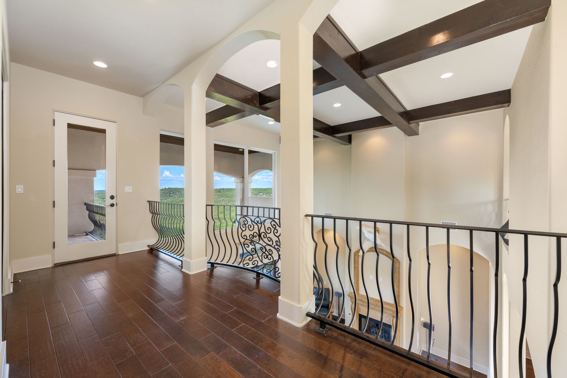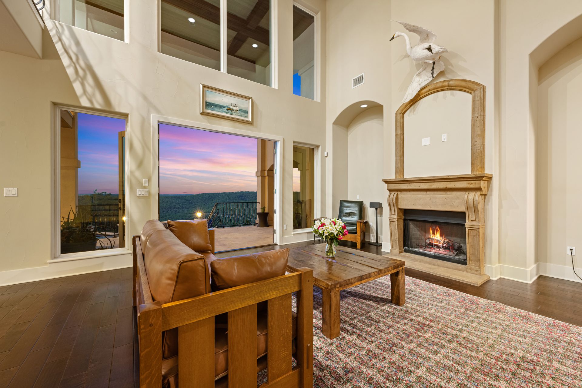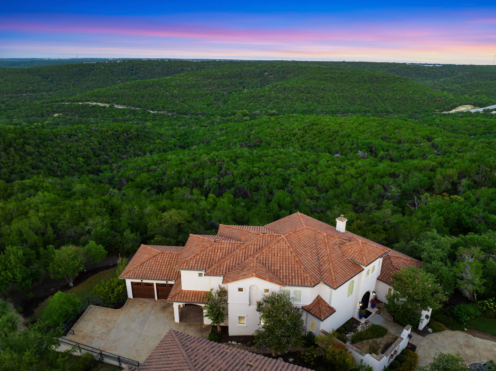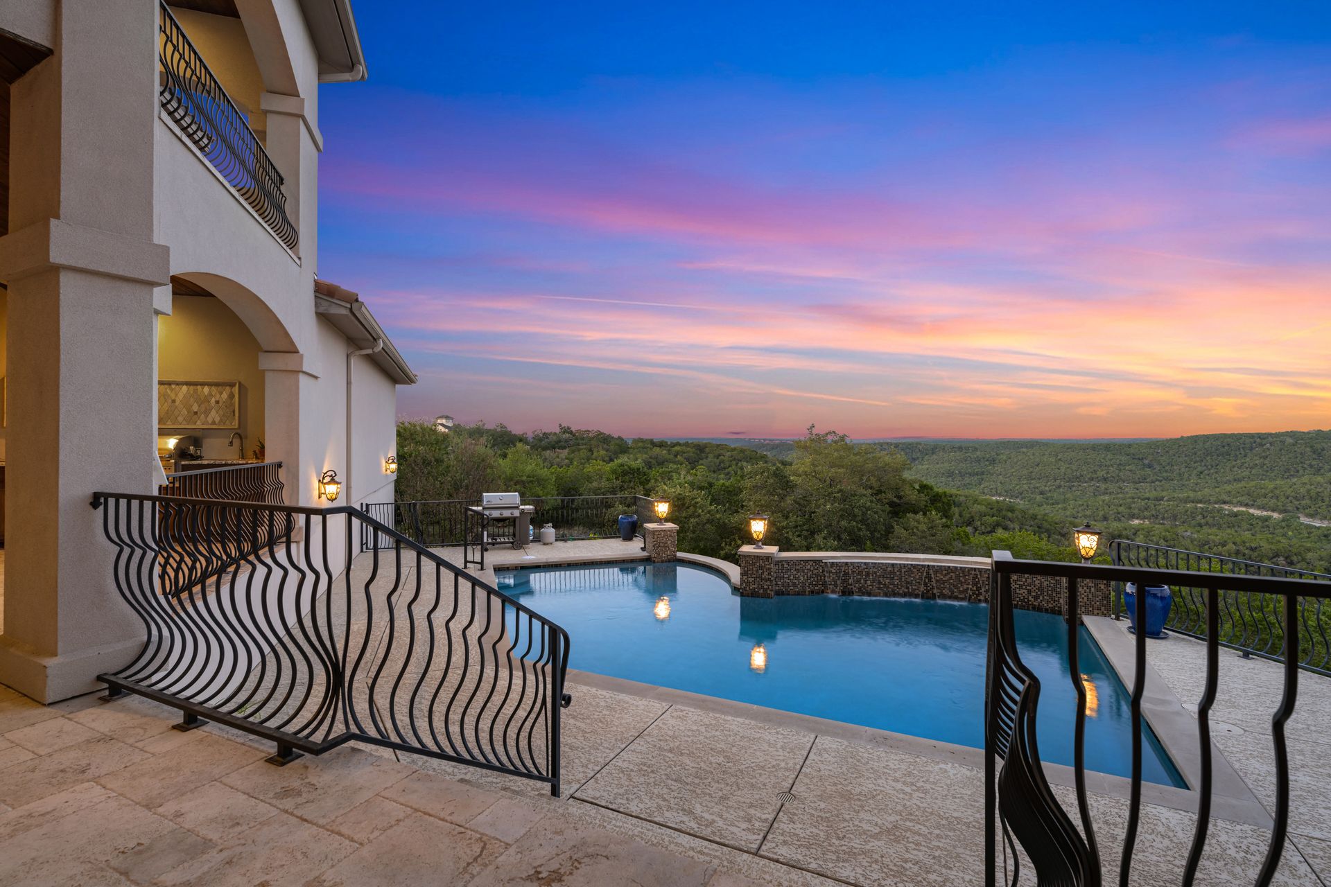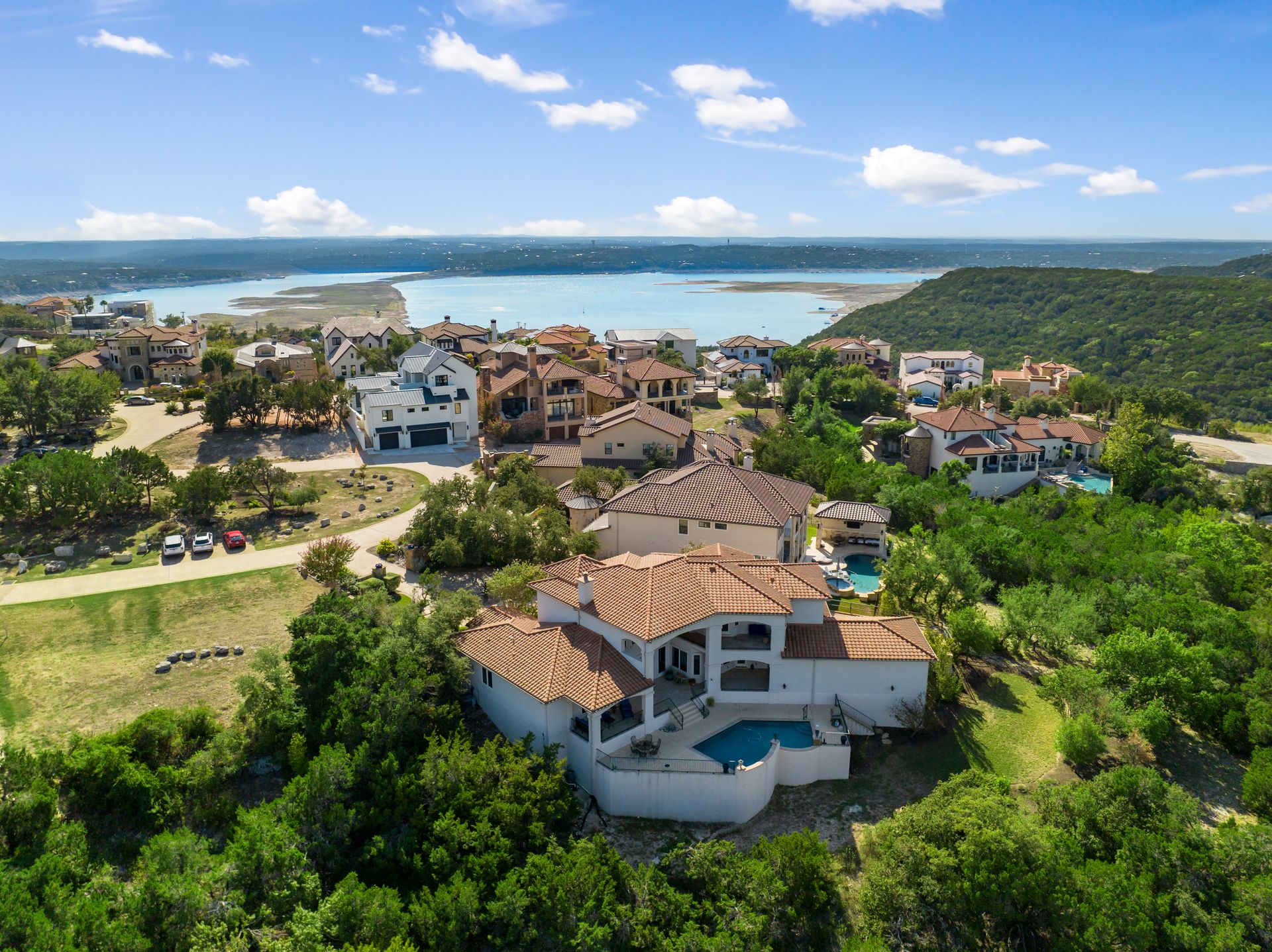 Welcome to your own piece of paradise in the exclusive gated community of Villa Montana, just a stone's throw away from the sparkling shores of Lake Travis. This four bedroom, five bath home offers an unparalleled level of luxury and panoramic views of the nature preserve. Head outside into an oasis of tranquility, as you immerse yourself in the pristine waters of the sparking pool complete with a waterfall. Prepare to be captivated by breathtaking vistas that stretch out before you. On the second level, discover the epitome of opulence in the owner's retreat, with an elevator for your convenience. Enjoy a private gym and an office, allowing you to stay active and productive. The en-suite features separate vanities, separate water closets, a steam shower and a tub, creating a spa-like sanctuary. Two owner's closets present abundant storage space, with one closet equipped with washer and dryer hookups. The first level showcases three additional well-appointed bedrooms and three and one-half bathrooms, ensuring ample space for guests. The beautiful dining room offers stunning views of the pool and nature preserve, allowing you to dine in elegance while immersing yourself in the natural beauty that stretches for miles. The gourmet kitchen features built-in Thermador appliances, a walk-in pantry and butler prep area around the corner, making culinary endeavors a joy. The main laundry room features an abundance of counter space and storage. Wine connoisseurs will delight in the beautiful wine cellar, perfect for showcasing and preserving their collection. A three-car garage provides ample space for vehicles and storage needs. Nestled on .478-acres, this home offers ultimate privacy, with a circular drive providing a grand entrance for guests, while the beautiful courtyard entry further enhances the overall aesthetic appeal. Experience luxurious living in the prestigious community of Villa Montana.