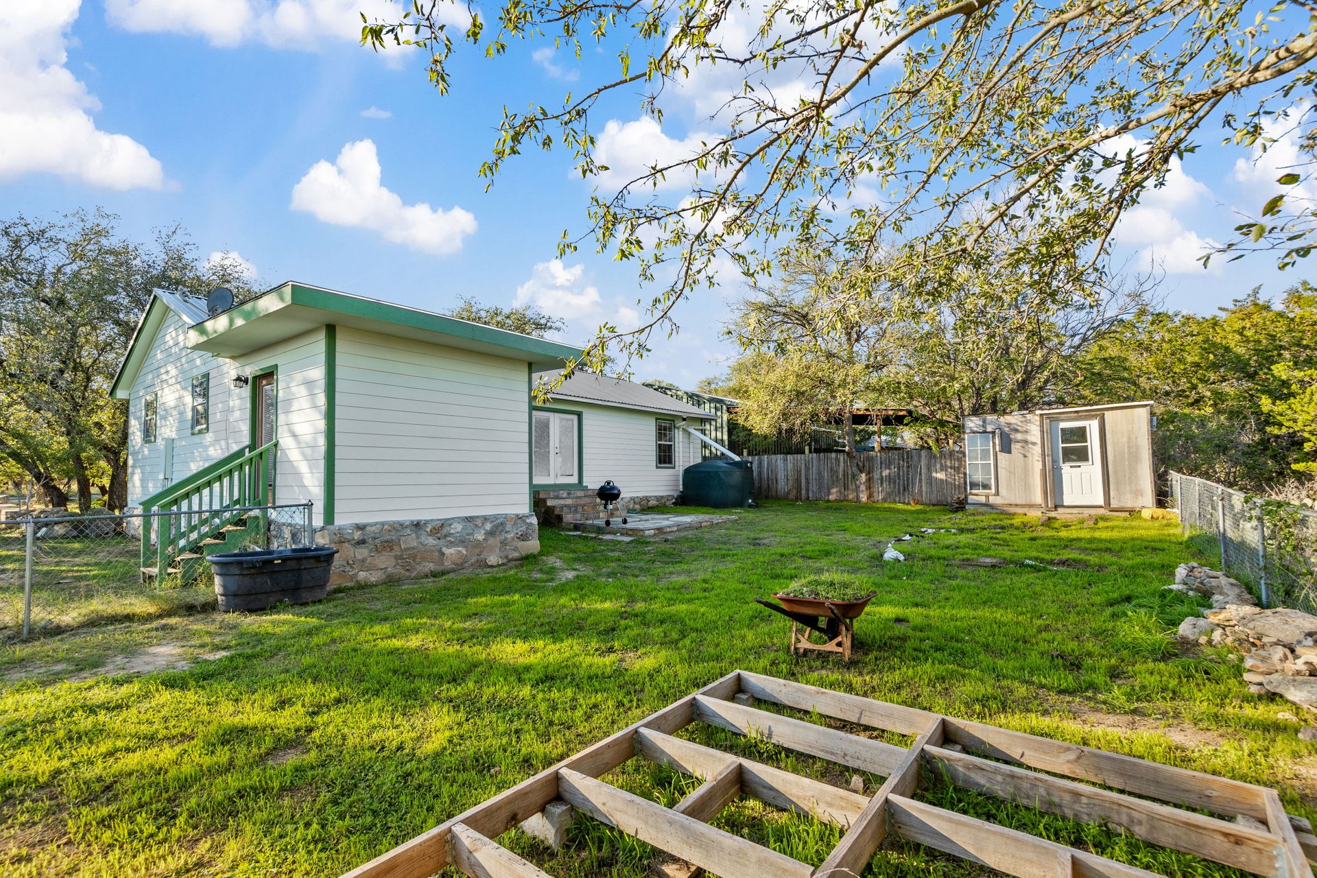 Welcome to your Hill country sanctuary resting in the heart of Spicewood, Texas. The sprawling front yard is a shady oasis filled with native plants and majestic trees, and sets the tone for a country escape on the large open front porch. Located in the desirable community of Paleface Lake Country Estates, this 3 bedroom two bathroom gem measures 1296 sqft., features a freshly painted exterior and the inclusion of a partial rainwater collection system, for an eco-friendly touch. Enjoy access to a private picturesque community park and community boat ramp on the Pedernales River. Beyond your private retreat, discover the allure of nearby wineries, golf courses, and all the recreation Lake Travis has to offer. With endless potential the stage is set to create your dream home!