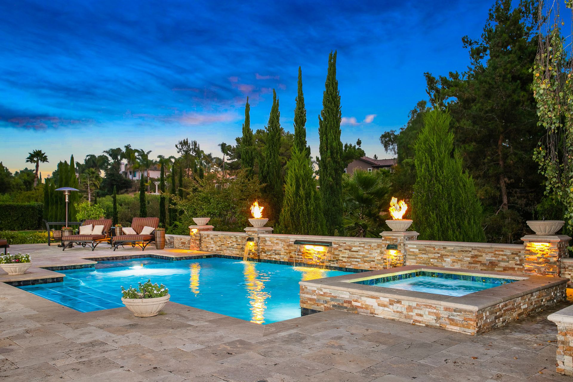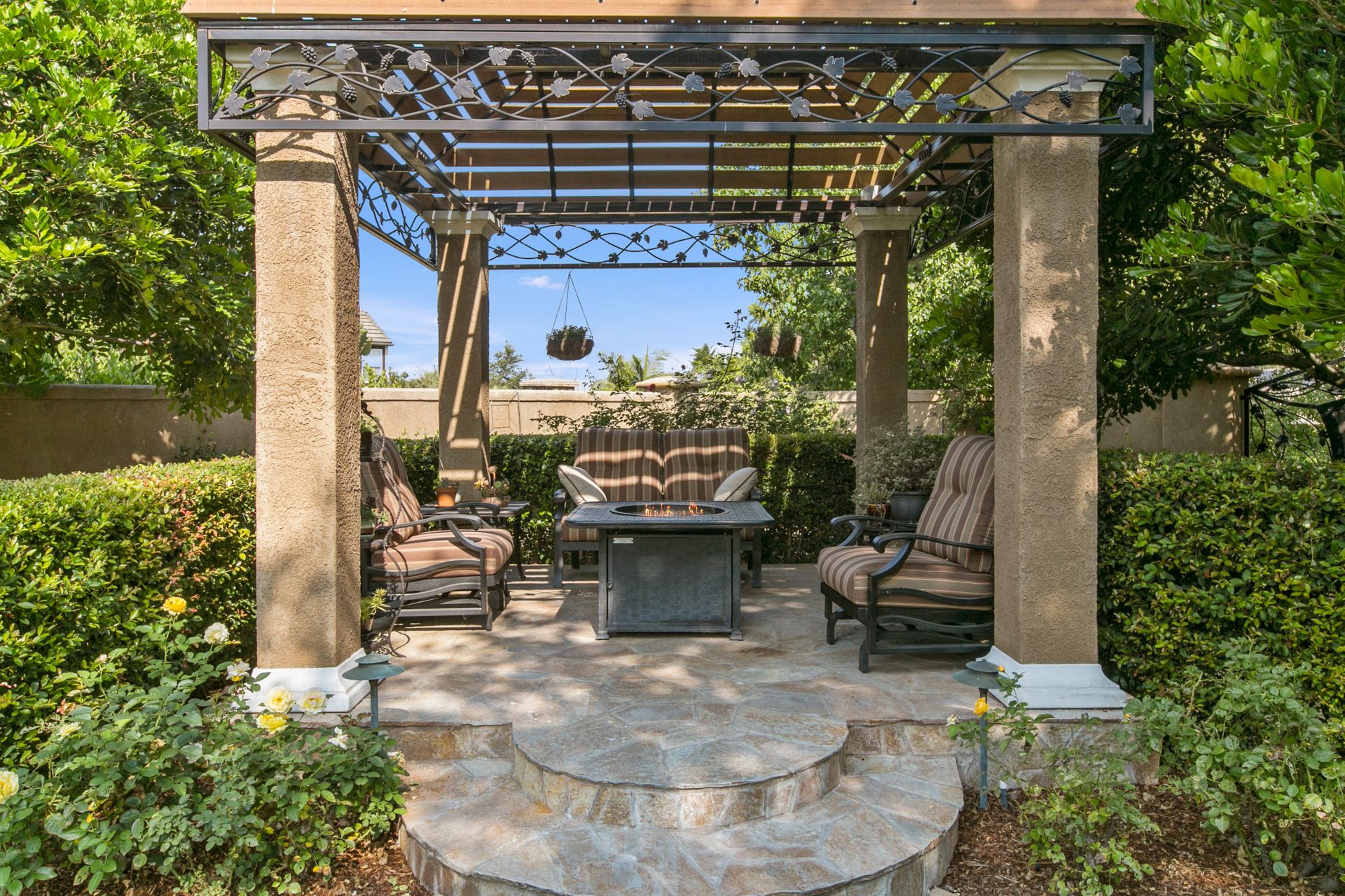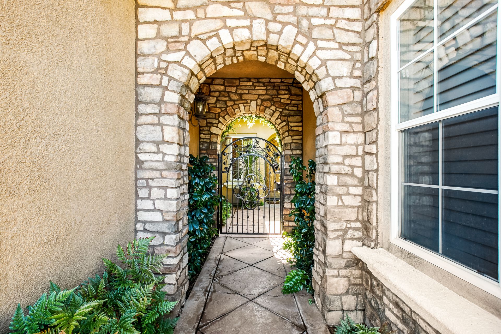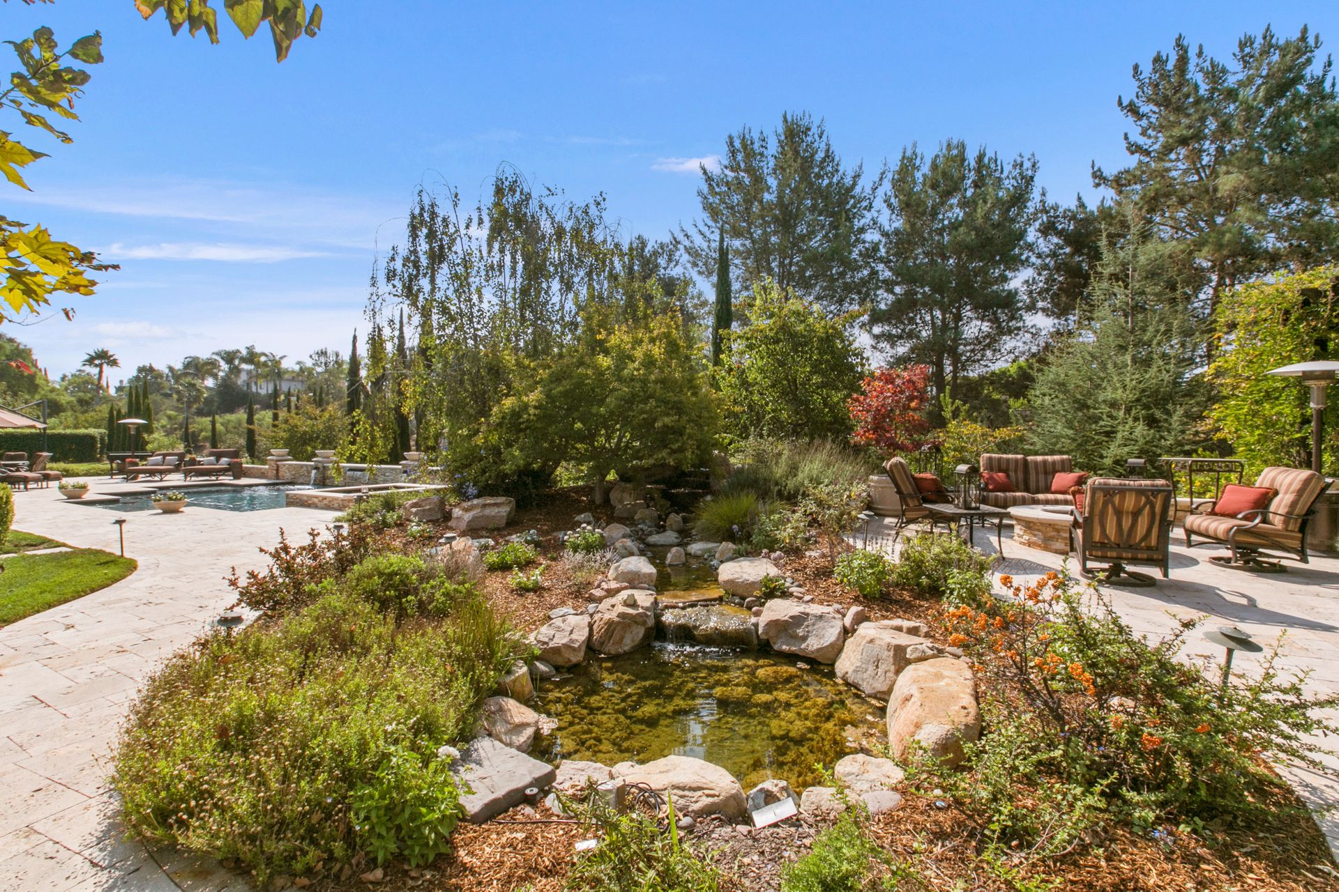 Ready to entertain? This amazing Tuscan inspired villa is located in the prestigious gated community of Stonegate offering unparalleled excellence. Upon entering the home, you will note the larger- than- life views of the amazing saltwater pool, spa, waterfalls, and fire features set in a park-like landscape offering seclusion and privacy. The kitchen, as one would expect, features the highest quality appliances including Miele and Wolf. Sommeliers may wish to end the day by selecting a bottle of vino from your SubZero wine refrigerator while noticing the imported alabaster lighting. Make your way outside to the south facing backyard and enjoy the beautiful back drop highlighted with mature Cypress. With one acre, you have multiple areas to spend time with guests. Start by cooking in your outdoor kitchen or make your way down the travertine path passing by your waterfall pond and rose garden to your covered dining area or your grand gazebo. Upon heading back in for the night, be sure to pick some citrus from the trees on the east side of the home near the potting shed where there’s plenty of space for an ADU, or an RV. With separate access through a rustic iron gate, the east side area offers many options and a previous owner once had plans to build an additional four-car garage. Once you visit this Italian inspired home, you will appreciate the finer details it has to offer and the immense potential to place your own personal touches.