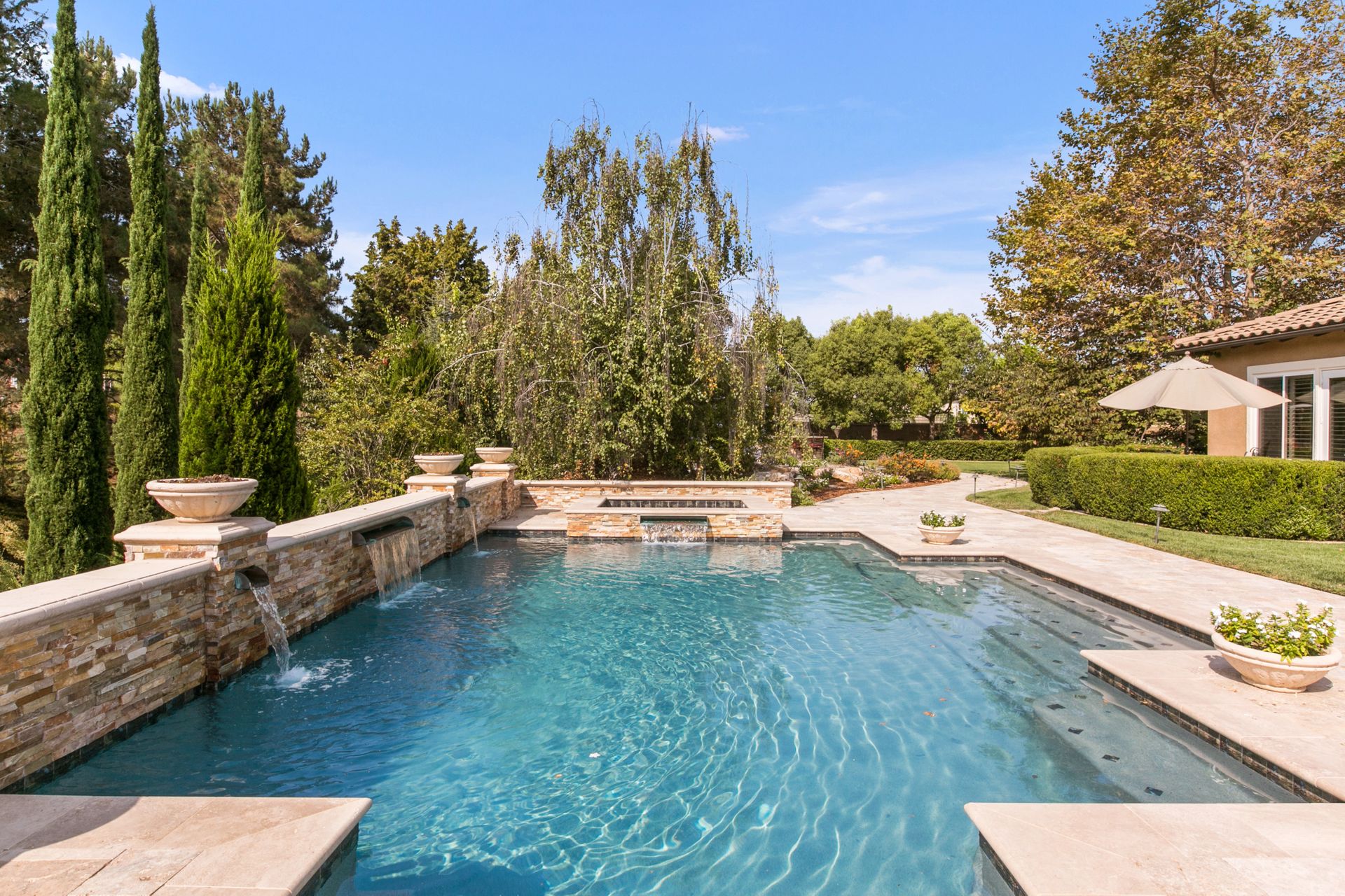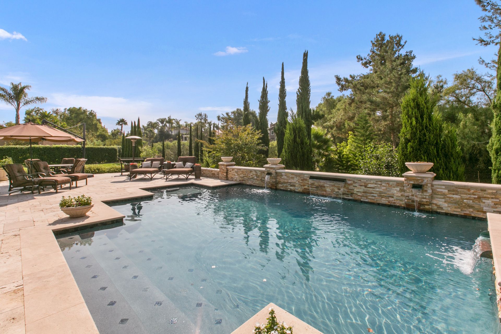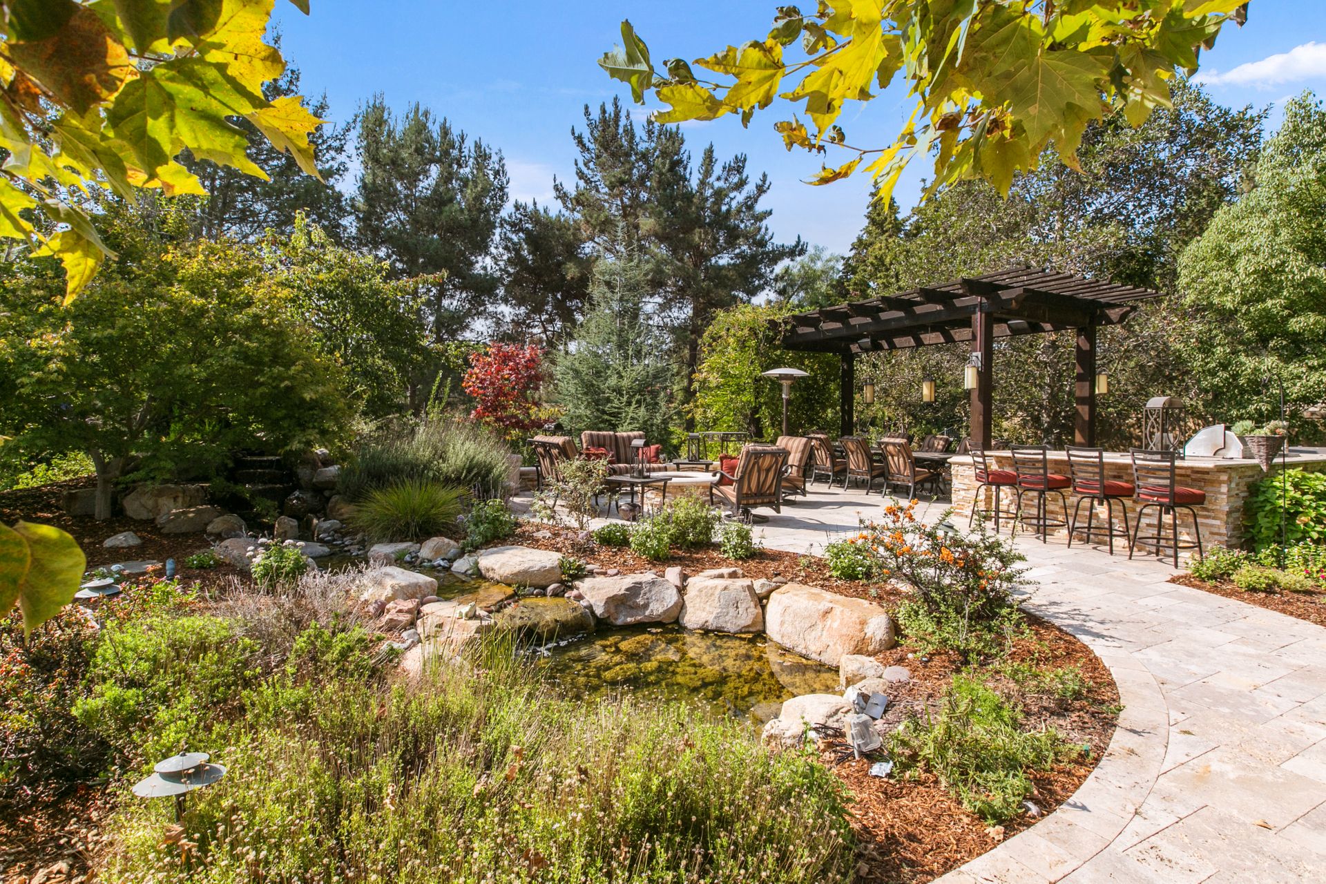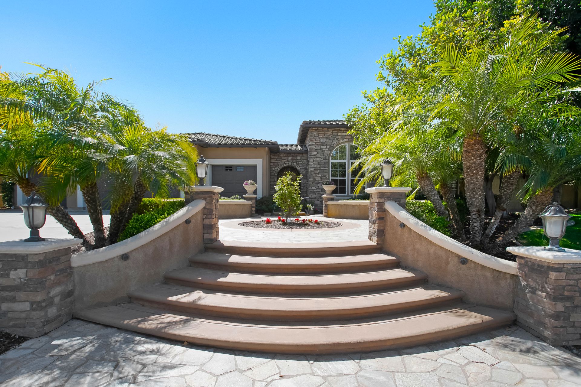 Ready to entertain? This amazing Tuscan inspired villa is located in the prestigious gated community of Stonegate offering unparalleled excellence. Upon entering the home, you will note the larger- than- life views of the amazing saltwater pool, spa, waterfalls, and fire features set in a park-like landscape offering seclusion and privacy. The kitchen, as one would expect, features the highest quality appliances including Miele and Wolf. Sommeliers may wish to end the day by selecting a bottle of vino from your SubZero wine refrigerator while noticing the imported alabaster lighting. Make your way outside to the south facing backyard and enjoy the beautiful back drop highlighted with mature Cypress. With one acre, you have multiple areas to spend time with guests. Start by cooking in your outdoor kitchen or make your way down the travertine path passing by your waterfall pond and rose garden to your covered dining area or your grand gazebo. Upon heading back in for the night, be sure to pick some citrus from the trees on the east side of the home near the potting shed where there’s plenty of space for an ADU, or an RV. With separate access through a rustic iron gate, the east side area offers many options and a previous owner once had plans to build an additional four-car garage. Once you visit this Italian inspired home, you will appreciate the finer details it has to offer and the immense potential to place your own personal touches.