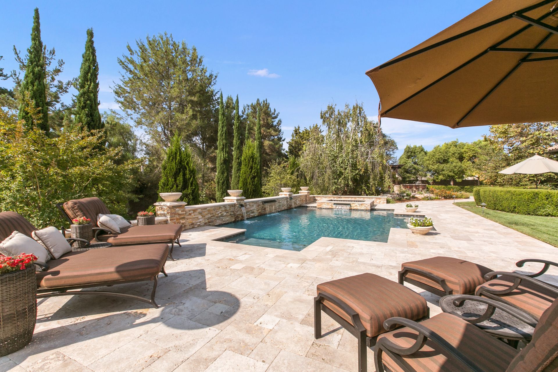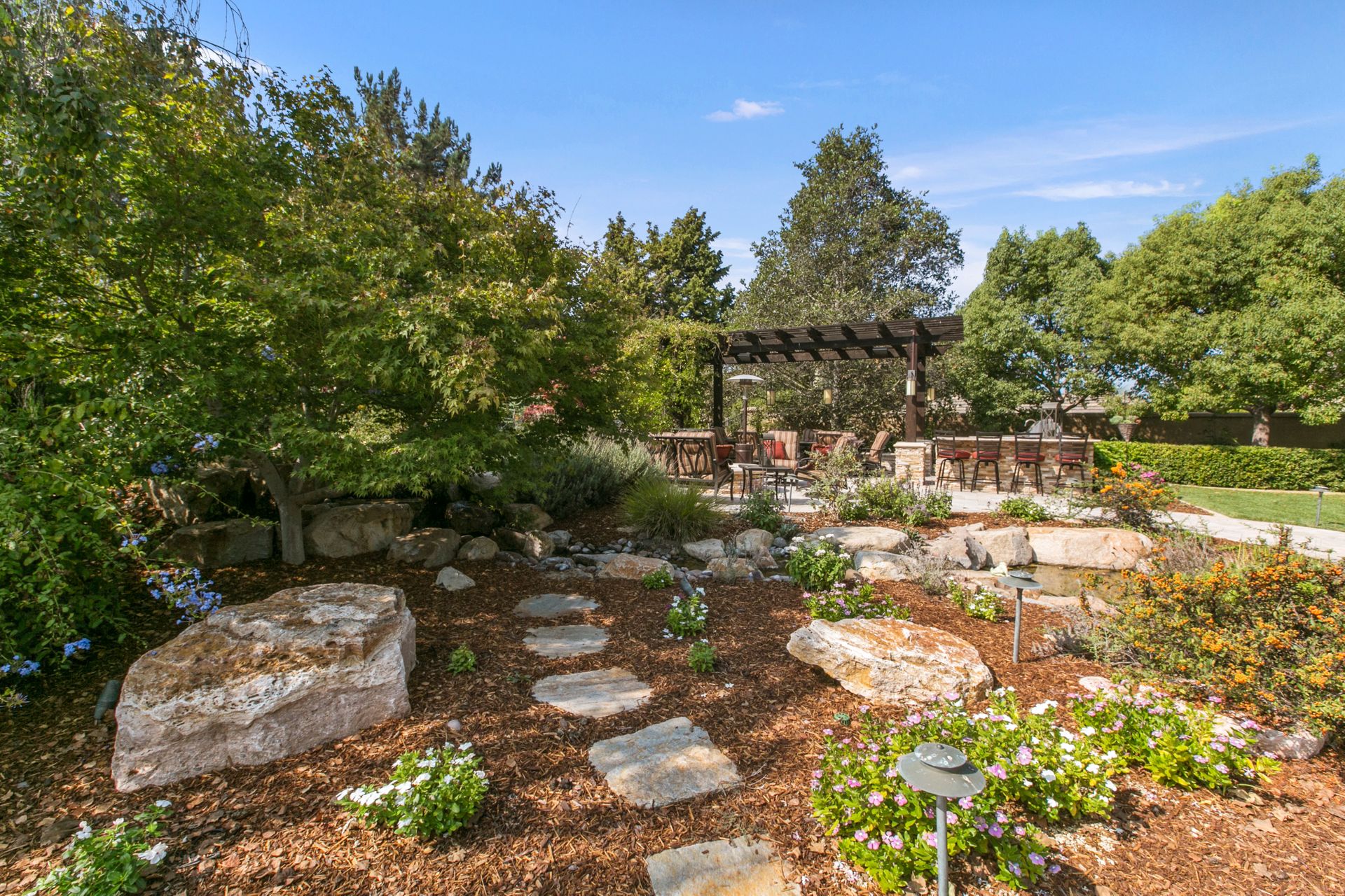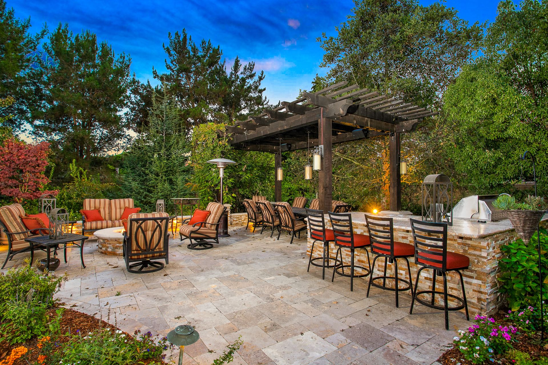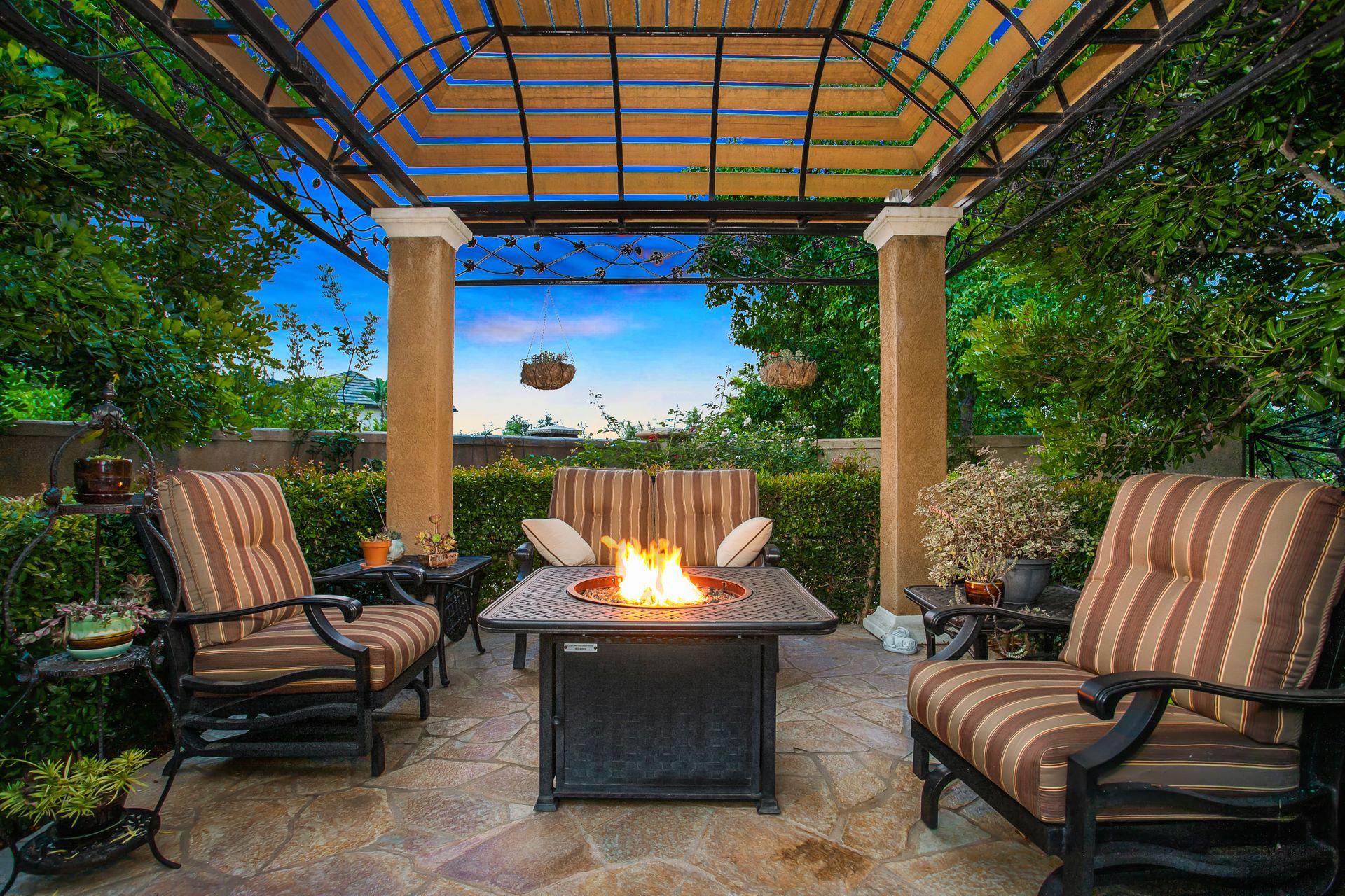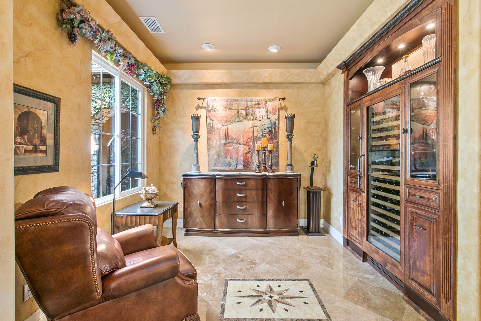Ready to entertain? This amazing Tuscan inspired villa is located in the prestigious gated community of Stonegate offering unparalleled excellence. Upon entering the home, you will note the larger- than- life views of the amazing saltwater pool, spa, waterfalls, and fire features set in a park-like landscape offering seclusion and privacy. The kitchen, as one would expect, features the highest quality appliances including Miele and Wolf. Sommeliers may wish to end the day by selecting a bottle of vino from your SubZero wine refrigerator while noticing the imported alabaster lighting. Make your way outside to the south facing backyard and enjoy the beautiful back drop highlighted with mature Cypress. With one acre, you have multiple areas to spend time with guests. Start by cooking in your outdoor kitchen or make your way down the travertine path passing by your waterfall pond and rose garden to your covered dining area or your grand gazebo. Upon heading back in for the night, be sure to pick some citrus from the trees on the east side of the home near the potting shed where there’s plenty of space for an ADU, or an RV. With separate access through a rustic iron gate, the east side area offers many options and a previous owner once had plans to build an additional four-car garage. Once you visit this Italian inspired home, you will appreciate the finer details it has to offer and the immense potential to place your own personal touches.