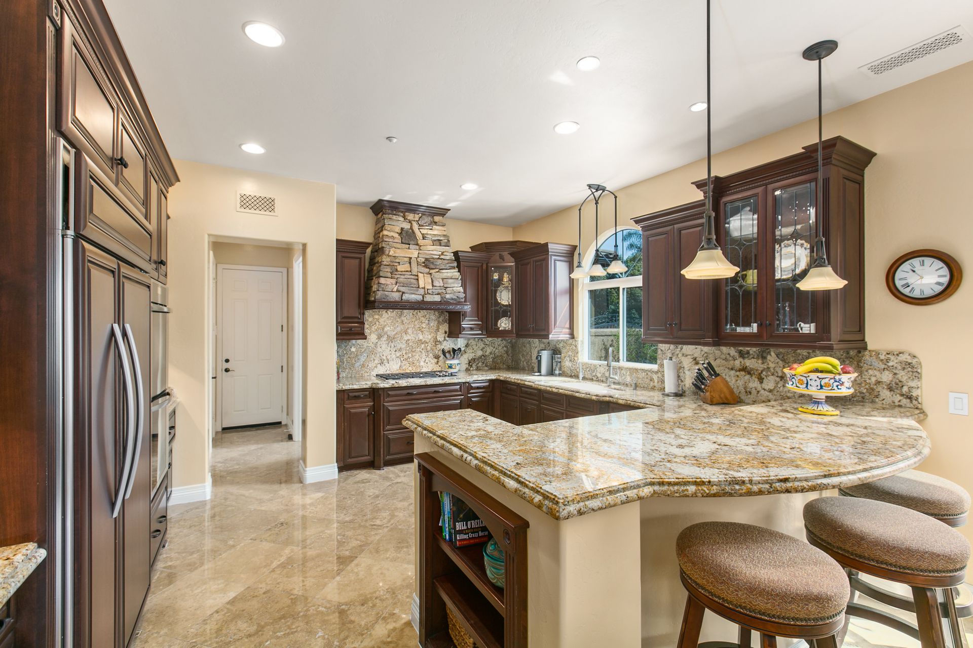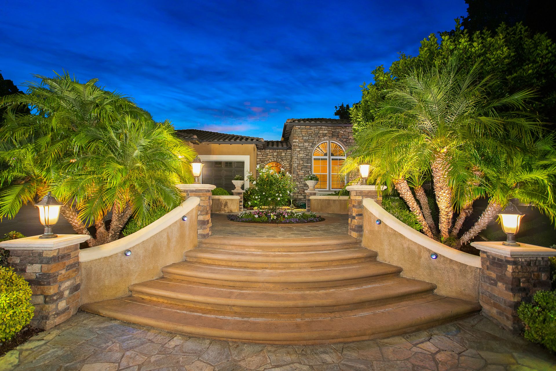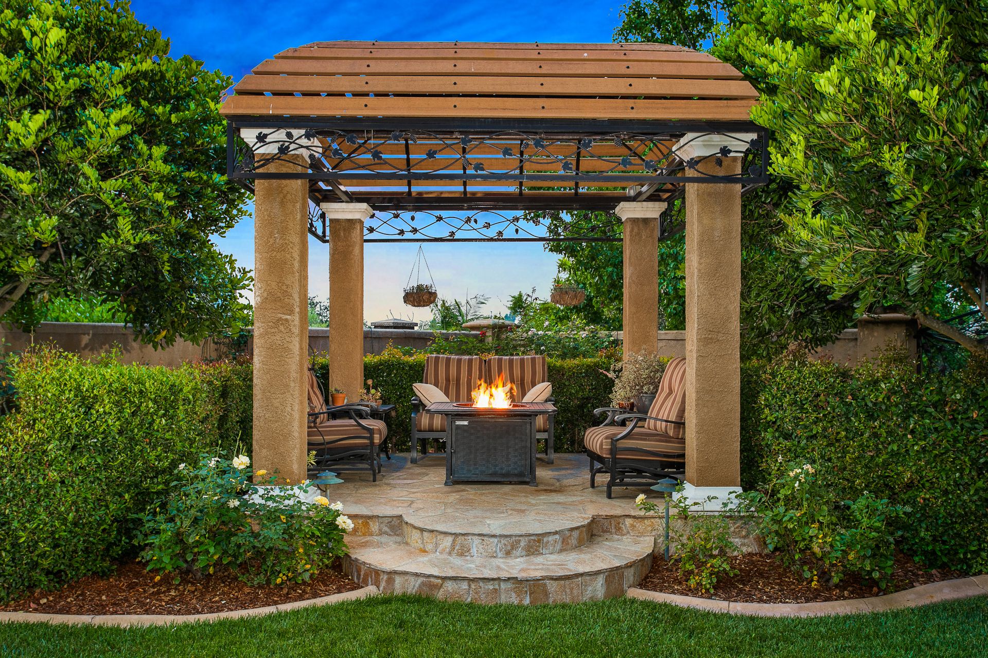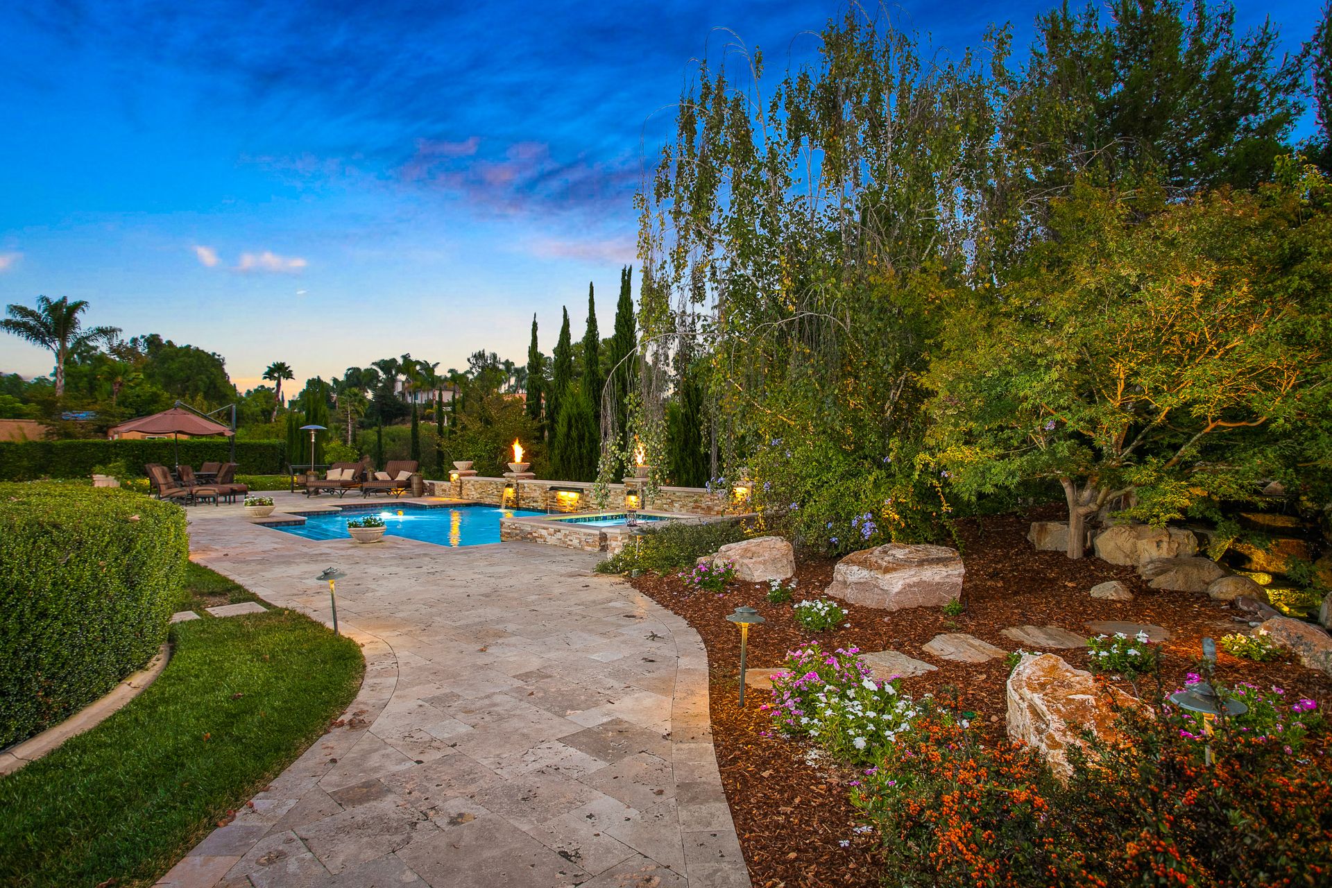 Ready to entertain? This amazing Tuscan inspired villa is located in the prestigious gated community of Stonegate offering unparalleled excellence. Upon entering the home, you will note the larger- than- life views of the amazing saltwater pool, spa, waterfalls, and fire features set in a park-like landscape offering seclusion and privacy. The kitchen, as one would expect, features the highest quality appliances including Miele and Wolf. Sommeliers may wish to end the day by selecting a bottle of vino from your SubZero wine refrigerator while noticing the imported alabaster lighting. Make your way outside to the south facing backyard and enjoy the beautiful back drop highlighted with mature Cypress. With one acre, you have multiple areas to spend time with guests. Start by cooking in your outdoor kitchen or make your way down the travertine path passing by your waterfall pond and rose garden to your covered dining area or your grand gazebo. Upon heading back in for the night, be sure to pick some citrus from the trees on the east side of the home near the potting shed where there’s plenty of space for an ADU, or an RV. With separate access through a rustic iron gate, the east side area offers many options and a previous owner once had plans to build an additional four-car garage. Once you visit this Italian inspired home, you will appreciate the finer details it has to offer and the immense potential to place your own personal touches.