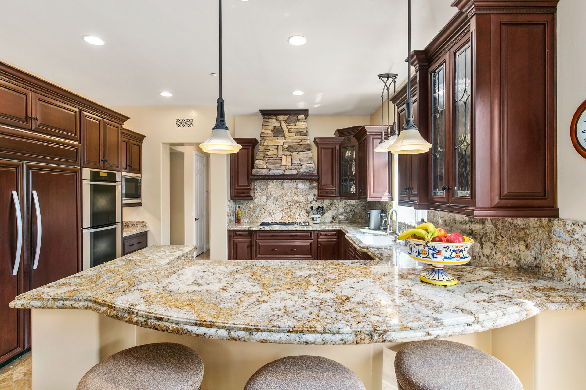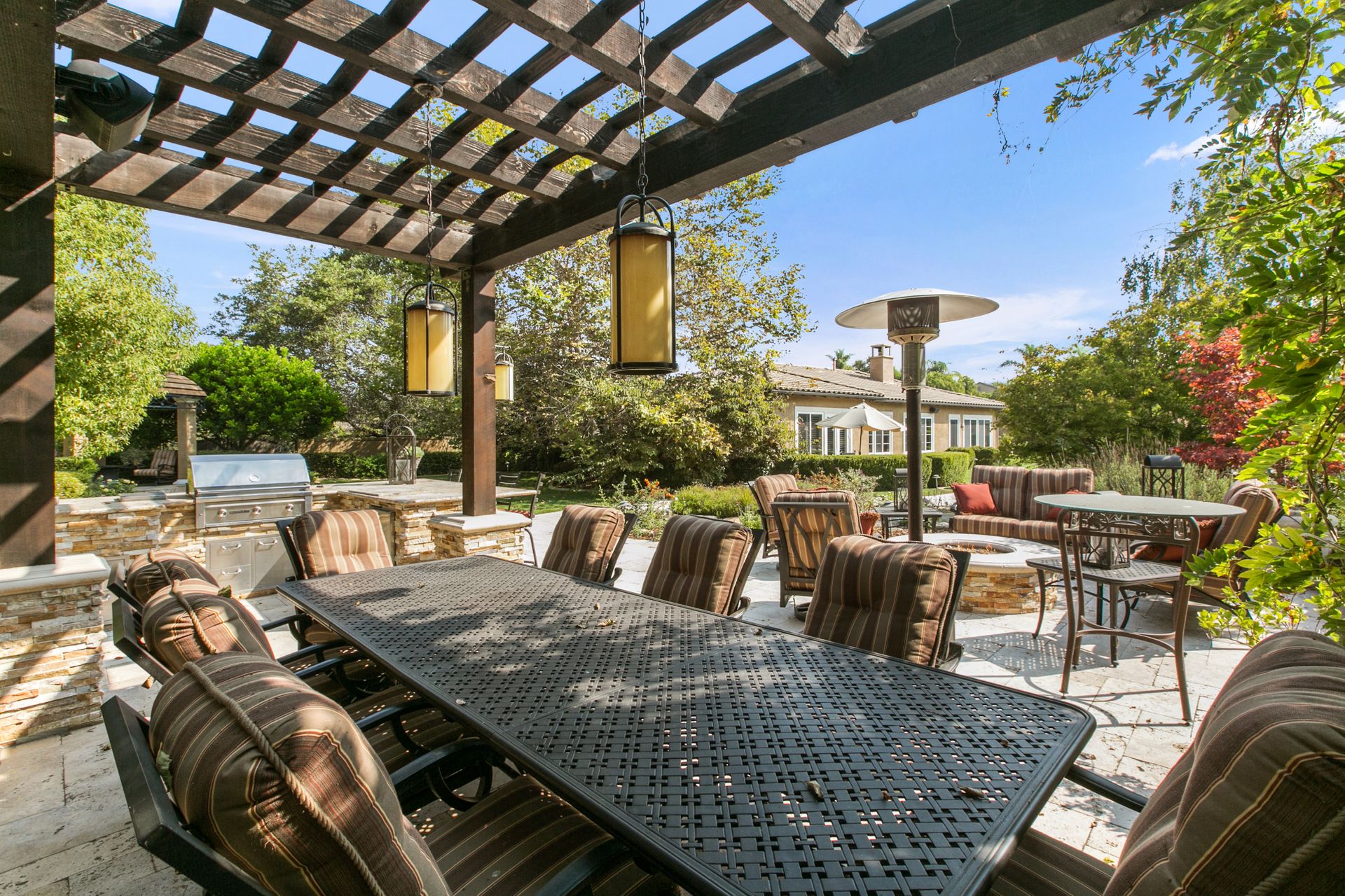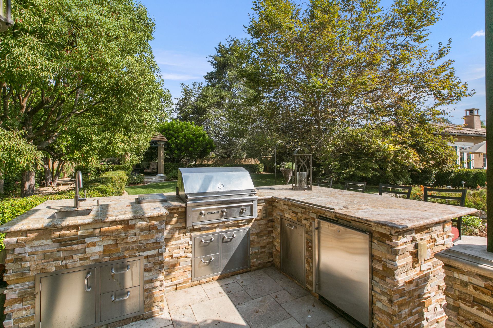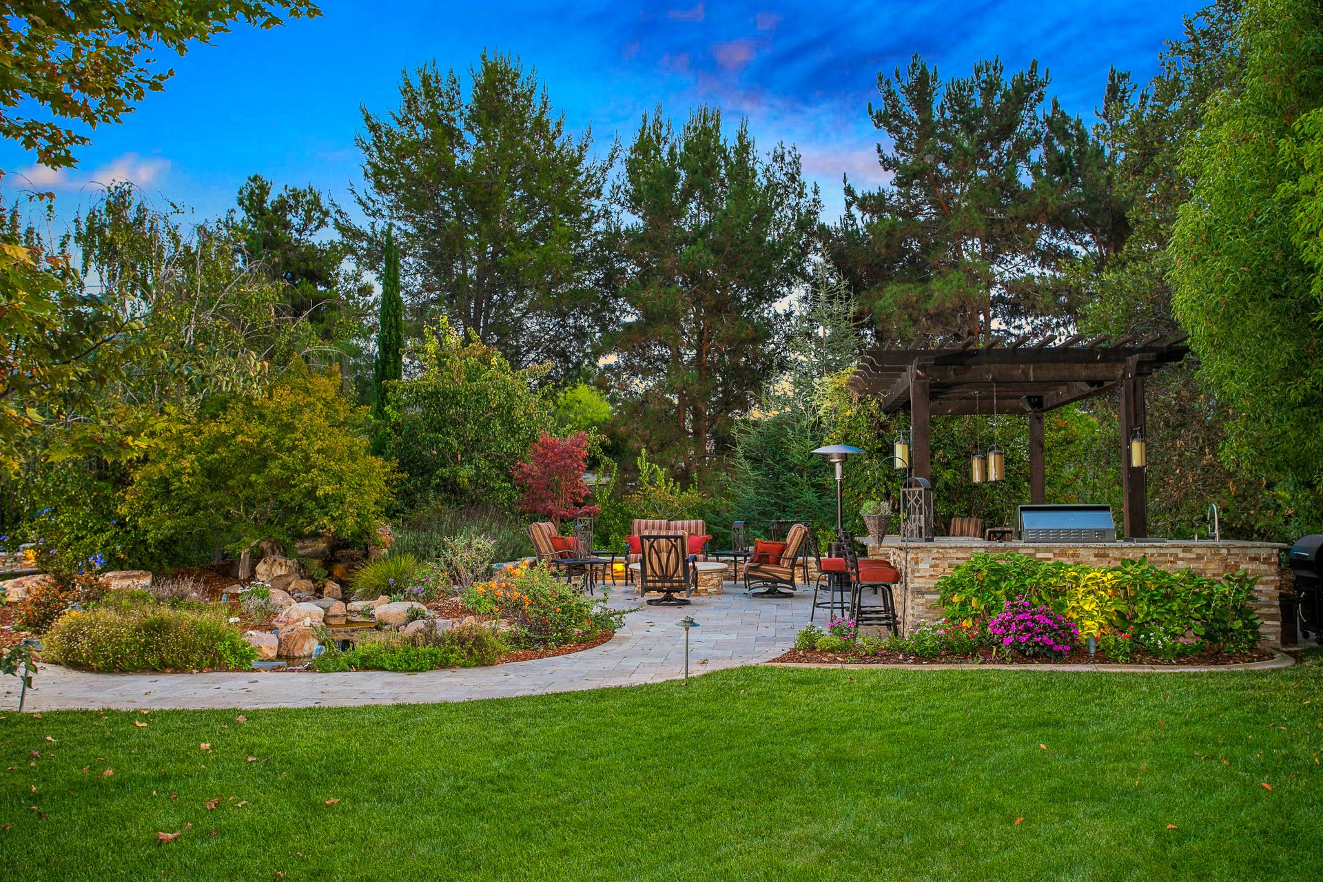 Ready to entertain? This amazing Tuscan inspired villa is located in the prestigious gated community of Stonegate offering unparalleled excellence. Upon entering the home, you will note the larger- than- life views of the amazing saltwater pool, spa, waterfalls, and fire features set in a park-like landscape offering seclusion and privacy. The kitchen, as one would expect, features the highest quality appliances including Miele and Wolf. Sommeliers may wish to end the day by selecting a bottle of vino from your SubZero wine refrigerator while noticing the imported alabaster lighting. Make your way outside to the south facing backyard and enjoy the beautiful back drop highlighted with mature Cypress. With one acre, you have multiple areas to spend time with guests. Start by cooking in your outdoor kitchen or make your way down the travertine path passing by your waterfall pond and rose garden to your covered dining area or your grand gazebo. Upon heading back in for the night, be sure to pick some citrus from the trees on the east side of the home near the potting shed where there’s plenty of space for an ADU, or an RV. With separate access through a rustic iron gate, the east side area offers many options and a previous owner once had plans to build an additional four-car garage. Once you visit this Italian inspired home, you will appreciate the finer details it has to offer and the immense potential to place your own personal touches.