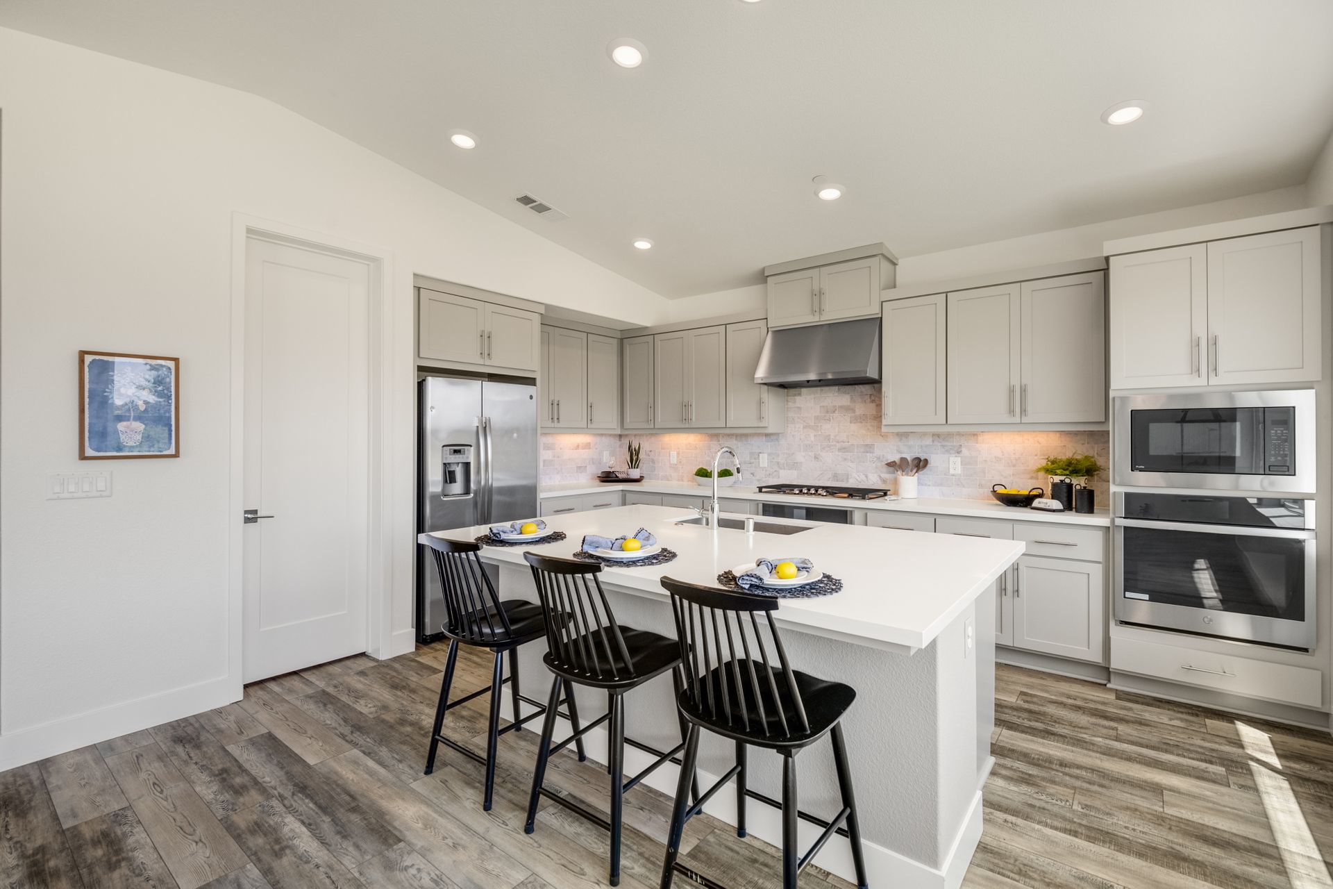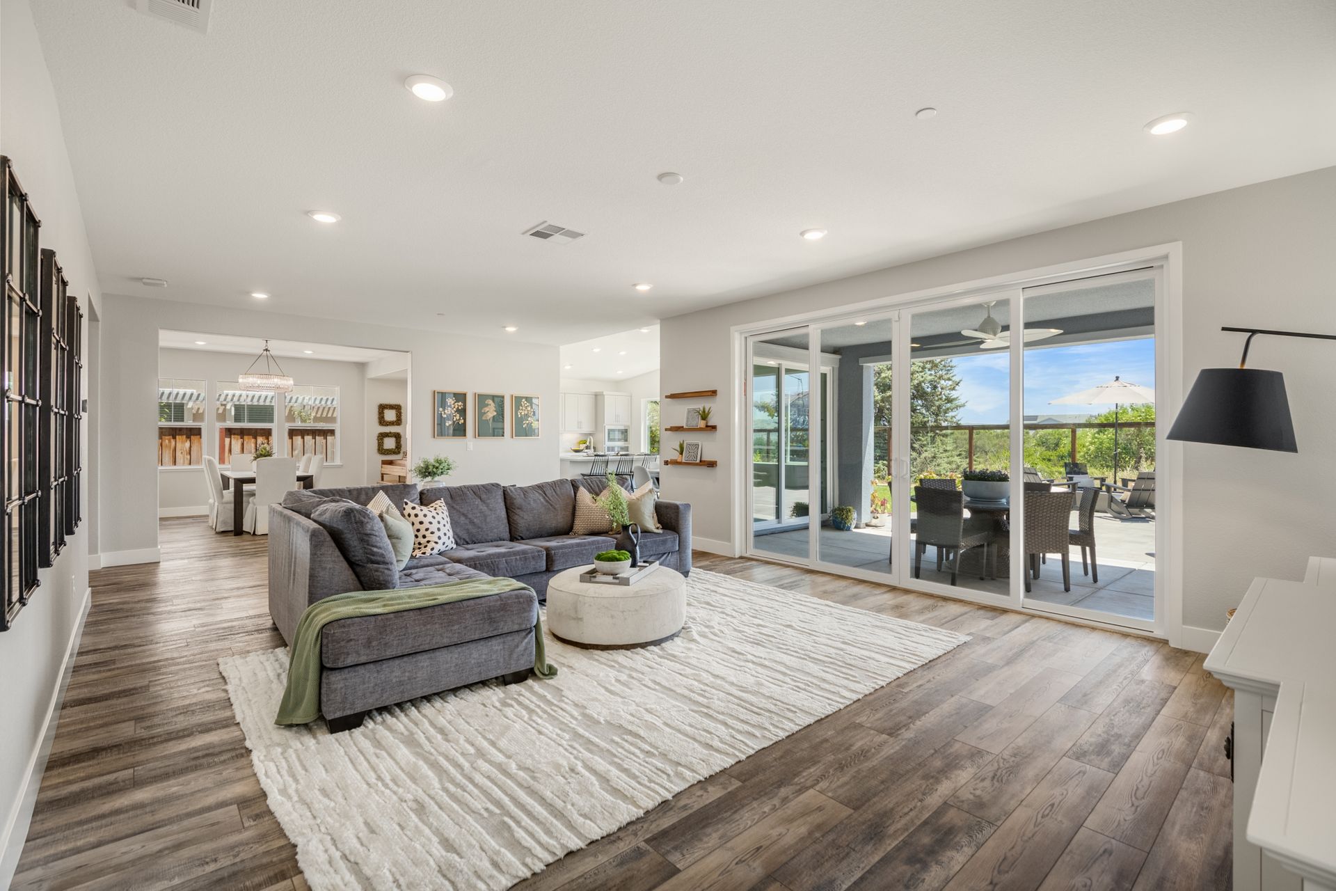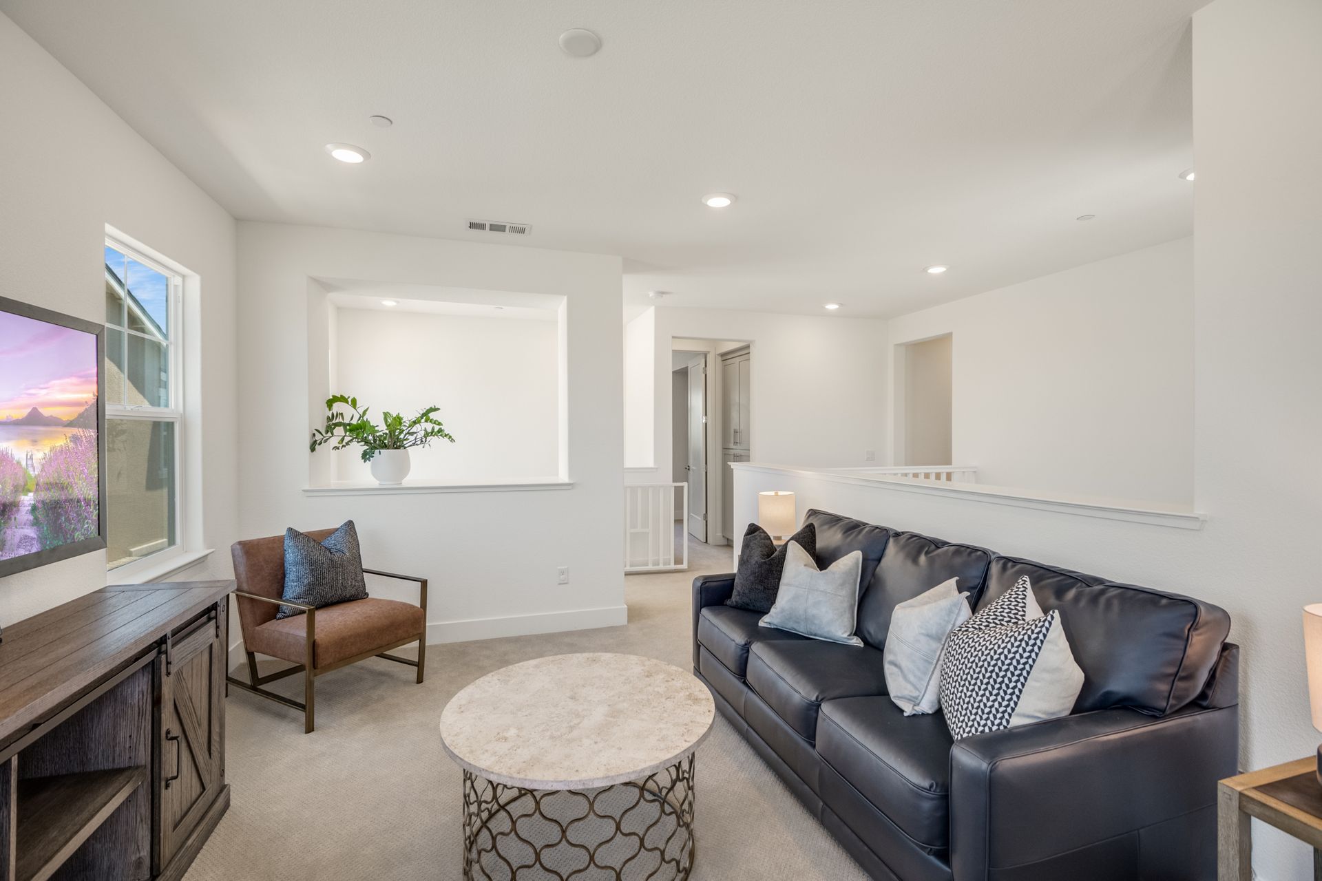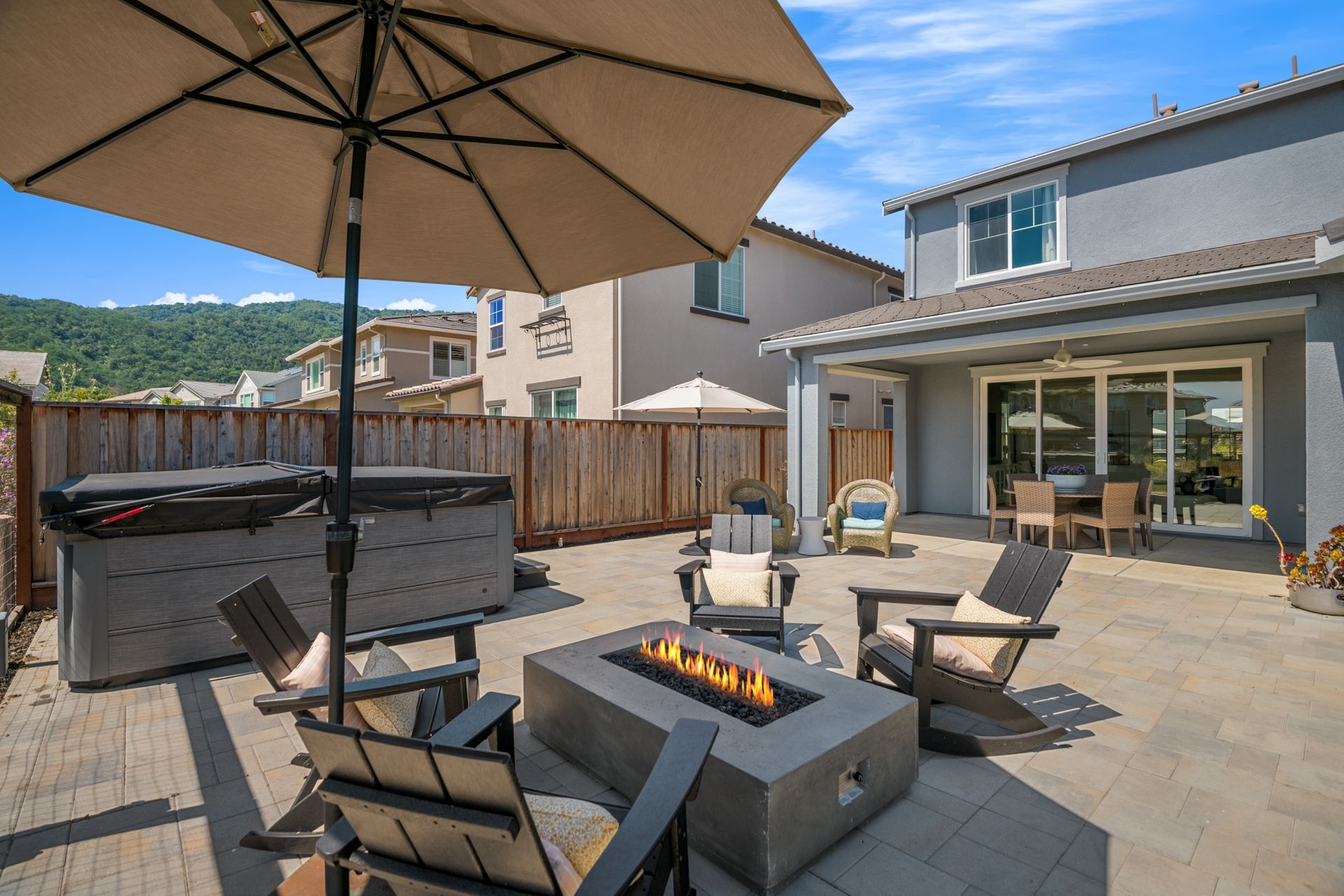 This is a stunning four-year-old home that has four bedrooms plus a loft and three full bathrooms and is almost 3,300 square feet. On the first level you will find a huge open livable area, large kitchen, separate dining room, bedroom (with Murphy bed) and full bathroom. The kitchen has quartz countertops, shaker cabinets, a gas range, spacious pantry and two ovens. There are many extra-large windows throughout, giving this home a very bright feel. Upstairs are three bedrooms, a laundry room and a loft. Some additional great features of this home are soft close drawers throughout, solar, ample storage, a tankless water heater, a water softener/filtration system, pre-wired for electrical vehicle charging, a dual washing machine and a gas line installed in the backyard for a future outdoor kitchen. Enjoy the private backyard, with a California room, a newly bought and extra-large therapeutic Sundance Maxxus hot tub and a bocce ball court or dog run, all of which opens to the open space behind with no current back neighbors. Enjoy being located in the desirable Glen Loma Ranch community surrounded by beautiful hills and scenery. This home will give you that love-at-first-sight feeling!