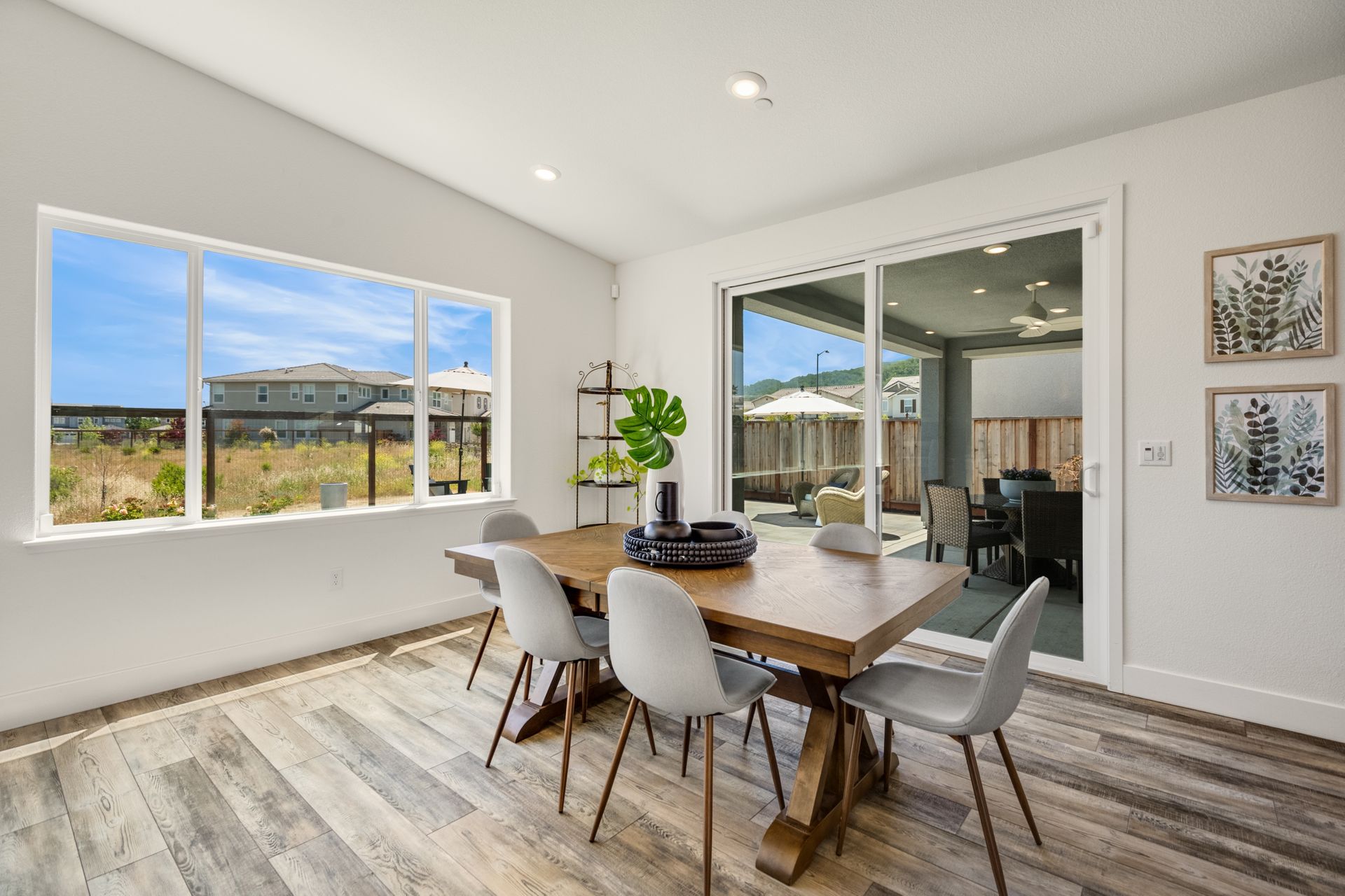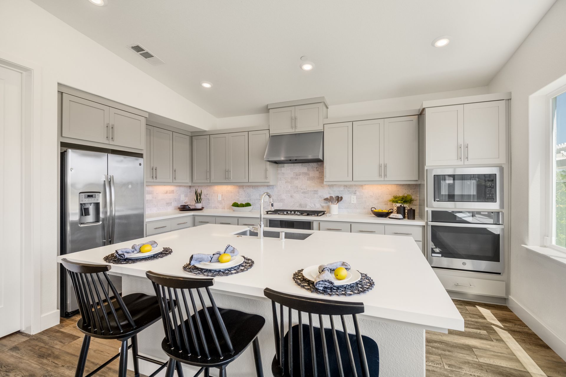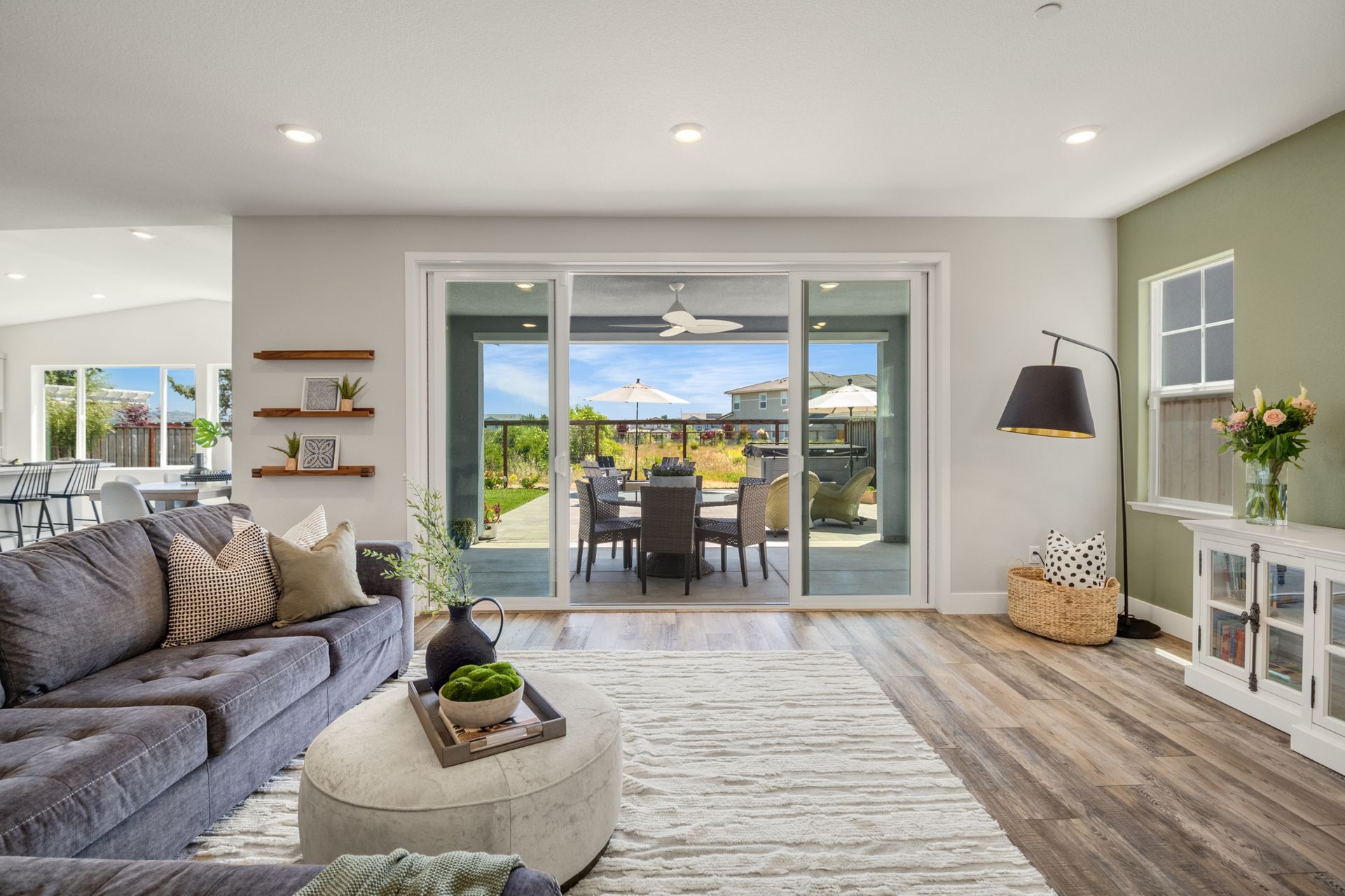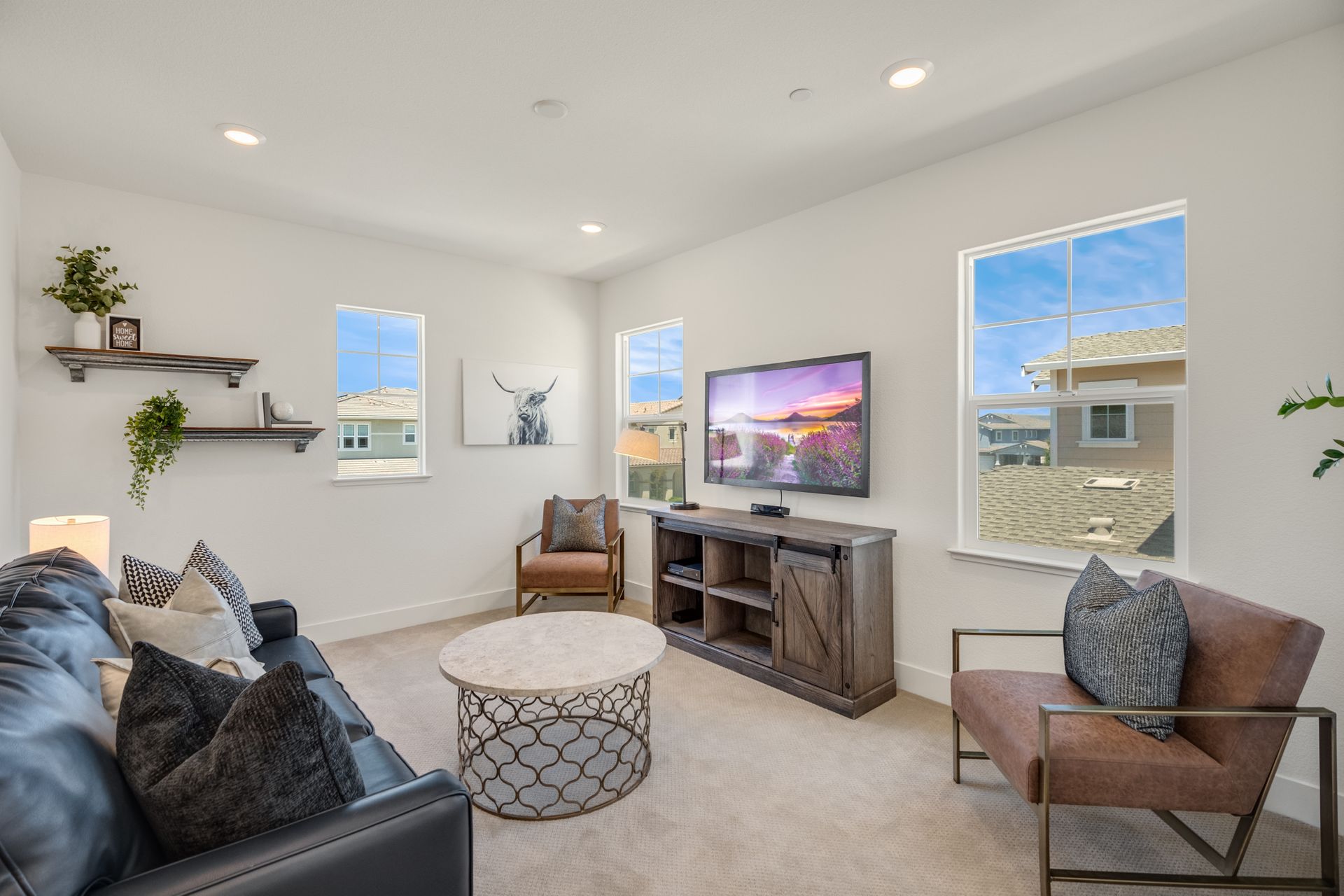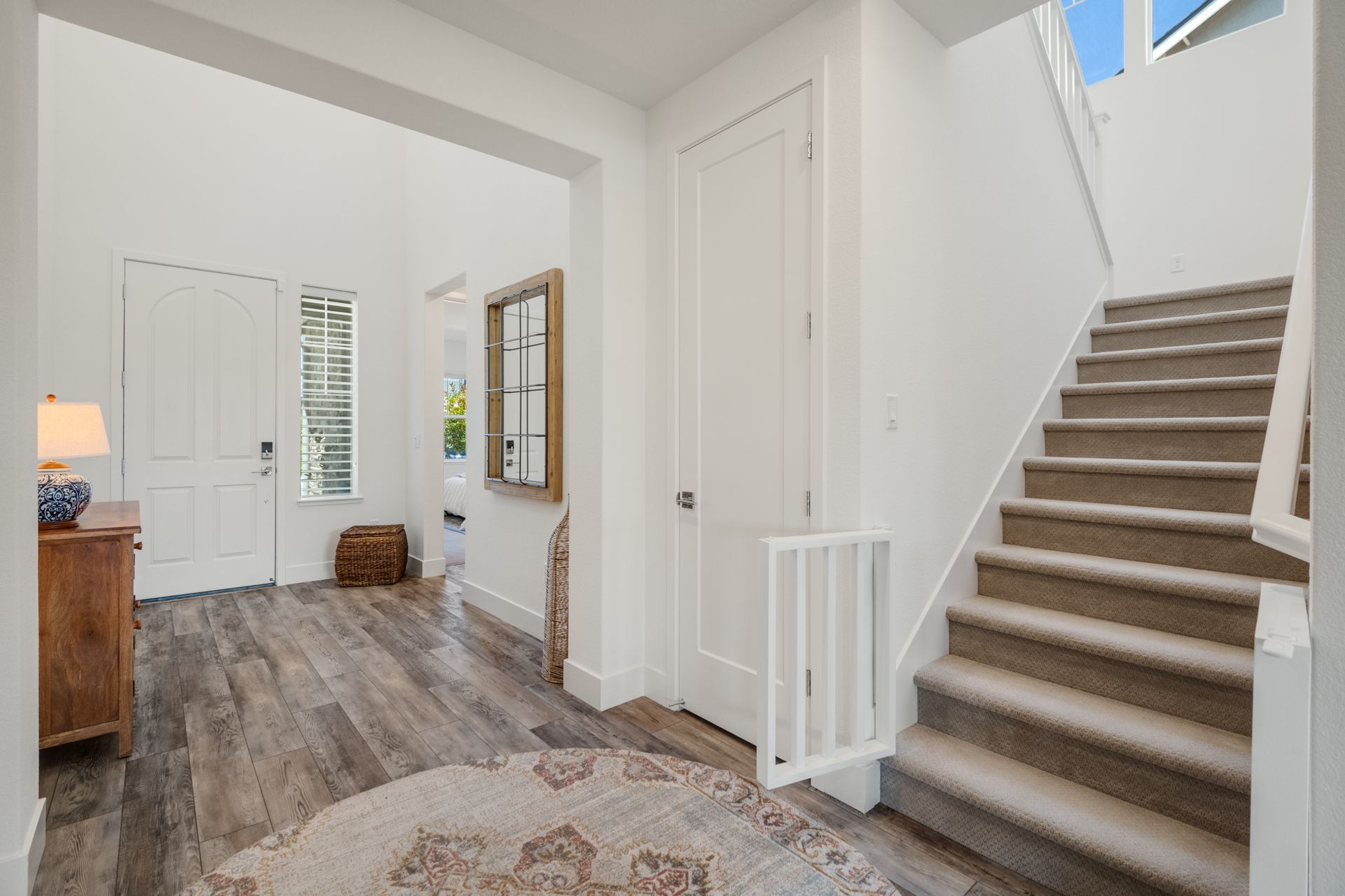 This is a stunning four-year-old home that has four bedrooms plus a loft and three full bathrooms and is almost 3,300 square feet. On the first level you will find a huge open livable area, large kitchen, separate dining room, bedroom (with Murphy bed) and full bathroom. The kitchen has quartz countertops, shaker cabinets, a gas range, spacious pantry and two ovens. There are many extra-large windows throughout, giving this home a very bright feel. Upstairs are three bedrooms, a laundry room and a loft. Some additional great features of this home are soft close drawers throughout, solar, ample storage, a tankless water heater, a water softener/filtration system, pre-wired for electrical vehicle charging, a dual washing machine and a gas line installed in the backyard for a future outdoor kitchen. Enjoy the private backyard, with a California room, a newly bought and extra-large therapeutic Sundance Maxxus hot tub and a bocce ball court or dog run, all of which opens to the open space behind with no current back neighbors. Enjoy being located in the desirable Glen Loma Ranch community surrounded by beautiful hills and scenery. This home will give you that love-at-first-sight feeling!