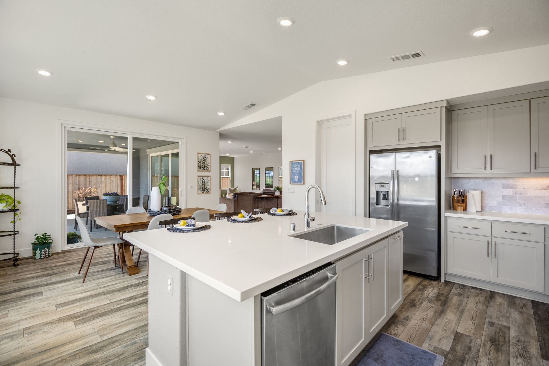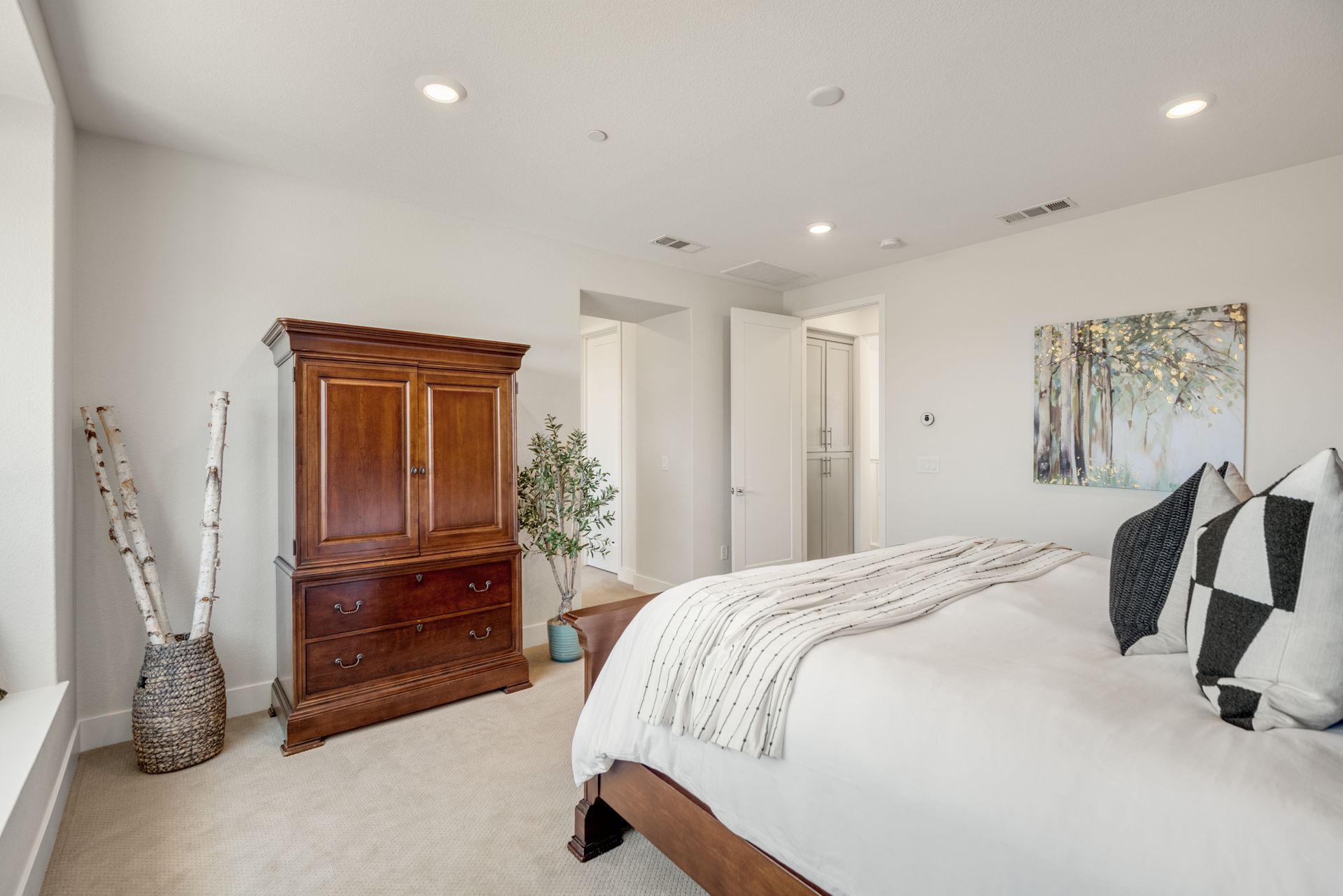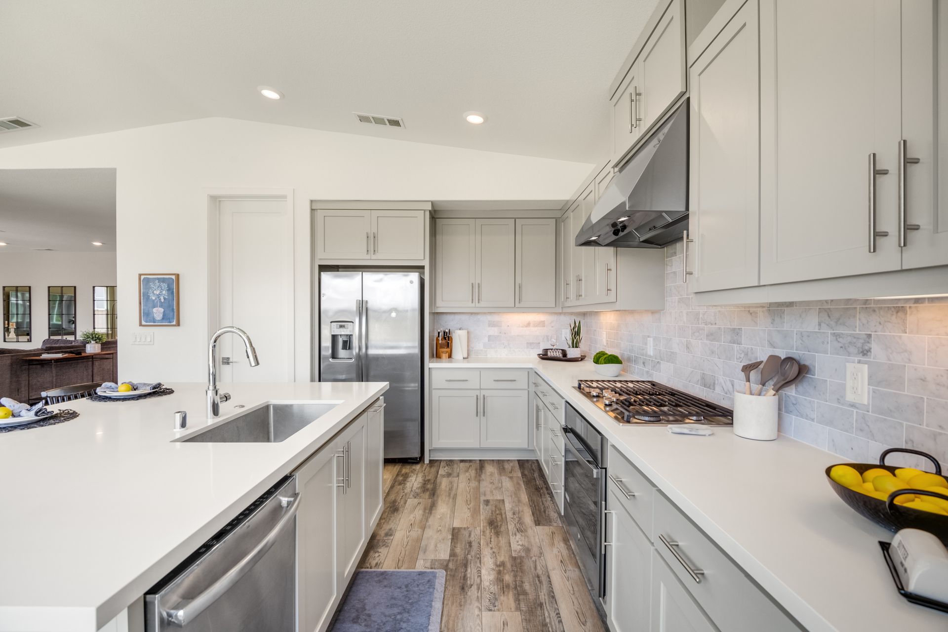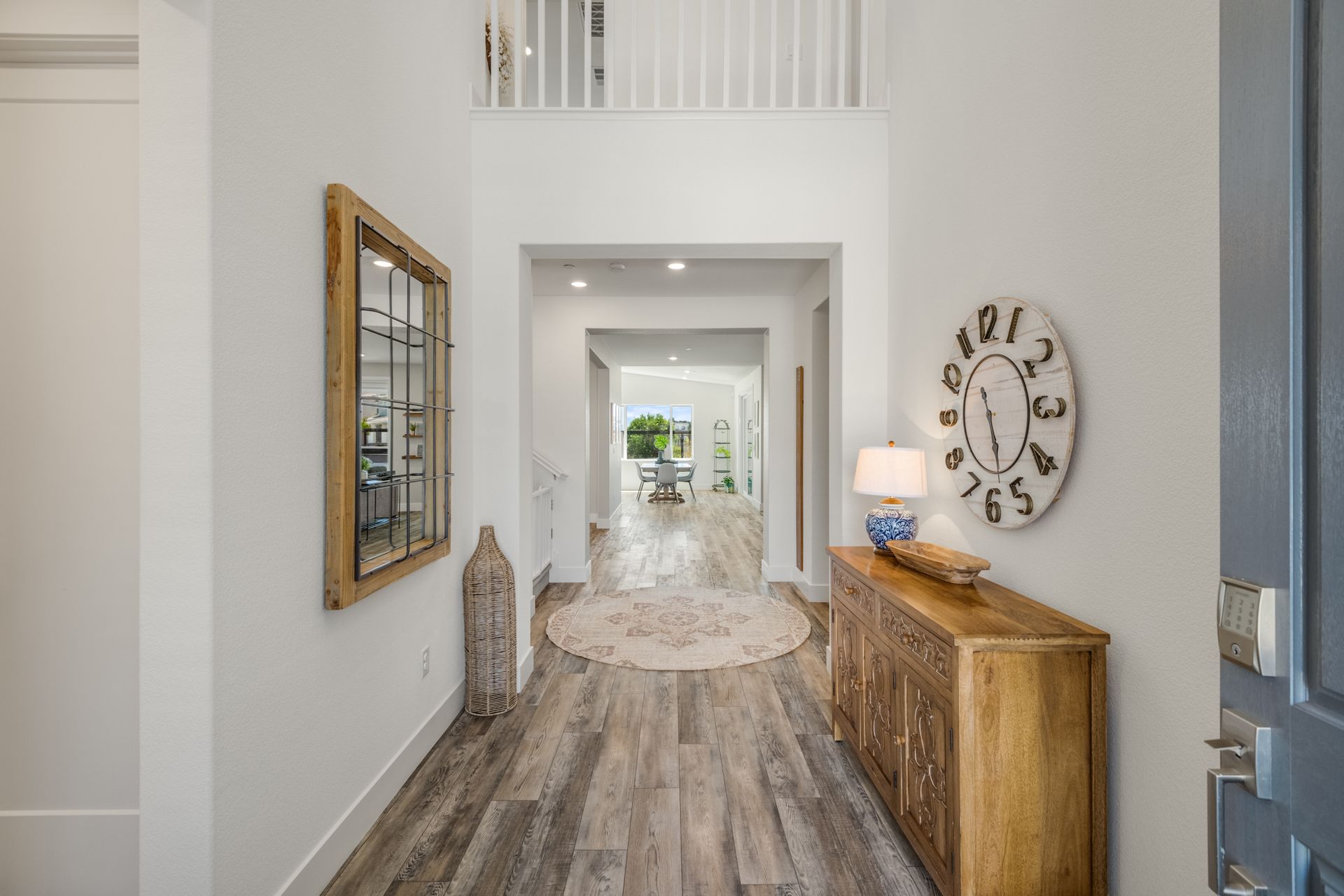 This is a stunning four-year-old home that has four bedrooms plus a loft and three full bathrooms and is almost 3,300 square feet. On the first level you will find a huge open livable area, large kitchen, separate dining room, bedroom (with Murphy bed) and full bathroom. The kitchen has quartz countertops, shaker cabinets, a gas range, spacious pantry and two ovens. There are many extra-large windows throughout, giving this home a very bright feel. Upstairs are three bedrooms, a laundry room and a loft. Some additional great features of this home are soft close drawers throughout, solar, ample storage, a tankless water heater, a water softener/filtration system, pre-wired for electrical vehicle charging, a dual washing machine and a gas line installed in the backyard for a future outdoor kitchen. Enjoy the private backyard, with a California room, a newly bought and extra-large therapeutic Sundance Maxxus hot tub and a bocce ball court or dog run, all of which opens to the open space behind with no current back neighbors. Enjoy being located in the desirable Glen Loma Ranch community surrounded by beautiful hills and scenery. This home will give you that love-at-first-sight feeling!