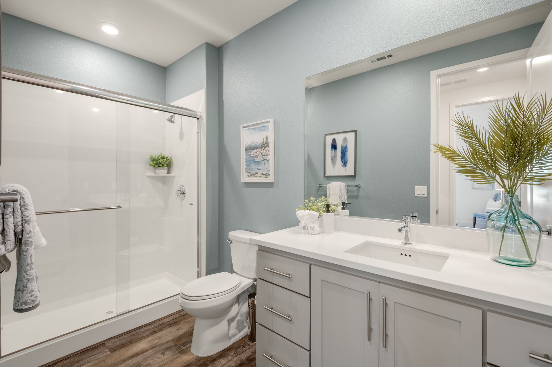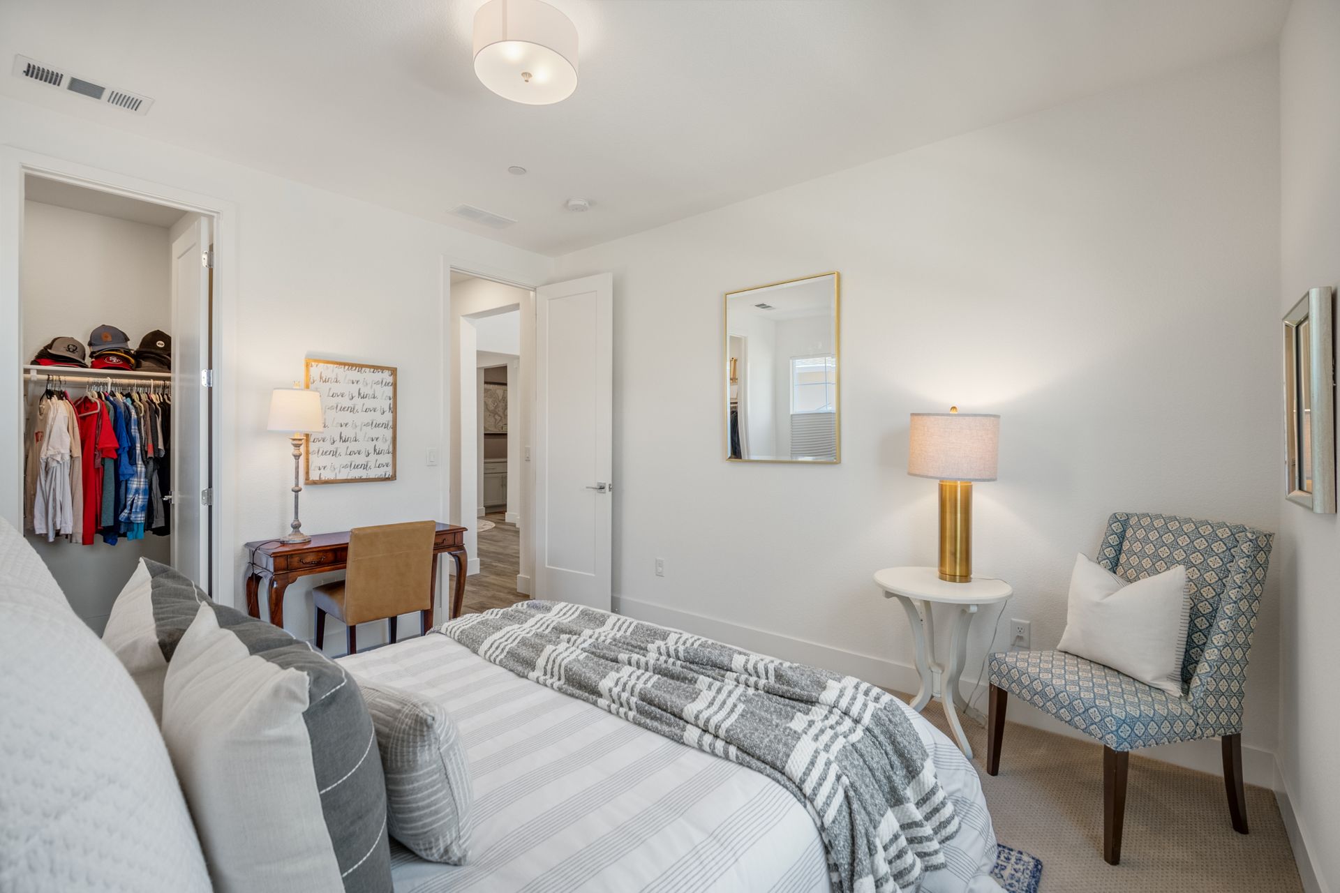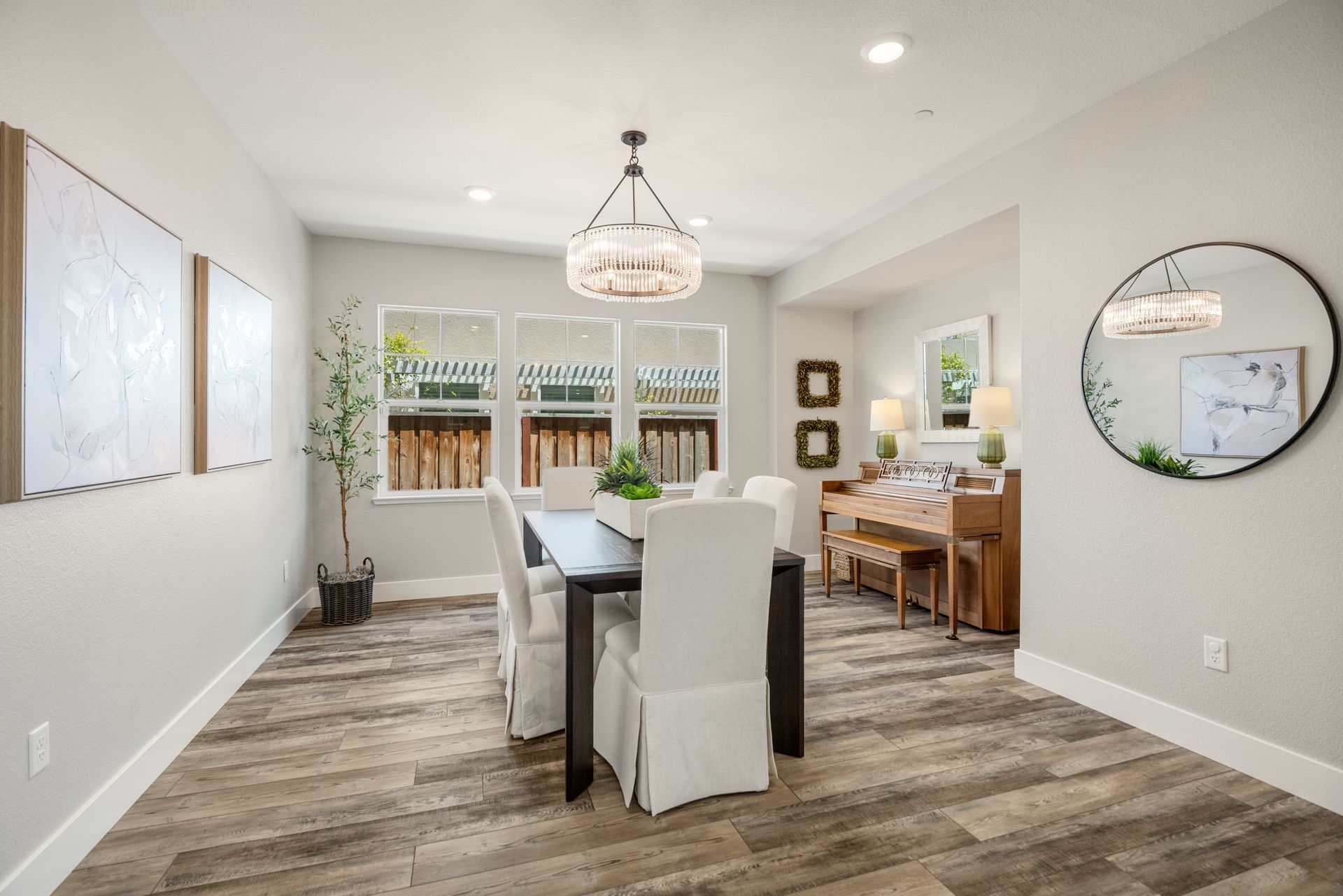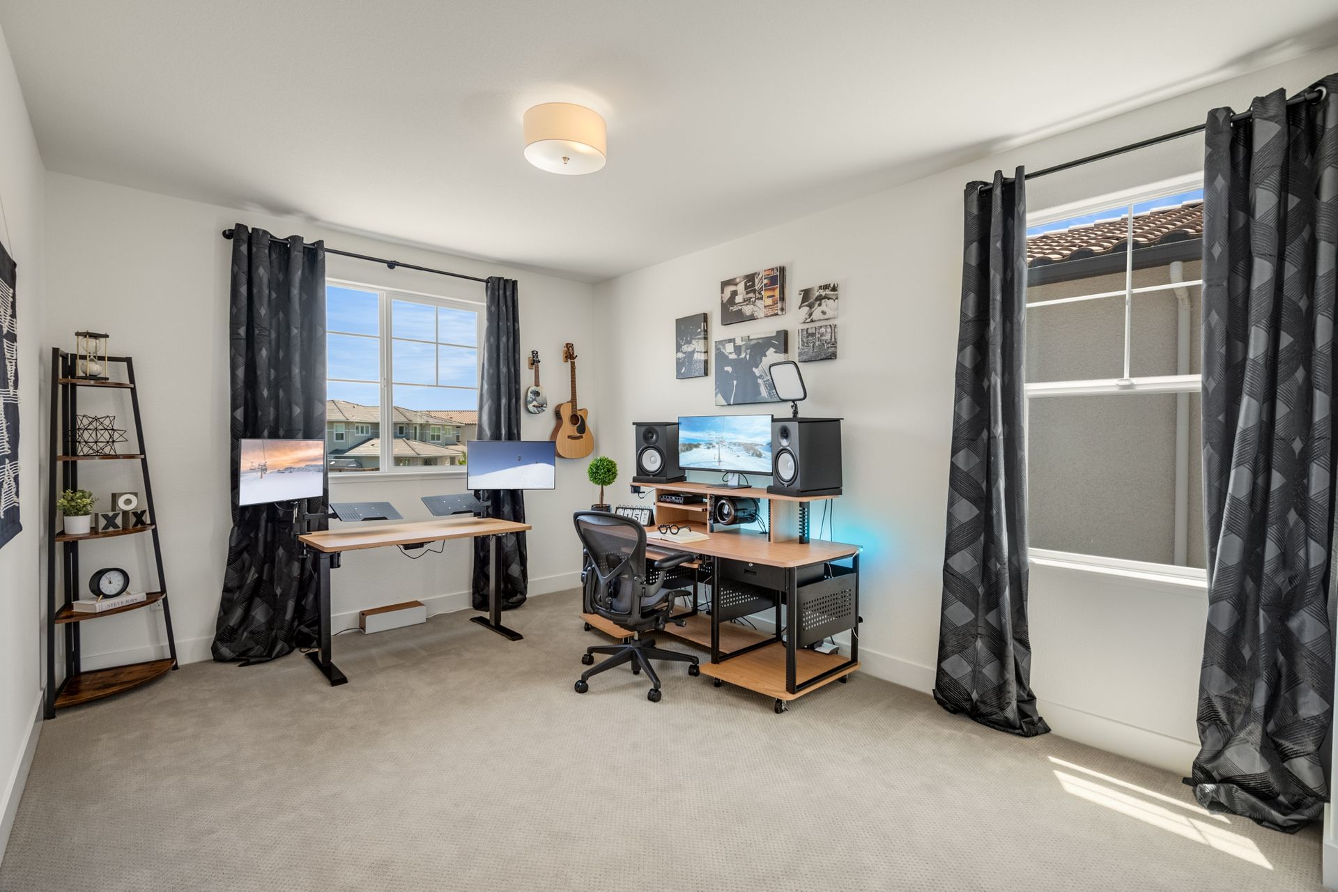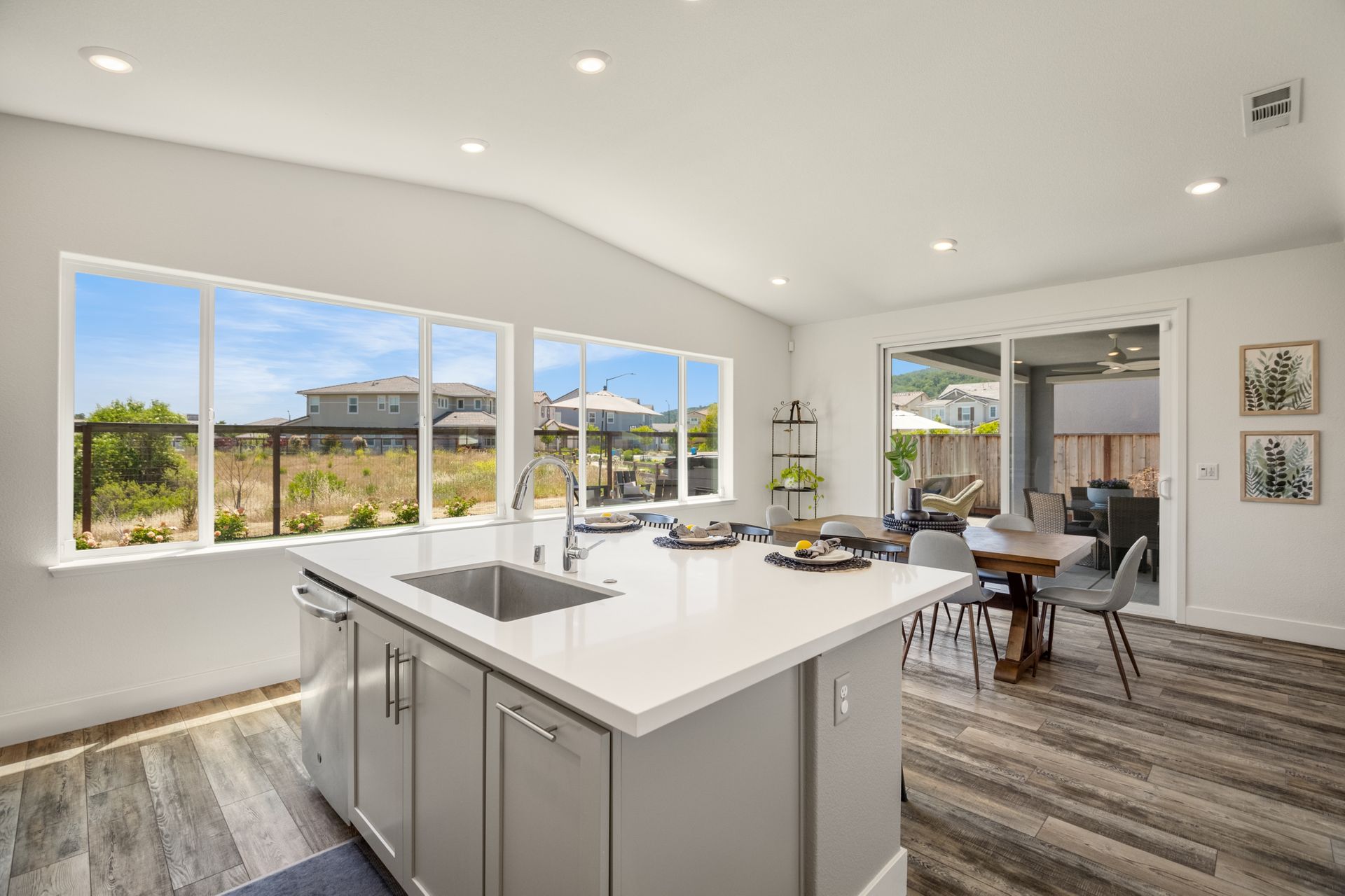This is a stunning four-year-old home that has four bedrooms plus a loft and three full bathrooms and is almost 3,300 square feet. On the first level you will find a huge open livable area, large kitchen, separate dining room, bedroom (with Murphy bed) and full bathroom. The kitchen has quartz countertops, shaker cabinets, a gas range, spacious pantry and two ovens. There are many extra-large windows throughout, giving this home a very bright feel. Upstairs are three bedrooms, a laundry room and a loft. Some additional great features of this home are soft close drawers throughout, solar, ample storage, a tankless water heater, a water softener/filtration system, pre-wired for electrical vehicle charging, a dual washing machine and a gas line installed in the backyard for a future outdoor kitchen. Enjoy the private backyard, with a California room, a newly bought and extra-large therapeutic Sundance Maxxus hot tub and a bocce ball court or dog run, all of which opens to the open space behind with no current back neighbors. Enjoy being located in the desirable Glen Loma Ranch community surrounded by beautiful hills and scenery. This home will give you that love-at-first-sight feeling!