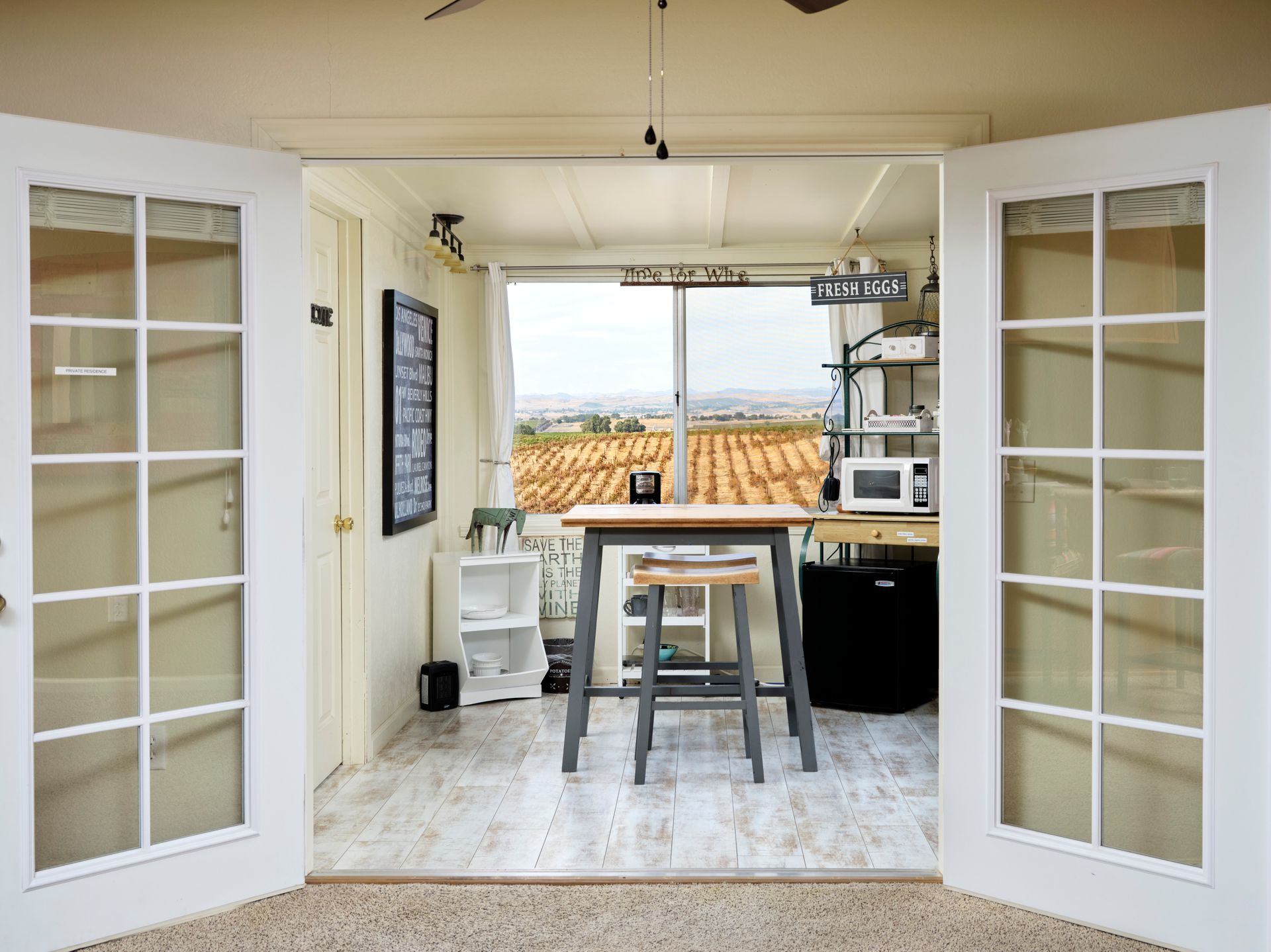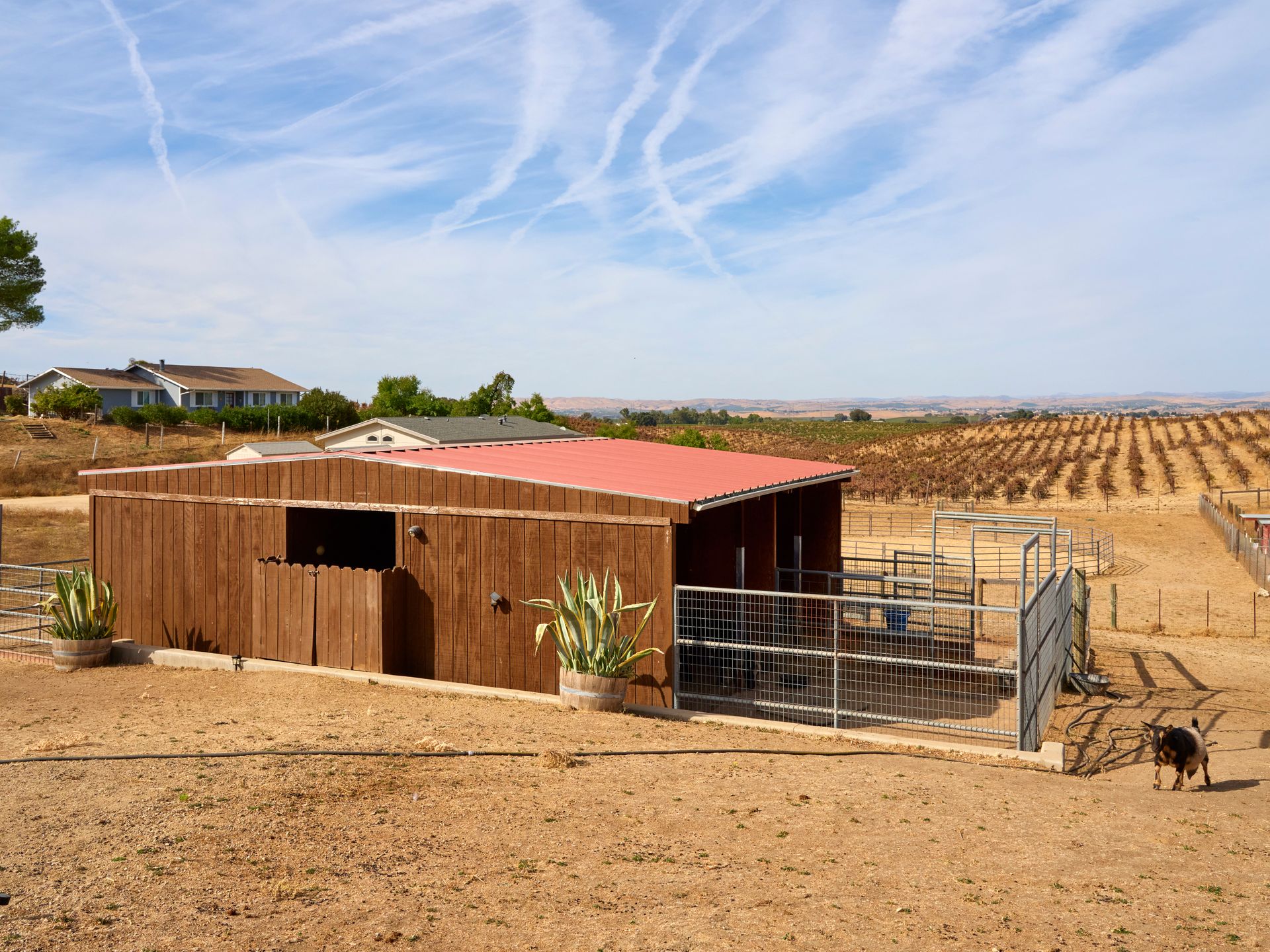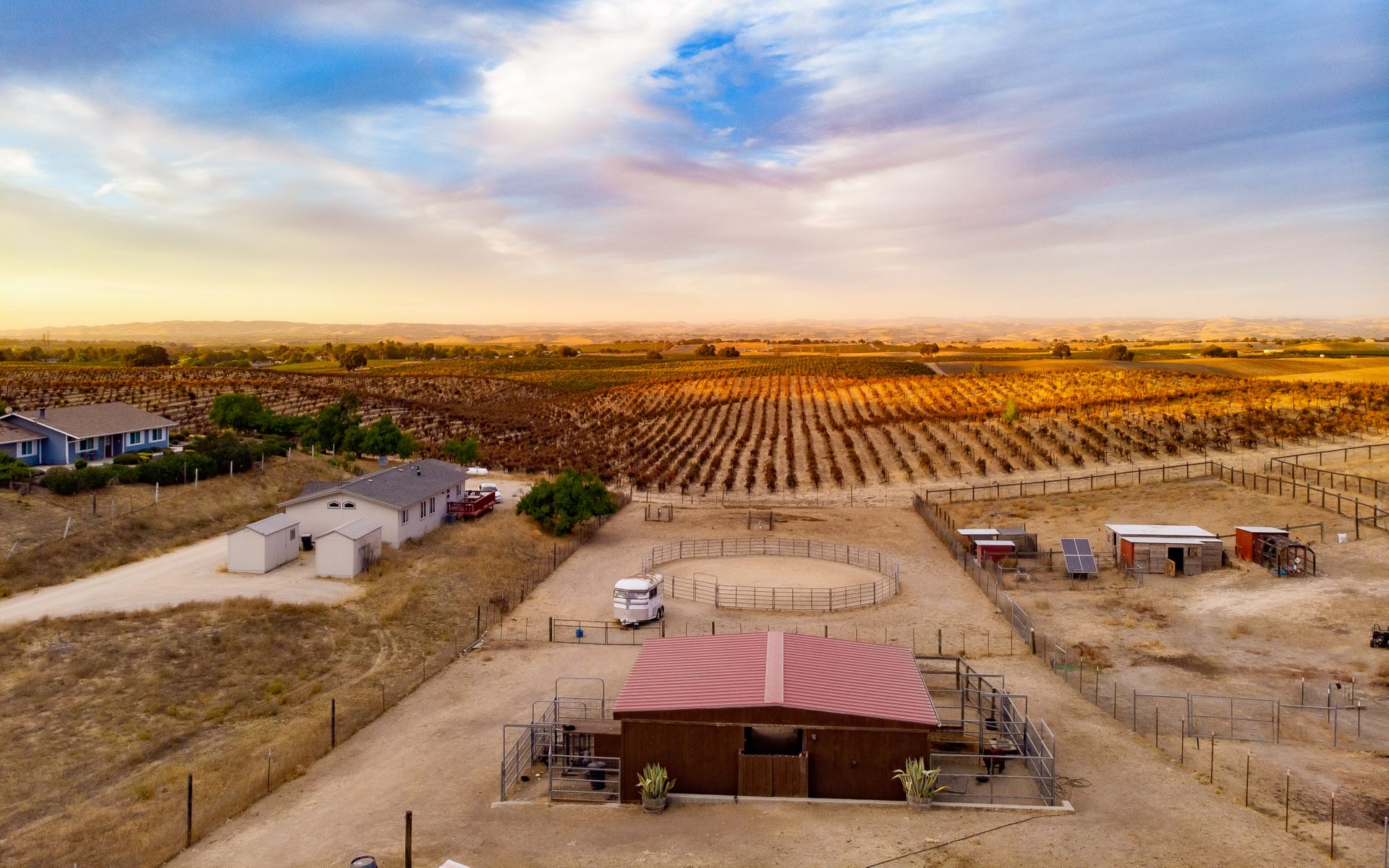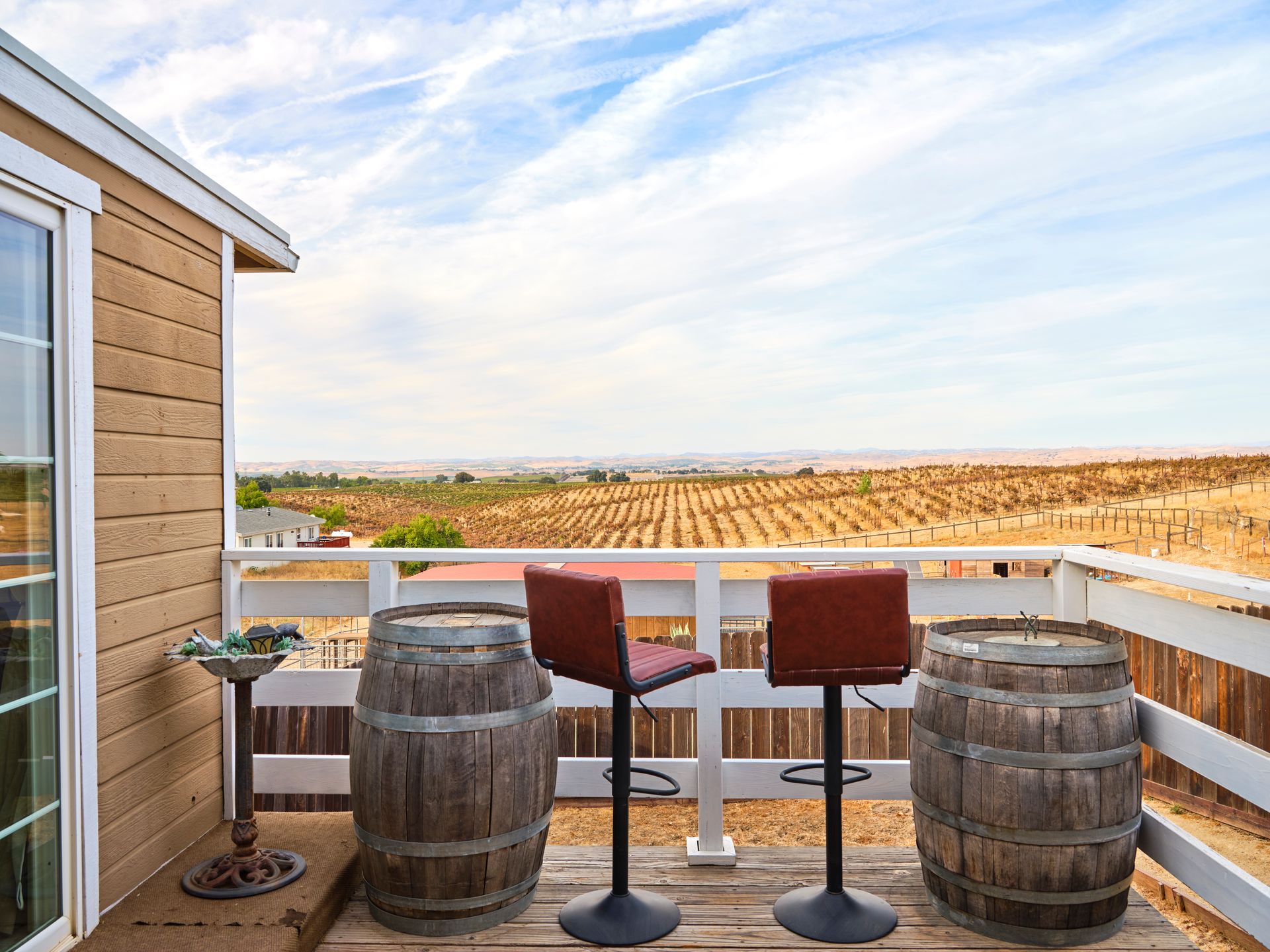 Escape the city and live the country life in Paso Robles. This one acre property offers the perfect haven for equestrian enthusiasts but also offers an income-producing Airbnb experience. Situated in the heart of wine country, this home boasts of breathtaking views of vineyards and rolling hills, creating an idyllic backdrop for homeowners and guests seeking tranquility. With proximity to renowned wineries this property is a prime location for those looking to explore Paso Robles wine culture, music venues and local Paso sights. Don't miss out on owning a piece of paradise where horses, hospitality and vineyard vistas harmoniously coexist. This is a single level 4 bedroom 3 bath home with one of the bedroom and baths converted to a private entry Airbnb with sunroom and deck. Entry to the home via a circular driveway and two car garage with RV access and storage. This country home is cozy with lots of south facing light, a wood burning fireplace for those winter evenings, French doors, custom sliding barn door, open living room and dining area with ceiling fans in every room. The kitchen is adjoined with a separate laundry room with additional storage and pantry area. Private backyard is fenced separately from the barn area with fabulous sunset views to enjoy overlooking the vineyards and rolling hills from the deck. There is 4 stall barn with paddocks, pasture, and round pen. The entire property is fenced with access gates on both sides. Perfectly set up for someone who would like to have their horses and livestock live onsite. Airbnb can also be used as an additional guest room as an option.