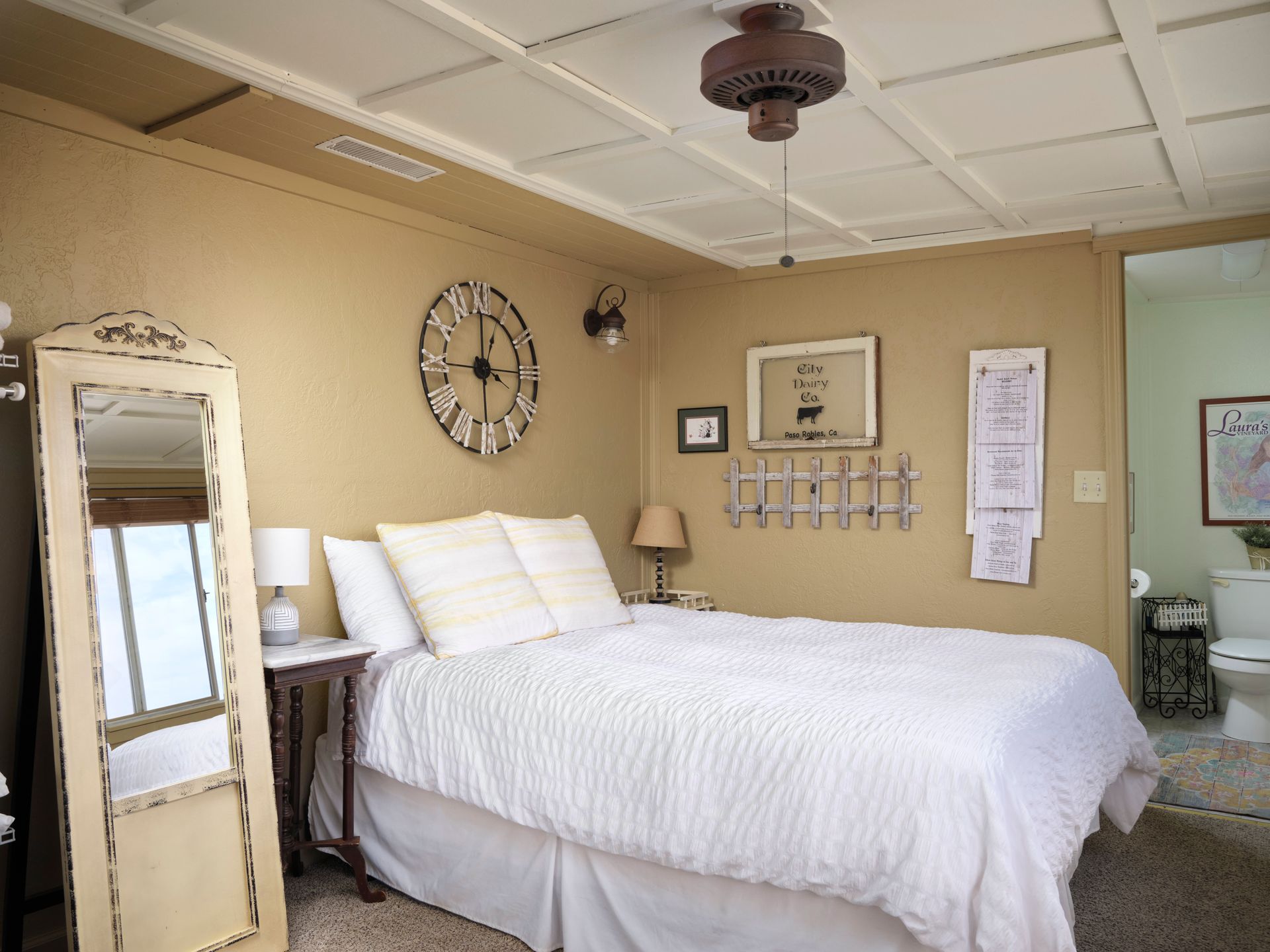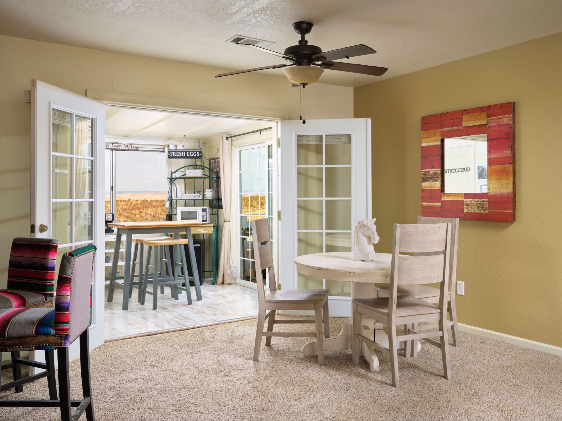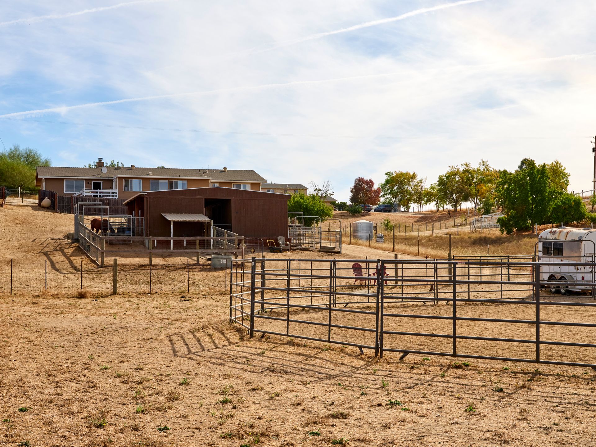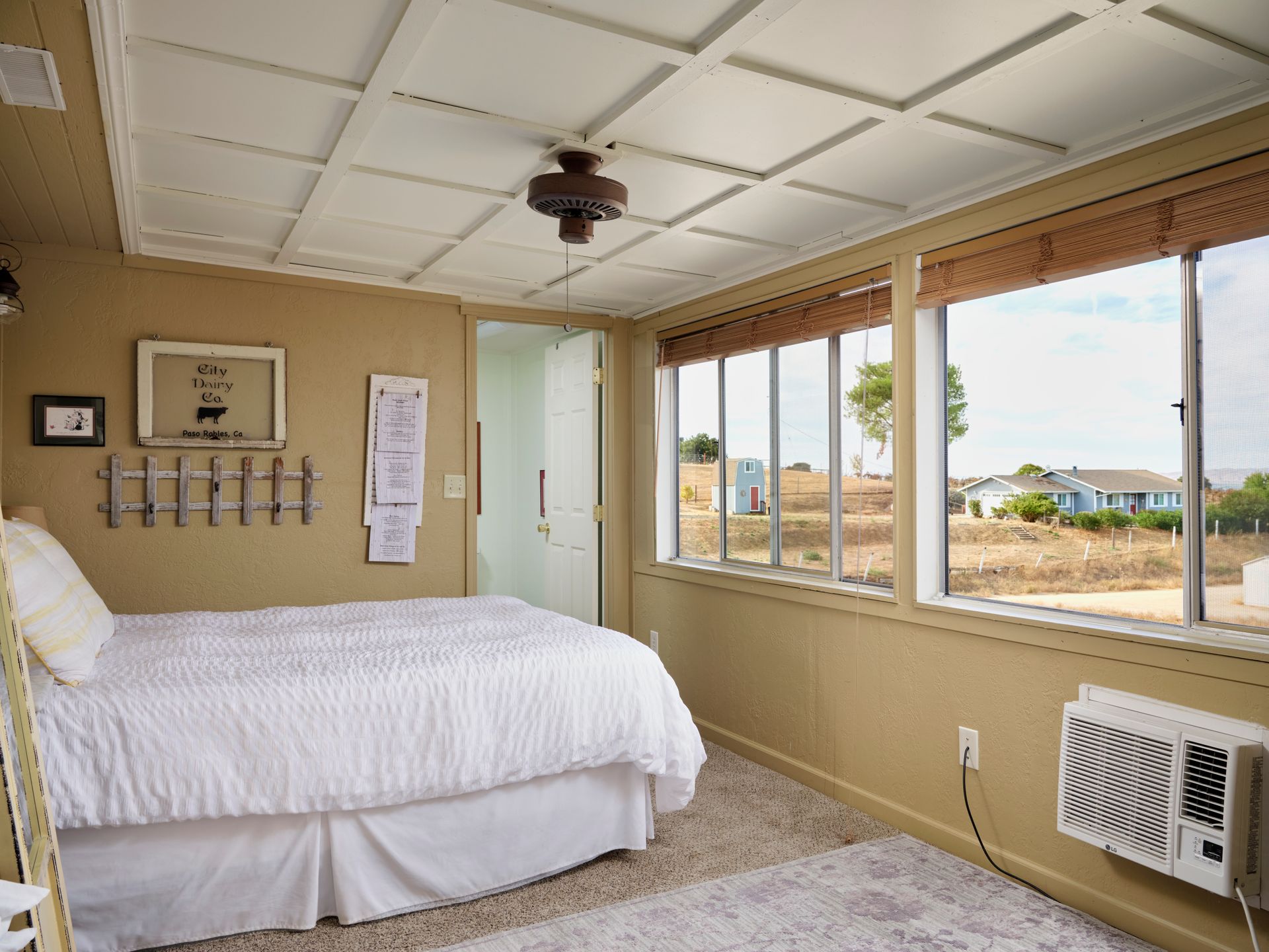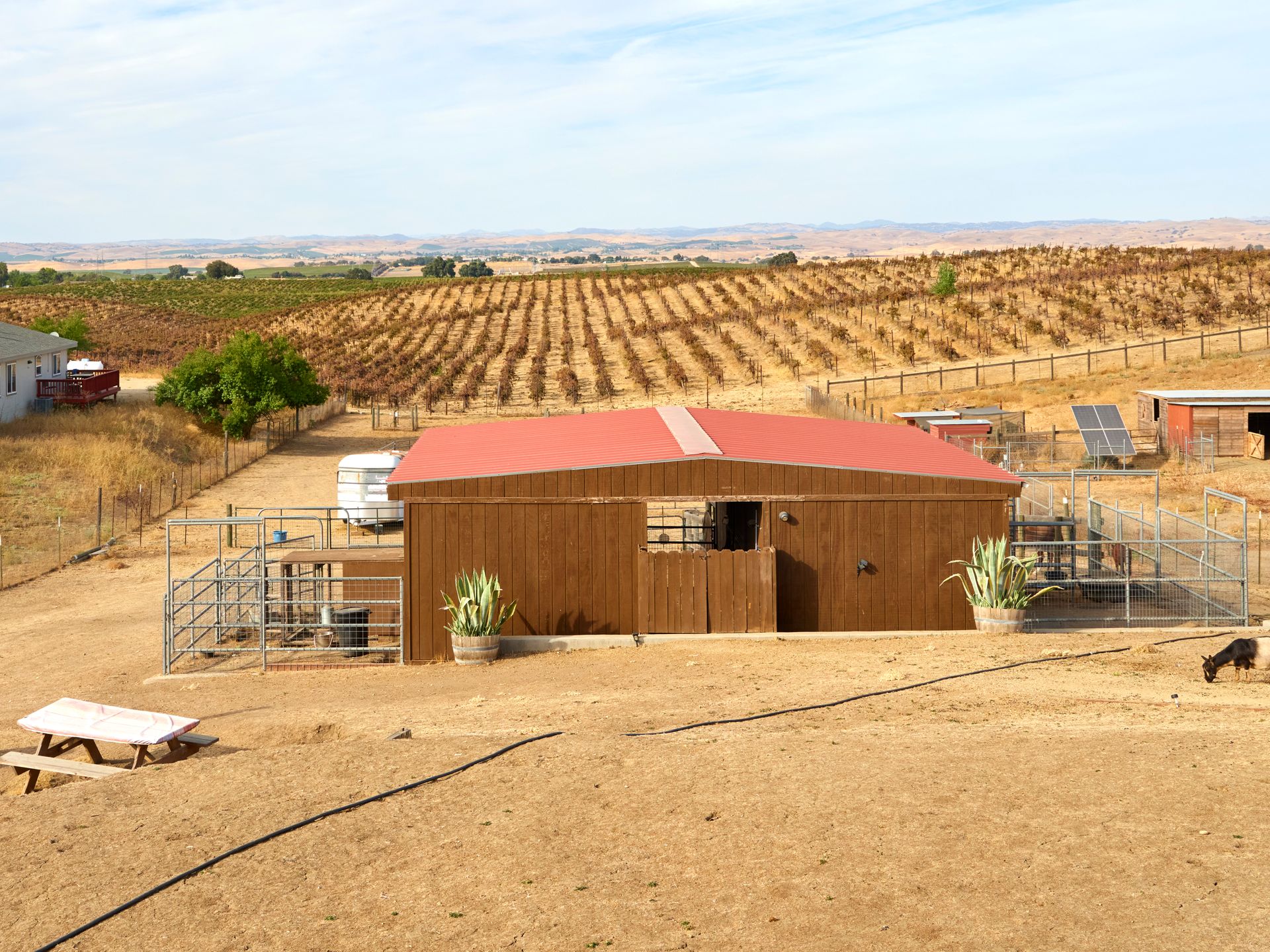 Escape the city and live the country life in Paso Robles. This one acre property offers the perfect haven for equestrian enthusiasts but also offers an income-producing Airbnb experience. Situated in the heart of wine country, this home boasts of breathtaking views of vineyards and rolling hills, creating an idyllic backdrop for homeowners and guests seeking tranquility. With proximity to renowned wineries this property is a prime location for those looking to explore Paso Robles wine culture, music venues and local Paso sights. Don't miss out on owning a piece of paradise where horses, hospitality and vineyard vistas harmoniously coexist. This is a single level 4 bedroom 3 bath home with one of the bedroom and baths converted to a private entry Airbnb with sunroom and deck. Entry to the home via a circular driveway and two car garage with RV access and storage. This country home is cozy with lots of south facing light, a wood burning fireplace for those winter evenings, French doors, custom sliding barn door, open living room and dining area with ceiling fans in every room. The kitchen is adjoined with a separate laundry room with additional storage and pantry area. Private backyard is fenced separately from the barn area with fabulous sunset views to enjoy overlooking the vineyards and rolling hills from the deck. There is 4 stall barn with paddocks, pasture, and round pen. The entire property is fenced with access gates on both sides. Perfectly set up for someone who would like to have their horses and livestock live onsite. Airbnb can also be used as an additional guest room as an option.