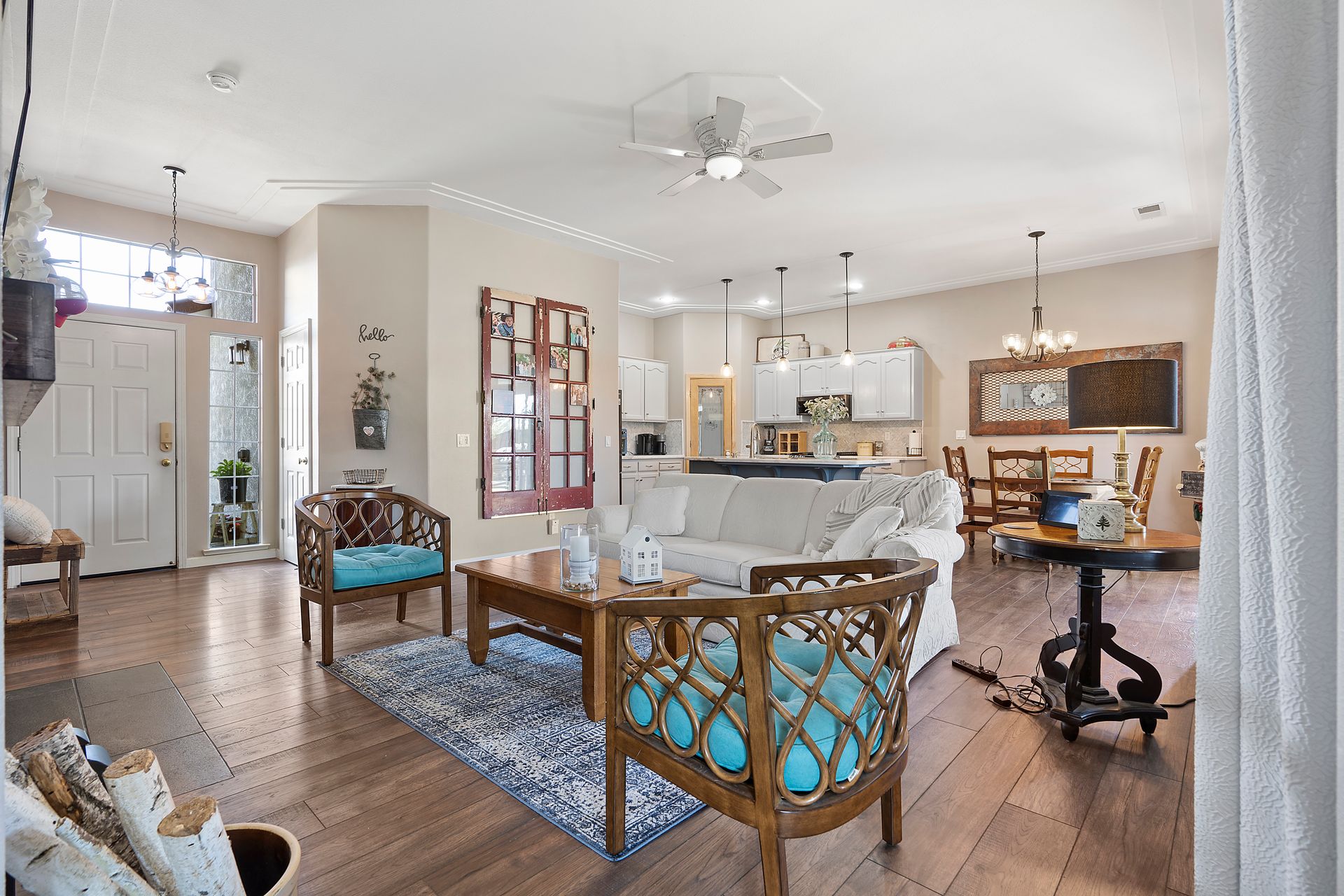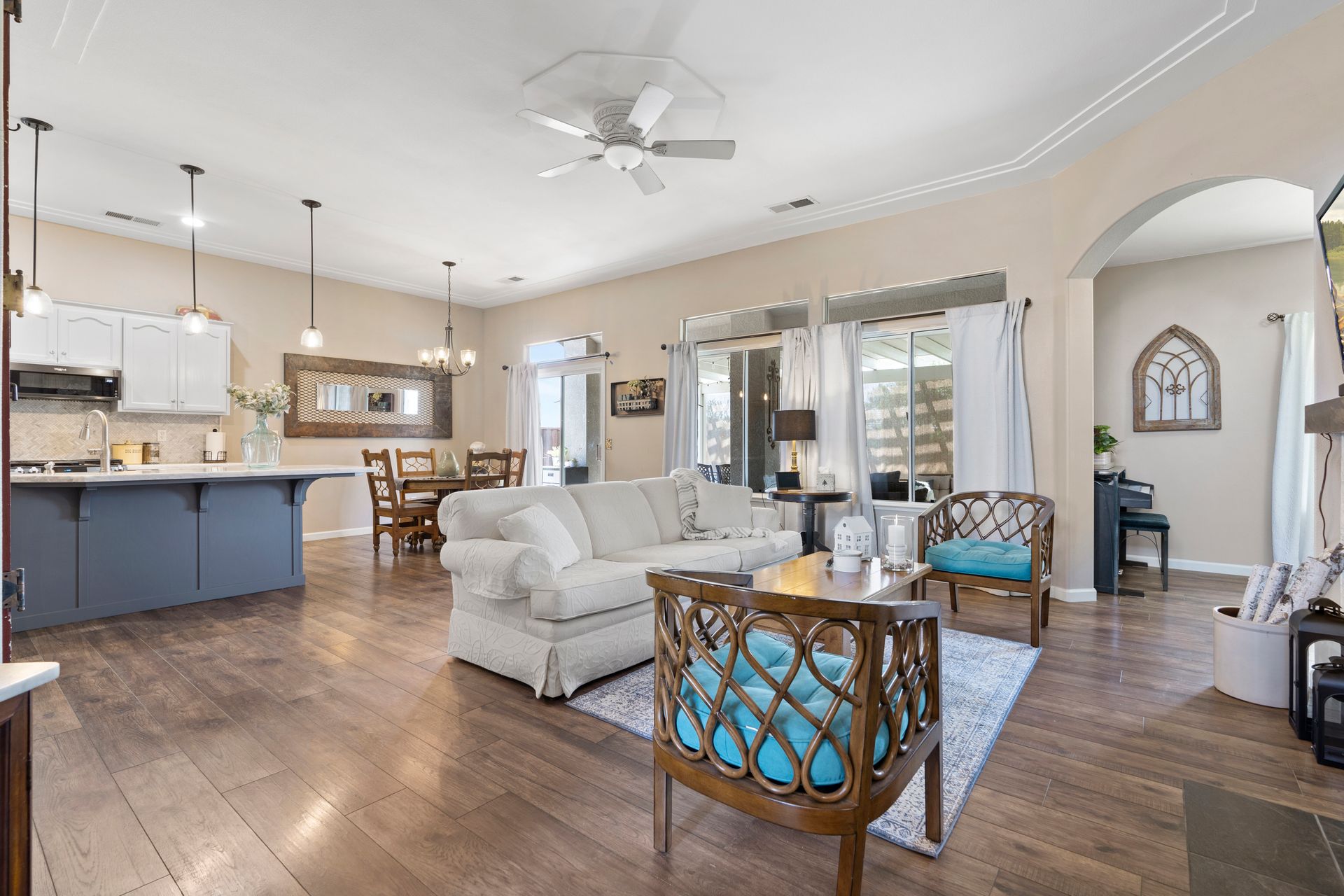 This charming property offers an ideal combination of comfort, functionality and modern aesthetics. Boasting two bedrooms and two bathrooms, this home also features a dedicated office space, giving you the flexibility to work from the comfort of your own abode. Recently updated throughout, this residence showcases a contemporary design and stylish finishes that elevate its appeal. The thoughtfully designed layout ensures a seamless flow between the livable spaces, creating a welcoming ambiance that is ideal for both relaxation and entertaining. One of the standout features of this home is the covered back patio, which provides the ideal retreat for outdoor gatherings or simply enjoying the peaceful surroundings. Whether you want to unwind with a book or host a barbecue with guests, this outdoor space offers ample opportunities for making lasting memories. Situated in the prestigious Castle Oaks golf course community, this property allows you to embrace an active and luxurious lifestyle. Golf enthusiasts will be delighted to have easy access to the beautifully manicured fairways and greens, creating the perfect setting for practicing their swing or enjoying a leisurely stroll.