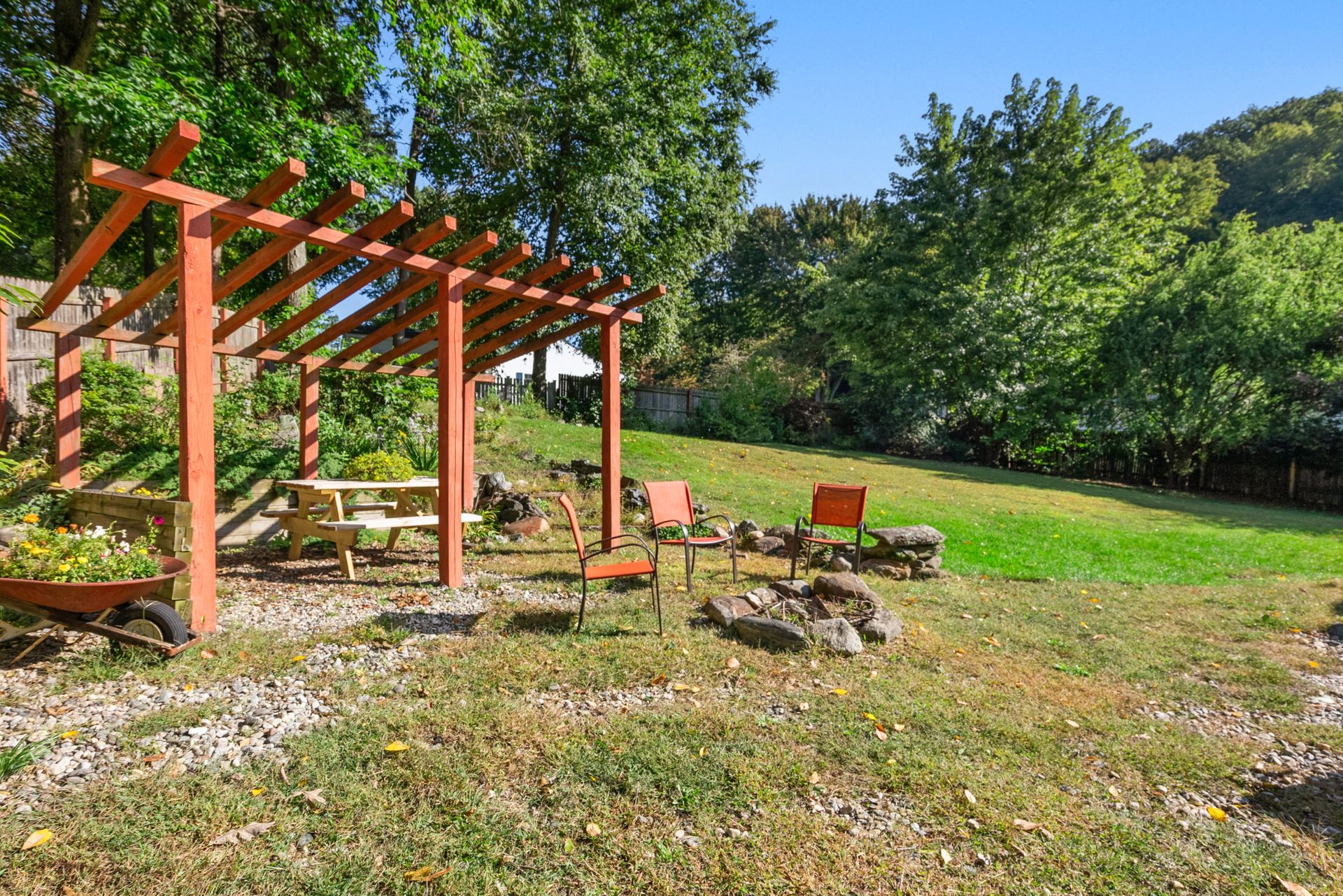 You can create your own private retreat in this large, fenced yard with a patio, firepit, pergola, shed and gardens. Whether relaxing or entertaining, you'll enjoy every detail of this amazing home! Move right in and start living the Good Life!