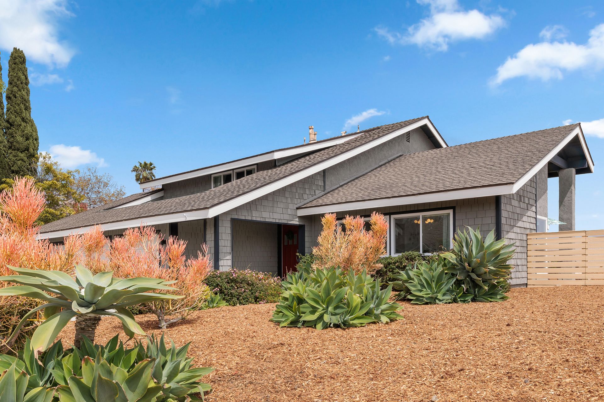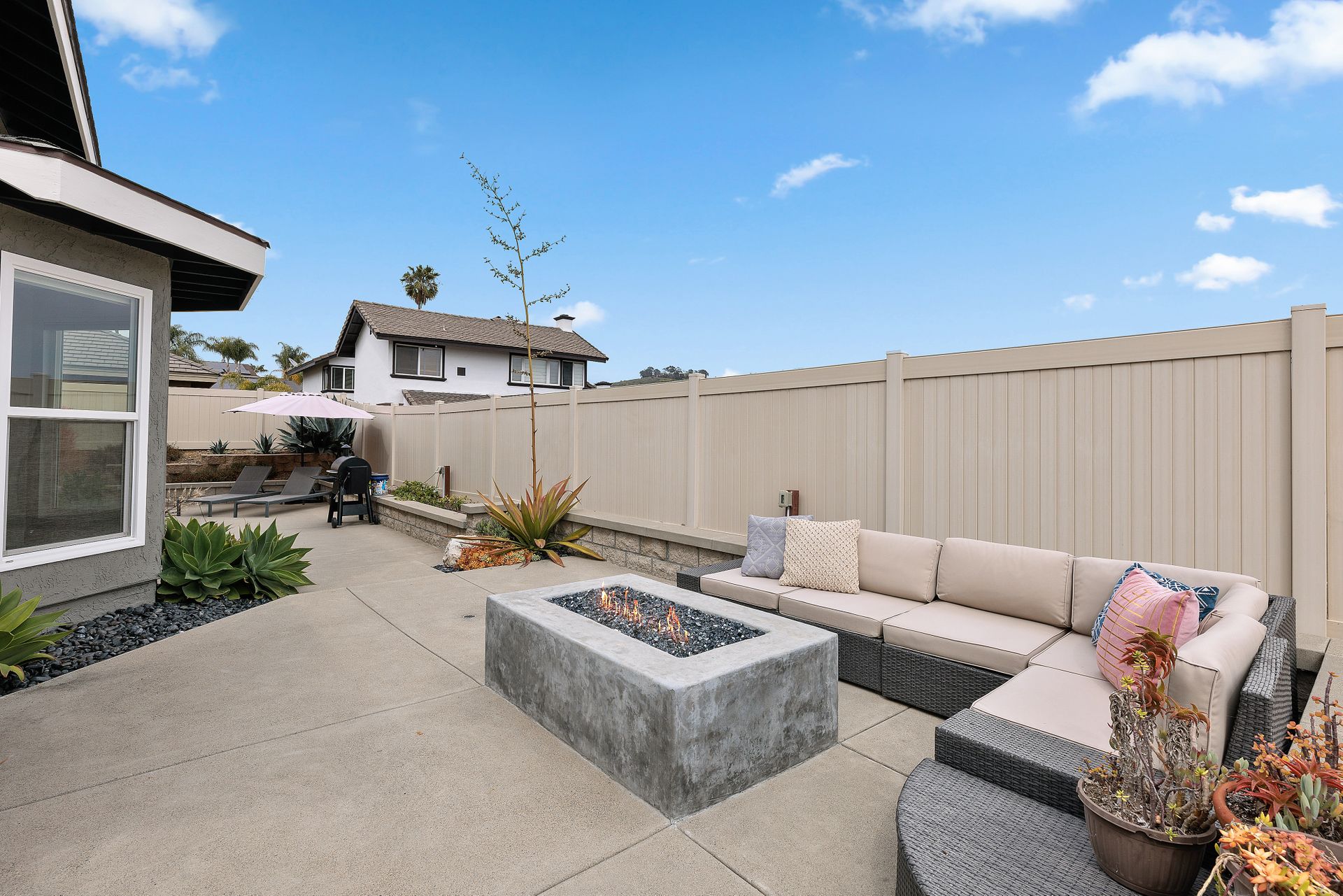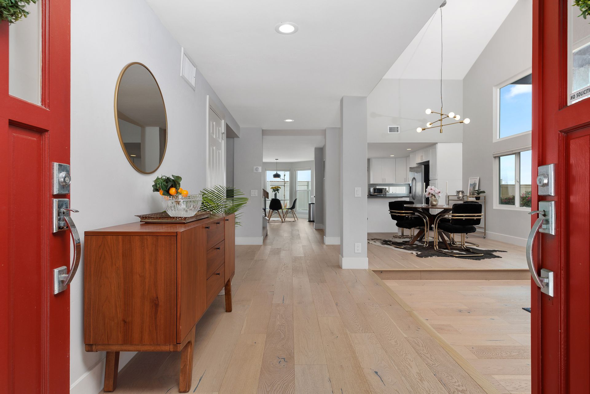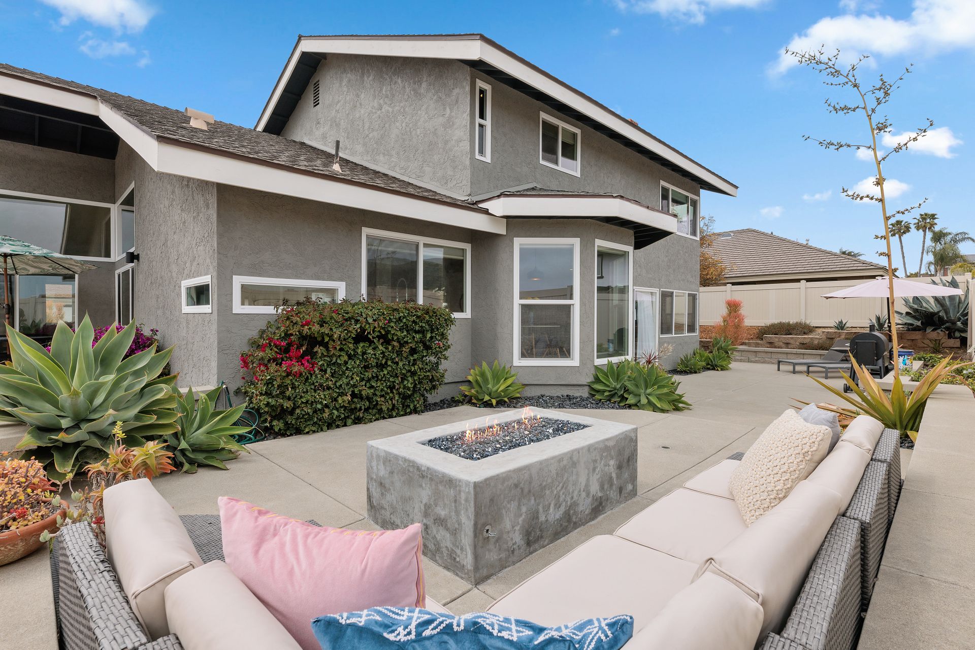 Beautifully updated and inviting 4 bed, 3 bath home located in the desirable La Costa neighborhood! This stunning property boasts a bright and open floor plan, perfect for entertaining and relaxation. The home has been newly painted both inside and out, adding a touch of modernity and elegance to the property. The low maintenance front yard is a beautiful addition to the home, providing natural beauty without the need for excessive upkeep. There is also plenty of room on the side for an ADU, room for a pool/spa, or your own RV storage! Upon entry, you’ll notice the lovely whitewashed white oak hardwood flooring throughout the home, providing a seamless flow between the living areas, and double pane windows allowing plenty of natural light to fill the space. The vaulted living room ceilings create a sense of openness and add a touch of grandeur that is sure to impress. The reconfigured kitchen is a chef's dream, with ample counter space and updated SS appliances. There is a full bedroom and bathroom downstairs and a beautiful fireplace in the family room with a wall of windows and sliding door to the backyard. The primary suite is equally impressive with vaulted ceilings, a walk-in closet with built ins and another closet, ensuring that you have plenty of storage space for your clothing and accessories. Enjoy the landscaped backyard featuring newer vinyl fencing and a lovely firepit, making it the perfect place to unwind after a long day. Other features include a 3-car garage with charger outlet and newer garage door opener, paid-for solar, newer HVAC and central air, and NEST thermostat. Nearby are great schools, restaurants, shops and more! No Mello Roos or HOA fees. This is the home you have been waiting for with all the conveniences of a newly renovated home. This is an exquisite property that offers the perfect balance of modern style, functionality, and comfort, you will love living here!