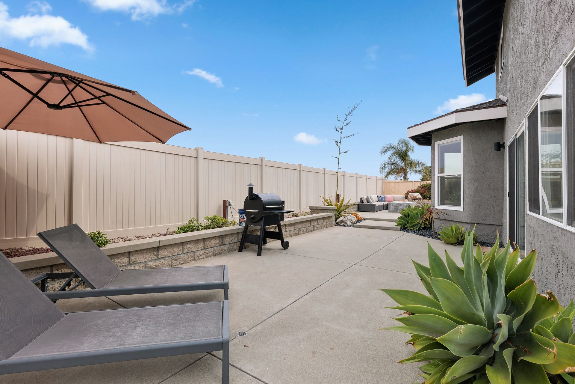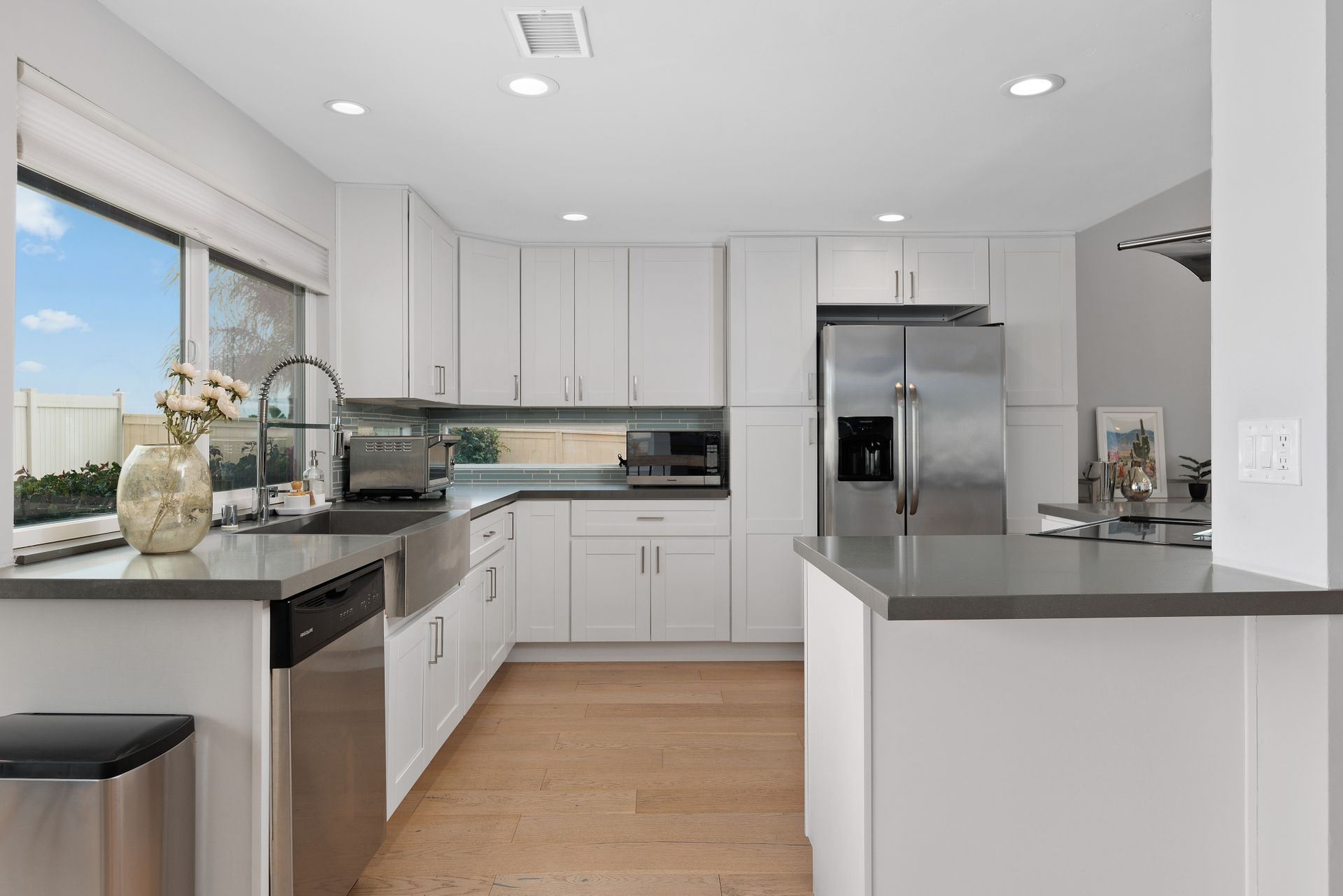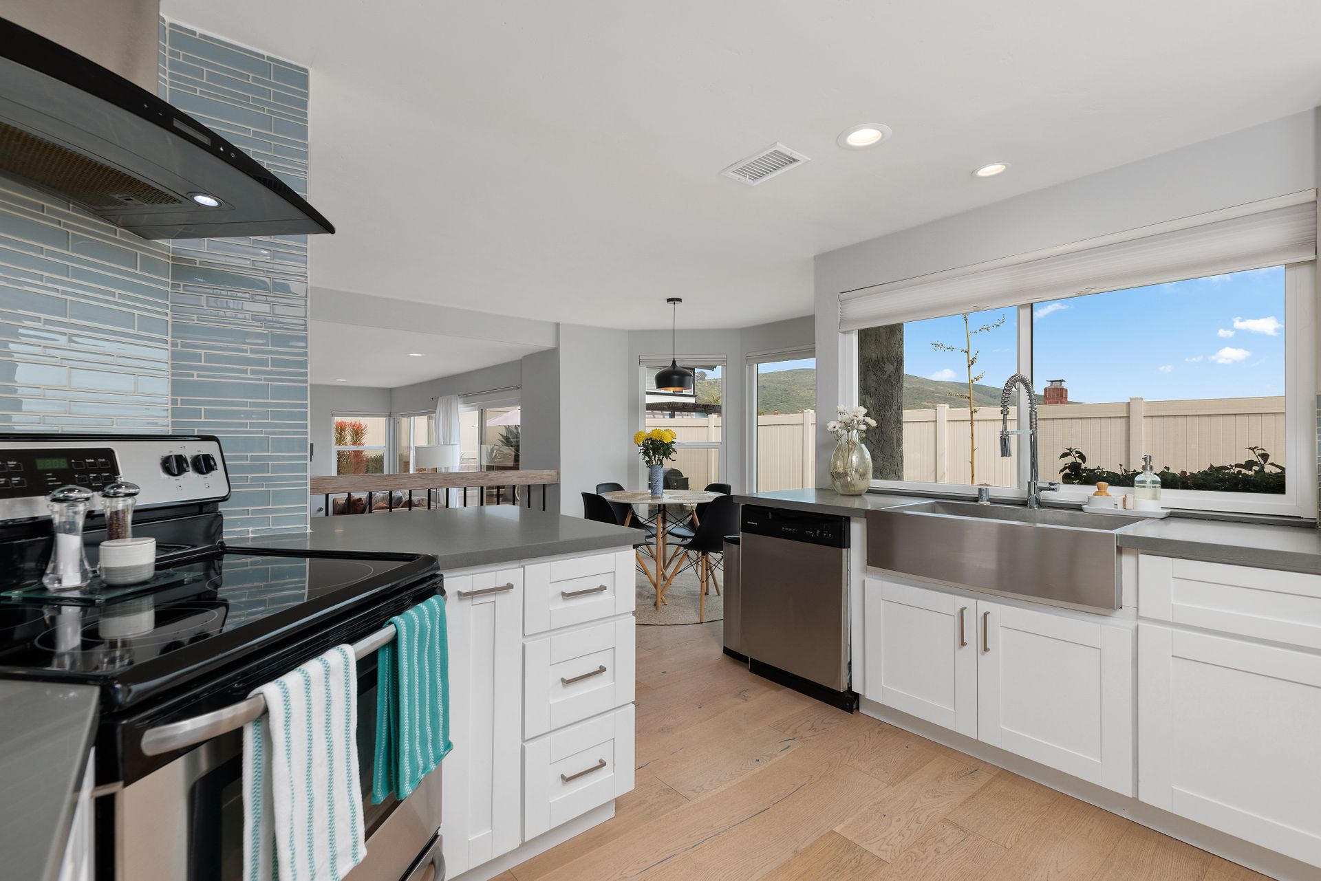 Beautifully updated and inviting 4 bed, 3 bath home located in the desirable La Costa neighborhood! This stunning property boasts a bright and open floor plan, perfect for entertaining and relaxation. The home has been newly painted both inside and out, adding a touch of modernity and elegance to the property. The low maintenance front yard is a beautiful addition to the home, providing natural beauty without the need for excessive upkeep. There is also plenty of room on the side for an ADU, room for a pool/spa, or your own RV storage! Upon entry, you’ll notice the lovely whitewashed white oak hardwood flooring throughout the home, providing a seamless flow between the living areas, and double pane windows allowing plenty of natural light to fill the space. The vaulted living room ceilings create a sense of openness and add a touch of grandeur that is sure to impress. The reconfigured kitchen is a chef's dream, with ample counter space and updated SS appliances. There is a full bedroom and bathroom downstairs and a beautiful fireplace in the family room with a wall of windows and sliding door to the backyard. The primary suite is equally impressive with vaulted ceilings, a walk-in closet with built ins and another closet, ensuring that you have plenty of storage space for your clothing and accessories. Enjoy the landscaped backyard featuring newer vinyl fencing and a lovely firepit, making it the perfect place to unwind after a long day. Other features include a 3-car garage with charger outlet and newer garage door opener, paid-for solar, newer HVAC and central air, and NEST thermostat. Nearby are great schools, restaurants, shops and more! No Mello Roos or HOA fees. This is the home you have been waiting for with all the conveniences of a newly renovated home. This is an exquisite property that offers the perfect balance of modern style, functionality, and comfort, you will love living here!