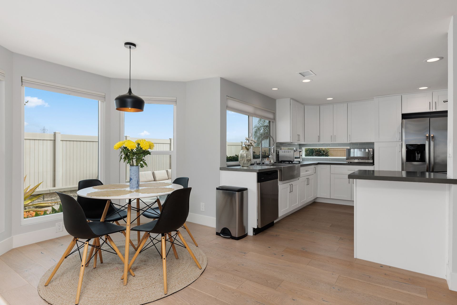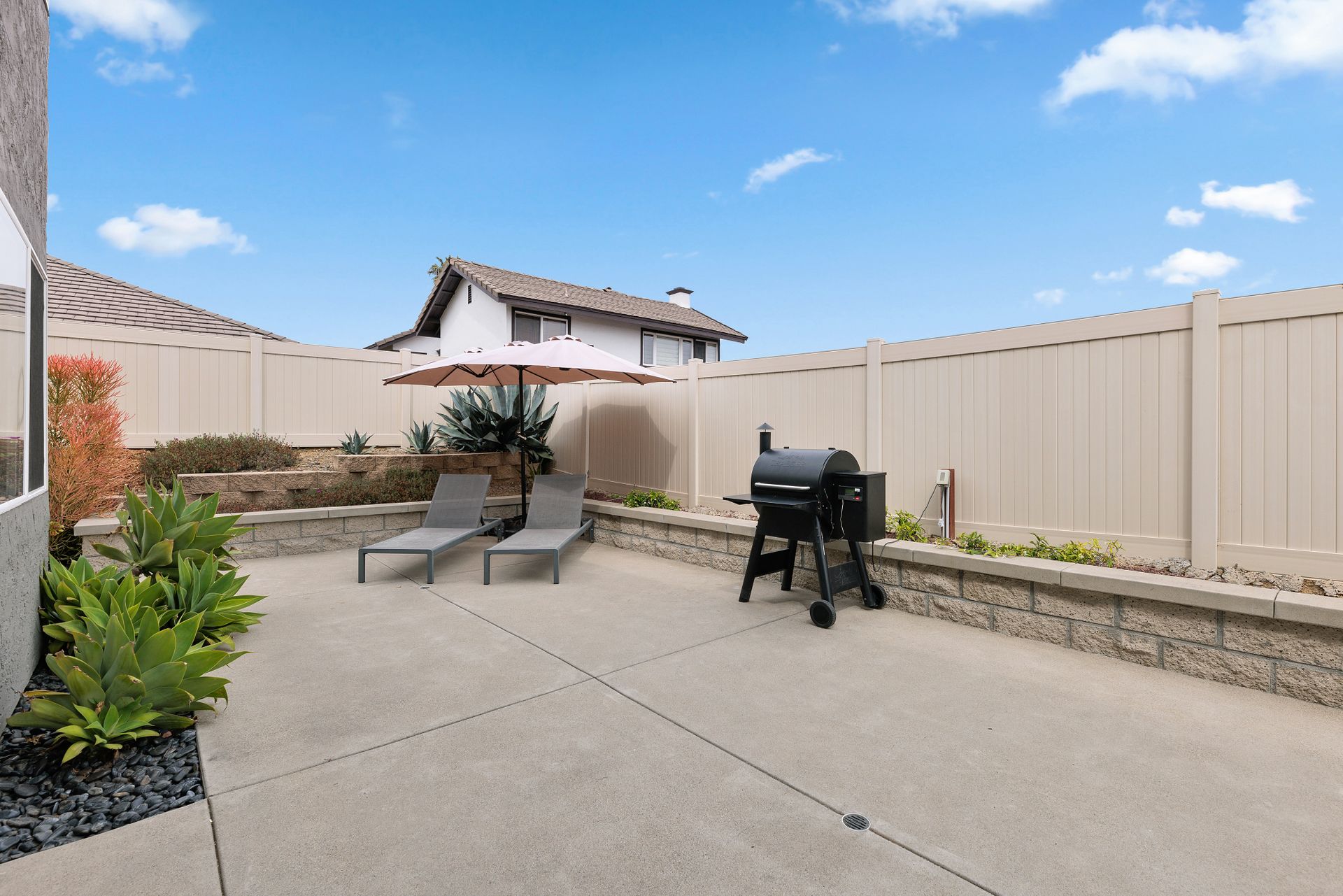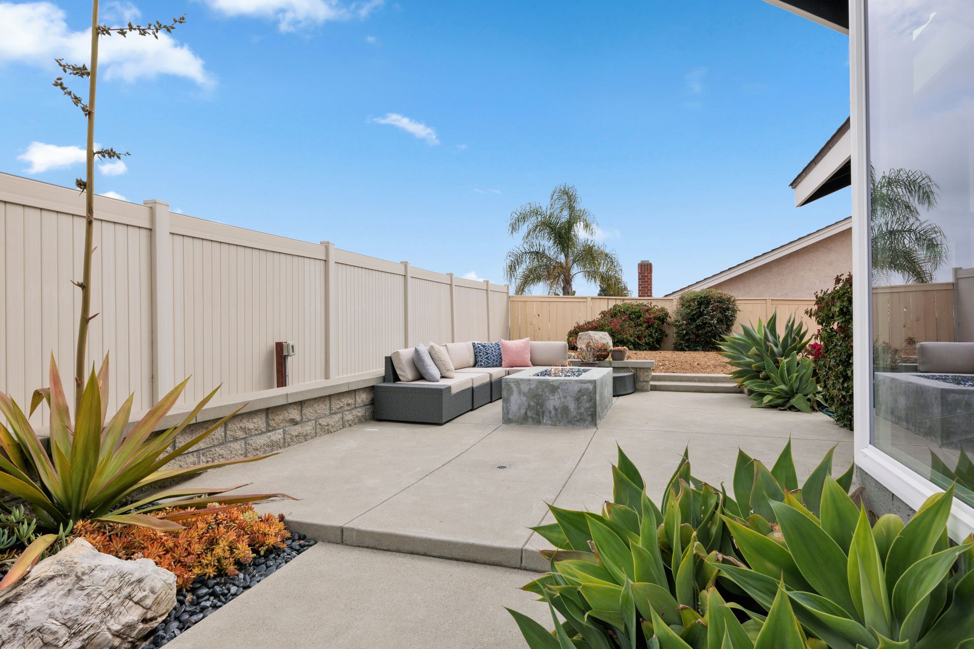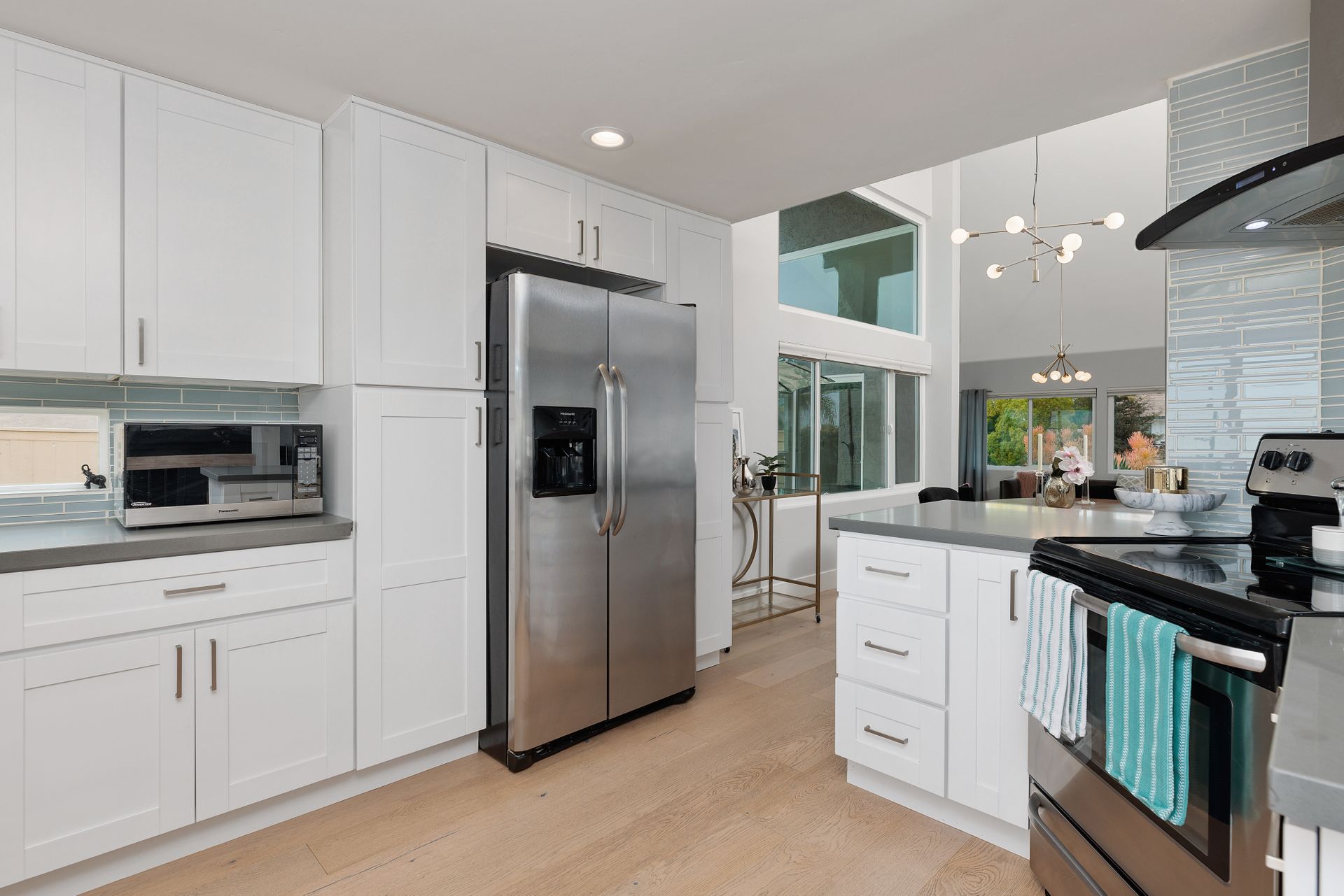 Beautifully updated and inviting 4 bed, 3 bath home located in the desirable La Costa neighborhood! This stunning property boasts a bright and open floor plan, perfect for entertaining and relaxation. The home has been newly painted both inside and out, adding a touch of modernity and elegance to the property. The low maintenance front yard is a beautiful addition to the home, providing natural beauty without the need for excessive upkeep. There is also plenty of room on the side for an ADU, room for a pool/spa, or your own RV storage! Upon entry, you’ll notice the lovely whitewashed white oak hardwood flooring throughout the home, providing a seamless flow between the living areas, and double pane windows allowing plenty of natural light to fill the space. The vaulted living room ceilings create a sense of openness and add a touch of grandeur that is sure to impress. The reconfigured kitchen is a chef's dream, with ample counter space and updated SS appliances. There is a full bedroom and bathroom downstairs and a beautiful fireplace in the family room with a wall of windows and sliding door to the backyard. The primary suite is equally impressive with vaulted ceilings, a walk-in closet with built ins and another closet, ensuring that you have plenty of storage space for your clothing and accessories. Enjoy the landscaped backyard featuring newer vinyl fencing and a lovely firepit, making it the perfect place to unwind after a long day. Other features include a 3-car garage with charger outlet and newer garage door opener, paid-for solar, newer HVAC and central air, and NEST thermostat. Nearby are great schools, restaurants, shops and more! No Mello Roos or HOA fees. This is the home you have been waiting for with all the conveniences of a newly renovated home. This is an exquisite property that offers the perfect balance of modern style, functionality, and comfort, you will love living here!