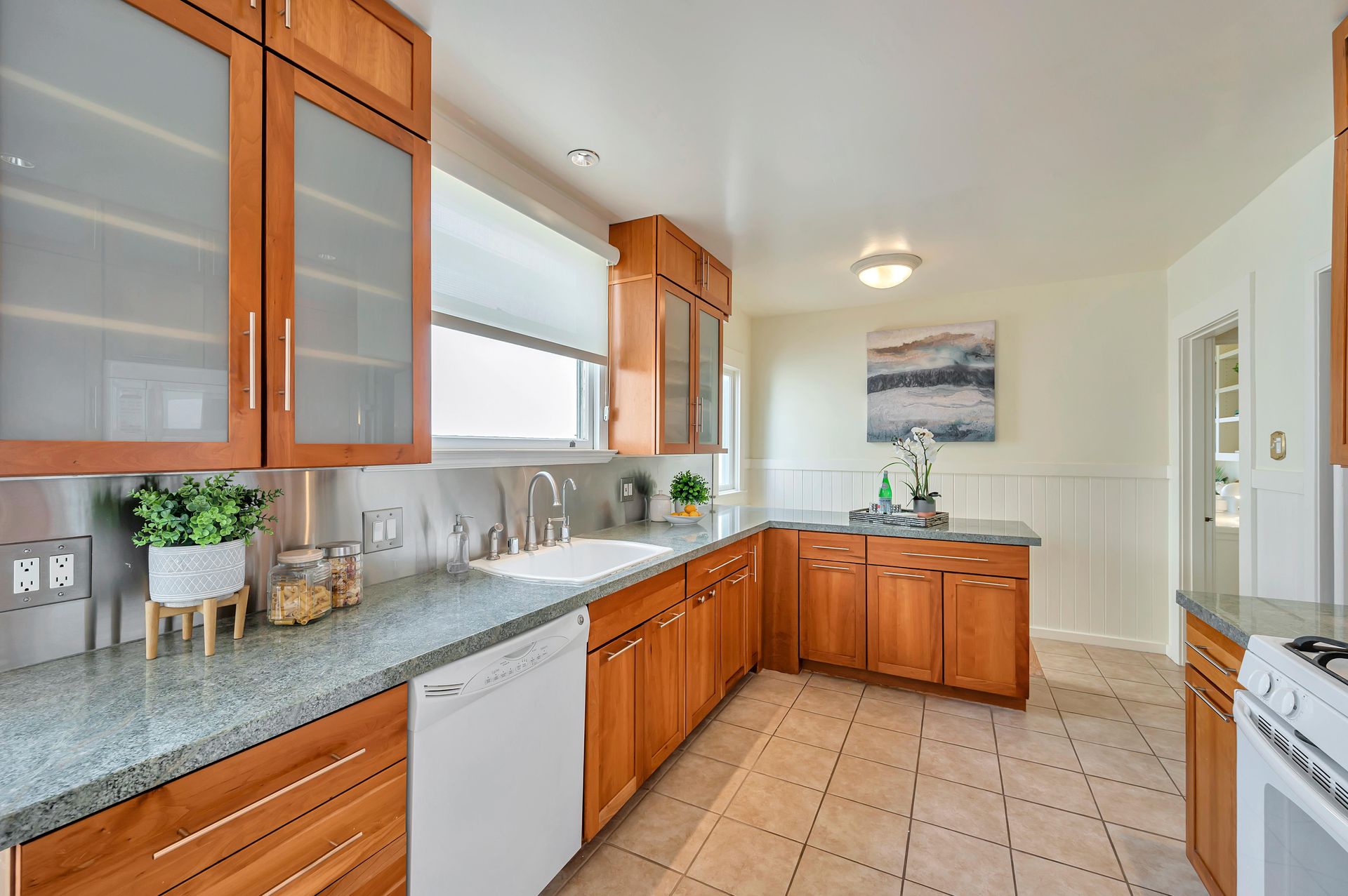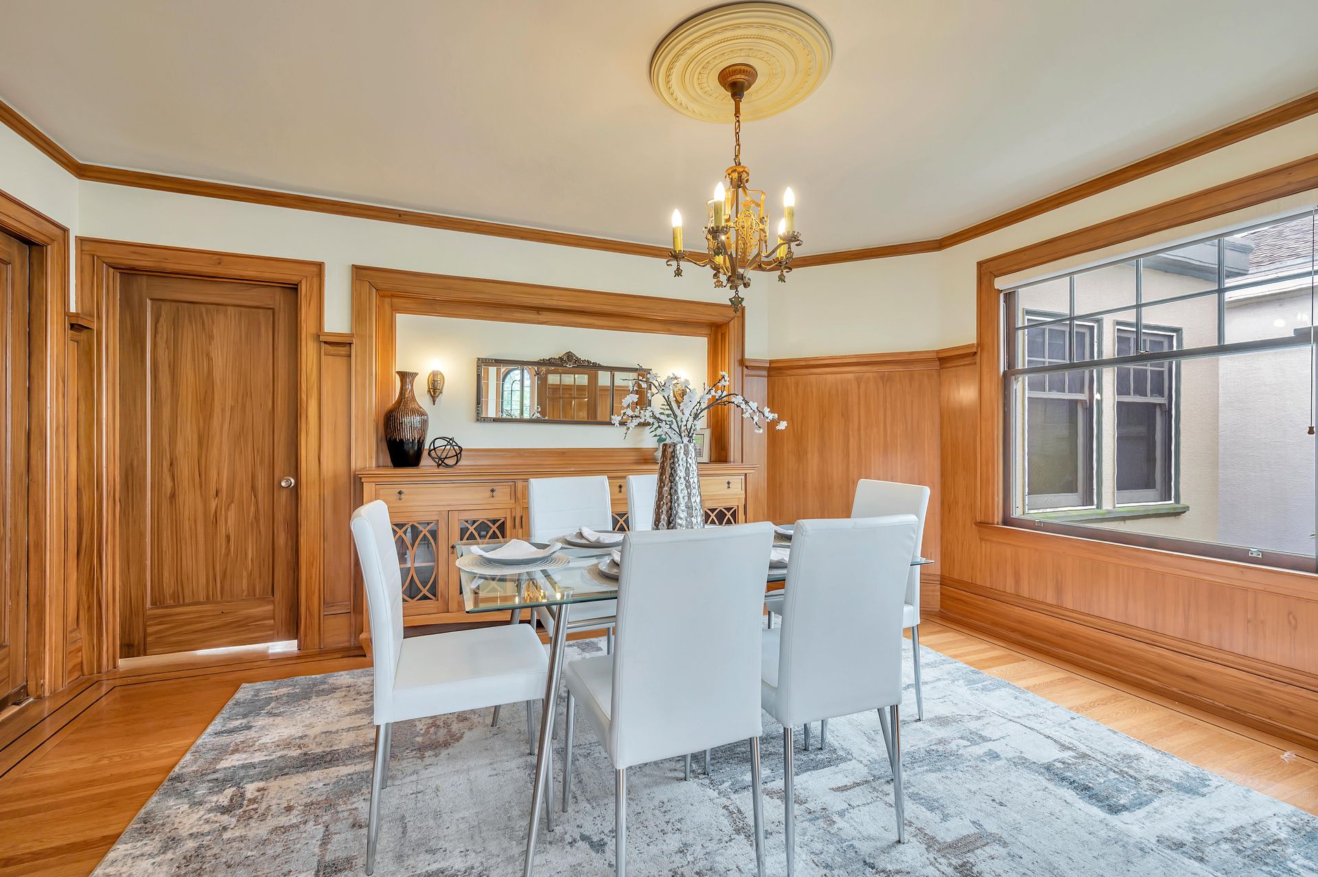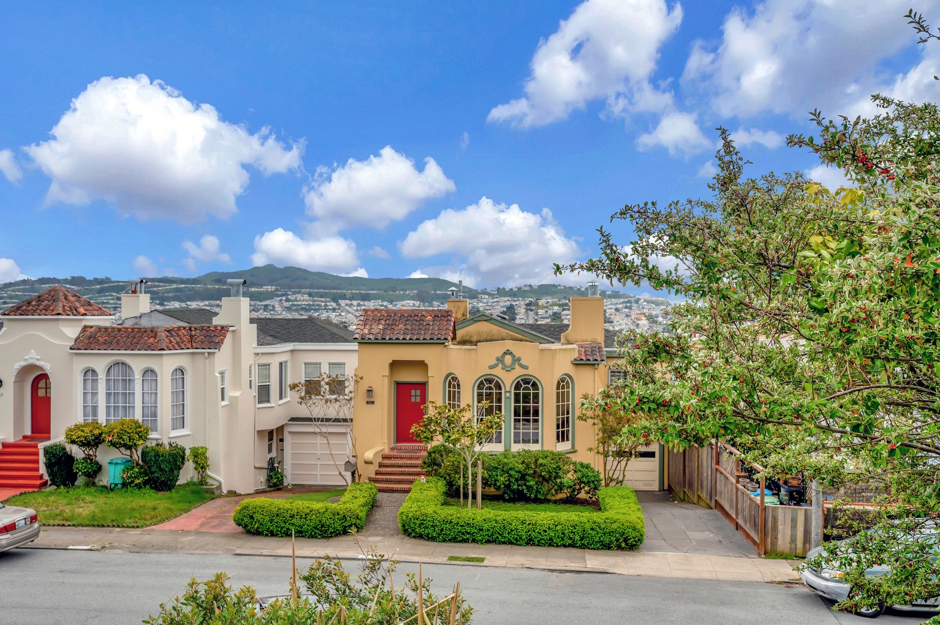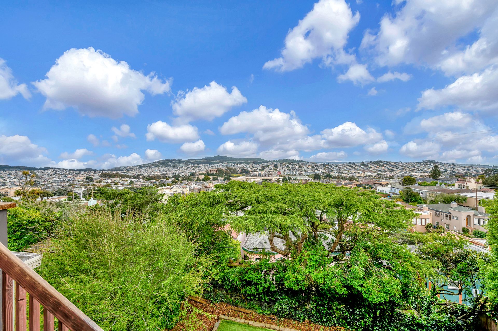 Westwood Highlands is one of the most desirable San Francisco neighborhoods. The original Westwood Highlands development homes were built with Craftsman style interiors in a variety of external architectural styles such as Tudor and Spanish Mediterranean giving the neighborhood a unique feeling of elegance. Built in 1925 this home has beautiful period details and expansive views of the southern hills, ocean and bay. The main floor is filled with light from numerous large windows and features hardwood floors, gorgeous molding and wainscoting. The living room features large windows and a fireplace with period tile and a built-in surround that has glass front bookcases. The dining room has a classic built-in buffet. The large remodeled eat-in kitchen has a plentiful cabinet and counter space. There are two bedrooms on the main level with views from the bay to the ocean and a full bath. The larger bedroom which has a large closet is currently being used as a lovely primary bedroom. The other has extensive built-in shelving and is an easy set up for a home office. The lower level has a primary suite and a spacious family room leading to the large deck and stairway to the back garden. There is also a laundry room with a half bath, a utility room and a large one-car garage on this level. From the deck, you can enjoy the view in the afternoon sun. The low-maintenance backyard was renovated in 2019. The large basement has plentiful room for storage. This home has been lovingly cared for by the sellers and the two previous owners. Improvements range from new windows to seismic upgrades. Conveniently located between West Portal and Glen Park there is easy access to public transit, 280 freeway, restaurants and shopping.