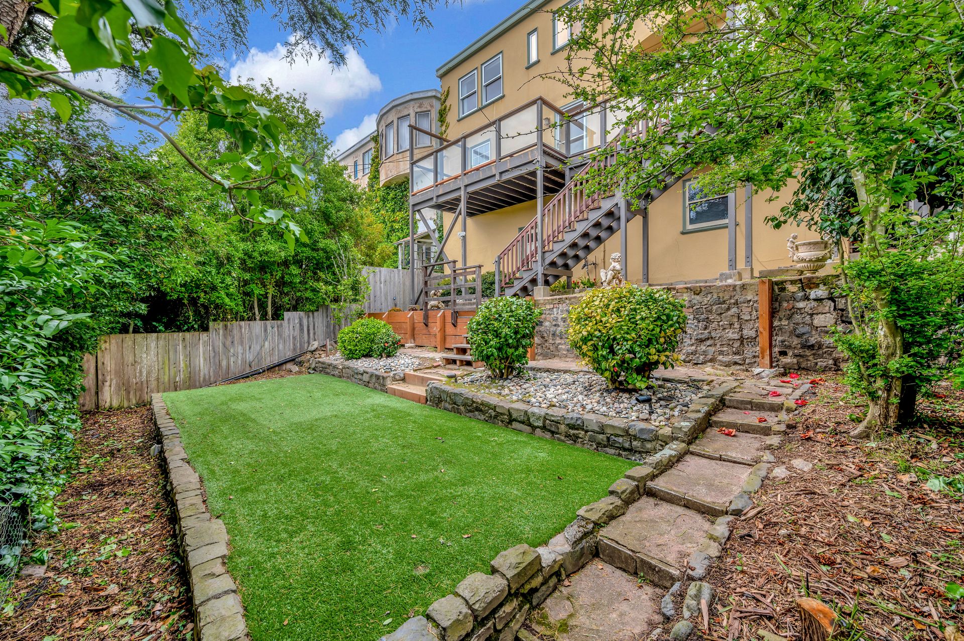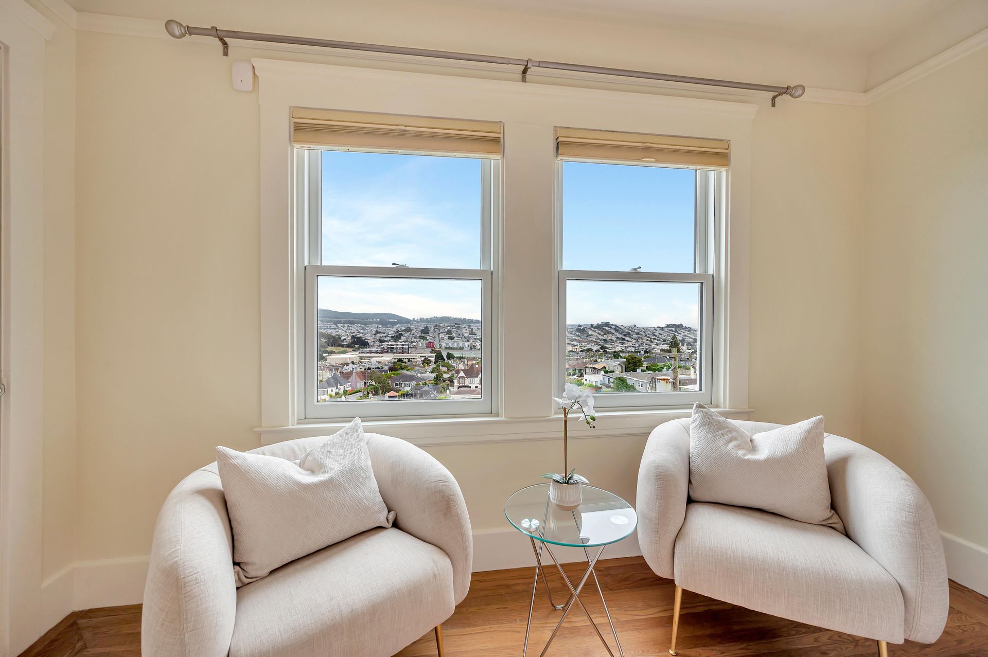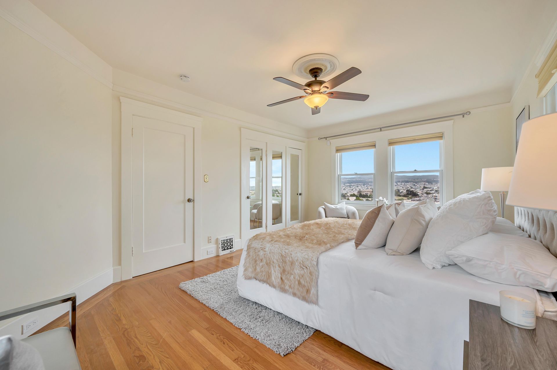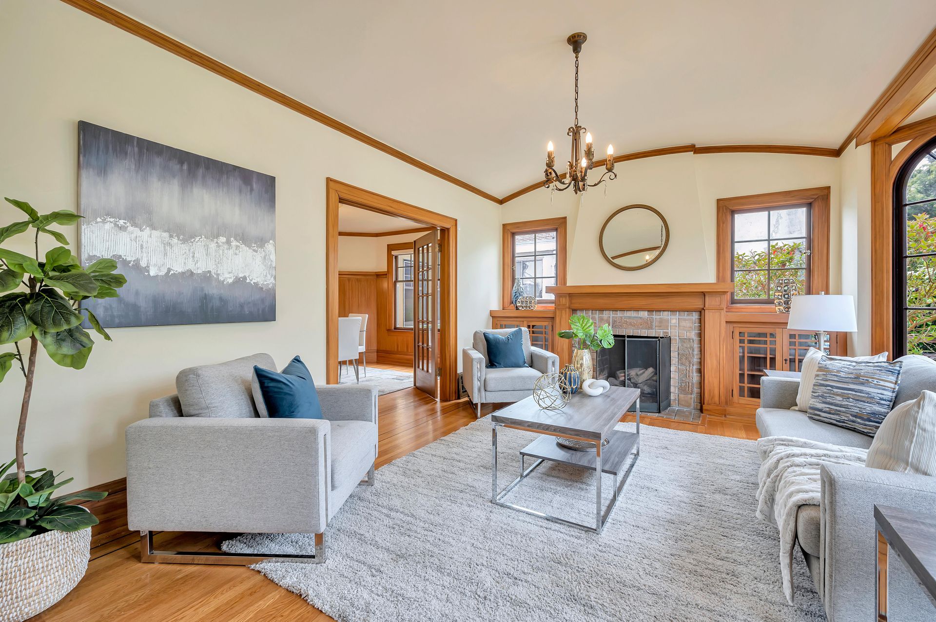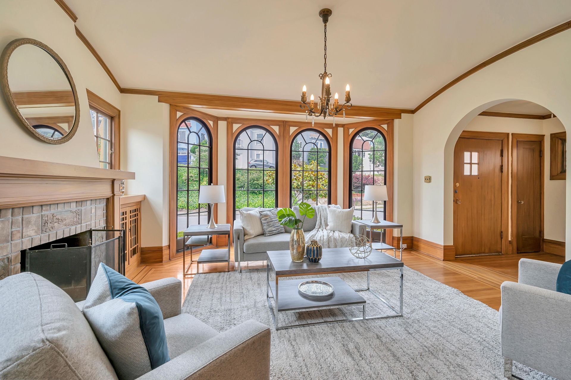 Westwood Highlands is one of the most desirable San Francisco neighborhoods. The original Westwood Highlands development homes were built with Craftsman style interiors in a variety of external architectural styles such as Tudor and Spanish Mediterranean giving the neighborhood a unique feeling of elegance. Built in 1925 this home has beautiful period details and expansive views of the southern hills, ocean and bay. The main floor is filled with light from numerous large windows and features hardwood floors, gorgeous molding and wainscoting. The living room features large windows and a fireplace with period tile and a built-in surround that has glass front bookcases. The dining room has a classic built-in buffet. The large remodeled eat-in kitchen has a plentiful cabinet and counter space. There are two bedrooms on the main level with views from the bay to the ocean and a full bath. The larger bedroom which has a large closet is currently being used as a lovely primary bedroom. The other has extensive built-in shelving and is an easy set up for a home office. The lower level has a primary suite and a spacious family room leading to the large deck and stairway to the back garden. There is also a laundry room with a half bath, a utility room and a large one-car garage on this level. From the deck, you can enjoy the view in the afternoon sun. The low-maintenance backyard was renovated in 2019. The large basement has plentiful room for storage. This home has been lovingly cared for by the sellers and the two previous owners. Improvements range from new windows to seismic upgrades. Conveniently located between West Portal and Glen Park there is easy access to public transit, 280 freeway, restaurants and shopping.