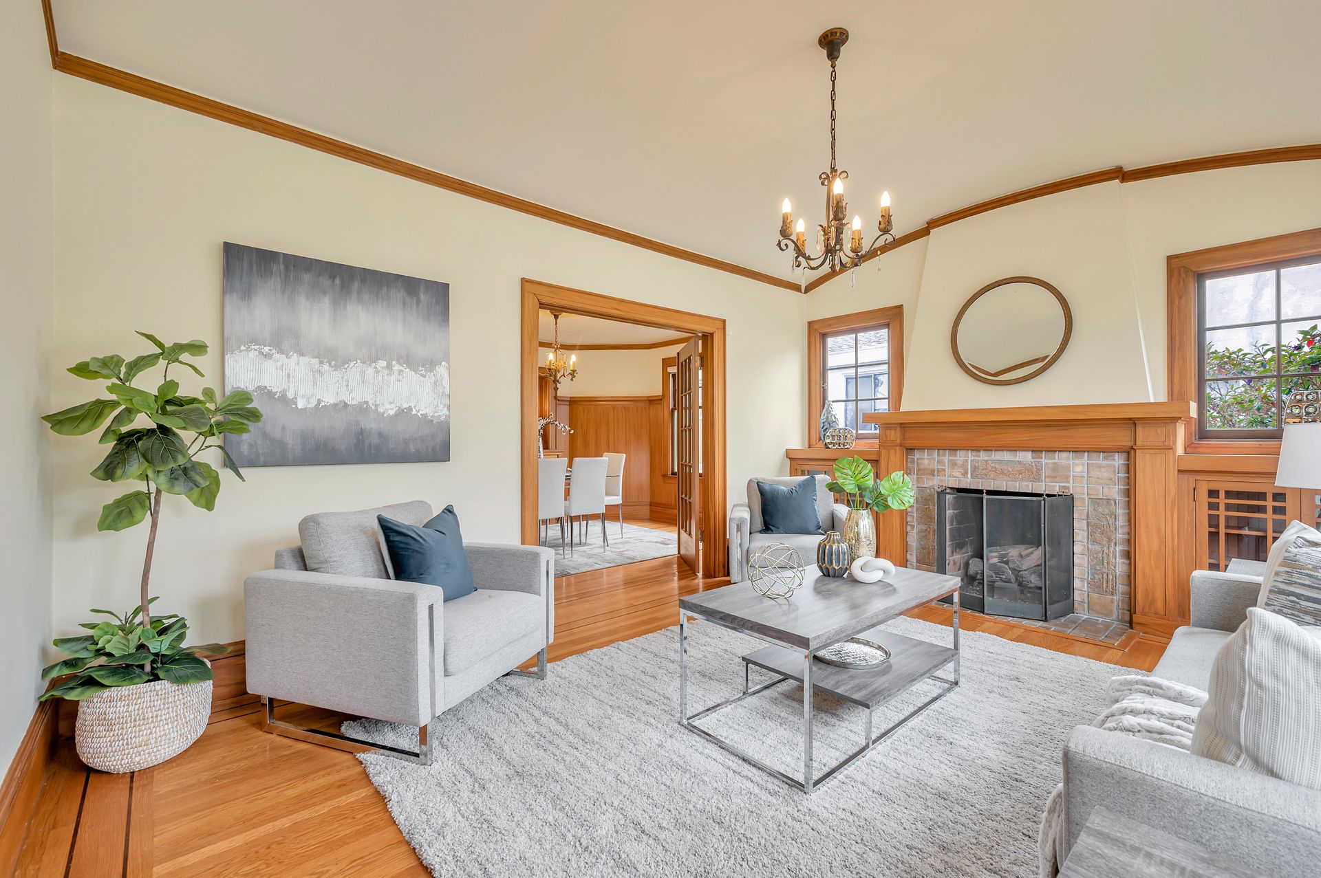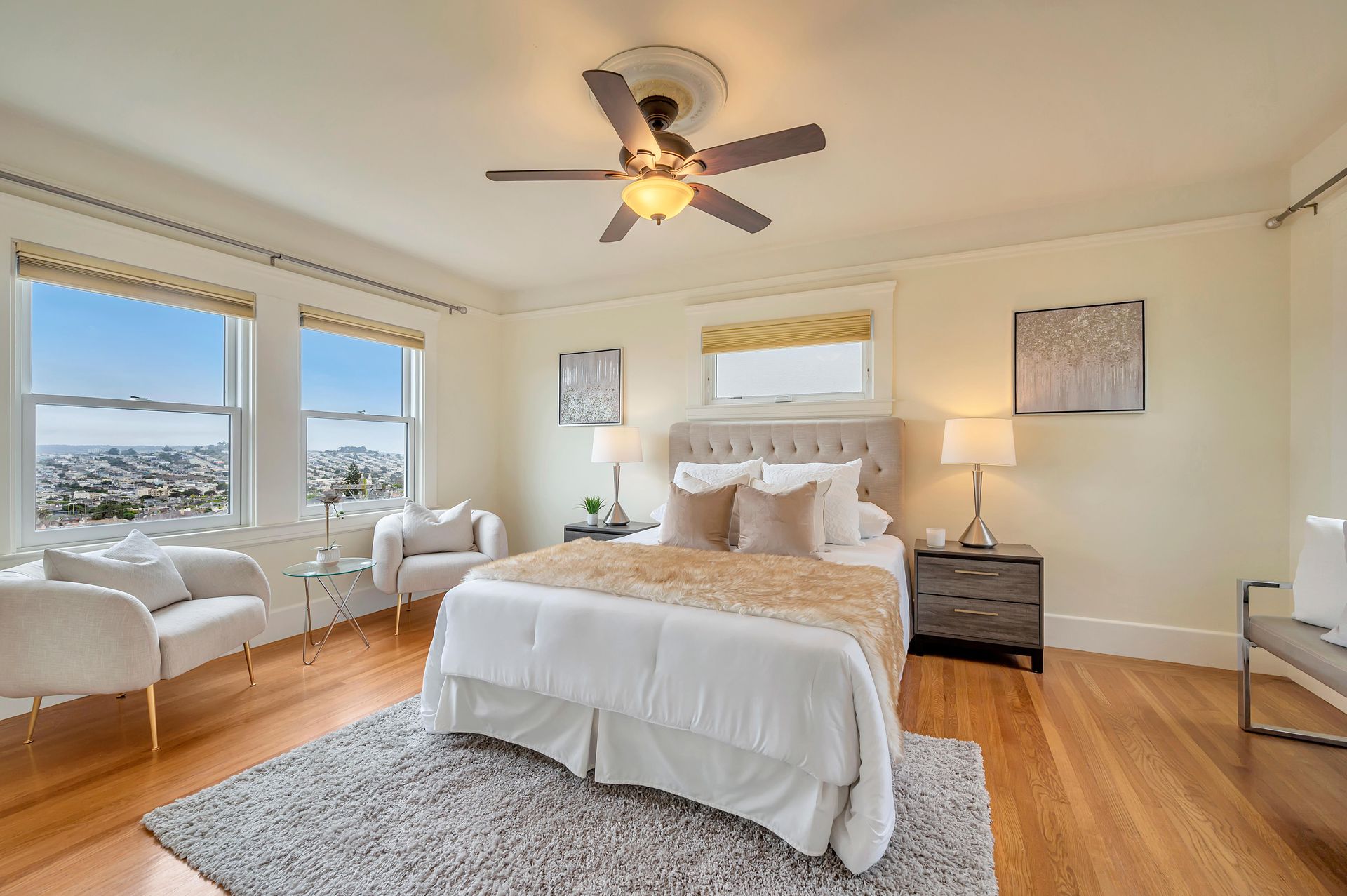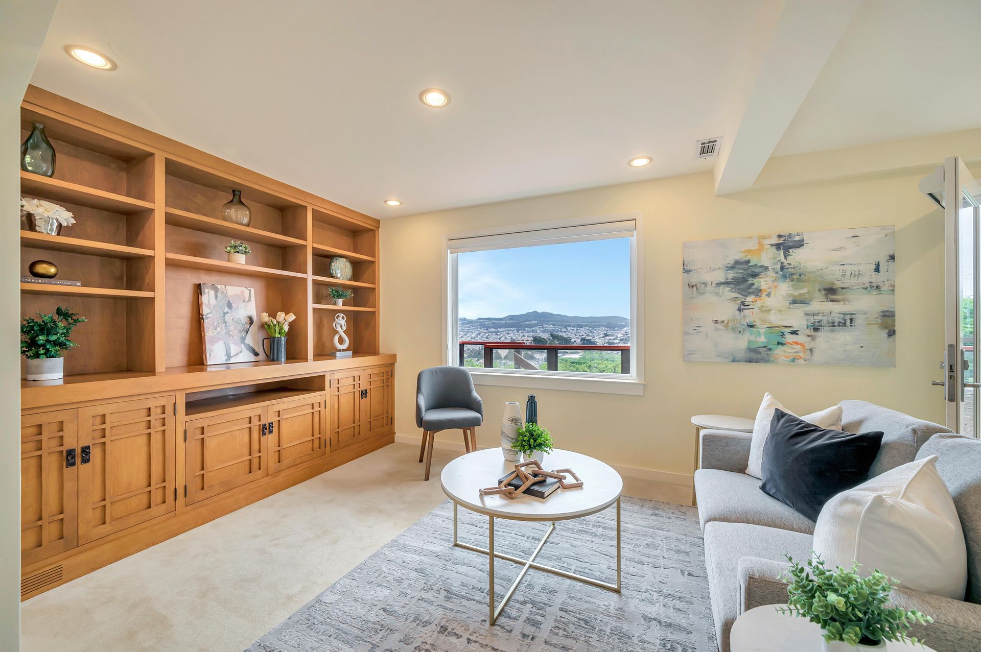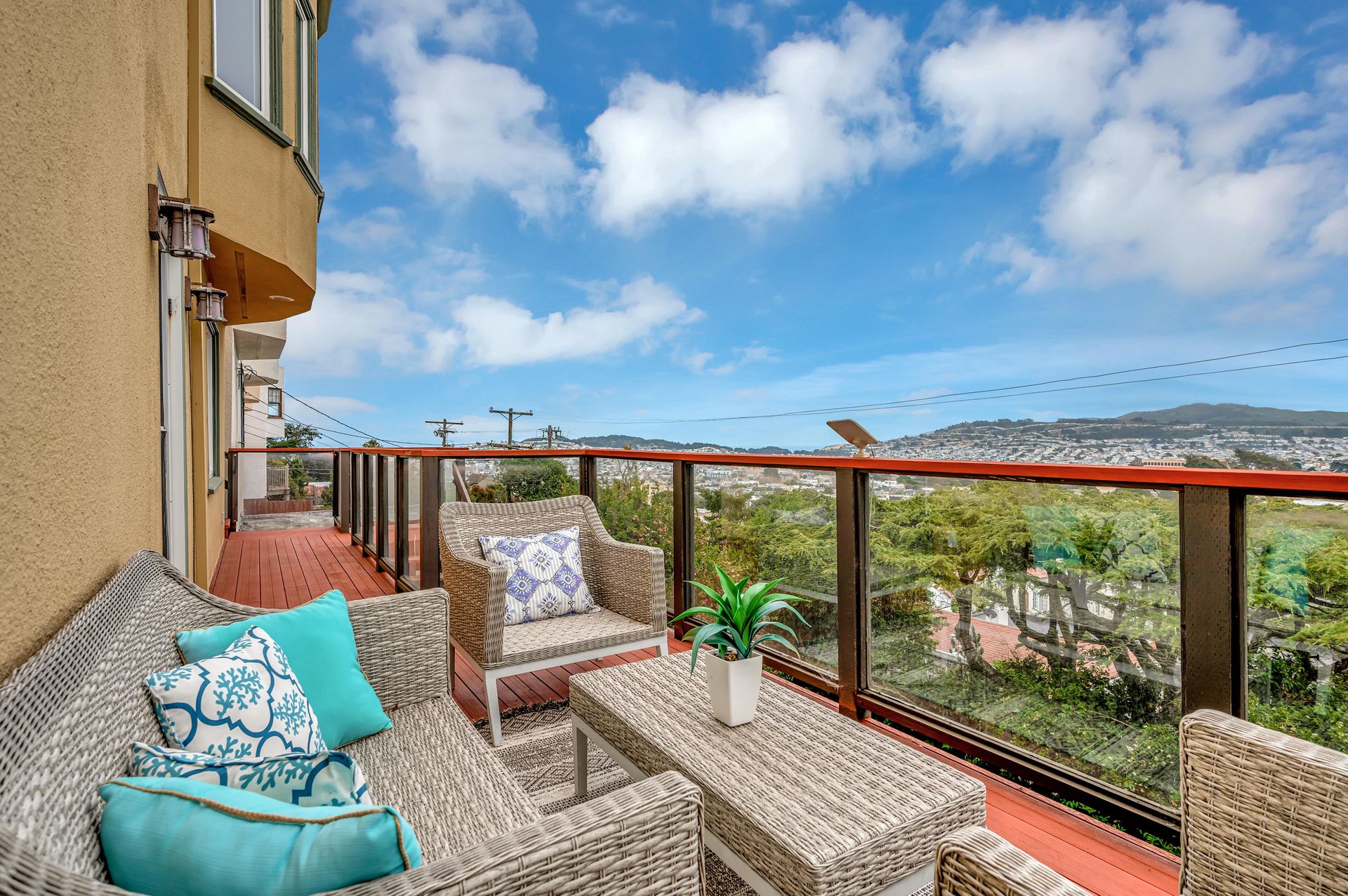 Westwood Highlands is one of the most desirable San Francisco neighborhoods. The original Westwood Highlands development homes were built with Craftsman style interiors in a variety of external architectural styles such as Tudor and Spanish Mediterranean giving the neighborhood a unique feeling of elegance. Built in 1925 this home has beautiful period details and expansive views of the southern hills, ocean and bay. The main floor is filled with light from numerous large windows and features hardwood floors, gorgeous molding and wainscoting. The living room features large windows and a fireplace with period tile and a built-in surround that has glass front bookcases. The dining room has a classic built-in buffet. The large remodeled eat-in kitchen has a plentiful cabinet and counter space. There are two bedrooms on the main level with views from the bay to the ocean and a full bath. The larger bedroom which has a large closet is currently being used as a lovely primary bedroom. The other has extensive built-in shelving and is an easy set up for a home office. The lower level has a primary suite and a spacious family room leading to the large deck and stairway to the back garden. There is also a laundry room with a half bath, a utility room and a large one-car garage on this level. From the deck, you can enjoy the view in the afternoon sun. The low-maintenance backyard was renovated in 2019. The large basement has plentiful room for storage. This home has been lovingly cared for by the sellers and the two previous owners. Improvements range from new windows to seismic upgrades. Conveniently located between West Portal and Glen Park there is easy access to public transit, 280 freeway, restaurants and shopping.
