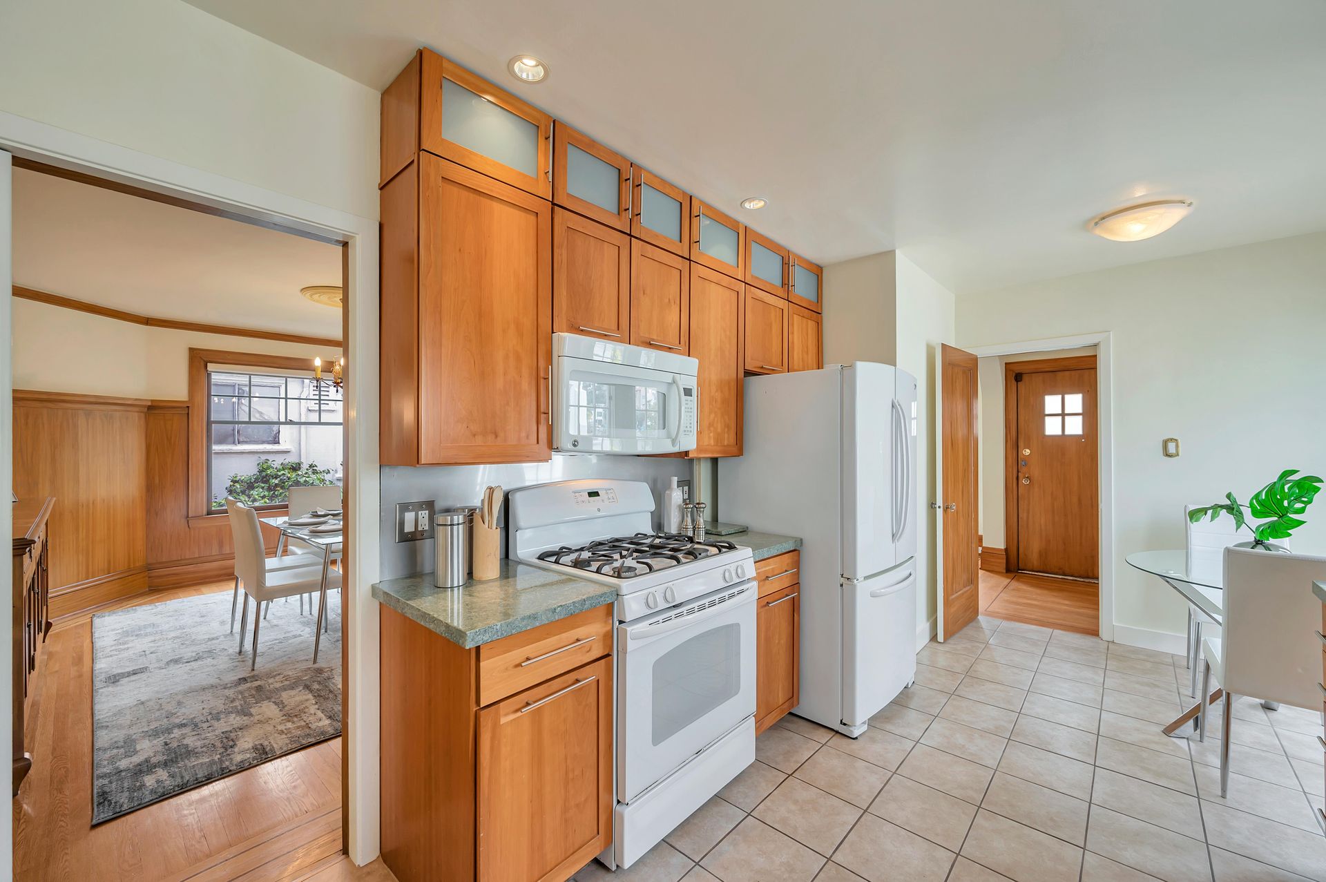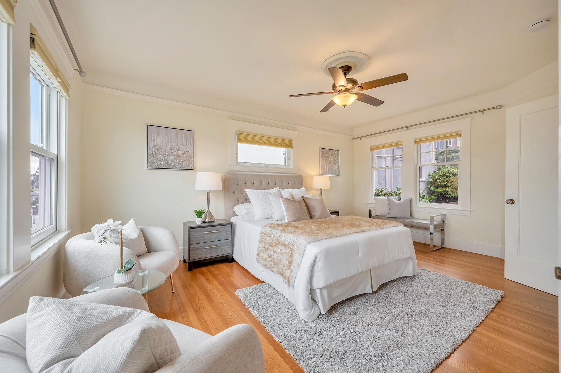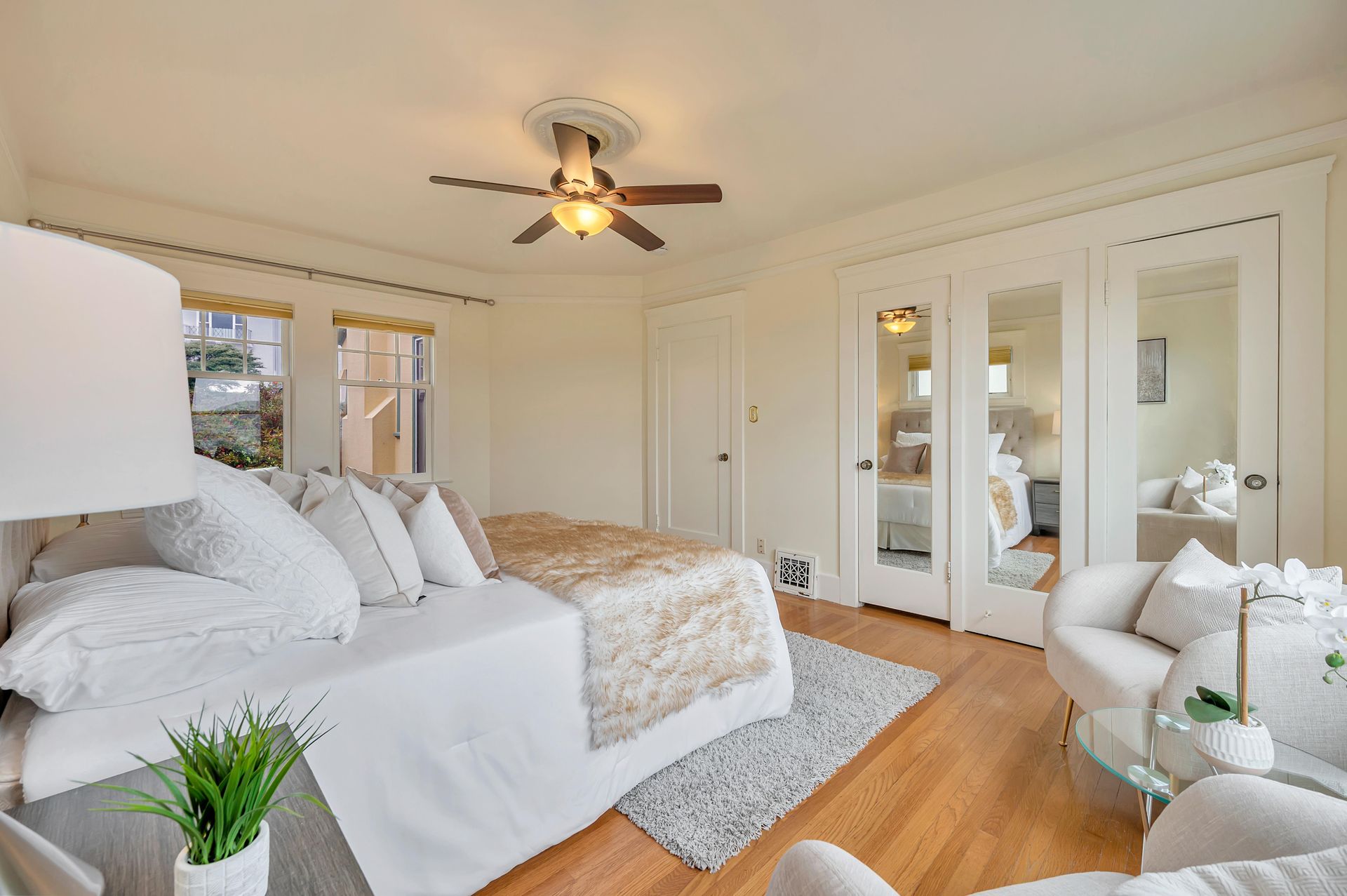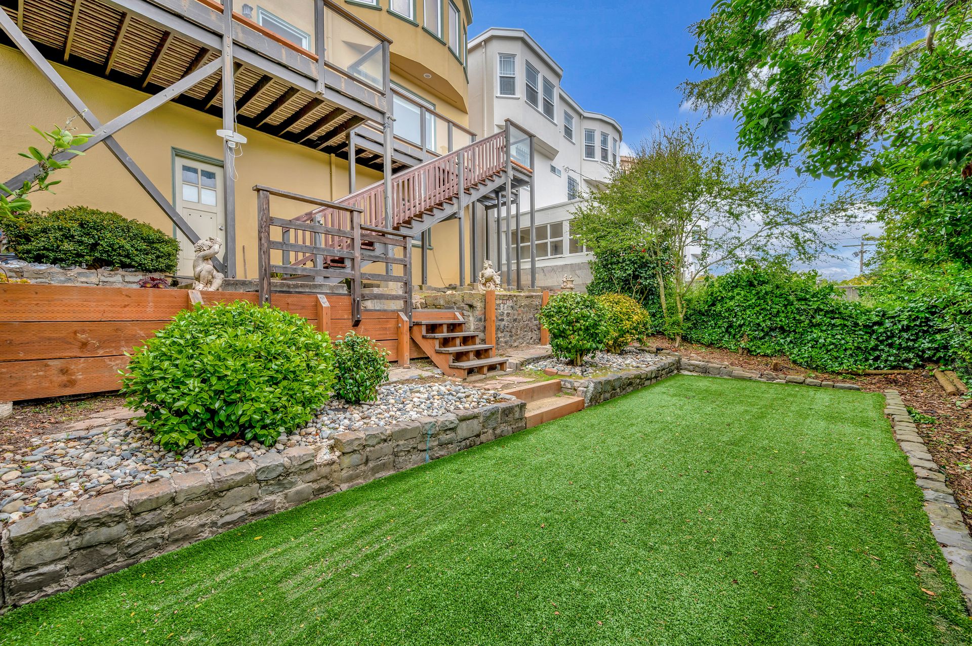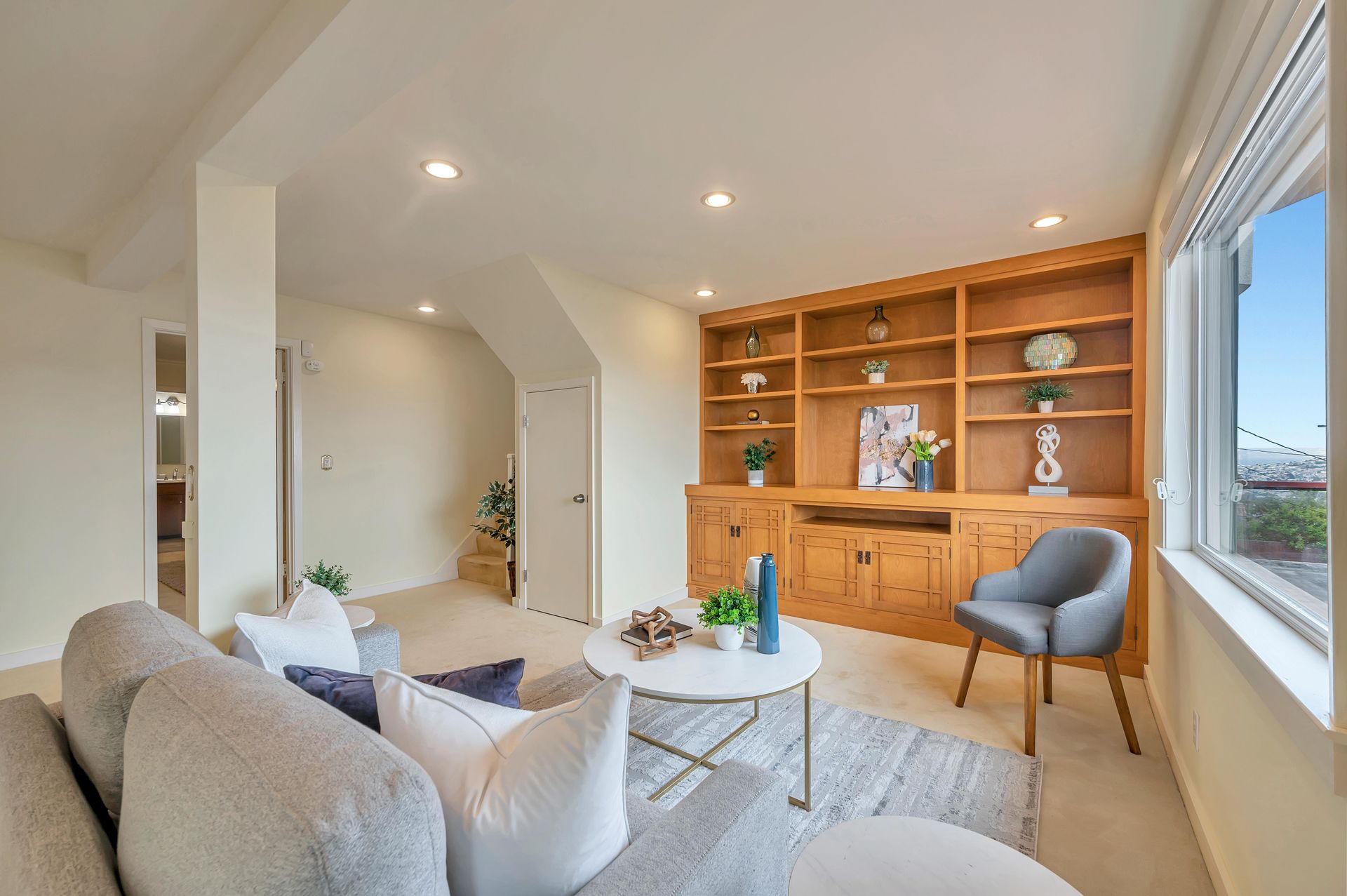 Westwood Highlands is one of the most desirable San Francisco neighborhoods. The original Westwood Highlands development homes were built with Craftsman style interiors in a variety of external architectural styles such as Tudor and Spanish Mediterranean giving the neighborhood a unique feeling of elegance. Built in 1925 this home has beautiful period details and expansive views of the southern hills, ocean and bay. The main floor is filled with light from numerous large windows and features hardwood floors, gorgeous molding and wainscoting. The living room features large windows and a fireplace with period tile and a built-in surround that has glass front bookcases. The dining room has a classic built-in buffet. The large remodeled eat-in kitchen has a plentiful cabinet and counter space. There are two bedrooms on the main level with views from the bay to the ocean and a full bath. The larger bedroom which has a large closet is currently being used as a lovely primary bedroom. The other has extensive built-in shelving and is an easy set up for a home office. The lower level has a primary suite and a spacious family room leading to the large deck and stairway to the back garden. There is also a laundry room with a half bath, a utility room and a large one-car garage on this level. From the deck, you can enjoy the view in the afternoon sun. The low-maintenance backyard was renovated in 2019. The large basement has plentiful room for storage. This home has been lovingly cared for by the sellers and the two previous owners. Improvements range from new windows to seismic upgrades. Conveniently located between West Portal and Glen Park there is easy access to public transit, 280 freeway, restaurants and shopping.