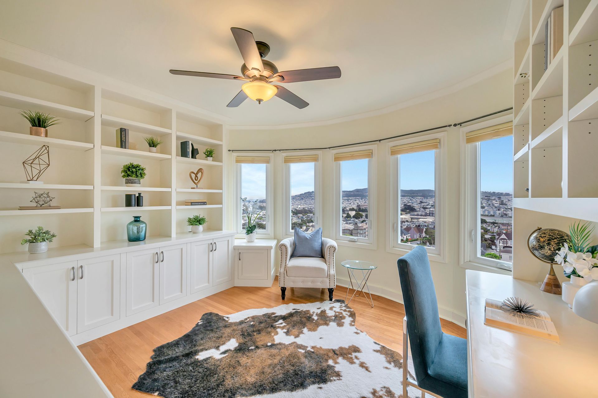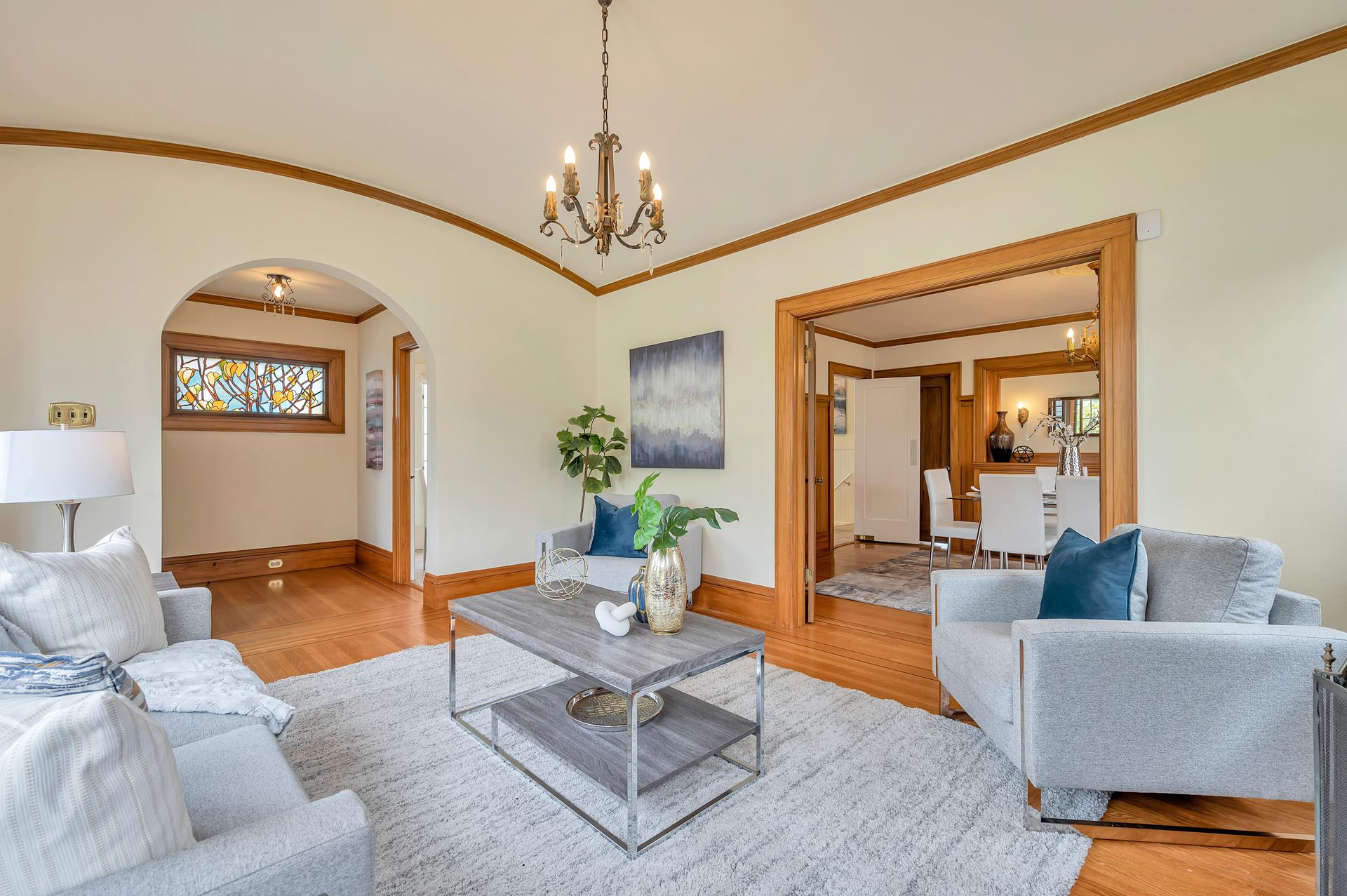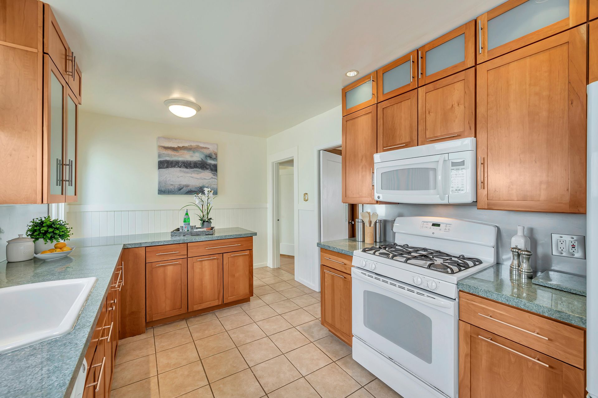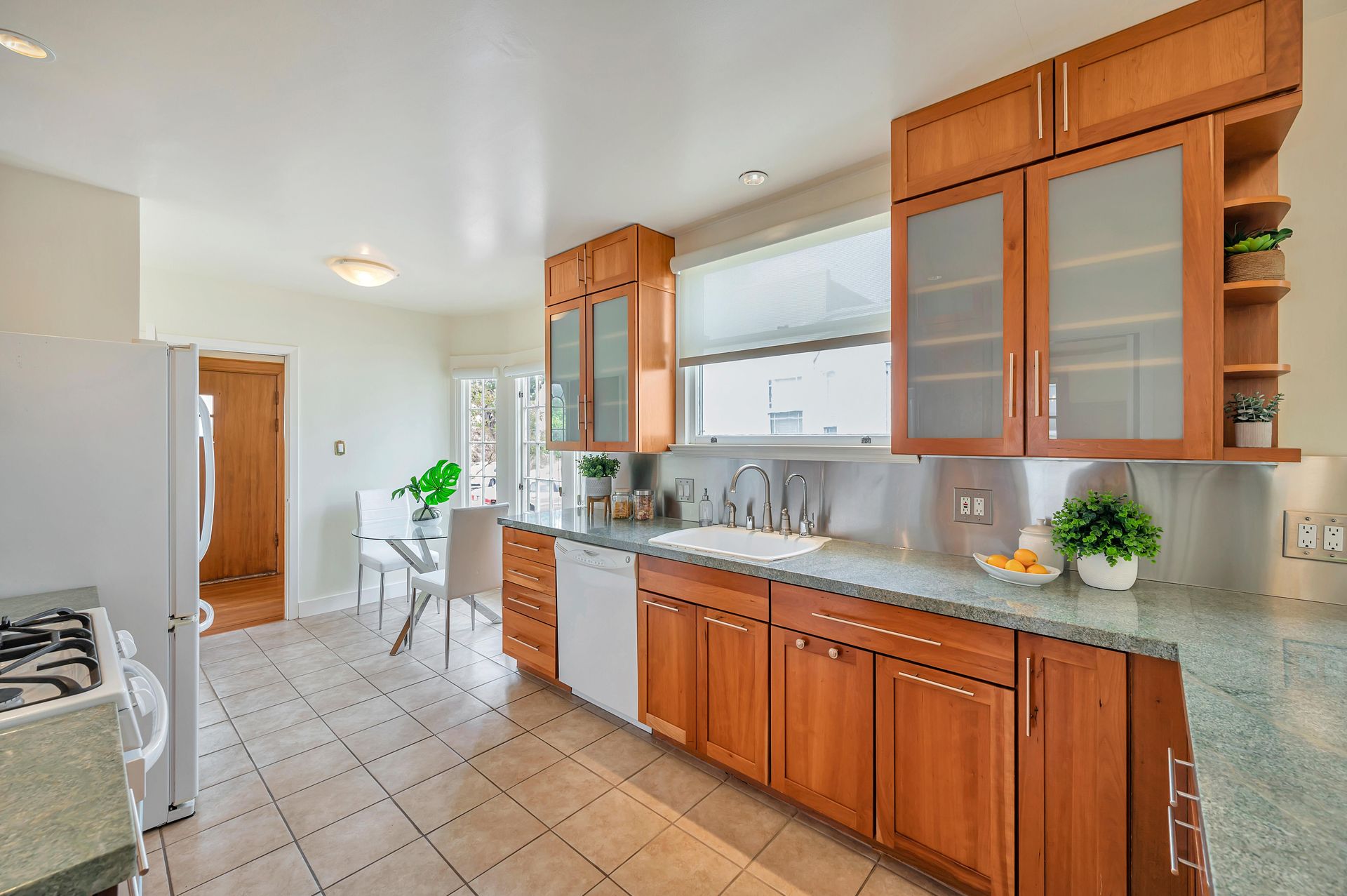 Westwood Highlands is one of the most desirable San Francisco neighborhoods. The original Westwood Highlands development homes were built with Craftsman style interiors in a variety of external architectural styles such as Tudor and Spanish Mediterranean giving the neighborhood a unique feeling of elegance. Built in 1925 this home has beautiful period details and expansive views of the southern hills, ocean and bay. The main floor is filled with light from numerous large windows and features hardwood floors, gorgeous molding and wainscoting. The living room features large windows and a fireplace with period tile and a built-in surround that has glass front bookcases. The dining room has a classic built-in buffet. The large remodeled eat-in kitchen has a plentiful cabinet and counter space. There are two bedrooms on the main level with views from the bay to the ocean and a full bath. The larger bedroom which has a large closet is currently being used as a lovely primary bedroom. The other has extensive built-in shelving and is an easy set up for a home office. The lower level has a primary suite and a spacious family room leading to the large deck and stairway to the back garden. There is also a laundry room with a half bath, a utility room and a large one-car garage on this level. From the deck, you can enjoy the view in the afternoon sun. The low-maintenance backyard was renovated in 2019. The large basement has plentiful room for storage. This home has been lovingly cared for by the sellers and the two previous owners. Improvements range from new windows to seismic upgrades. Conveniently located between West Portal and Glen Park there is easy access to public transit, 280 freeway, restaurants and shopping.