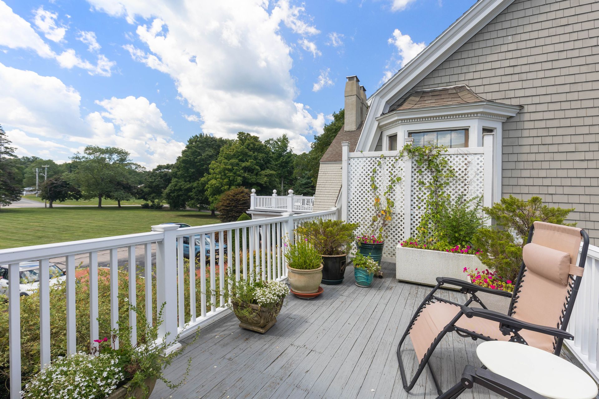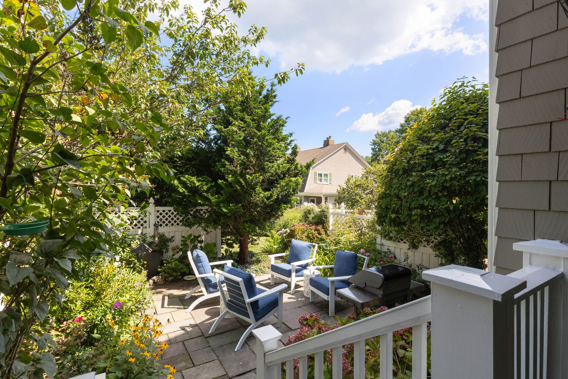 This luxury townhouse, located in the desirable Dreamwold neighborhood, features a charming brick walkway bordered by blooming gardens that welcomes you inside. You’ll immediately notice the meticulous attention-to-detail throughout the home. Elegant French doors with glass door knobs open to an exquisitely designed chef's kitchen, featuring high-end quartz countertops, premium fixtures and hardware, soft-close cabinets, a butlers pantry, stainless steel appliances and a farmhouse sink. All rooms are well appointed and finished with intricate mouldings, plantation shutters and gleaming hardwood floors on the main level. The sun-filled open living-dining area features an elegant wood-burning fireplace, beautifully adorned with a marble surround and built-in shelves. The private porch and courtyard are enclosed by a rich array of lush landscapes and gardens, making them perfect for entertaining guests. Two stylish full bathrooms feature marble and tile finishes, glass shower doors, and soft-close toilets. The upstairs hosts the second bedroom and a spacious owner's suite, which features a redesigned walk-in dream closet and a private rooftop deck overlooking Lawson Tower, the in-ground pool and beautifully landscaped grounds. Ideally situated near the library, commuter rail, beaches, harbor shops, restaurants and schools. This home is truly special!