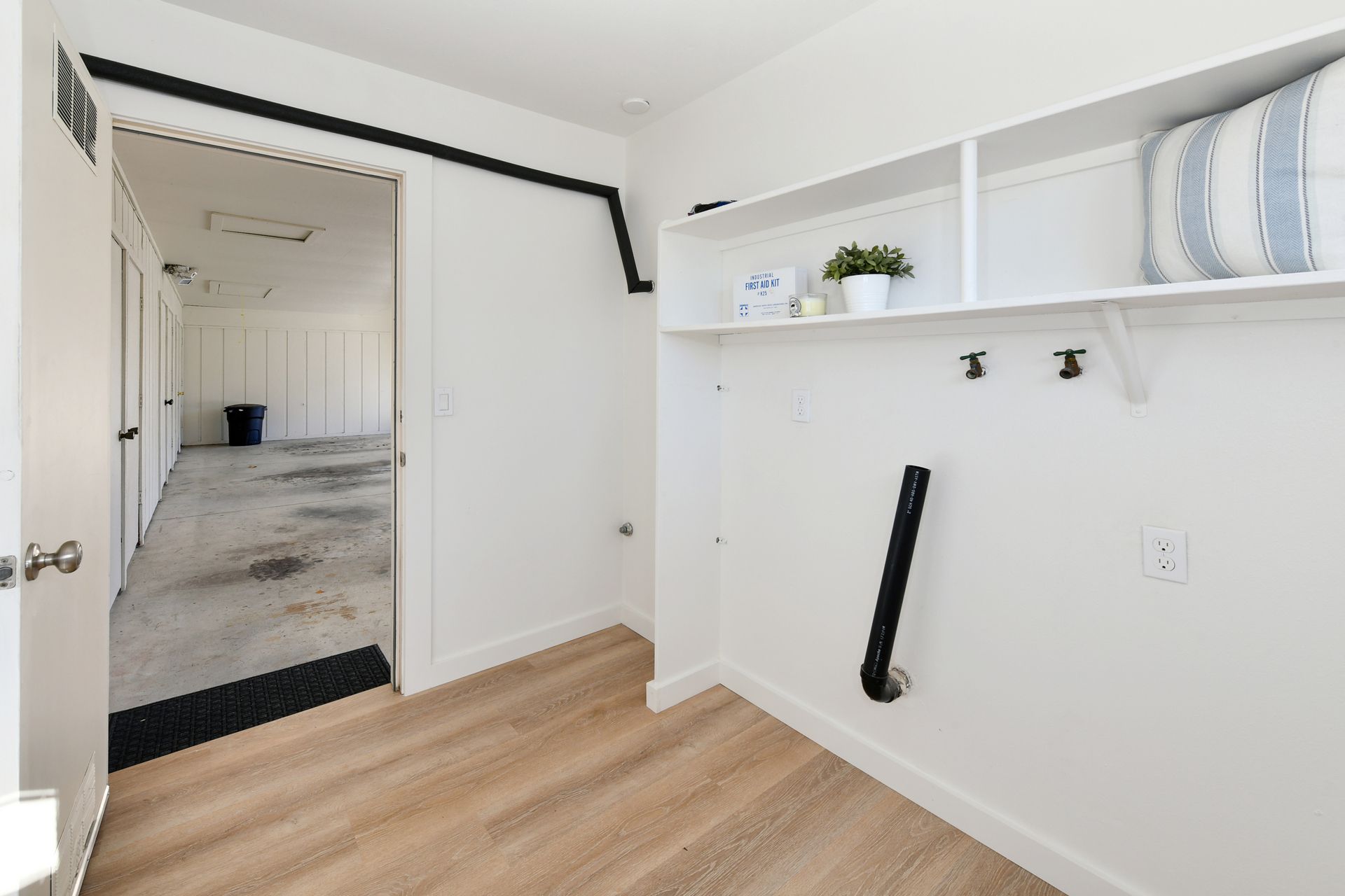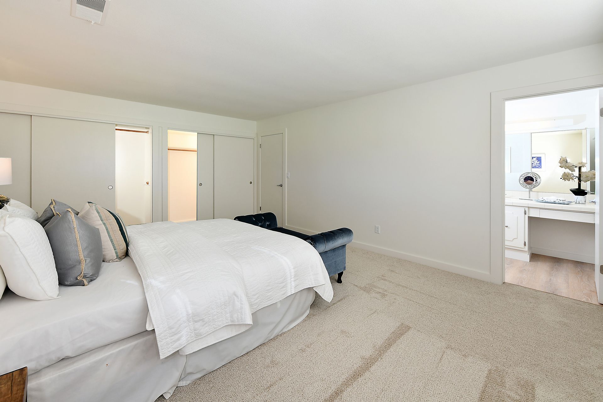 - Kitchen boasts quartz counters, double stainless sink, electric range and oven, built-in microwave, GE dishwasher and GE refrigerator, abundant cabinetry and pantry space.