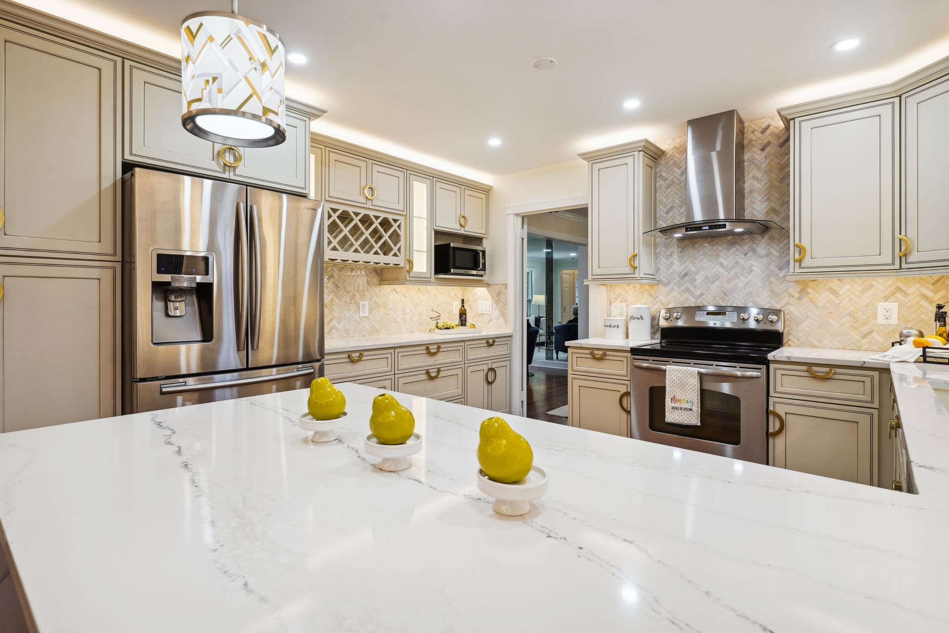 This beautiful American Dream Home has been totally updated to impress! Experience this one-owner, one-of-a-kind, five bedroom, three and one-half bath Colonial boasting over 3,800 finished square feet, surrounded by lush green landscaping. The home is sited on a premium .43-acre corner cul-de-sac lot and showcases a fully renovated first and second floor, swimming pool, two outdoor decks, cedar shake roof, with luxurious accents throughout. From the moment you step into the foyer, you will see dentil crown molding complemented by the cove LED ceiling lighting and a textured decorative finish in a white-washed glaze highlighted by a beautiful Schonbek crystal chandelier. The half bath on main level has Swarovski crystal fixtures and numerous accents you don't often see in homes at this price point. The primary bedroom was reimagined to feature a huge walk-in closet with multi-level built-ins, and Luray Caverns inspired the primary spa bath to be a unique getaway with whirlpool bath, heated floors, glass surround shower with rainwater shower head, dual Italian vessel vanities complemented by modern light fixtures, LED medicine cabinets and a programable wi-fi speaker. The spacious main-level laundry features “mudroom style built-in cubbies” and a new front-loading washer and dryer. The amazing car aficionado’s dream garage has been outfitted with custom flooring, recessed lighting and a custom paint accent design. It's so nice it doubles as additional entertaining space. The lower-level recreation room features full-sized windows and a custom-designed wet bar and entertaining space that leads to the outdoor pool, multiple patios and decks. The full bath completes the picture.