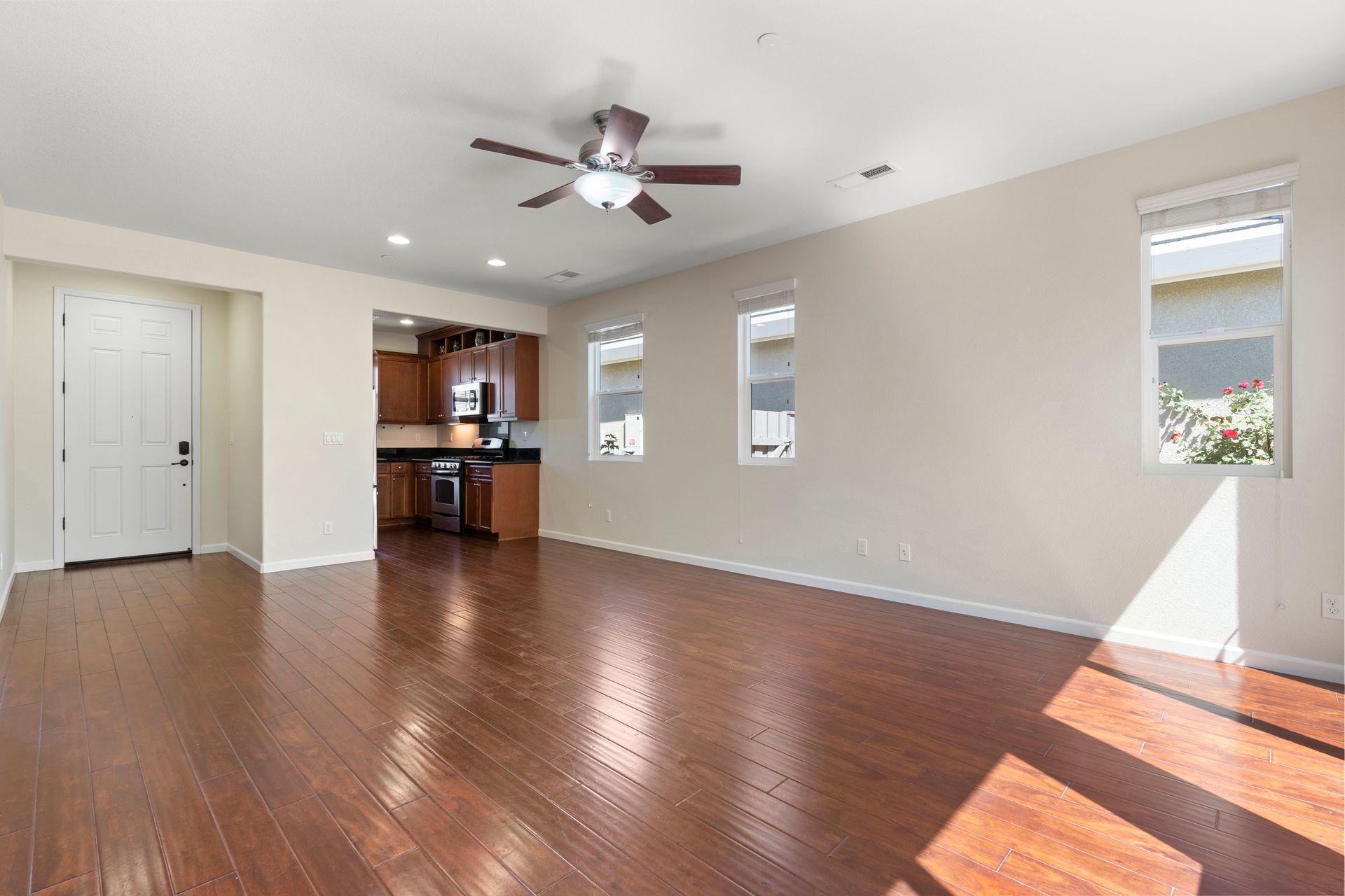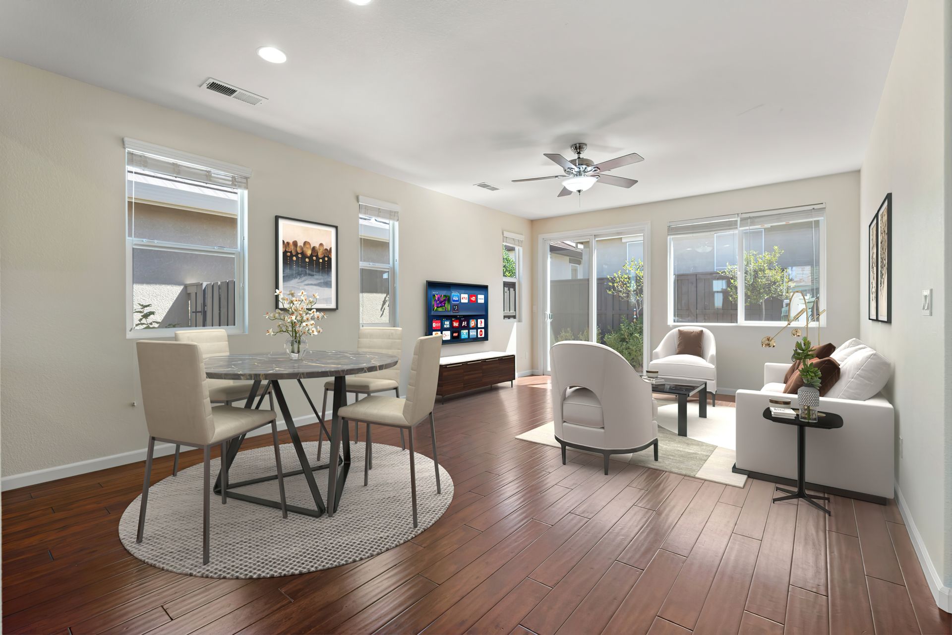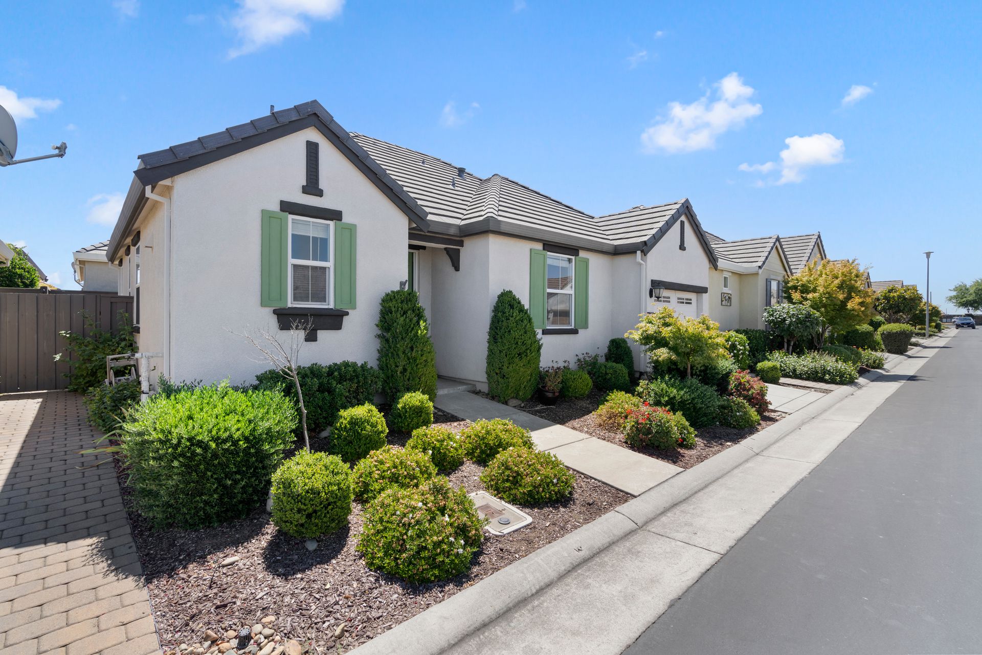 Beautiful home in the popular 55+ active community - Destinations at Vineyard Point by Lennar. This home has two bedrooms, two baths, a laundry room, an open floorplan with beautiful wood floors, an upgraded kitchen with granite countertops and stainless steel appliances. The primary suite includes a nice bathroom and walk-in closet. This bright home also includes dual pane windows, blinds and leased solar. Enjoy your low-maintenance backyard along with a nice front yard that is maintained by the HOA. This well-maintained gated community also includes a beautiful clubhouse with a large pool, spa and exercise facility.