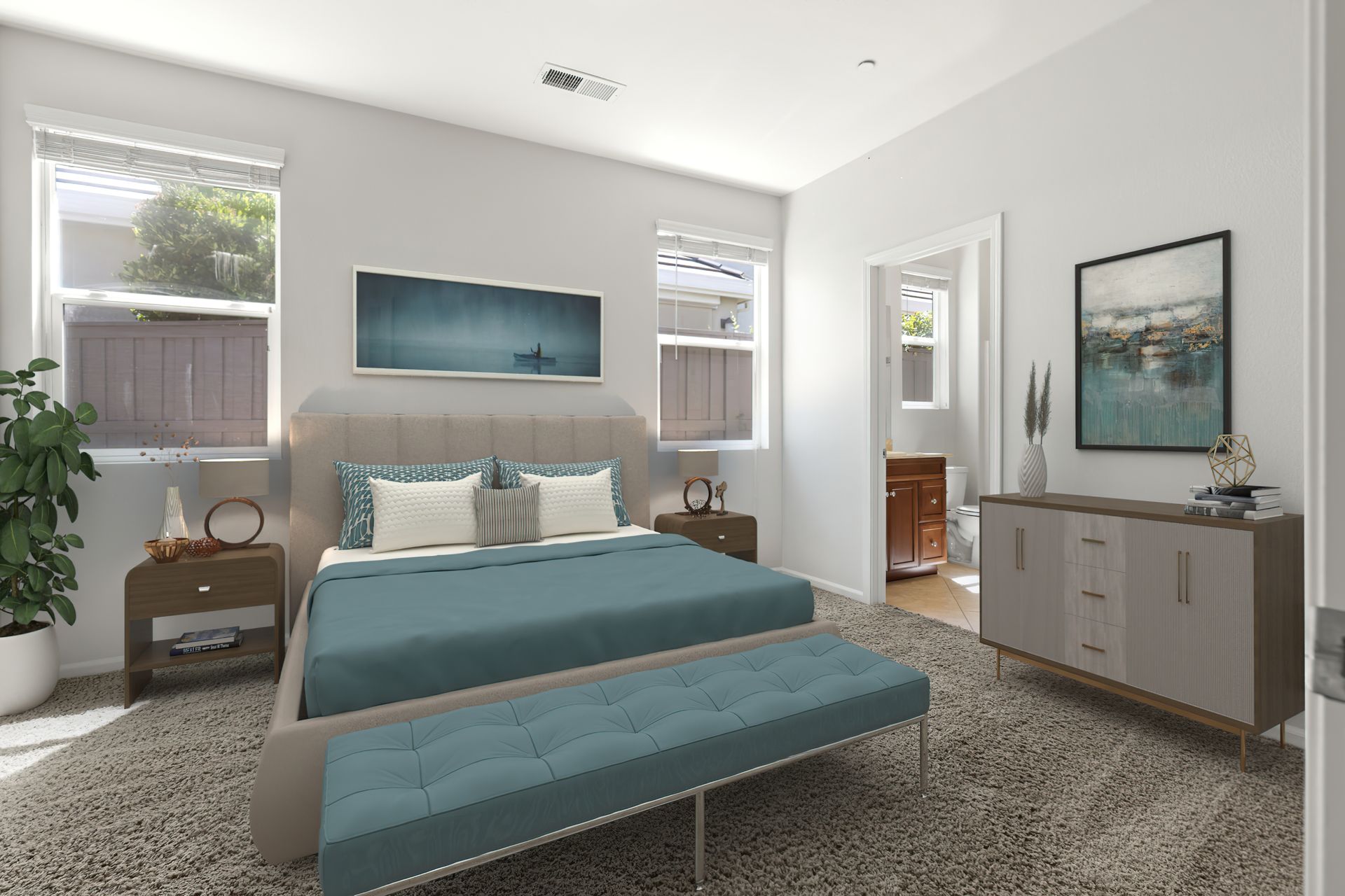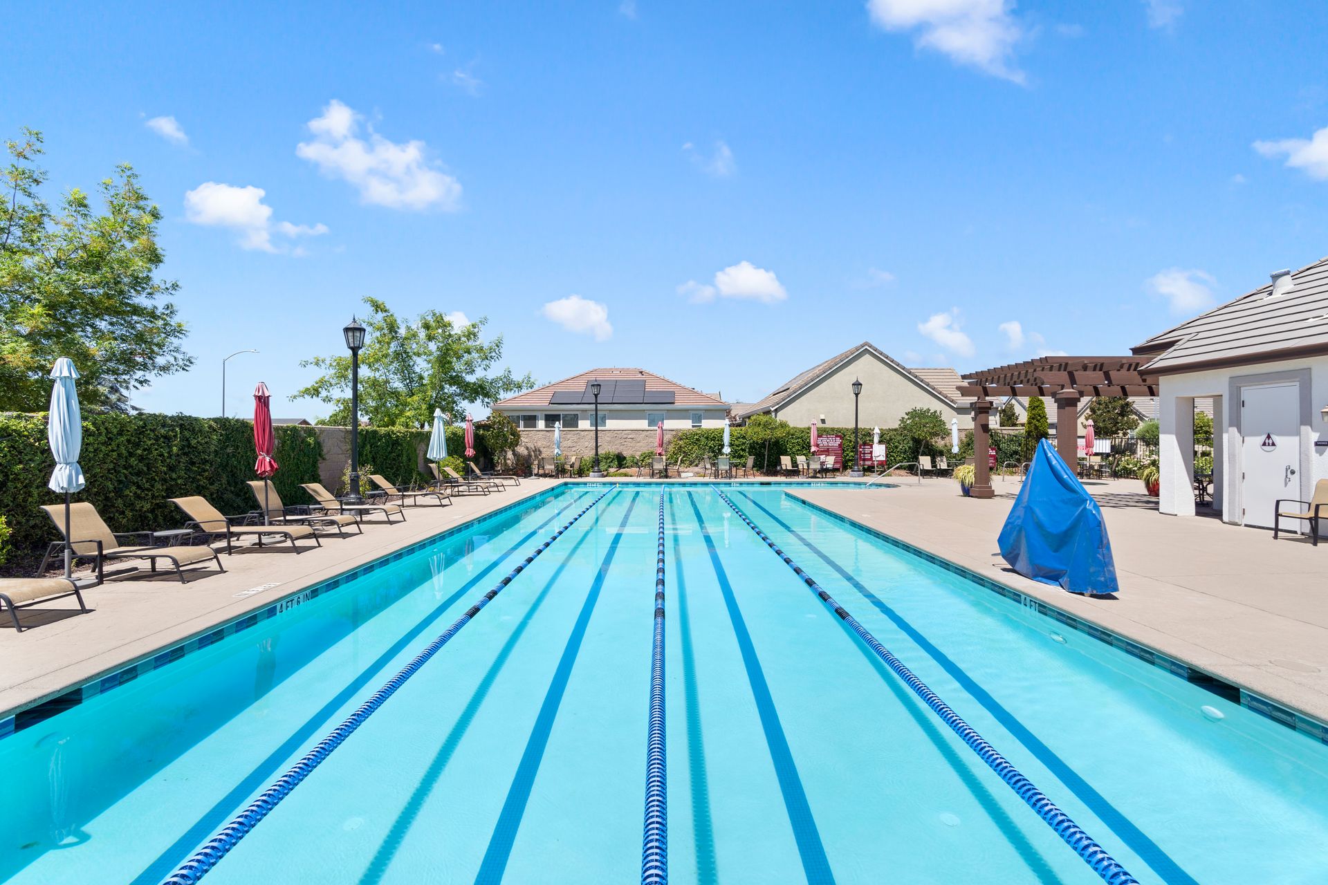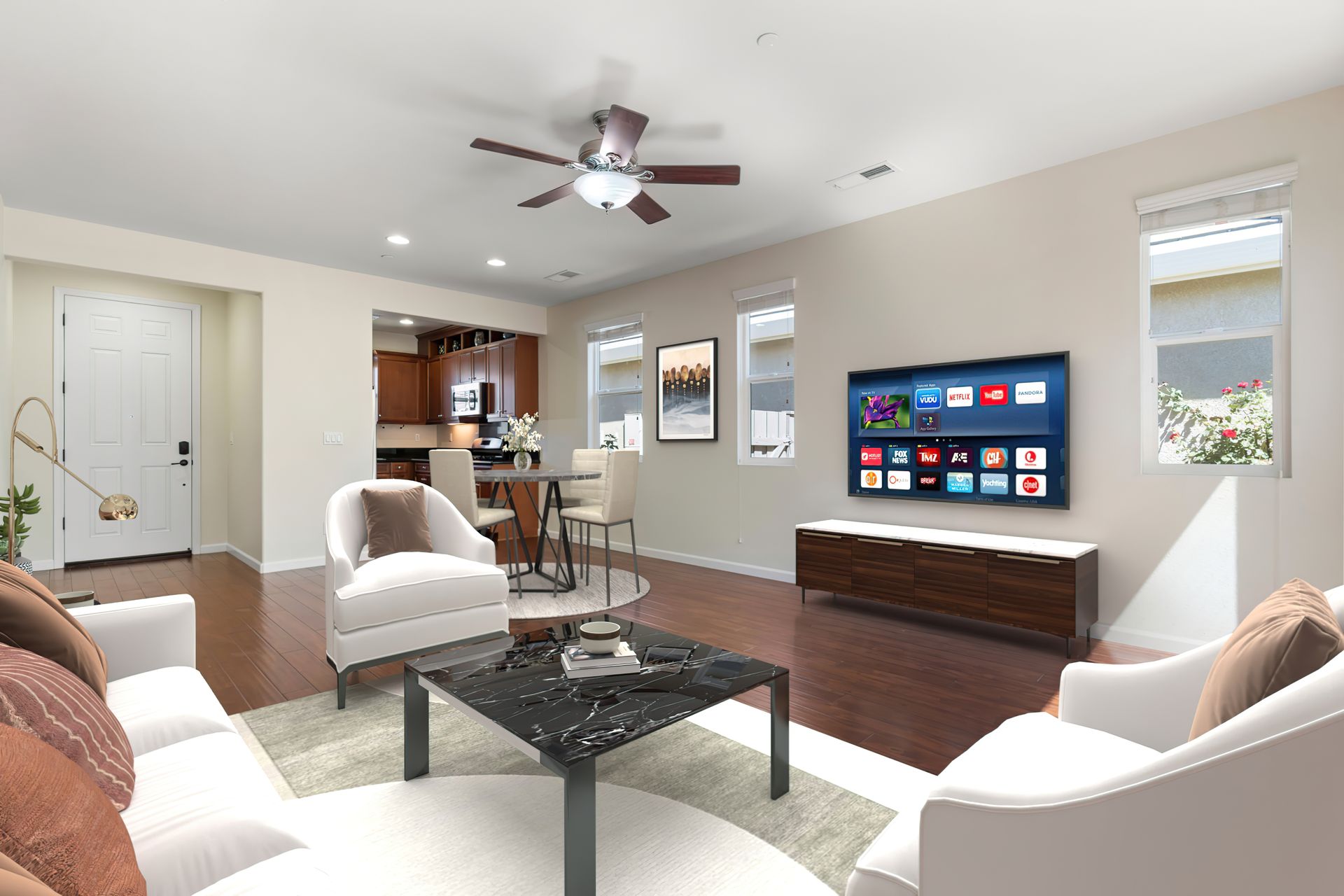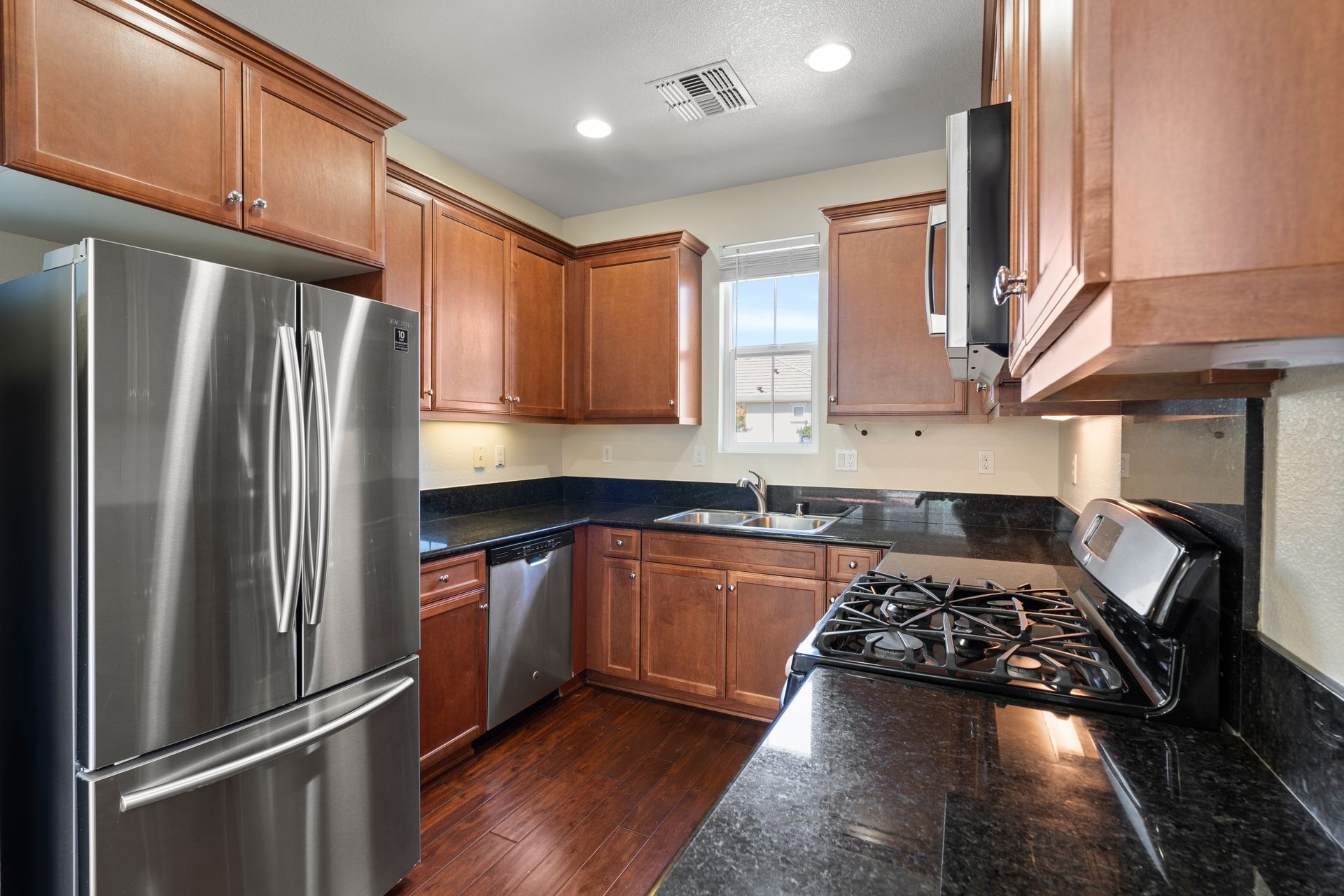 Beautiful home in the popular 55+ active community - Destinations at Vineyard Point by Lennar. This home has two bedrooms, two baths, a laundry room, an open floorplan with beautiful wood floors, an upgraded kitchen with granite countertops and stainless steel appliances. The primary suite includes a nice bathroom and walk-in closet. This bright home also includes dual pane windows, blinds and leased solar. Enjoy your low-maintenance backyard along with a nice front yard that is maintained by the HOA. This well-maintained gated community also includes a beautiful clubhouse with a large pool, spa and exercise facility.