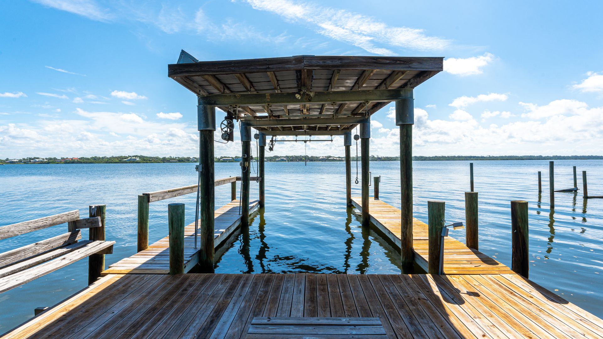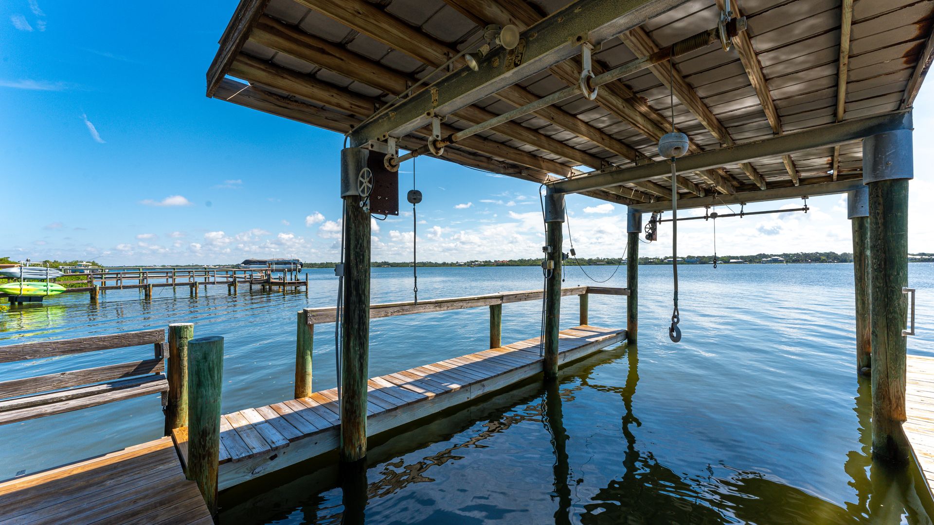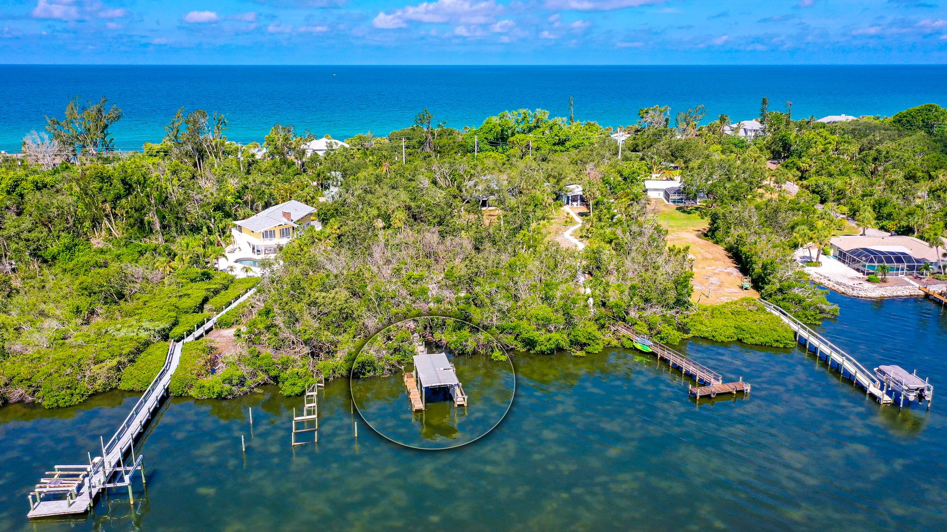 Welcome to this remarkable waterfront property, a hidden gem being offered for sale. Nestled along the tranquility of Lemon Bay, this property presents a unique opportunity for those seeking the perfect canvas to create their dream oasis. Built in 1983, this rotunda-style "Kit House" offers two bedrooms, two bathrooms and approximately 1,199 square feet of living space. Being sold 'as is' and primarily for its land value, this Bayfront parcel offers 73 feet of water frontage, an existing dock, and an approximately 5,000-pound covered boat lift that is grandfathered in, a very unique feature that makes it perfect for the boating and fishing enthusiast.
