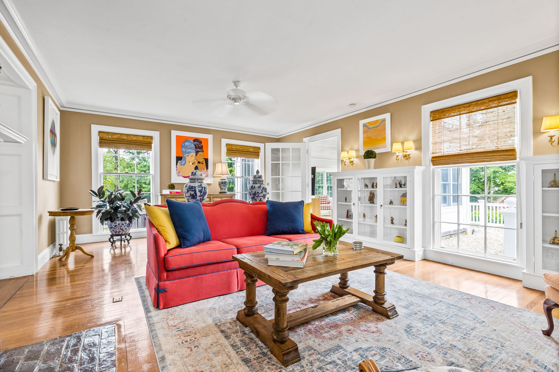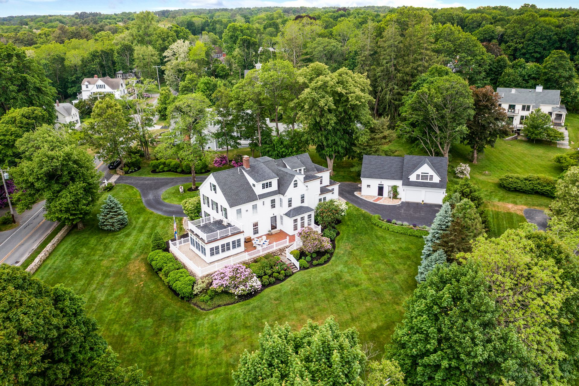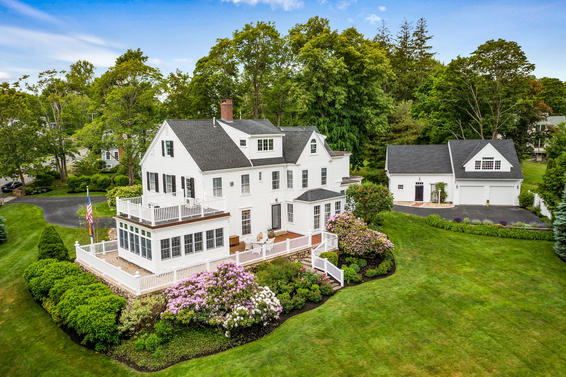 Totally renovated, this stunning circa 1890 estate-style home is located in the highly sought-after Marshfield Hills, home of the General Store and North River Arts Society. Impeccably renovated for the discerning buyer, this home offers a nice blend of today's modern conveniences and the charming detail of an antique. Sited on a beautifully professionally roughly one-acre landscaped level lot with a terraced patio, stone wall, perennial gardens and carriage house/garage. Gourmet kitchen with dining area features a Viking stove, marble counters and a fabulous butler's pantry. Dining and living room with large windows, detailed molding and built-ins. Decadent primary bedroom suite enjoys a sitting area with fireplace, two walk-in closets and upscale bath with radiant heated floors. All bedrooms are en-suite. Third floor has a large exercise room, fifth bedroom, bath and bonus room which transitions well for a home office or au pair suite. Just minutes to Greenbush MBTA, area beaches and marinas.