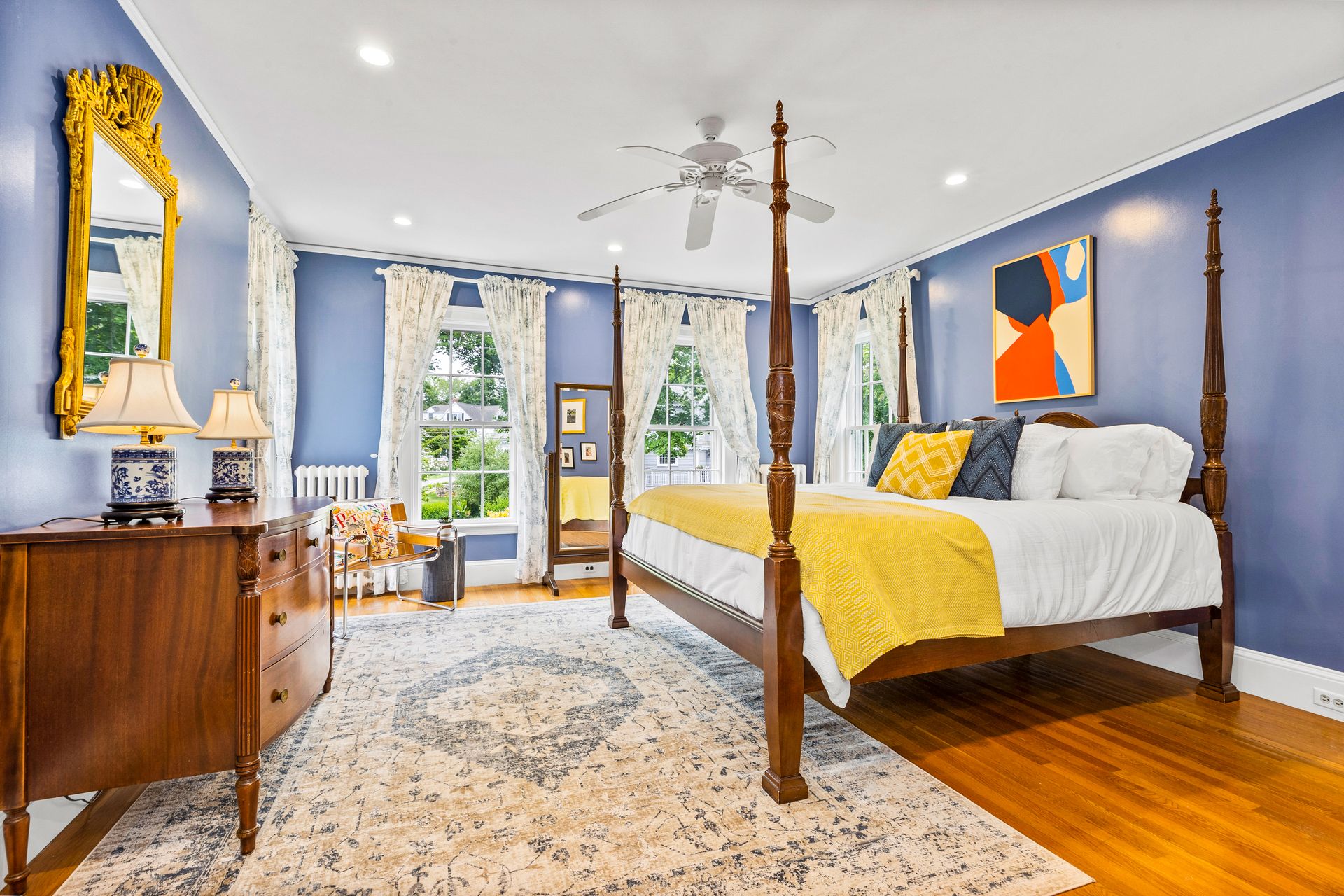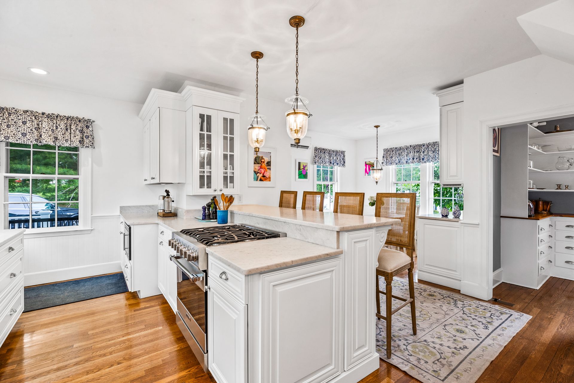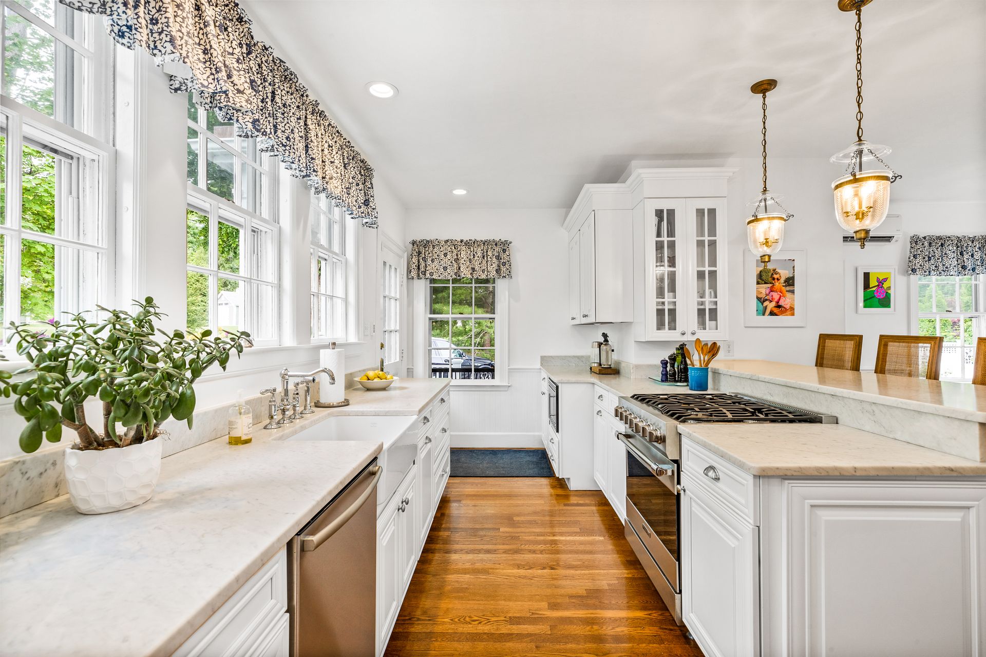 Totally renovated, this stunning circa 1890 estate-style home is located in the highly sought-after Marshfield Hills, home of the General Store and North River Arts Society. Impeccably renovated for the discerning buyer, this home offers a nice blend of today's modern conveniences and the charming detail of an antique. Sited on a beautifully professionally roughly one-acre landscaped level lot with a terraced patio, stone wall, perennial gardens and carriage house/garage. Gourmet kitchen with dining area features a Viking stove, marble counters and a fabulous butler's pantry. Dining and living room with large windows, detailed molding and built-ins. Decadent primary bedroom suite enjoys a sitting area with fireplace, two walk-in closets and upscale bath with radiant heated floors. All bedrooms are en-suite. Third floor has a large exercise room, fifth bedroom, bath and bonus room which transitions well for a home office or au pair suite. Just minutes to Greenbush MBTA, area beaches and marinas.